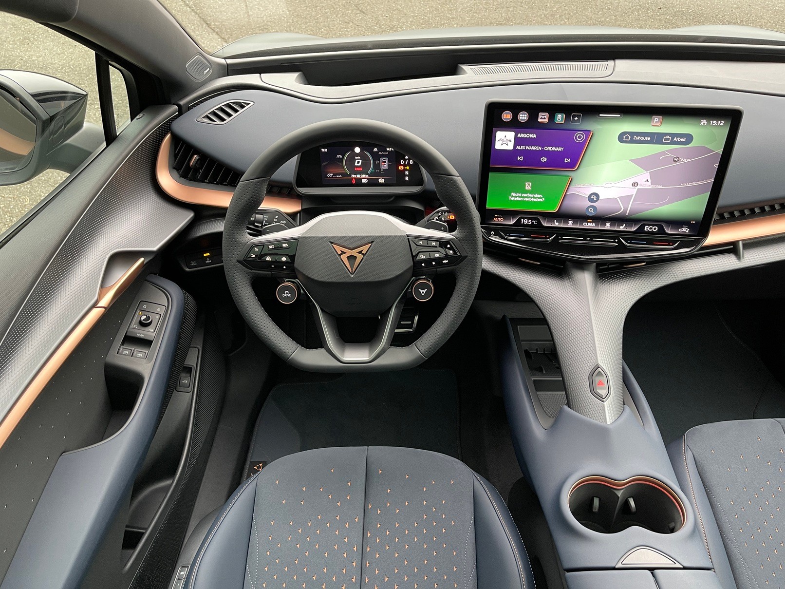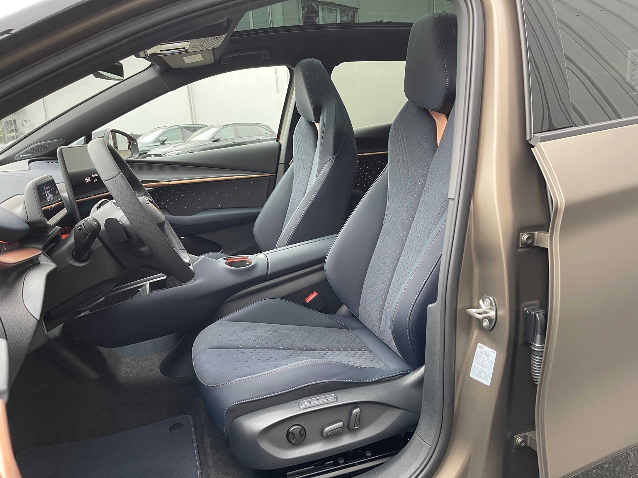 5.3" Full Digital Cockpit Abgedunkelte Scheiben ab B-Säule hinten Airbag: Airbag Beifahrer deaktivierbar Airbag: Airbag Fahrer und Beifahrer Airbag: Seitenairbags für Fahrer und Beifahrer Alarmanlage mit Innenraumüberwachung Assist: Aufmerksamkeits- und Müdigkeitserkennung (ADA) Assist: Ausweichunterstützung / Abbiegeassistent Assist: Exit Assist (Ausparkassistent) Assist: Exit Warning (Ausstiegswarner) Assist: Intelligenter Geschwindigkeitsassistent Assist: Parklenkassistent RPA (Remote Park Assist) Assist: PreCrash Sicherheitssystem Assist: Prädiktive automatische Distanzregelung ACC Assist: Regen-/Lichtsensor Assist: Side Assist (Spurwechselassistent) Assist: Top View Camera (Rundumblick) Assist: Traction Control (TCS) Assist: Traffic sign recognition (Verkehrszeichenerkennung) Assist: eCall Notruffunktion Augmented Reality Head-up-Display Aussenspiegel elektrisch einstell-, beheiz- und einklappbar mit Beifahrerabsenkfunktion- Automatisch abblendender Innenrückspiegel Dreipunkt-Automatiksicherheitsgurte auf allen Plätzen Einstiegsleisten beleuchtet Elektrische Fensterheber vorne und hinten mit Komfortschaltung und Einklemmschutz Elektronisches Stabilitäts-Programm (ESP) Fahrwerk: Adaptive Fahrwerksregelung DCC Garantie: Cupra 12 Jahre Gewährleistung gegen Karosserie-Durchrostung Garantie: Cupra 3 Jahre Lack-Gewährleistung Garantie: Cupra Hersteller-Garantieverlängerung für das 3., 4. und 5. Jahr / max.100000 km Getriebe: 1-Gang Automatik Heckklappe elektrisch öffnend und schliessend "Virtual Pedal" Klima: 3-Zonen Climatronic mit Fondraumbedienung LED Ambientebeleuchtung "IMMERSIVE" Lackierung: Uni-Lackierung Lenkrad: Supersportlenkrad mit Drive Profile-Knopfsystem,beheizbar Licht: Drittes Bremslicht Licht: LED Heckleuchten mit beleuchtetem 3D CUPRA Logo Licht: Matrix LED Fernlicht Licht: Matrix LED Scheinwerfer Licht: Nebelschlussleuchte Media: 15" Infotainment (MIB3) Media: 2 USB C Anschlüsse hinten und vorne Media: Bluetooth-Freisprecheinrichtung Media: CUPRA Connect Online Infotainment Media: CUPRA Connect Remote & Access Media: CUPRA Connect Safety & Services Media: CUPRA Navigationssystem Media: DAB+ (Digital Audio Broadcasting) Media: SENNHEISER Sound System mit 12 High-End-Lautsprecher inkl. 300 Watt Subwoofer Media: Wireless Charger zur induktiven Smartphone Ladung Polster: Sitzbezüge in Dinamica "Dark Night" Räder: Alufelgen 9J x 21", "Katla" Machined Sport in Black/Copper Räder: Reifendruckkontrollsystem Schlüsselloses Schliess- und Startsystem (KESSY Advance) Servolenkung geschwindigkeitsabhängig Sitze: Elektrische Sitzverstellung mit Memory-Funktion für Fahrer- und Beifahrerseite Sitze: Geteilt abklappbare Rücksitzlehne mit Mittelarmlehne und Durchlademöglichkeit Sitze: Kindersitzbefestigungssystem ISOFIX Sitze: Kopfstützen hinten höhenverstellbar Sitze: Kopfstützen vorne (integrierte) Sitze: Lendenwirbelstütze Fahrer- und Beifahrerseite elektrisch einstellbar Sitze: Sitzheizung für Vorder- und Rücksitze, getrennt regelbar Sitze: Vordersitze höhenverstellbar Vorbereitung für Anhängevorrichtung Wegfahrsperre elektronisch Zentralverriegelung mit Fernbedienung