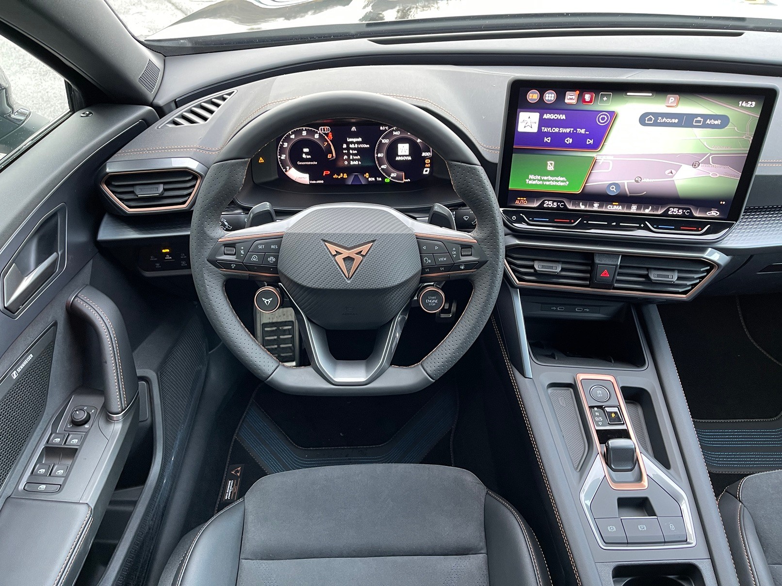 3-Punkt-Sicherheitsgurte auf allen Plätzen ABS, EBV elektronische Bremskraft-verteilung Abgedunkelte Scheiben ab B-Säule hinten Airbag: Airbag Beifahrer deaktivierbar Airbag: Airbag Fahrer und Beifahrer Airbag: Kopfairbags vorne und hinten Airbag: Seitenairbags für Fahrer und Beifahrer Assist: Aufmerksamkeits- und Müdigkeitserkennung (ADA) Assist: Ausweichunterstützung / Abbiegeassistent Assist: Automatische Distanzregelung ACC Assist: City Notbremsfunktion Assist: Einparkhilfe vorne und hinten mit Rückfahrkamera Assist: Elektronische Parkbremse mit Auto Hold Funktion Assist: Lane assist (Spurhalteassistent) Assist: Multifunktionskamera Assist: Multikollisionsbremse Assist: Prädiktive Speedlimiter Assist: Regen-/Lichtsensor Assist: Traction Control (TCS) Assist: Traffic sign recognition (Verkehrszeichenerkennung) Assist: Umfeldbeobachtung Front-Assist Aussenspiegel mit Beifahrerspiegelabsenkung Aussenspiegel mit LED-Umfeldbeleuchtung Automatisch abblendender Innenrückspiegel Beleuchtete Sonnenblende links mit abdeckbarem Spiegel und Lasche, rechts mit abdeckbarem Spiegel ESC mit EBA, DSR, XDS und Reifendruckkontrolle Elektrische Fensterheber vorne und hinten mit Komfortschaltung und Einklemmschutz Fahrwerk: Adaptive Fahrwerksregelung DCC Fahrwerk: Progressivlenkung Fussmatten vorne und hinten Garantie: Cupra 12 Jahre Gewährleistung gegen Karosserie-Durchrostung Garantie: Cupra 3 Jahre Lack-Gewährleistung Garantie: Cupra Hersteller-Garantieverlängerung für das 3., 4. und 5. Jahr / max.100000 km Heckscheiben-Wisch-/Waschanlage mit Intervall Kindersitzverankerung ISOFIX (äussere Plätze hinten) Klima: 3-Zonen Climatronic mit Fondraumbedienung Lackierung: Uni-Lackierung Lenkrad: Supersportlenkrad mit Start-/ Drive Profile-Knopfsystem und Schaltwippen, beheizbar Licht: Coming-home-Funktion Licht: Drittes Bremslicht Licht: Durchgehende Full LED-Heckleuchten Licht: Fernlicht-Assistent Licht: LED Heckleuchten mit beleuchtetem 3D CUPRA Logo Licht: LED-Heckleuchten mit dynamischem Blinklicht Licht: LED-Nebelscheinwerfer mit Cornering-Funktion Licht: LED-Scheinwerfer für Abblend- und Fernlicht Licht: Leuchtweitenregulierung dynamisch Licht: Nebelschlussleuchte Media: 12,9" Infotainment (MIB3) Media: 2 USB C Anschlüsse hinten und vorne Media: CUPRA Connect Remote & Access Media: CUPRA Connect Safety & Services Media: CUPRA Connectivity Box Media: DAB+ (Digital Audio Broadcasting) Media: Mobiltelefon Freisprechanlage Bluetooth Pyrotechnische Gurtstraffer und Gurtkraftbegrenzer Räder: Alufelgen 8J x 19", "SANDSTORM" Machined in Silver Räder: Reifendruckkontrollsystem Räder: Reifenreparatur-Set (Tire Fit) Servolenkung mit geschwindigkeitsabhängiger Lenkkraftunterstützung Sitze: 3 verstellbare Kopfstützen hinten Sitze: Geteilt abklappbare Rücksitzlehne 1/3 - 2/3 Sitze: Kopfstützen vorne (integrierte) Sitze: Mittelarmlehne hinten Sitze: Mittelarmlehne vorne Sitze: Sitzheizung für Vordersitze, getrennt regelbar Sitze: Vordersitze höhenverstellbar mit Lendenwirbelstütze Stopp - Start- und Rekuperationssystem Wegfahrsperre elektronisch Zentralverriegelung mit Funkfernbedienung, 2 Funkschlüssel