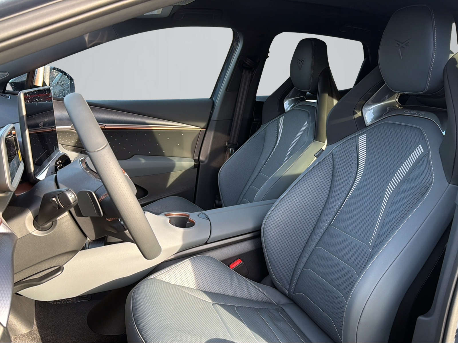 5.3" Full Digital Cockpit Abgedunkelte Scheiben ab B-Säule hinten Airbag: Airbag Beifahrer deaktivierbar Airbag: Airbag Fahrer und Beifahrer Airbag: Seitenairbags für Fahrer und Beifahrer Alarme avec surveillance intérieure Assist: Assistant de direction au stationnement RPA (Remote Park Assist) Assist: Assistant de vitesse intelligent Assist: Aufmerksamkeits- und Müdigkeitserkennung (ADA) Assist: Ausweichunterstützung / Abbiegeassistent Assist: Exit Assist (Ausparkassistent) Assist: Exit Warning (Ausstiegswarner) Assist: PreCrash Sicherheitssystem Assist: Regen-/Lichtsensor Assist: Régulation automatique de la distance prédictive ACC Assist: Side Assist (Spurwechselassistent) Assist: Top View Camera (Rundumblick) Assist: Traction Control (TCS) Assist: Traffic sign recognition (Verkehrszeichenerkennung) Assist: eCall Notruffunktion Automatisch abblendender Innenrückspiegel Dreipunkt-Automatiksicherheitsgurte auf allen Plätzen Elektrische Fensterheber vorne und hinten mit Komfortschaltung und Einklemmschutz Elektronisches Stabilitäts-Programm (ESP) Enjoliveurs de seuil éclairés Fahrwerk: Adaptive Fahrwerksregelung DCC Garantie: CUPRA Prolongation de garantie constructeur pour les 3ème, 4ème et 5ème années / Garantie: Cupra 12 ans de garantie contre perforation de la carrosserie Garantie: Cupra 3 ans de garantie pour la peinture Getriebe: 1-Gang Automatik Heckklappe elektrisch öffnend und schliessend "Virtual Pedal" Klima: 3-Zonen Climatronic mit Fondraumbedienung Lackierung: Uni-Lackierung Licht: Drittes Bremslicht Licht: LED Heckleuchten mit beleuchtetem 3D CUPRA Logo Licht: Matrix LED Scheinwerfer Licht: Nebelschlussleuchte Lumière: Feu de route matriciel a LED Media: 15" Infotainment (MIB3) Media: 2 USB C Anschlüsse hinten und vorne Media: Bluetooth-Freisprecheinrichtung Media: CUPRA Connect Online Infotainment Media: CUPRA Connect Remote & Access Media: CUPRA Navigationssystem Media: DAB+ (Digital Audio Broadcasting) Media: Systeme audio SENNHEISER avec 12 haut-parleurs haut de gamme dont un caisson de basses de300w Media: Wireless Charger zur induktiven Smartphone Ladung Mèdias: CUPRA Connect Safety & Services Préparation pour dispositif d'attelage Roues: Jantes en aluminium 9J x 21", "Etna" Machined Sport en noir/cuivre Räder: Reifendruckkontrollsystem Rétroviseurs extérieurs rétractables électriquement, chauffée avec fonction d'abaissement passager- Schlüsselloses Schliess- und Startsystem (KESSY Advance) Servolenkung geschwindigkeitsabhängig Sitze: Kindersitzbefestigungssystem ISOFIX Sitze: Kopfstützen hinten höhenverstellbar Sitze: Kopfstützen vorne (integrierte) Sitze: Vordersitze höhenverstellbar Sièges: CUPRA CUPSieges baquets sport baquets en cuir "Gris Encelade" Sièges: Chauffage des sieges avant et arriere, réglable séparément Sièges: Dossier de banquette arriere rabattable en deux parties avec accoudoir central et option de Sièges: Réglage électrique du siege avec fonction mémoire pour les côtés conducteur et passager Sièges: Support lombaire côté conducteur et passager réglable électriquement Sièges: Ventilation des sieges avant Verrouillage centralisé à télécommande Volant: Volant Supersport avec systeme de boutons Drive Profile, chauffant Wegfahrsperre elektronisch Éclairage dambiance LED "IMMERSIVE" Écran head-up à réalité augmentée