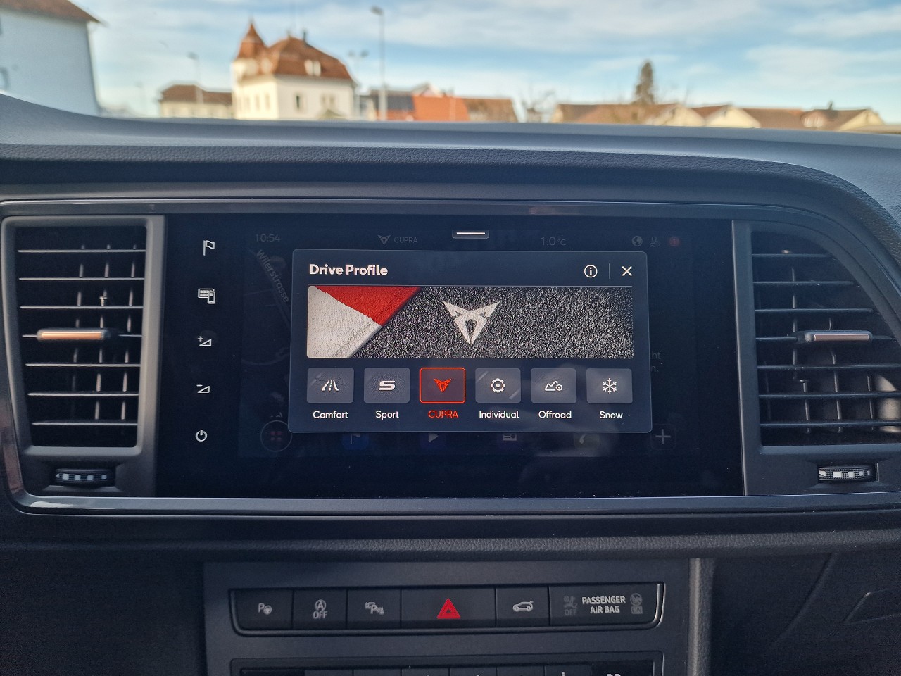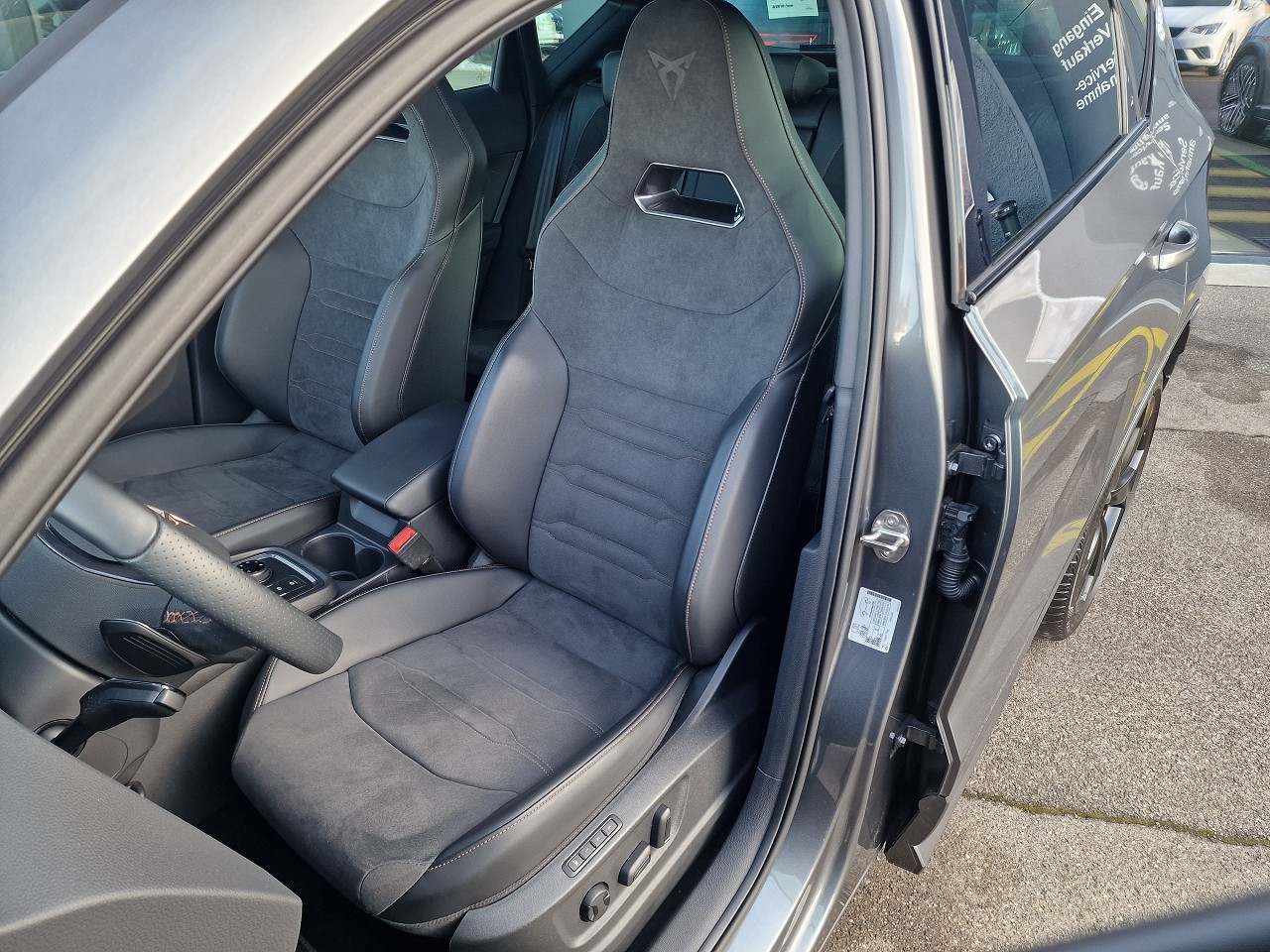 Serienausstattung ABS, EBV elektronische Bremskraft-verteilung Abgedunkelte Scheiben ab B-Säule hinten Airbag: Airbag Beifahrer deaktivierbar Airbag: Airbag Fahrer und Beifahrer Airbag: Knieairbag auf der Fahrerseite Airbag: Kopfairbags vorne und hinten Airbag: Seitenairbags für Fahrer und Beifahrer Assist: Aufmerksamkeits- und Müdigkeitserkennung (ADA) Assist: Einparkhilfe vorne und hinten mit optischer Anzeige Assist: Elektronische Parkbremse mit Auto Hold Funktion Assist: Lane assist (Spurhalteassistent) Assist: Multifunktionskamera Assist: Multikollisionsbremse Assist: Parklenkassistent Assist: Regen-/Lichtsensor Assist: Top View Camera (Rundumblick) Aussenspiegel elektrisch einstell-, beheiz- und einklappbar Aussenspiegel mit Beifahrerspiegelabsenkung Aussenspiegel mit LED-Umfeldbeleuchtung Aussenspiegel und Türgriffe in Wagenfarbe Automatisch abblendender Innenrückspiegel Beleuchtete Sonnenblende links mit abdeckbarem Spiegel und Lasche, rechts mit abdeckbarem Spiegel CUPRA Drive Profile mit "driving experience button" Comfort, Sport, CUPRA, Individual, Snow, Offroad Dekor: Dekorblenden in Grau glänzend Dekor: Türverkleidung mit Ambient light Dreipunkt-Automatiksicherheitsgurte auf allen Plätzen ESC mit EBA, DSR, XDS und Reifendruckkontrolle Einstiegsleisten in Aluminium Elektrische Fensterheber vorne und hinten mit Komfortschaltung und Einklemmschutz Fahrwerk: Adaptive Fahrwerksregelung DCC Fahrwerk: Progressivlenkung Fussmatten vorne und hinten Garantie: Cupra 12 Jahre Gewährleistung gegen Karosserie-Durchrostung Garantie: Cupra 3 Jahre Lack-Gewährleistung Garantie: Cupra Garantie 2 Jahre ohne Kilometerbegrenzung Heckscheiben-Wisch-/Waschanlage mit Intervall Klima: 2-Zonen Climatronic Lackierung: Uni-Lackierung Lenkrad: Beheizbares Ledermultifunktionslenkrad mit Schaltwippen Licht: Coming-home-Funktion Licht: Drittes Bremslicht Licht: LED-Heckleuchten mit dynamischem Blinklicht Licht: LED-Nebelscheinwerfer mit Cornering-Funktion Licht: LED-Scheinwerfer für Abblend- und Fernlicht Licht: Leuchtweitenregulierung dynamisch Licht: Nebelschlussleuchte Media: 2 USB C Anschlüsse hinten und vorne Media: 9.2" 3D Infotainment (MIB3) Media: CUPRA Connect Online Infotainment für Navigationssystem Media: CUPRA Connect Remote & Access für Navigationssystem Media: CUPRA Connect Safety & Services für Navigationssystem Media: CUPRA Connectivity Box Media: CUPRA FullLink für Navigationssystem Media: CUPRA Navigationssystem Media: DAB+ (Digital Audio Broadcasting) Media: Kartenmaterial ''Europa'' Media: Mobiltelefon Freisprechanlage Bluetooth Paket: Fahrerassistenzpaket M für Navigationssystem Pyrotechnische Gurtstraffer und Gurtkraftbegrenzer Radlaufblenden in Wagenfarbe Räder: Alufelgen 8J x 19", Machined Sport Black/Silver Räder: Reifenreparatur-Set (Tire Fit) Schlüsselloses Schliess- und Startsystem (KESSY) Servolenkung mit geschwindigkeitsabhängiger Lenkkraftunterstützung Sitze: 2 verstellbare Kopfstützen vorne und 3 hinten Sitze: CUPRA Sportschalensitze in Dinamica "Black" Sitze: Easy Backseat Release (Rücksitzentriegelung im Kofferraum) Sitze: Geteilt abklappbare Rücksitzlehne 1/3 - 2/3 Sitze: Kindersitzverankerung ISOFIX hinten Sitze: Mittelarmlehne hinten Sitze: Mittelarmlehne vorne Sitze: Vordersitze höhenverstellbar mit Lendenwirbelstütze Sportabgasanlage mit 4-fach Endrohr Stopp - Start- und Rekuperationssystem Wegfahrsperre elektronisch Zentralverriegelung mit Funkfernbedienung, 2 Funkschlüssel