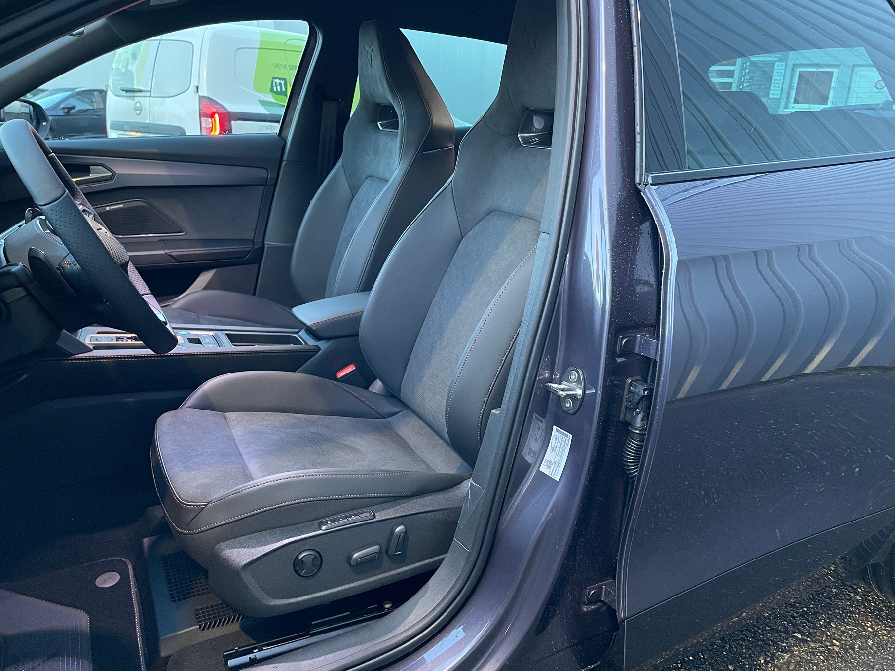 3-Punkt-Sicherheitsgurte auf allen Plätzen ABS, EBV elektronische Bremskraft-verteilung Abgedunkelte Scheiben ab B-Säule hinten Airbag: Airbag Beifahrer deaktivierbar Airbag: Airbag Fahrer und Beifahrer Airbag: Kopfairbags vorne und hinten Airbag: Seitenairbags für Fahrer und Beifahrer Assist: Aufmerksamkeits- und Müdigkeitserkennung (ADA) Assist: Ausweichunterstützung / Abbiegeassistent Assist: Automatische Distanzregelung ACC Assist: City Notbremsfunktion Assist: Einparkhilfe vorne und hinten mit Rückfahrkamera Assist: Elektronische Parkbremse mit Auto Hold Funktion Assist: Lane assist (Spurhalteassistent) Assist: Multifunktionskamera Assist: Multikollisionsbremse Assist: Prädiktive Speedlimiter Assist: Regen-/Lichtsensor Assist: Traction Control (TCS) Assist: Traffic sign recognition (Verkehrszeichenerkennung) Assist: Umfeldbeobachtung Front-Assist Aussenspiegel mit Beifahrerspiegelabsenkung Aussenspiegel mit LED-Umfeldbeleuchtung Automatisch abblendender Innenrückspiegel Beleuchtete Sonnenblende links mit abdeckbarem Spiegel und Lasche, rechts mit abdeckbarem Spiegel ESC mit EBA, DSR, XDS und Reifendruckkontrolle Elektrische Fensterheber vorne und hinten mit Komfortschaltung und Einklemmschutz Fahrwerk: Adaptive Fahrwerksregelung DCC Fahrwerk: Progressivlenkung Fussmatten vorne und hinten Garantie: Cupra 12 Jahre Gewährleistung gegen Karosserie-Durchrostung Garantie: Cupra 3 Jahre Lack-Gewährleistung Garantie: Cupra Hersteller-Garantieverlängerung für das 3., 4. und 5. Jahr / max.100000 km Heckscheiben-Wisch-/Waschanlage mit Intervall Kindersitzverankerung ISOFIX (äussere Plätze hinten) Klima: 3-Zonen Climatronic mit Fondraumbedienung Lackierung: Uni-Lackierung Lenkrad: Supersportlenkrad mit Start-/ Drive Profile-Knopfsystem und Schaltwippen, beheizbar Licht: Coming-home-Funktion Licht: Drittes Bremslicht Licht: Durchgehende Full LED-Heckleuchten Licht: Fernlicht-Assistent Licht: LED Heckleuchten mit beleuchtetem 3D CUPRA Logo Licht: LED-Heckleuchten mit dynamischem Blinklicht Licht: LED-Nebelscheinwerfer mit Cornering-Funktion Licht: LED-Scheinwerfer für Abblend- und Fernlicht Licht: Leuchtweitenregulierung dynamisch Licht: Nebelschlussleuchte Media: 12,9" Infotainment (MIB3) Media: 2 USB C Anschlüsse hinten und vorne Media: CUPRA Connect Remote & Access Media: CUPRA Connect Safety & Services Media: CUPRA Connectivity Box Media: DAB+ (Digital Audio Broadcasting) Media: Mobiltelefon Freisprechanlage Bluetooth Pyrotechnische Gurtstraffer und Gurtkraftbegrenzer Räder: Alufelgen 8J x 19", "SANDSTORM" Machined in Silver Räder: Reifendruckkontrollsystem Räder: Reifenreparatur-Set (Tire Fit) Servolenkung mit geschwindigkeitsabhängiger Lenkkraftunterstützung Sitze: 3 verstellbare Kopfstützen hinten Sitze: Geteilt abklappbare Rücksitzlehne 1/3 - 2/3 Sitze: Kopfstützen vorne (integrierte) Sitze: Mittelarmlehne hinten Sitze: Mittelarmlehne vorne Sitze: Sitzheizung für Vordersitze, getrennt regelbar Sitze: Vordersitze höhenverstellbar mit Lendenwirbelstütze Stopp - Start- und Rekuperationssystem Wegfahrsperre elektronisch Zentralverriegelung mit Funkfernbedienung, 2 Funkschlüssel