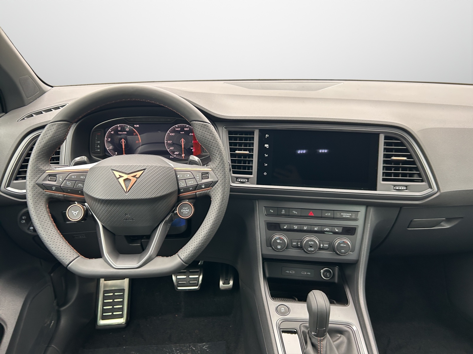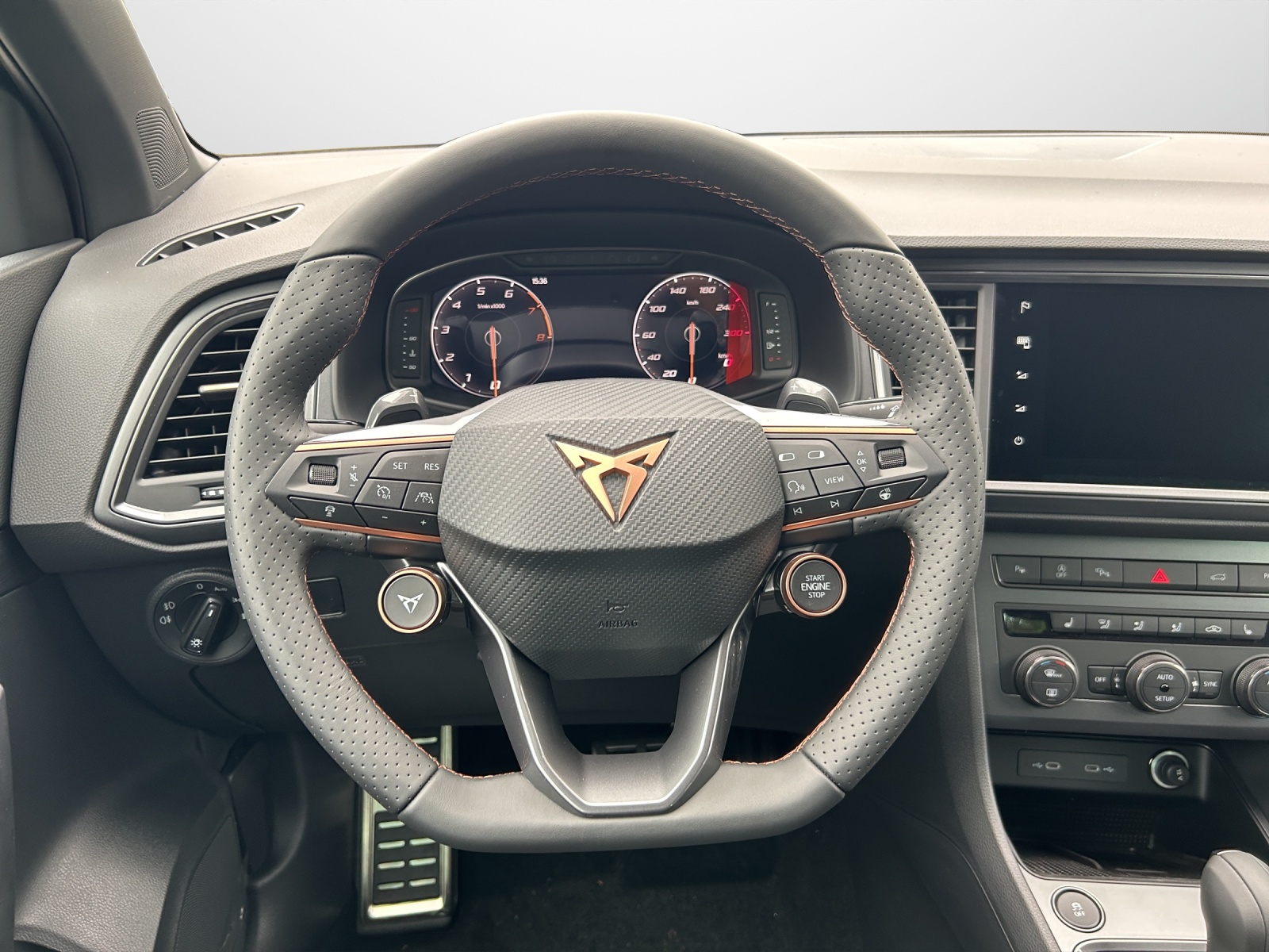 Anhängevorrichtung (Einklappbar) Assist: Top View Camera (Rundumblick) Heckklappe elektrisch öffnend und schliessend "Virtual Pedal" Lackierung: Metallic-Lackierung Lenkrad: Supersportlenkrad mit Start-/ Drive Profile-Knopfsystem und Schaltwippen Media: CUPRA Connectivity Box Paket: Fahrerassistenzpaket XL Räder: Alufelgen 8J x 19", "EXCLUSIVE"in Sport Black Matt Sitze: Fahrersitz elektrisch einstellbar