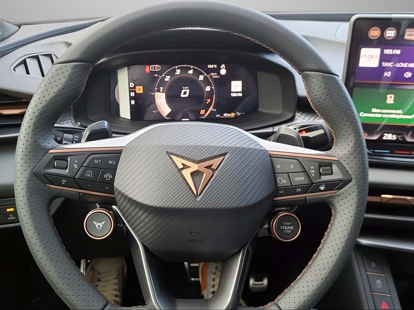 3-Punkt-Sicherheitsgurte auf allen Plätzen ABS, EBV elektronische Bremskraft-verteilung Abgedunkelte Scheiben ab B-Säule hinten Airbag: Airbag Beifahrer deaktivierbar Airbag: Airbag Fahrer und Beifahrer Airbag: Kopfairbags vorne und hinten Airbag: Seitenairbags für Fahrer und Beifahrer Alarme avec surveillance intérieure Ambiente Innenraumbeleuchtung mit beleuchteten Türpanelen Assist: Aufmerksamkeits- und Müdigkeitserkennung (ADA) Assist: Ausweichunterstützung / Abbiegeassistent Assist: Automatische Distanzregelung ACC Assist: City Notbremsfunktion Assist: Einparkhilfe vorne und hinten mit Rückfahrkamera Assist: Elektronische Parkbremse mit Auto Hold Funktion Assist: Lane assist (Spurhalteassistent) Assist: Multifunktionskamera Assist: Multikollisionsbremse Assist: Prädiktive Speedlimiter Assist: Traffic sign recognition (Verkehrszeichenerkennung) Assist: Umfeldüberwachungssystem "Front-Assist" Aussenspiegel elektrisch einstell-, beheiz- und einklappbar Aussenspiegel mit LED-Umfeldbeleuchtung Beleuchtete Sonnenblende links mit abdeckbarem Spiegel und Lasche, rechts mit abdeckbarem Spiegel Capteur de pluie et lumière ESC mit EBA, DSR, XDS und Reifendruckkontrolle Elektrische Fensterheber vorne und hinten mit Komfortschaltung und Einklemmschutz Fahrwerk: Adaptive Fahrwerksregelung DCC Fahrwerk: CUPRA Sportfahrwerk Fahrwerk: Progressivlenkung Garantie: Cupra 12 ans de garantie contre perforation de la carrosserie Garantie: Cupra 2 ans de garantie, kilométrage illimité Garantie: Cupra 3 ans de garantie pour la peinture Heckklappe elektrisch öffnend und schliessend "Virtual Pedal" Heckscheiben-Wisch-/Waschanlage mit Intervall Klima: 3-Zonen Climatronic mit Fondraumbedienung Lackierung: Uni-Lackierung Lenkrad: Leder Multifunktionslenkrad mit Schaltwippen, beheizbar Licht: Drittes Bremslicht Licht: Durchgehende Full LED-Heckleuchten Licht: LED Heckleuchten mit beleuchtetem 3D CUPRA Logo Licht: LED-Heckleuchten mit dynamischem Blinklicht Licht: LED-Nebelscheinwerfer mit Cornering-Funktion Licht: LED-Scheinwerfer für Abblend- und Fernlicht Licht: Leuchtweitenregulierung dynamisch Licht: Nebelschlussleuchte Media: 12,9" Infotainment (MIB3) Media: 2 USB C Anschlüsse hinten und vorne Media: DAB+ (Digital Audio Broadcasting) Media: Mobiltelefon Freisprechanlage Bluetooth Mittelarmlehne vorne und hinten Mèdias: CUPRA Connect Remote & Access / CUPRA Connect Safety & Services Mèdias: CUPRA Connectivity Box Pyrotechnische Gurtstraffer und Gurtkraftbegrenzer Roues: Aluminium 8,5J x 19", "COSMIC" usiné en Sport Black Matt & Silver Räder: Performance Reifen Räder: Reifendruckkontrollsystem Rétroviseur intérieur anti-éblouissement Schlüsselloses Schliess- und Startsystem (KESSY Advance) Servolenkung mit geschwindigkeitsabhängiger Lenkkraftunterstützung Sitze: 3 verstellbare Kopfstützen hinten Sitze: CUPRA Sport Schalensitze in Textil, "DEEP OCEAN" "SEAQUAL" Sitze: Geteilt abklappbare Rücksitzlehne 1/3 - 2/3 Sitze: Geteilt abklappbare Rücksitzlehne mit Mittelarmlehne Sitze: Kindersitzverankerung ISOFIX hinten Sitze: Vordersitze höhenverstellbar mit Lendenwirbelstütze Stopp - Start- und Rekuperationssystem Tapis de sol avant et arrière Wegfahrsperre elektronisch Zentralverriegelung mit Funkfernbedienung, 2 Funkschlüssel