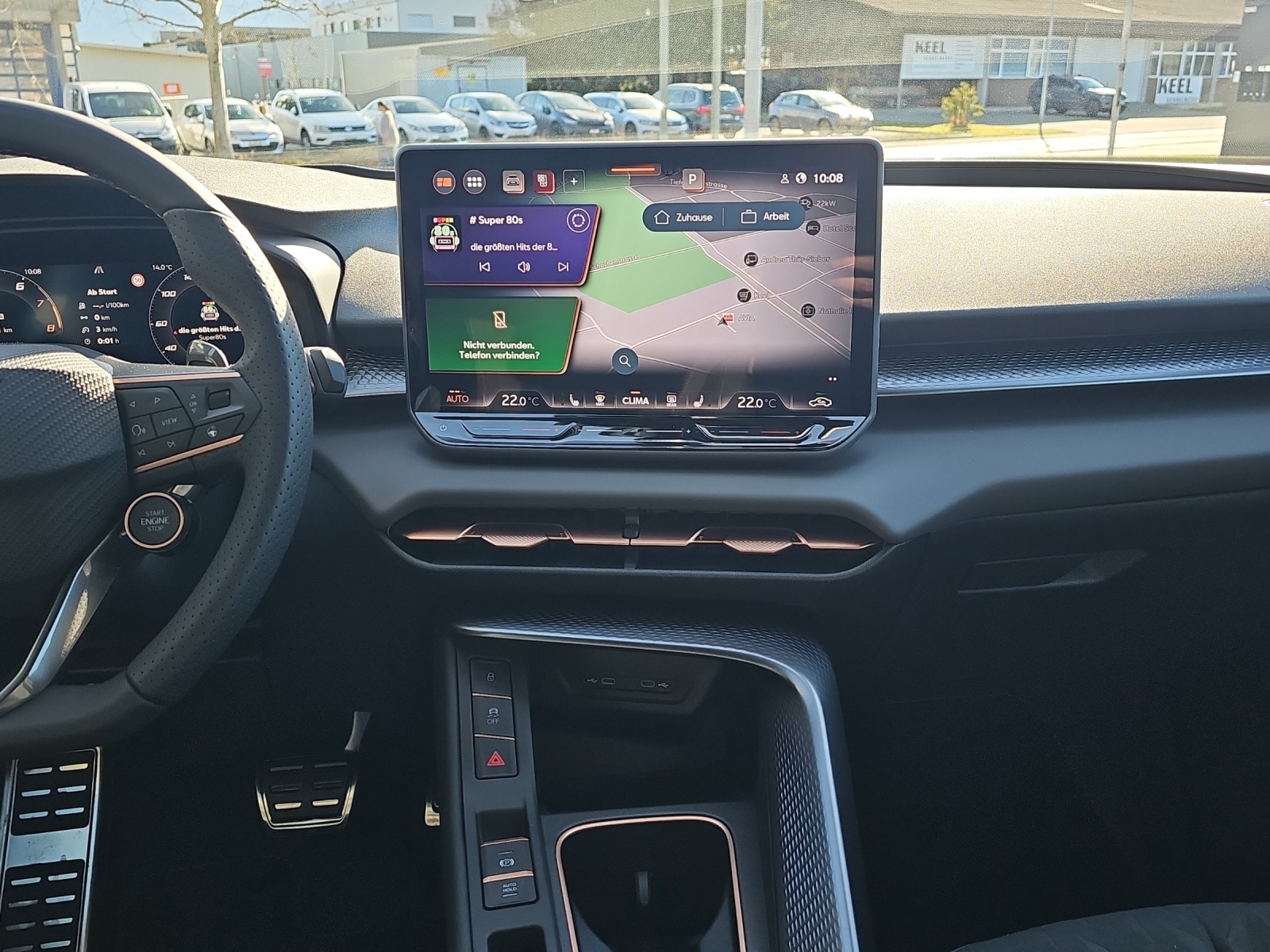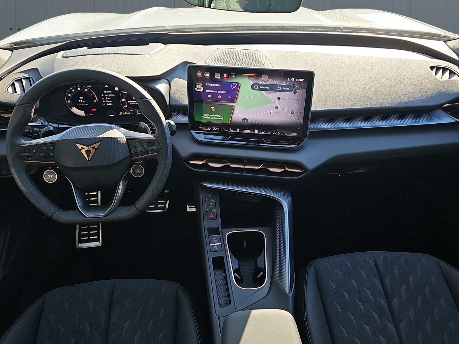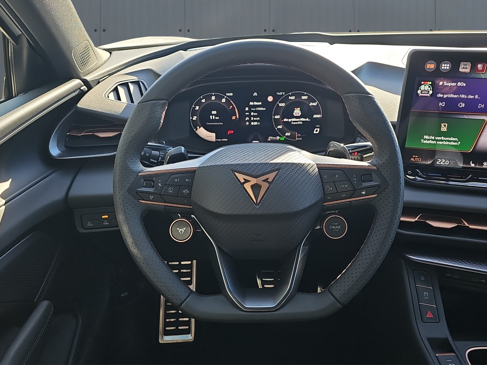 Serienausstattung 3-Punkt-Sicherheitsgurte auf allen Plätzen ABS, EBV elektronische Bremskraft-verteilung Abgedunkelte Scheiben ab B-Säule hinten Airbag: Airbag Beifahrer deaktivierbar Airbag: Airbag Fahrer und Beifahrer Airbag: Kopfairbags vorne und hinten Airbag: Seitenairbags für Fahrer und Beifahrer Alarmanlage mit Innenraumüberwachung Assist: Aufmerksamkeits- und Müdigkeitserkennung (ADA) Assist: Ausweichunterstützung / Abbiegeassistent Assist: Automatische Distanzregelung ACC Assist: City Notbremsfunktion Assist: Einparkhilfe vorne und hinten mit Rückfahrkamera Assist: Elektronische Parkbremse mit Auto Hold Funktion Assist: Lane assist (Spurhalteassistent) Assist: Multifunktionskamera Assist: Multikollisionsbremse Assist: Prädiktive Speedlimiter Assist: Traffic sign recognition (Verkehrszeichenerkennung) Assist: Umfeldüberwachungssystem "Front-Assist" Aussenspiegel elektrisch einstell-, beheiz- und einklappbar Aussenspiegel mit LED-Umfeldbeleuchtung Beleuchtete Sonnenblende links mit abdeckbarem Spiegel und Lasche, rechts mit abdeckbarem Spiegel ESC mit EBA, DSR, XDS und Reifendruckkontrolle Einstiegsleisten beleuchtet Elektrische Fensterheber vorne und hinten mit Komfortschaltung und Einklemmschutz Fahrwerk: Adaptive Fahrwerksregelung DCC Fahrwerk: CUPRA Sportfahrwerk Fahrwerk: Progressivlenkung Full Digital Cockpit 10.25" Fussmatten vorne und hinten Garantie: Cupra 12 Jahre Gewährleistung gegen Karosserie-Durchrostung Garantie: Cupra 3 Jahre Lack-Gewährleistung Garantie: Cupra Garantie 2 Jahre ohne Kilometerbegrenzung Garantie: Cupra Hersteller-Garantieverlängerung für das 3., 4. und 5. Jahr / max.100000 km Heckklappe elektrisch öffnend und schliessend "Virtual Pedal" Heckscheiben-Wisch-/Waschanlage mit Intervall Innenspiegel automatisch abblendbar Klima: 3-Zonen Climatronic mit Fondraumbedienung LED-Ambientebeleuchtung Smart Wraparound, inkl. Funktionsanzeige Lackierung: Uni-Lackierung Lenkrad: Leder Multifunktionslenkrad mit Schaltwippen, beheizbar Licht: Drittes Bremslicht Licht: Durchgehende Full LED-Heckleuchten Licht: LED Heckleuchten mit beleuchtetem 3D CUPRA Logo Licht: LED-Heckleuchten mit dynamischem Blinklicht Licht: LED-Nebelscheinwerfer mit Cornering-Funktion Licht: Leuchtweitenregulierung dynamisch Licht: Nebelschlussleuchte Media: 12,9" Infotainment (MIB3) Media: 2 USB C Anschlüsse hinten und vorne Media: CUPRA Connect Remote & Access / CUPRA Connect Safety & Services Media: CUPRA Connectivity Box Media: CUPRA Navigationssystem Media: DAB+ (Digital Audio Broadcasting) Media: IMMERSIVE by SENNHEISER Media: Mobiltelefon Freisprechanlage Bluetooth Mittelarmlehne vorne und hinten Pyrotechnische Gurtstraffer und Gurtkraftbegrenzer Räder: Alufelgen 8.5J x 19", "COSMIC" Machined in Sport Black Matt & Silver Räder: Performance Reifen Räder: Reifendruckkontrollsystem Schlüsselloses Schliess- und Startsystem (KESSY Advance) Servolenkung mit geschwindigkeitsabhängiger Lenkkraftunterstützung Sitze: 3 verstellbare Kopfstützen hinten Sitze: Geteilt abklappbare Rücksitzlehne 1/3 - 2/3 Sitze: Geteilt abklappbare Rücksitzlehne mit Mittelarmlehne Sitze: Kindersitzverankerung ISOFIX hinten Sitze: Vordersitze höhenverstellbar mit Lendenwirbelstütze Stopp - Start- und Rekuperationssystem Wegfahrsperre elektronisch Zentralverriegelung mit Funkfernbedienung, 2 Funkschlüssel