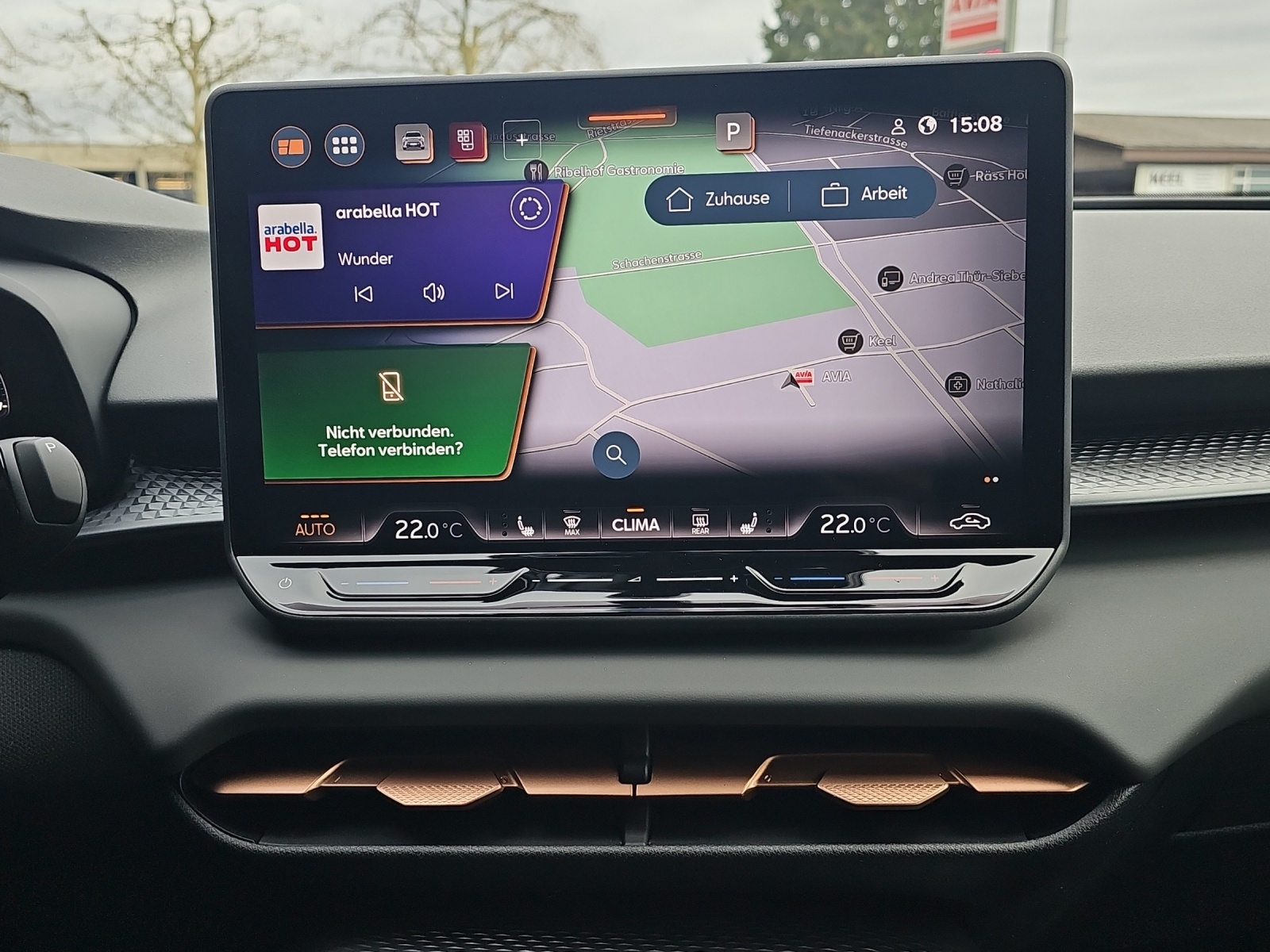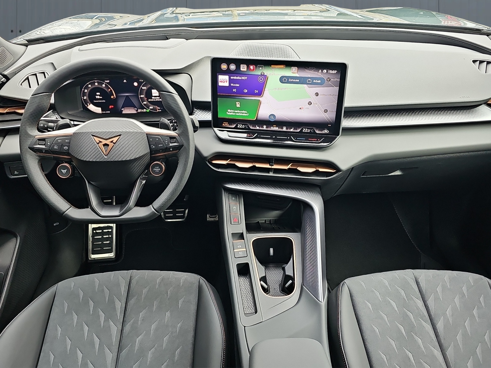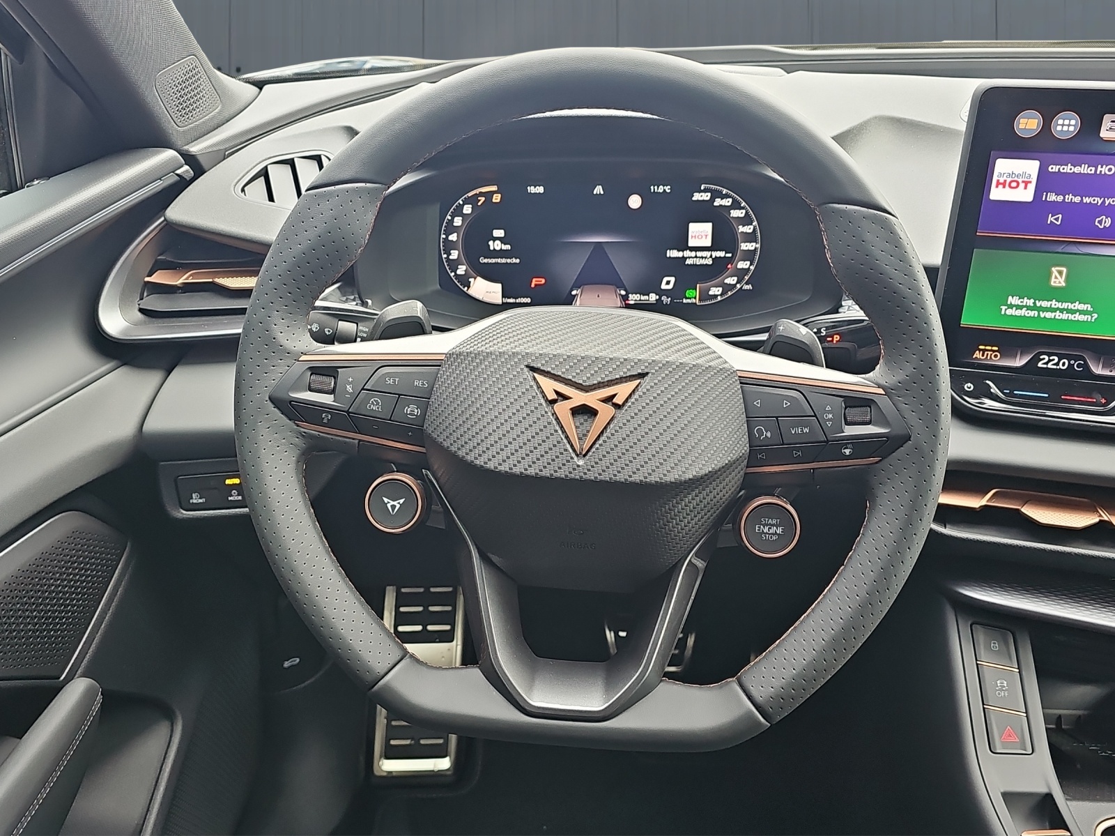 Serienausstattung 3-Punkt-Sicherheitsgurte auf allen Plätzen ABS, EBV elektronische Bremskraft-verteilung Abgedunkelte Scheiben ab B-Säule hinten Airbag: Airbag Beifahrer deaktivierbar Airbag: Airbag Fahrer und Beifahrer Airbag: Kopfairbags vorne und hinten Airbag: Seitenairbags für Fahrer und Beifahrer Alarmanlage mit Innenraumüberwachung Assist: Aufmerksamkeits- und Müdigkeitserkennung (ADA) Assist: Ausweichunterstützung / Abbiegeassistent Assist: Automatische Distanzregelung ACC Assist: City Notbremsfunktion Assist: Einparkhilfe vorne und hinten mit Rückfahrkamera Assist: Elektronische Parkbremse mit Auto Hold Funktion Assist: Lane assist (Spurhalteassistent) Assist: Multifunktionskamera Assist: Multikollisionsbremse Assist: Prädiktive Speedlimiter Assist: Traffic sign recognition (Verkehrszeichenerkennung) Assist: Umfeldüberwachungssystem "Front-Assist" Aussenspiegel elektrisch einstell-, beheiz- und einklappbar Aussenspiegel mit LED-Umfeldbeleuchtung Beleuchtete Sonnenblende links mit abdeckbarem Spiegel und Lasche, rechts mit abdeckbarem Spiegel ESC mit EBA, DSR, XDS und Reifendruckkontrolle Einstiegsleisten beleuchtet Elektrische Fensterheber vorne und hinten mit Komfortschaltung und Einklemmschutz Fahrwerk: Adaptive Fahrwerksregelung DCC Fahrwerk: CUPRA Sportfahrwerk Fahrwerk: Progressivlenkung Full Digital Cockpit 10.25" Fussmatten vorne und hinten Garantie: Cupra 12 Jahre Gewährleistung gegen Karosserie-Durchrostung Garantie: Cupra 3 Jahre Lack-Gewährleistung Garantie: Cupra Garantie 2 Jahre ohne Kilometerbegrenzung Garantie: Cupra Hersteller-Garantieverlängerung für das 3., 4. und 5. Jahr / max.100000 km Heckklappe elektrisch öffnend und schliessend "Virtual Pedal" Heckscheiben-Wisch-/Waschanlage mit Intervall Innenspiegel automatisch abblendbar Klima: 3-Zonen Climatronic mit Fondraumbedienung LED-Ambientebeleuchtung Smart Wraparound, inkl. Funktionsanzeige Lackierung: Uni-Lackierung Lenkrad: Leder Multifunktionslenkrad mit Schaltwippen, beheizbar Licht: Drittes Bremslicht Licht: Durchgehende Full LED-Heckleuchten Licht: LED Heckleuchten mit beleuchtetem 3D CUPRA Logo Licht: LED-Heckleuchten mit dynamischem Blinklicht Licht: LED-Nebelscheinwerfer mit Cornering-Funktion Licht: Leuchtweitenregulierung dynamisch Licht: Nebelschlussleuchte Media: 12,9" Infotainment (MIB3) Media: 2 USB C Anschlüsse hinten und vorne Media: CUPRA Connect Remote & Access / CUPRA Connect Safety & Services Media: CUPRA Connectivity Box Media: CUPRA Navigationssystem Media: DAB+ (Digital Audio Broadcasting) Media: IMMERSIVE by SENNHEISER Media: Mobiltelefon Freisprechanlage Bluetooth Mittelarmlehne vorne und hinten Pyrotechnische Gurtstraffer und Gurtkraftbegrenzer Räder: Alufelgen 8.5J x 19", "COSMIC" Machined in Sport Black Matt & Silver Räder: Performance Reifen Räder: Reifendruckkontrollsystem Schlüsselloses Schliess- und Startsystem (KESSY Advance) Servolenkung mit geschwindigkeitsabhängiger Lenkkraftunterstützung Sitze: 3 verstellbare Kopfstützen hinten Sitze: Geteilt abklappbare Rücksitzlehne 1/3 - 2/3 Sitze: Geteilt abklappbare Rücksitzlehne mit Mittelarmlehne Sitze: Kindersitzverankerung ISOFIX hinten Sitze: Vordersitze höhenverstellbar mit Lendenwirbelstütze Stopp - Start- und Rekuperationssystem Wegfahrsperre elektronisch Zentralverriegelung mit Funkfernbedienung, 2 Funkschlüssel