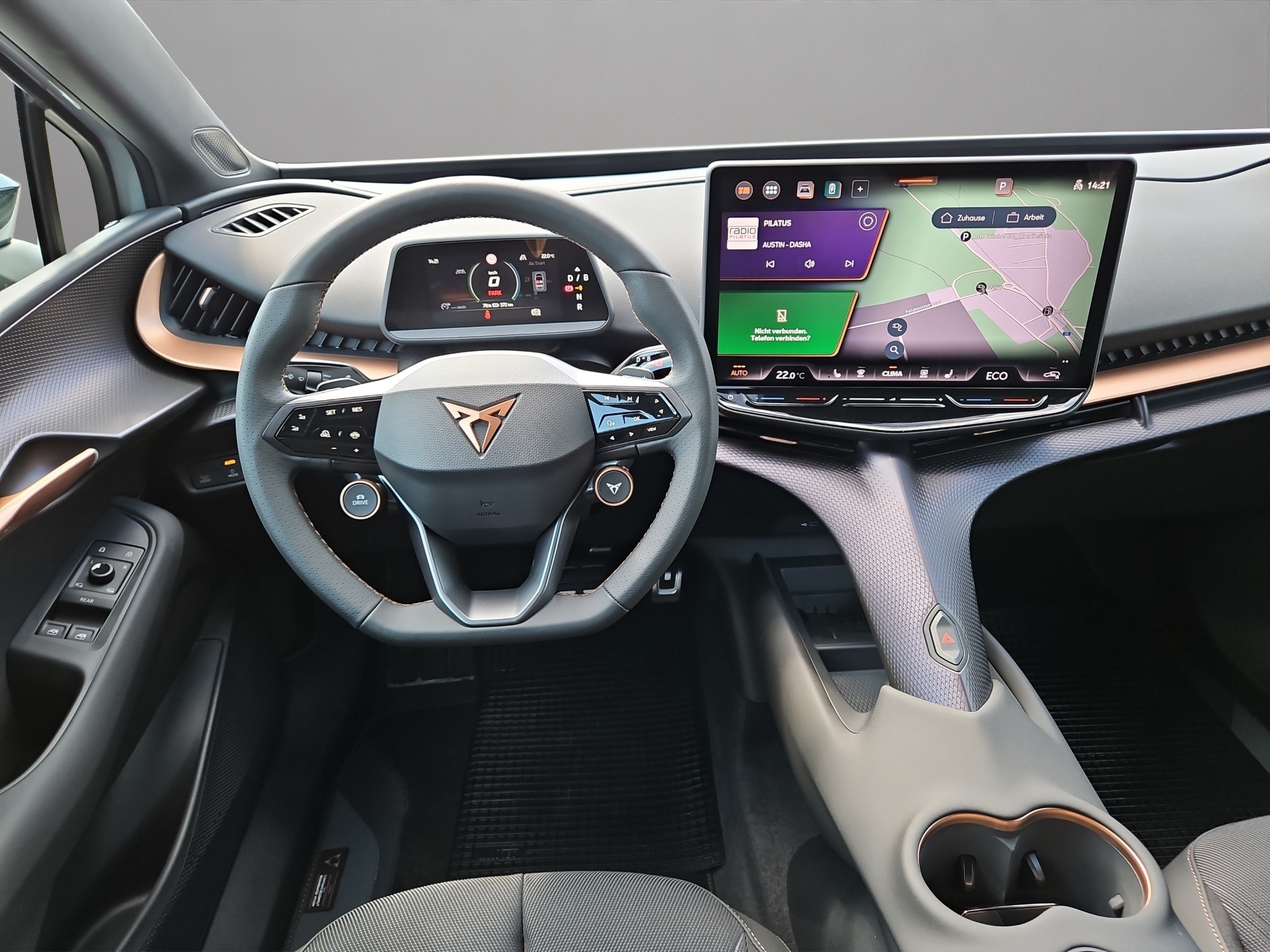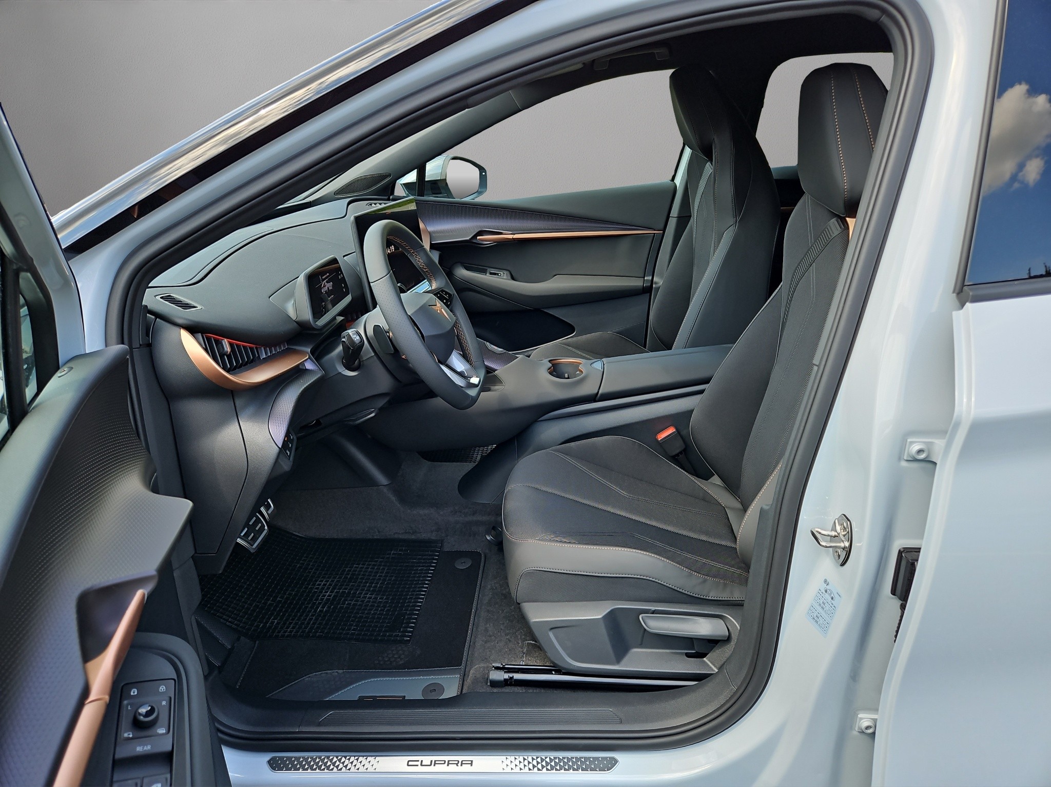 10.25" Full Digital Cockpit Abgedunkelte Scheiben ab B-Säule hinten Airbag: Airbag Beifahrer deaktivierbar Airbag: Airbag Fahrer und Beifahrer Airbag: Seitenairbags für Fahrer und Beifahrer Alarmanlage mit Innenraumüberwachung Assist: Aufmerksamkeits- und Müdigkeitserkennung (ADA) Assist: Ausweichunterstützung / Abbiegeassistent Assist: Exit Assist (Ausparkassistent) Assist: Exit Warning (Ausstiegswarner) Assist: Intelligenter Geschwindigkeitsassistent Assist: Parklenkassistent RPA (Remote Park Assist) Assist: PreCrash Sicherheitssystem Assist: Prädiktive automatische Distanzregelung ACC Assist: Regen-/Lichtsensor Assist: Side Assist (Spurwechselassistent) Assist: Traction Control (TCS) Assist: Traffic sign recognition (Verkehrszeichenerkennung) Assist: eCall Notruffunktion Aussenspiegel elektrisch einstell-, beheiz- und einklappbar Automatisch abblendender Innenrückspiegel Bidirektionales Laden (DC/AC) Dreipunkt-Automatiksicherheitsgurte auf allen Plätzen Elektrische Fensterheber vorne und hinten mit Komfortschaltung und Einklemmschutz Elektrische Lüftungsschlitze Elektronisches Stabilitäts-Programm (ESP) Fahrwerk: Adaptive Fahrwerksregelung DCC Garantie: Cupra 12 Jahre Gewährleistung gegen Karosserie-Durchrostung Garantie: Cupra 3 Jahre Lack-Gewährleistung Garantie: Cupra Garantie 2 Jahre ohne Kilometerbegrenzung Garantie: Cupra Hersteller-Garantieverlängerung für das 3., 4. und 5. Jahr / max.100000 km Getriebe: 1-Gang Automatik Heckklappe elektrisch öffnend und schliessend "Virtual Pedal" Klima: 3-Zonen Climatronic mit Fondraumbedienung LED Ambientebeleuchtung "PURE" Lackierung: Uni-Lackierung Lenkrad: Supersportlenkrad mit Drive Profile-Knopfsystem,beheizbar Licht: Drittes Bremslicht Licht: LED Heckleuchten mit beleuchtetem 3D CUPRA Logo Licht: Matrix LED Fernlicht Licht: Matrix LED Scheinwerfer Licht: Nebelschlussleuchte Media: 15" Infotainment (MIB3) Media: 2 USB C Anschlüsse hinten und vorne Media: Bluetooth-Freisprecheinrichtung Media: CUPRA Connect Online Infotainment Media: CUPRA Connect Remote & Access Media: CUPRA Connect Safety & Services Media: CUPRA Navigationssystem Media: DAB+ (Digital Audio Broadcasting) Media: Wireless Charger zur induktiven Smartphone Ladung Polster: Sitzbezüge in Stoff "Soul Black" Räder: Alufelgen 8J x 20", "Heckla" Machined Sport in Black/Silver Räder: Reifendruckkontrollsystem Schlüsselloses Schliess- und Startsystem (KESSY Advance) Servolenkung geschwindigkeitsabhängig Sitze: Geteilt abklappbare Rücksitzlehne 1/3 - 2/3 Sitze: Kindersitzbefestigungssystem ISOFIX Sitze: Kopfstützen hinten höhenverstellbar Sitze: Kopfstützen vorne (integrierte) Sitze: Sitzheizung für Vordersitze, getrennt regelbar Sitze: Vordersitze höhenverstellbar Vorbereitung für Anhängevorrichtung Wegfahrsperre elektronisch Zentralverriegelung mit Fernbedienung