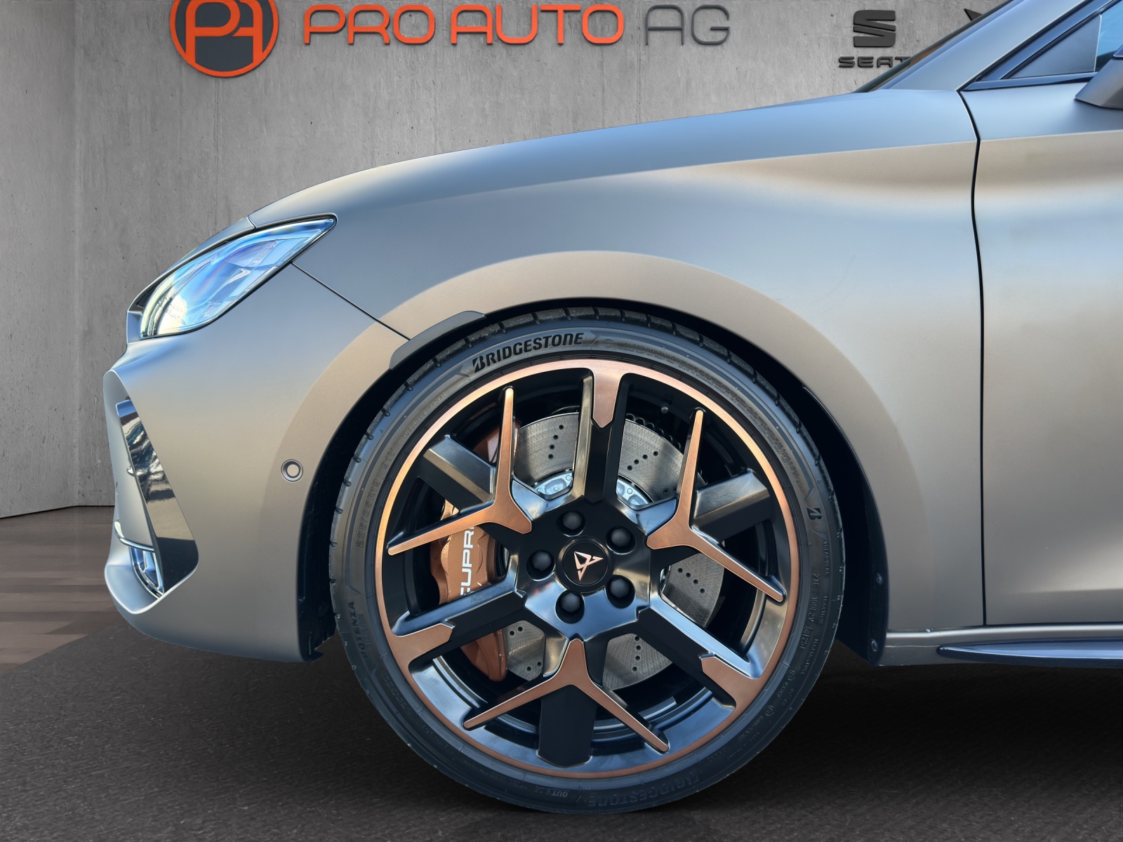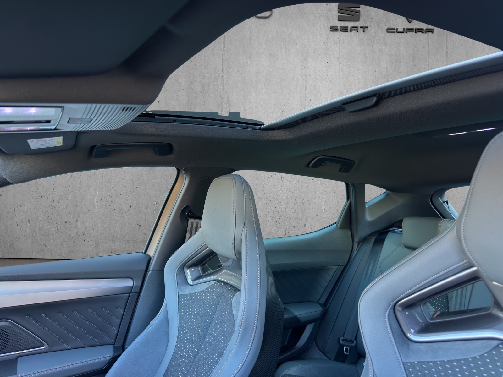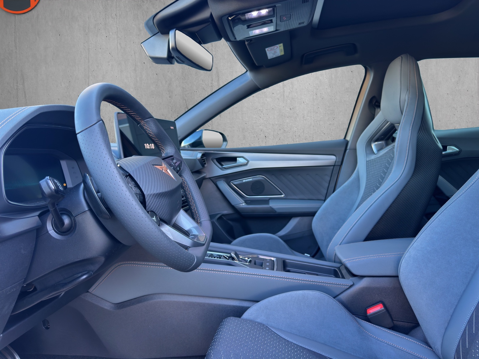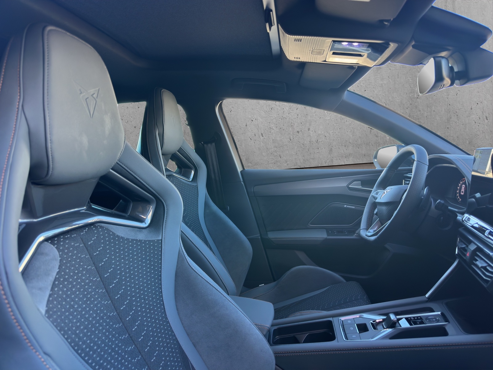 ABS, EBV elektronische Bremskraft-verteilung Abgedunkelte Scheiben ab B-Säule hinten Airbag: Airbag Beifahrer deaktivierbar Airbag: Airbag Fahrer und Beifahrer Airbag: Seitenairbags hinten, vorn mit Knieairbag Airbag: Seitenairbags vorne mit Kopfairbag und Interaktionsairbag vorne Assist: Aufmerksamkeits- und Müdigkeitserkennung (ADA) Assist: Ausweichunterstützung / Abbiegeassistent Assist: Einparkhilfe vorne und hinten Assist: Elektronische Parkbremse mit Auto Hold Funktion Assist: Lane assist (Spurhalteassistent) Assist: Multifunktionskamera Assist: Multikollisionsbremse Assist: Prädiktive Speedlimiter Assist: Regen-/Lichtsensor Assist: Traction Control (TCS) Assist: Traffic sign recognition (Verkehrszeichenerkennung) Aufhebung Höchstgeschwindigkeit 250 km/h (VMAX) Aussenspiegel elektrisch einstell-, beheiz- und einklappbar mit Memory -Funktion CUPRA Drive Profile mit "driving experience button" Comfort, Performance, Drift, Individual CUPRA Seitenschweller in "Obsidian Black" Dekor: Dekorblenden in Copper Dreipunkt-Automatiksicherheitsgurte auf allen Plätzen ESC mit EBA, DSR und Reifendruckkontrolle Elektrische Fensterheber vorne und hinten mit Komfortschaltung und Einklemmschutz Fahrwerk: Adaptive Fahrwerksregelung DCC Fahrwerk: Performance AKEBONO Bremssättel vorne und hinten Fussmatten vorne und hinten Garantie: Cupra 12 Jahre Gewährleistung gegen Karosserie-Durchrostung Garantie: Cupra 3 Jahre Lack-Gewährleistung Garantie: Cupra Garantie 2 Jahre ohne Kilometerbegrenzung Garantie: Cupra Hersteller-Garantieverlängerung für das 3., 4. und 5. Jahr / max.100000 km Innenspiegel automatisch abblendbar Klima: 3-Zonen Climatronic mit Fondraumbedienung Lackierung: Uni-Lackierung Lenkrad: Supersportlenkrad mit Start-/ Drive Profile-Knopfsystem und Schaltwippen, beheizbar Licht: Coming Leaving Home Funktion Licht: Drittes Bremslicht Licht: Durchgehende Full LED-Heckleuchten Licht: Dynamische LED-Blinker Licht: Fernlicht-Assistent Licht: LED Heckleuchten mit beleuchtetem 3D CUPRA Logo Licht: LED-Nebelscheinwerfer mit Cornering-Funktion Licht: Leuchtweitenregulierung Licht: Nebelschlussleuchte Media: 12,9" Infotainment (MIB3) Media: 2 USB C Anschlüsse hinten und vorne Media: CUPRA Connect Remote & Access Media: CUPRA Connect Safety & Services Media: CUPRA Connectivity Box Media: CUPRA Navigationssystem 12.9" Infotainment Media: DAB+ (Digital Audio Broadcasting) Media: IMMERSIVE by SENNHEISER Media: Mobiltelefon Freisprechanlage Bluetooth Pyrotechnische Gurtstraffer und Gurtkraftbegrenzer vorne Räder: Alufelgen 8J x 19", "HAILSTORM COPPER" Machined in Sport Black Copper Räder: Performance Reifen Servolenkung mit geschwindigkeitsabhängiger Lenkkraftunterstützung Sicherheitsgurtkontrolle für alle Sitze Sitze: 2 verstellbare Kopfstützen vorne und 3 hinten Sitze: CUPRA CUPBucket Sportschalensitze in Textil "Enceladus Grey" Sitze: Elektrische Sitzverstellung mit Memory-Funktion für Fahrer- und Beifahrerseite Sitze: Geteilt abklappbare Rücksitzlehne 1/3 - 2/3 Sitze: Kindersitzverankerung ISOFIX hinten Sitze: Kopfstützen vorne (integrierte) Sitze: Lendenwirbelstütze Fahrer- und Beifahrerseite elektrisch einstellbar Sitze: Mittelarmlehne hinten Sitze: Mittelarmlehne vorne Sitze: Sitzheizung für Vordersitze, getrennt regelbar Sonnenblende Fahrer und Beifahrerseite Stopp - Start- und Rekuperationssystem Wegfahrsperre elektronisch Zentralverriegelung mit Funkfernbedienung, 2 Funkschlüssel
