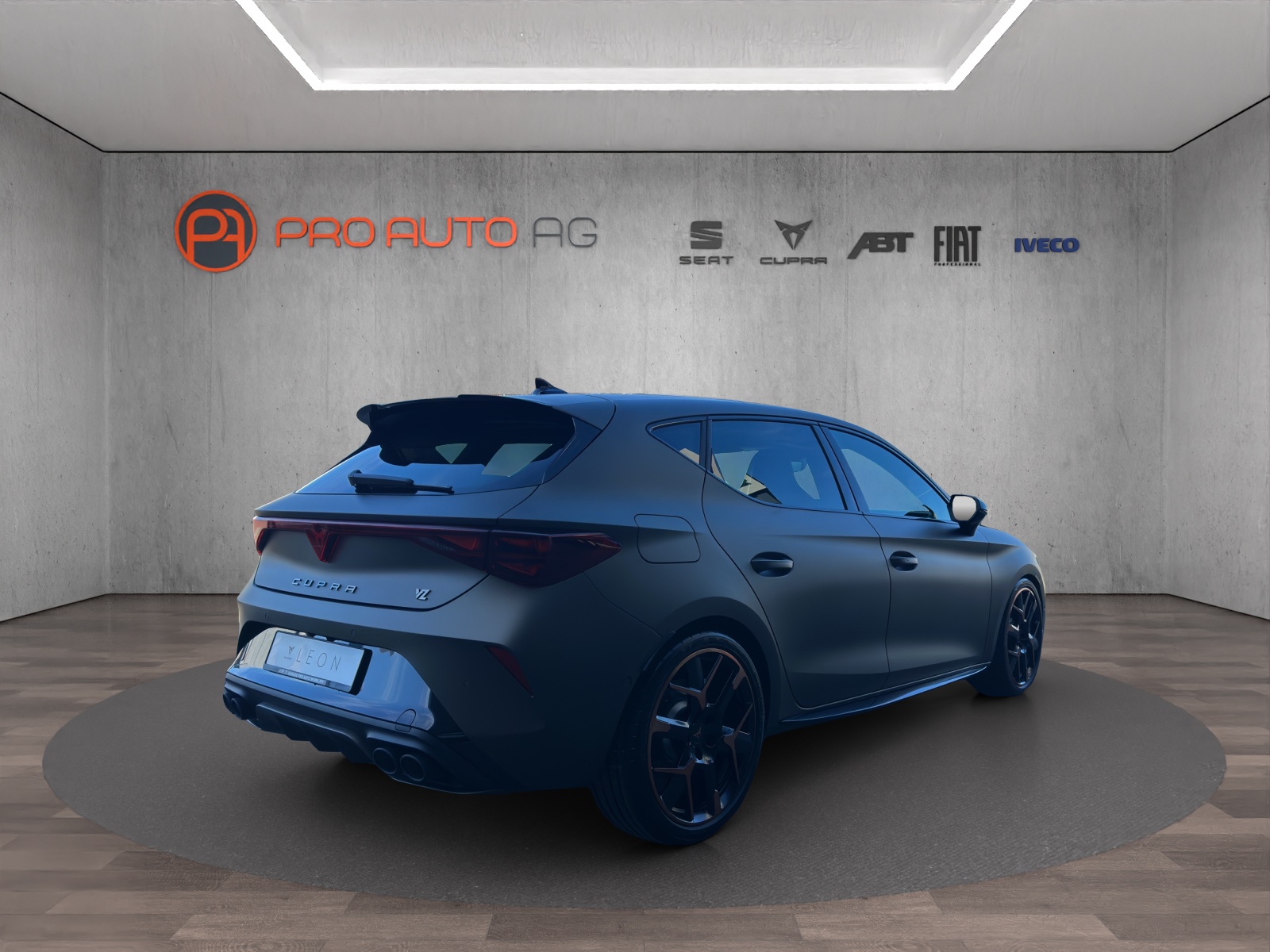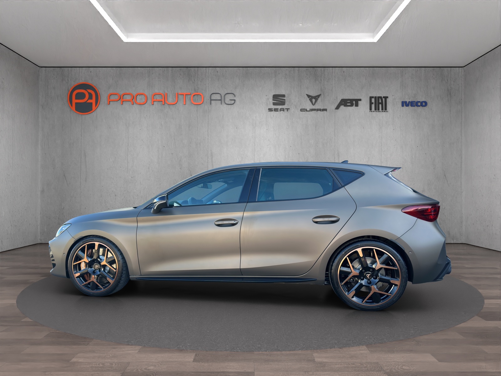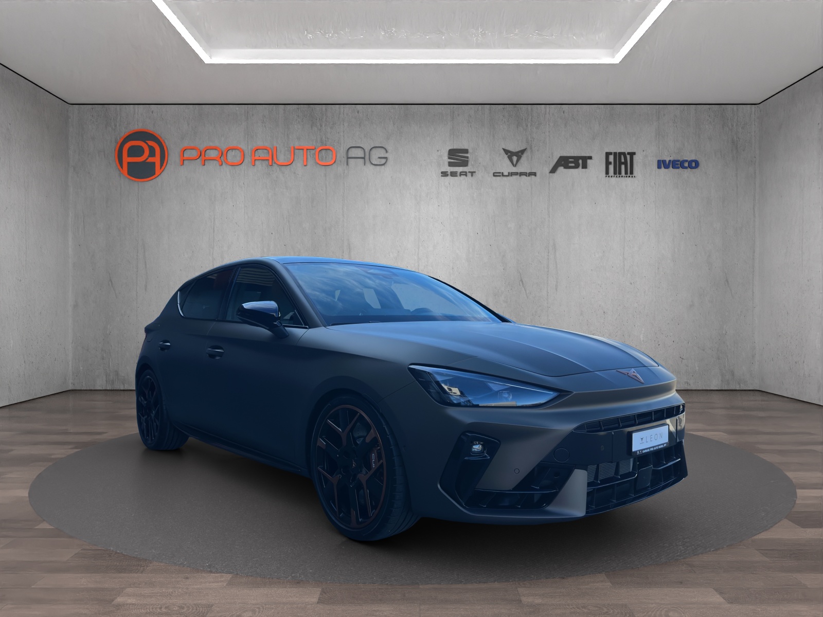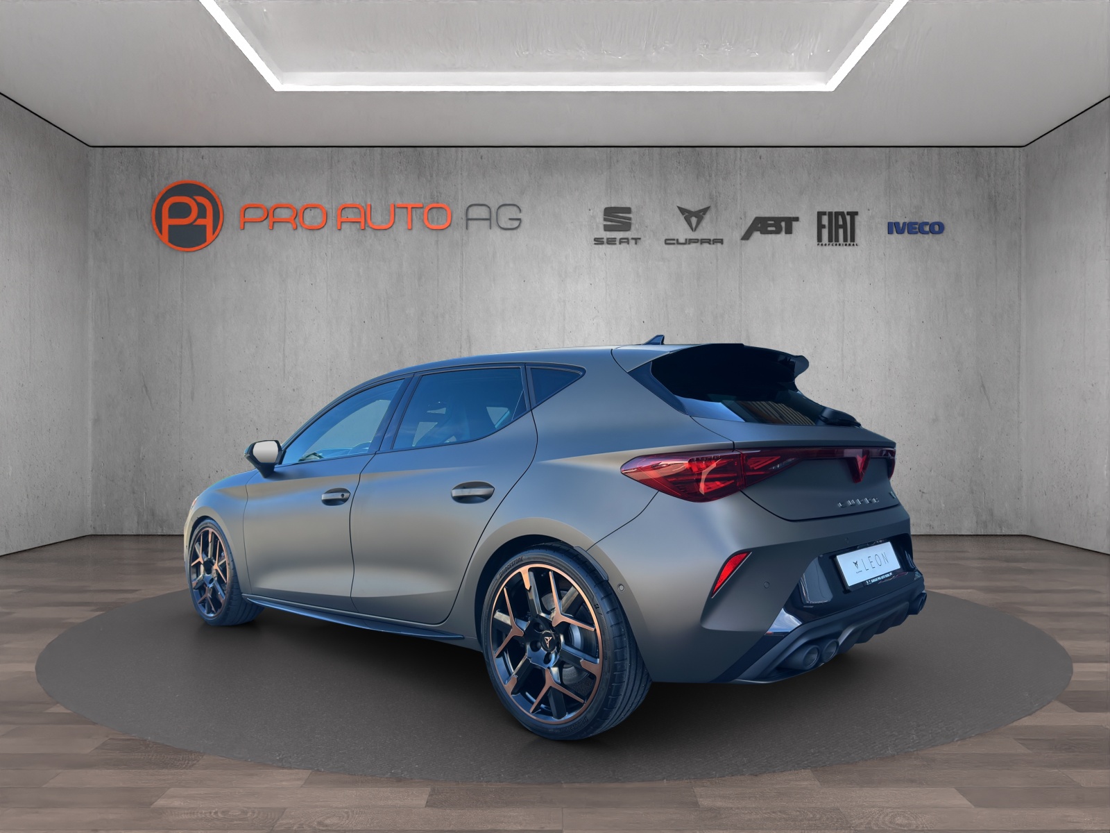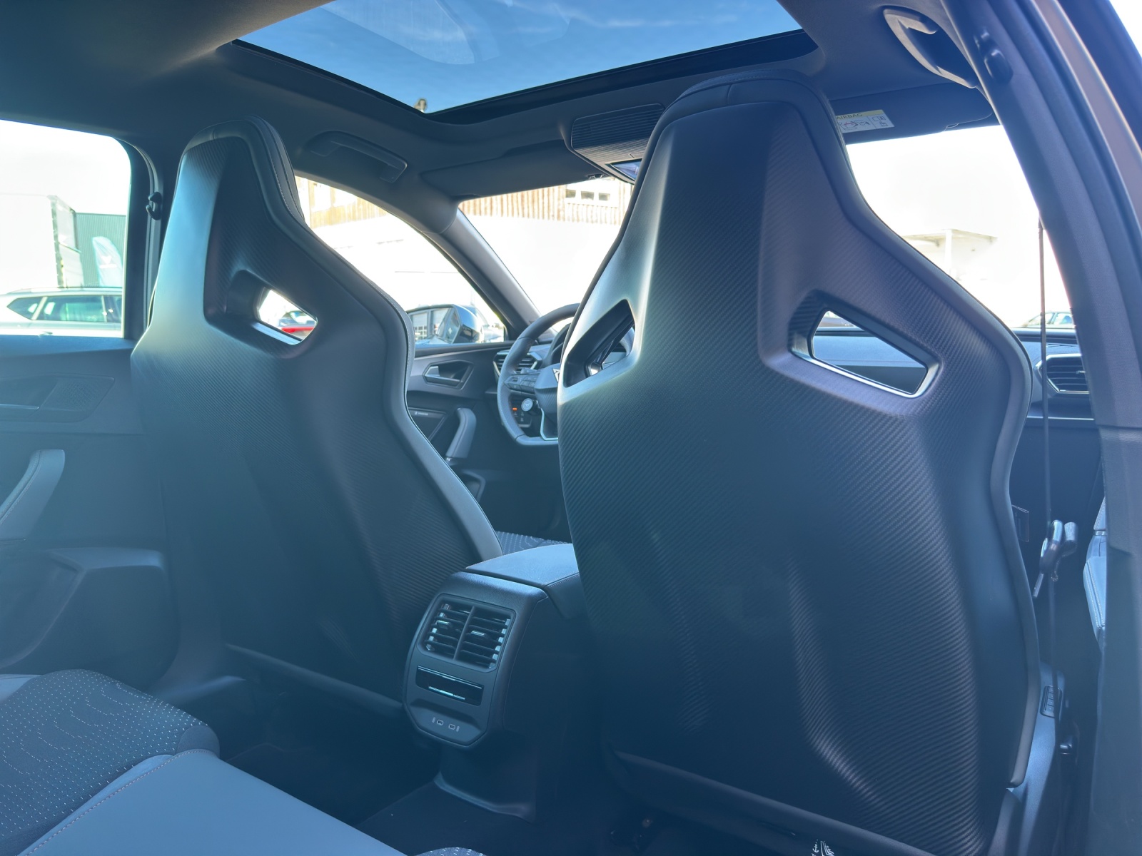 ABS, EBV elektronische Bremskraft-verteilung Abgedunkelte Scheiben ab B-Säule hinten Airbag: Airbag Beifahrer deaktivierbar Airbag: Airbag Fahrer und Beifahrer Airbag: Seitenairbags hinten, vorn mit Knieairbag Airbag: Seitenairbags vorne mit Kopfairbag und Interaktionsairbag vorne Assist: Aufmerksamkeits- und Müdigkeitserkennung (ADA) Assist: Ausweichunterstützung / Abbiegeassistent Assist: Einparkhilfe vorne und hinten Assist: Elektronische Parkbremse mit Auto Hold Funktion Assist: Lane assist (Spurhalteassistent) Assist: Multifunktionskamera Assist: Multikollisionsbremse Assist: Prädiktive Speedlimiter Assist: Regen-/Lichtsensor Assist: Traction Control (TCS) Assist: Traffic sign recognition (Verkehrszeichenerkennung) Aufhebung Höchstgeschwindigkeit 250 km/h (VMAX) Aussenspiegel elektrisch einstell-, beheiz- und einklappbar mit Memory -Funktion CUPRA Drive Profile mit "driving experience button" Comfort, Performance, Drift, Individual CUPRA Seitenschweller in "Obsidian Black" Dekor: Dekorblenden in Copper Dreipunkt-Automatiksicherheitsgurte auf allen Plätzen ESC mit EBA, DSR und Reifendruckkontrolle Elektrische Fensterheber vorne und hinten mit Komfortschaltung und Einklemmschutz Fahrwerk: Adaptive Fahrwerksregelung DCC Fahrwerk: Performance AKEBONO Bremssättel vorne und hinten Fussmatten vorne und hinten Garantie: Cupra 12 Jahre Gewährleistung gegen Karosserie-Durchrostung Garantie: Cupra 3 Jahre Lack-Gewährleistung Garantie: Cupra Garantie 2 Jahre ohne Kilometerbegrenzung Garantie: Cupra Hersteller-Garantieverlängerung für das 3., 4. und 5. Jahr / max.100000 km Innenspiegel automatisch abblendbar Klima: 3-Zonen Climatronic mit Fondraumbedienung Lackierung: Uni-Lackierung Lenkrad: Supersportlenkrad mit Start-/ Drive Profile-Knopfsystem und Schaltwippen, beheizbar Licht: Coming Leaving Home Funktion Licht: Drittes Bremslicht Licht: Durchgehende Full LED-Heckleuchten Licht: Dynamische LED-Blinker Licht: Fernlicht-Assistent Licht: LED Heckleuchten mit beleuchtetem 3D CUPRA Logo Licht: LED-Nebelscheinwerfer mit Cornering-Funktion Licht: Leuchtweitenregulierung Licht: Nebelschlussleuchte Media: 12,9" Infotainment (MIB3) Media: 2 USB C Anschlüsse hinten und vorne Media: CUPRA Connect Remote & Access Media: CUPRA Connect Safety & Services Media: CUPRA Connectivity Box Media: CUPRA Navigationssystem 12.9" Infotainment Media: DAB+ (Digital Audio Broadcasting) Media: IMMERSIVE by SENNHEISER Media: Mobiltelefon Freisprechanlage Bluetooth Pyrotechnische Gurtstraffer und Gurtkraftbegrenzer vorne Räder: Alufelgen 8J x 19", "HAILSTORM COPPER" Machined in Sport Black Copper Räder: Performance Reifen Servolenkung mit geschwindigkeitsabhängiger Lenkkraftunterstützung Sicherheitsgurtkontrolle für alle Sitze Sitze: 2 verstellbare Kopfstützen vorne und 3 hinten Sitze: CUPRA CUPBucket Sportschalensitze in Textil "Enceladus Grey" Sitze: Elektrische Sitzverstellung mit Memory-Funktion für Fahrer- und Beifahrerseite Sitze: Geteilt abklappbare Rücksitzlehne 1/3 - 2/3 Sitze: Kindersitzverankerung ISOFIX hinten Sitze: Kopfstützen vorne (integrierte) Sitze: Lendenwirbelstütze Fahrer- und Beifahrerseite elektrisch einstellbar Sitze: Mittelarmlehne hinten Sitze: Mittelarmlehne vorne Sitze: Sitzheizung für Vordersitze, getrennt regelbar Sonnenblende Fahrer und Beifahrerseite Stopp - Start- und Rekuperationssystem Wegfahrsperre elektronisch Zentralverriegelung mit Funkfernbedienung, 2 Funkschlüssel
