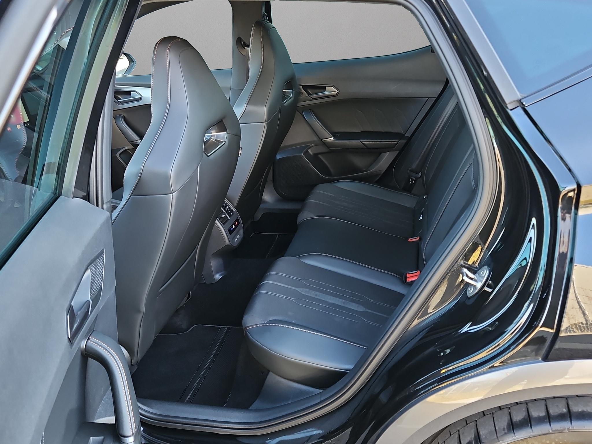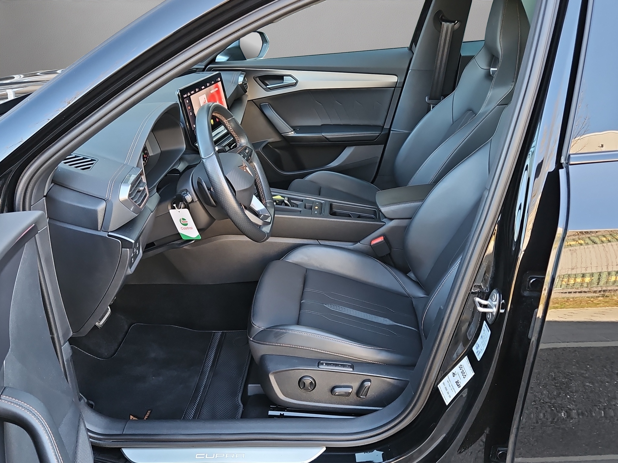 230-Volt Steckdose im Kofferraum und 12-Volt Steckdose in der Mittelkonsole ABS, EBV elektronische Bremskraft-verteilung Abgedunkelte Scheiben ab B-Säule hinten Airbag: Airbag Beifahrer deaktivierbar Airbag: Airbag Fahrer und Beifahrer Airbag: Kopfairbags vorne und hinten Airbag: Seitenairbags für Fahrer und Beifahrer Assist: City Notbremsfunktion Assist: Elektronische Parkbremse mit Auto Hold Funktion Assist: Multifunktionskamera Assist: Multikollisionsbremse Assist: Parklenkassistent Assist: PreCrash Sicherheitssystem Assist: Regen-/Lichtsensor Assist: Tiredness detection (Müdigkeitserkennung) Assist: Umfeldbeobachtung Front-Assist Aussenspiegel elektrisch einstell-, beheiz- und einklappbar Aussenspiegel mit Beifahrerspiegelabsenkung Aussenspiegel mit LED-Umfeldbeleuchtung Automatisch abblendender Innenrückspiegel Beleuchtete Sonnenblende links mit abdeckbarem Spiegel und Lasche, rechts mit abdeckbarem Spiegel CUPRA Drive Profile mit "driving experience button" Comfort, Sport, CUPRA, Individual, Snow, Offroad Dreipunkt-Automatiksicherheitsgurte auf allen Plätzen ESC mit EBA, DSR, XDS und Reifendruckkontrolle Elektrische Fensterheber vorne und hinten mit Komfortschaltung und Einklemmschutz Fahrwerk: Adaptive Fahrwerksregelung DCC Fahrwerk: Progressivlenkung Fussmatten vorne und hinten Garantie: Cupra 12 Jahre Gewährleistung gegen Karosserie-Durchrostung Garantie: Cupra 3 Jahre Lack-Gewährleistung Garantie: Cupra Garantie 2 Jahre ohne Kilometerbegrenzung Heckscheiben-Wisch-/Waschanlage mit Intervall Kindersitzverankerung ISOFIX (äussere Plätze hinten) Klima: 3-Zonen Climatronic mit Fondraumbedienung LED-Innenraumbeleuchtung mit Ambientebeleuchtung Wraparound Lackierung: Uni-Lackierung Lenkrad: Supersportlenkrad mit Start-/ Drive Profile-Knopfsystem und Schaltwippen, beheizbar Licht: Coming-home-Funktion Licht: Durchgehende Full LED-Heckleuchten Licht: LED-Heckleuchten mit dynamischem Blinklicht Licht: LED-Nebelscheinwerfer mit Cornering-Funktion Licht: LED-Scheinwerfer für Abblend- und Fernlicht Licht: Leuchtweitenregulierung dynamisch Media: 12" 3D Infotainment (MIB3) Media: 2 USB C Anschlüsse hinten und vorne Media: CUPRA Connect Online Infotainment für Navigationssystem Media: CUPRA Connect Remote & Access für Navigationssystem Media: CUPRA Navigationssystem Media: DAB+ (Digital Audio Broadcasting) Media: Kartenmaterial ''Europa'' Media: Mobiltelefon Freisprechanlage Bluetooth Mittelarmlehne vorne und hinten Paket: Fahrerassistenzpaket XL für Navigationssystem Pyrotechnische Gurtstraffer und Gurtkraftbegrenzer Räder: Alufelgen 8J x 19", "EXCLUSIVE" 38/3 Machined Black Matt / Silver Räder: Ersatzrad platzsparend Räder: Reifendruck-Kontrollanzeige Schlüsselloses Schliess- und Startsystem (KESSY) Servolenkung mit geschwindigkeitsabhängiger Lenkkraftunterstützung Sitze: 2 verstellbare Kopfstützen vorne und 3 hinten Sitze: CUPRA Sport Schalensitze in "Sharp Textil schwarz" Sitze: Easy Backseat Release (Rücksitzentriegelung im Kofferraum) Sitze: Geteilt abklappbare Rücksitzlehne 1/3 - 2/3 Sitze: Vordersitze höhenverstellbar mit Lendenwirbelstütze Sportauspuffanlage mit 4-fach Endrohr Stopp - Start- und Rekuperationssystem Wegfahrsperre elektronisch Zentralverriegelung mit Funkfernbedienung, 2 Funkschlüssel