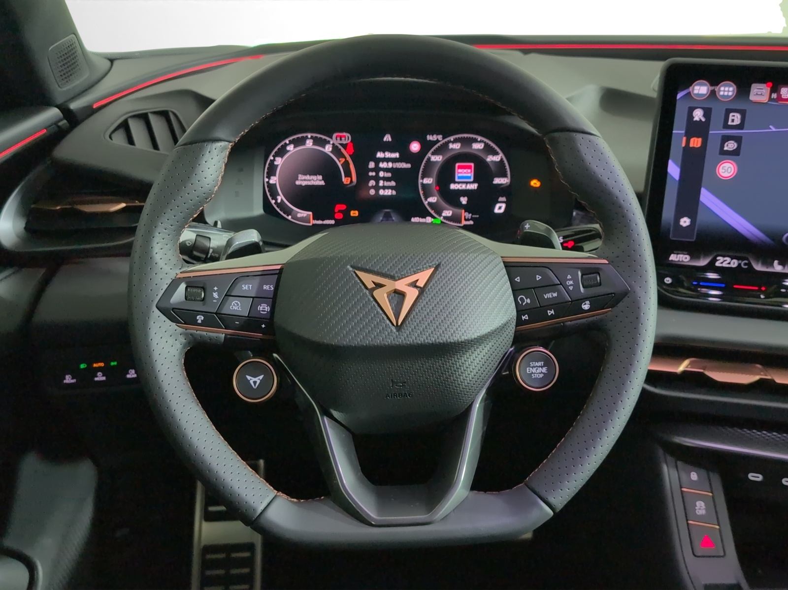Serienausstattung 3-Punkt-Sicherheitsgurte auf allen Plätzen ABS, EBV elektronische Bremskraft-verteilung Airbag: Airbag Beifahrer deaktivierbar Airbag: Airbag Fahrer und Beifahrer Airbag: Kopfairbags vorne und hinten Airbag: Seitenairbags für Fahrer und Beifahrer Assist: Aufmerksamkeits- und Müdigkeitserkennung (ADA) Assist: Ausweichunterstützung / Abbiegeassistent Assist: City Notbremsfunktion Assist: Einparkhilfe vorne und hinten mit Rückfahrkamera Assist: Elektronische Parkbremse mit Auto Hold Funktion Assist: Lane assist (Spurhalteassistent) Assist: Multifunktionskamera Assist: Multikollisionsbremse Assist: Prädiktive Speedlimiter Assist: Traffic sign recognition (Verkehrszeichenerkennung) Assist: Umfeldüberwachungssystem "Front-Assist" Aussenspiegel mit LED-Umfeldbeleuchtung Beleuchtete Sonnenblende links mit abdeckbarem Spiegel und Lasche, rechts mit abdeckbarem Spiegel ESC mit EBA, DSR, XDS und Reifendruckkontrolle Elektrische Fensterheber vorne und hinten mit Komfortschaltung und Einklemmschutz Fahrwerk: CUPRA Sportfahrwerk Fahrwerk: Progressivlenkung Full Digital Cockpit 10.25" Fussmatten vorne und hinten Garantie: Cupra 12 Jahre Gewährleistung gegen Karosserie-Durchrostung Garantie: Cupra 3 Jahre Lack-Gewährleistung Garantie: Cupra Garantie 2 Jahre ohne Kilometerbegrenzung Garantie: Cupra Hersteller-Garantieverlängerung für das 3., 4. und 5. Jahr / max.100000 km Heckscheiben-Wisch-/Waschanlage mit Intervall Innenspiegel automatisch abblendbar Lackierung: Uni-Lackierung Licht: Drittes Bremslicht Licht: Durchgehende Full LED-Heckleuchten Licht: LED Heckleuchten mit beleuchtetem 3D CUPRA Logo Licht: LED-Heckleuchten mit dynamischem Blinklicht Licht: LED-Nebelscheinwerfer mit Cornering-Funktion Licht: LED-Scheinwerfer für Abblend- und Fernlicht Licht: Leuchtweitenregulierung dynamisch Licht: Nebelschlussleuchte Media: 12,9" Infotainment (MIB3) Media: 2 USB C Anschlüsse hinten und vorne Media: CUPRA Connect Remote & Access / CUPRA Connect Safety & Services Media: CUPRA Connectivity Box Media: CUPRA Navigationssystem Media: DAB+ (Digital Audio Broadcasting) Media: Mobiltelefon Freisprechanlage Bluetooth Mittelarmlehne vorne und hinten Pyrotechnische Gurtstraffer und Gurtkraftbegrenzer Räder: Alufelgen 8J x 18", "ATOMIC DARK" Machined in Dark Shadow Räder: Reifendruckkontrollsystem Servolenkung mit geschwindigkeitsabhängiger Lenkkraftunterstützung Sitze: 3 verstellbare Kopfstützen hinten Sitze: Geteilt abklappbare Rücksitzlehne 1/3 - 2/3 Sitze: Kindersitzverankerung ISOFIX hinten Sitze: Vordersitze höhenverstellbar mit Lendenwirbelstütze Stopp - Start- und Rekuperationssystem Wegfahrsperre elektronisch Zentralverriegelung mit Funkfernbedienung, 2 Funkschlüssel