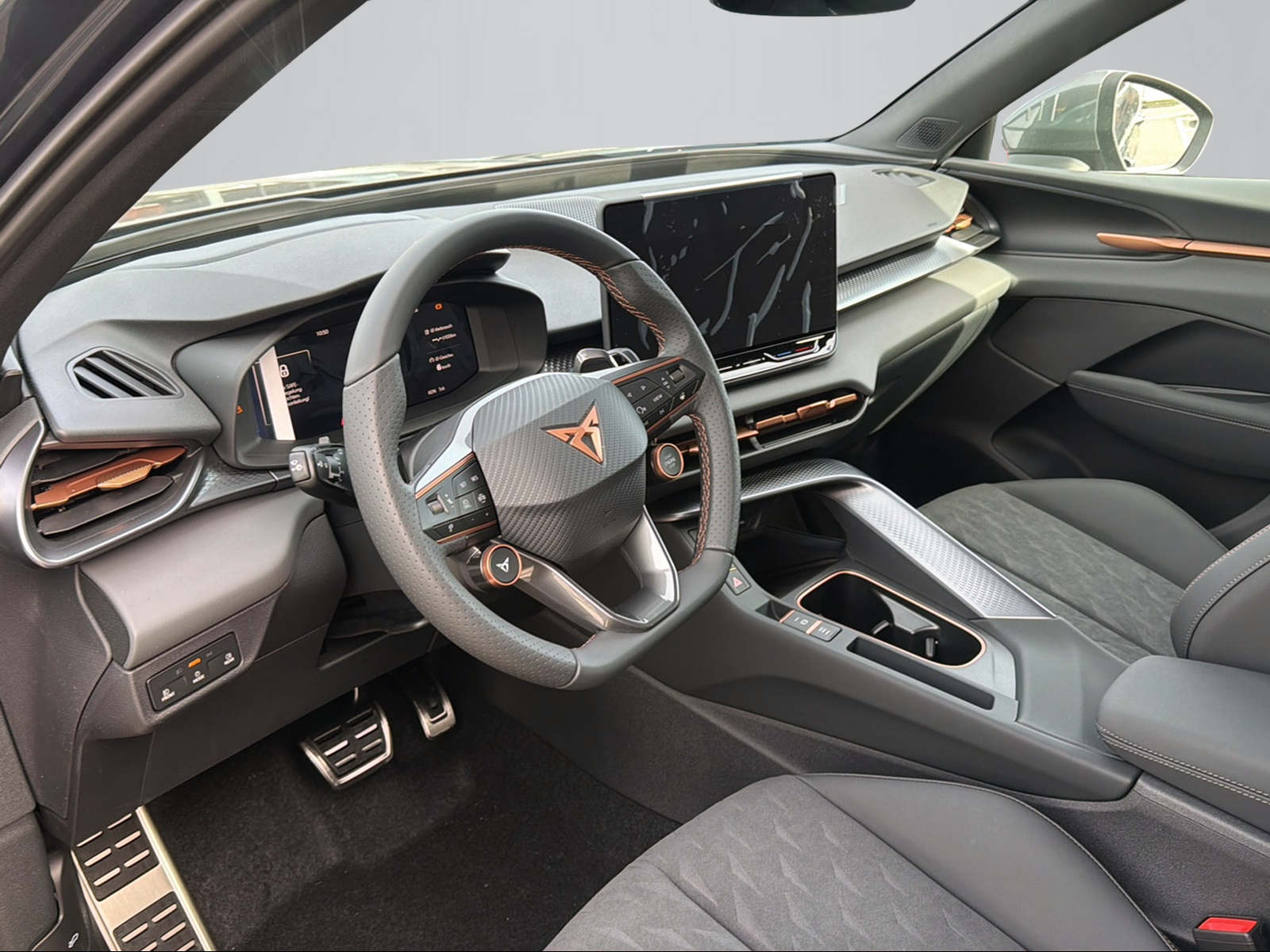 3-Punkt-Sicherheitsgurte auf allen Plätzen ABS, EBV elektronische Bremskraft-verteilung Airbag: Airbag Beifahrer deaktivierbar Airbag: Airbag Fahrer und Beifahrer Airbag: Kopfairbags vorne und hinten Airbag: Seitenairbags für Fahrer und Beifahrer Assist: Aufmerksamkeits- und Müdigkeitserkennung (ADA) Assist: Ausweichunterstützung / Abbiegeassistent Assist: City Notbremsfunktion Assist: Einparkhilfe vorne und hinten mit Rückfahrkamera Assist: Elektronische Parkbremse mit Auto Hold Funktion Assist: Lane assist (Spurhalteassistent) Assist: Multifunktionskamera Assist: Multikollisionsbremse Assist: Prädiktive Speedlimiter Assist: Traffic sign recognition (Verkehrszeichenerkennung) Assist: Umfeldüberwachungssystem "Front-Assist" Aussenspiegel mit LED-Umfeldbeleuchtung Beleuchtete Sonnenblende links mit abdeckbarem Spiegel und Lasche, rechts mit abdeckbarem Spiegel Capteur de pluie et lumière ESC mit EBA, DSR, XDS und Reifendruckkontrolle Elektrische Fensterheber vorne und hinten mit Komfortschaltung und Einklemmschutz Fahrwerk: CUPRA Sportfahrwerk Fahrwerk: Progressivlenkung Full Digital Cockpit 10.25" Fussmatten vorne und hinten Garantie: CUPRA Prolongation de garantie constructeur pour les 3ème, 4ème et 5ème années / Garantie: Cupra 12 ans de garantie contre perforation de la carrosserie Garantie: Cupra 2 ans de garantie, kilométrage illimité Garantie: Cupra 3 ans de garantie pour la peinture Heckscheiben-Wisch-/Waschanlage mit Intervall Lackierung: Uni-Lackierung Licht: Drittes Bremslicht Licht: Durchgehende Full LED-Heckleuchten Licht: LED Heckleuchten mit beleuchtetem 3D CUPRA Logo Licht: LED-Heckleuchten mit dynamischem Blinklicht Licht: LED-Nebelscheinwerfer mit Cornering-Funktion Licht: LED-Scheinwerfer für Abblend- und Fernlicht Licht: Leuchtweitenregulierung dynamisch Licht: Nebelschlussleuchte Media: 12,9" Infotainment (MIB3) Media: 2 USB C Anschlüsse hinten und vorne Media: CUPRA Navigationssystem Media: DAB+ (Digital Audio Broadcasting) Media: Mobiltelefon Freisprechanlage Bluetooth Mittelarmlehne vorne und hinten Mèdias: CUPRA Connect Remote & Access / CUPRA Connect Safety & Services Mèdias: CUPRA Connectivity Box Pyrotechnische Gurtstraffer und Gurtkraftbegrenzer Roues: Alufelgen 8J x 18", "ATOMIC" usiné en Dark Shadow Räder: Reifendruckkontrollsystem Rétroviseur intérieur photochromatique automatique Servolenkung mit geschwindigkeitsabhängiger Lenkkraftunterstützung Sitze: 3 verstellbare Kopfstützen hinten Sitze: Geteilt abklappbare Rücksitzlehne 1/3 - 2/3 Sitze: Kindersitzverankerung ISOFIX hinten Sitze: Vordersitze höhenverstellbar mit Lendenwirbelstütze Stopp - Start- und Rekuperationssystem Wegfahrsperre elektronisch Zentralverriegelung mit Funkfernbedienung, 2 Funkschlüssel