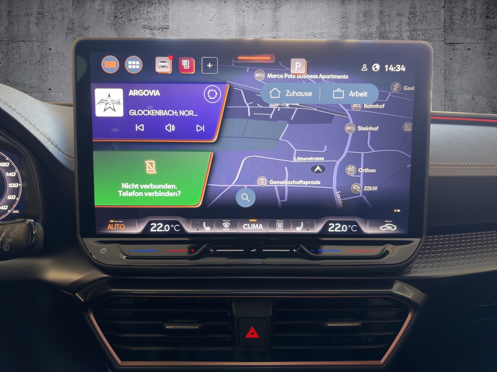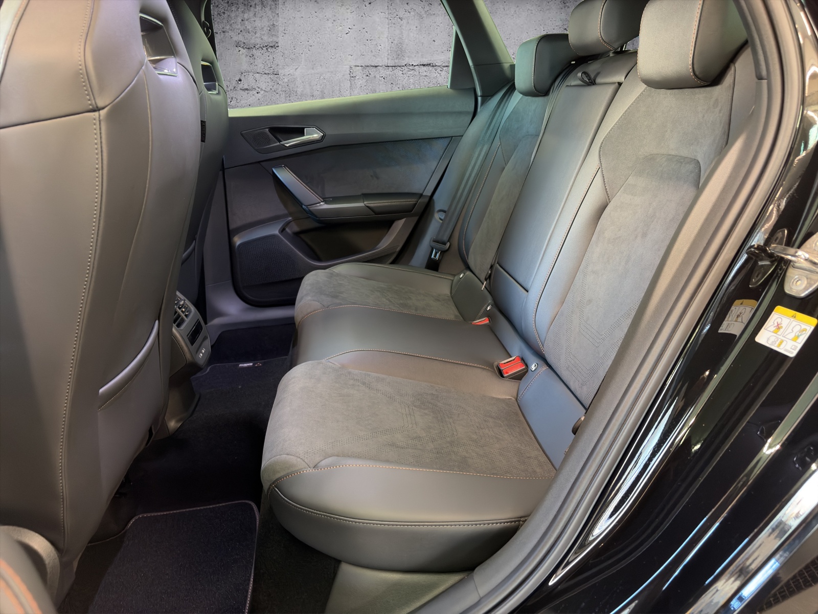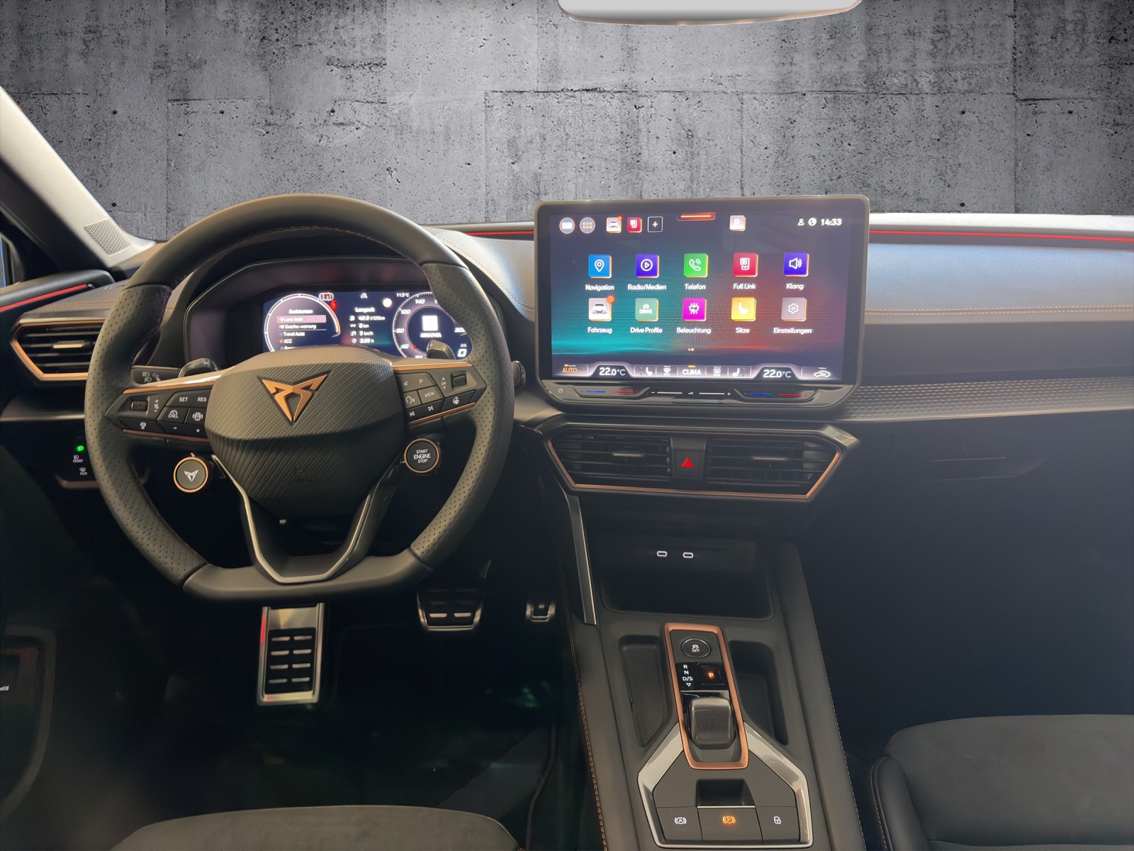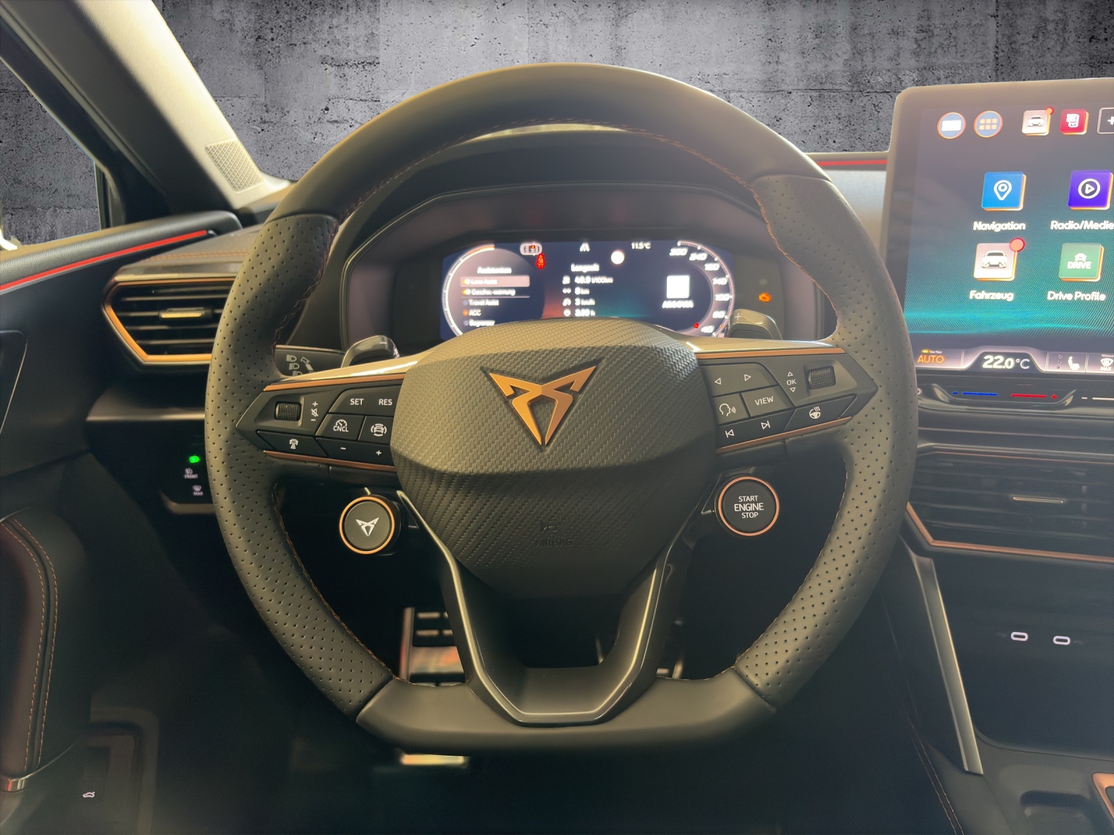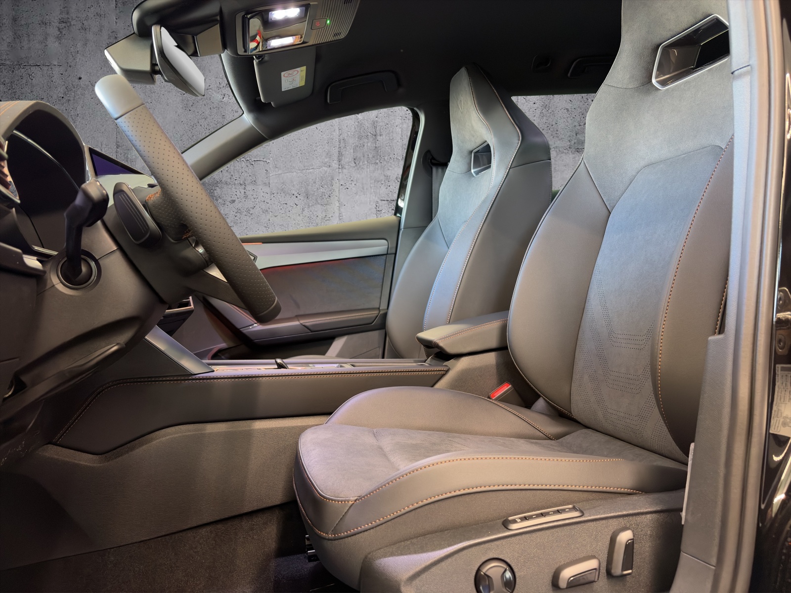 ABS, EBV elektronische Bremskraft-verteilung Abgedunkelte Scheiben ab B-Säule hinten Airbag: Airbag Beifahrer deaktivierbar Airbag: Airbag Fahrer und Beifahrer Airbag: Seitenairbags vorne mit Kopfairbag und Interaktionsairbag vorne Assist: Aufmerksamkeits- und Müdigkeitserkennung (ADA) Assist: Ausweichunterstützung / Abbiegeassistent Assist: Einparkhilfe vorne und hinten Assist: Elektronische Parkbremse mit Auto Hold Funktion Assist: Lane assist (Spurhalteassistent) Assist: Multifunktionskamera Assist: Multikollisionsbremse Assist: Prädiktive Speedlimiter Assist: Regen-/Lichtsensor Assist: Traction Control (TCS) Assist: Traffic sign recognition (Verkehrszeichenerkennung) CUPRA Drive Profile mit "driving experience button" Comfort, Performance, Drift, Individual Dekor: Dekorblenden in Copper Dreipunkt-Automatiksicherheitsgurte auf allen Plätzen ESC mit EBA, DSR und Reifendruckkontrolle Elektrische Fensterheber vorne und hinten mit Komfortschaltung und Einklemmschutz Fussmatten vorne und hinten Garantie: Cupra 12 Jahre Gewährleistung gegen Karosserie-Durchrostung Garantie: Cupra 3 Jahre Lack-Gewährleistung Garantie: Cupra Garantie 2 Jahre ohne Kilometerbegrenzung Garantie: Cupra Hersteller-Garantieverlängerung für das 3., 4. und 5. Jahr / max.100000 km Heckscheiben-Wisch-/Waschanlage mit Intervall Innenspiegel automatisch abblendbar Klima: 3-Zonen Climatronic mit Fondraumbedienung Lackierung: Uni-Lackierung Lenkrad: Supersportlenkrad mit Start-/ Drive Profile-Knopfsystem und Schaltwippen, beheizbar Licht: Coming Leaving Home Funktion Licht: Drittes Bremslicht Licht: Durchgehende Full LED-Heckleuchten Licht: Dynamische LED-Blinker Licht: Fernlicht-Assistent Licht: LED Heckleuchten mit beleuchtetem 3D CUPRA Logo Licht: LED-Nebelscheinwerfer mit Cornering-Funktion Licht: LED-Scheinwerfer für Abblend- und Fernlicht Licht: Leuchtweitenregulierung Licht: Nebelschlussleuchte Media: 12,9" Infotainment (MIB3) Media: 2 USB C Anschlüsse hinten und vorne Media: CUPRA Connect Remote & Access Media: CUPRA Connect Safety & Services Media: CUPRA Connectivity Box Media: CUPRA Navigationssystem 12.9" Infotainment Media: DAB+ (Digital Audio Broadcasting) Media: Mobiltelefon Freisprechanlage Bluetooth Pyrotechnische Gurtstraffer und Gurtkraftbegrenzer vorne Räder: Alufelgen 7,5J x 18", "GARBI" Machined in Dark Shadow Räder: Reifenreparatur-Set (Tire Fit) Servolenkung mit geschwindigkeitsabhängiger Lenkkraftunterstützung Sicherheitsgurtkontrolle für alle Sitze Sitze: 2 verstellbare Kopfstützen vorne und 3 hinten Sitze: Geteilt abklappbare Rücksitzlehne 1/3 - 2/3 Sitze: Kindersitzverankerung ISOFIX hinten Sitze: Kopfstützen vorne (integrierte) Sitze: Lendenwirbelstütze in den Vordersitzlehnen Sitze: Mittelarmlehne hinten Sitze: Mittelarmlehne vorne Sitze: Sitzheizung für Vordersitze, getrennt regelbar Sitze: Vordersitze höhenverstellbar Sonnenblende Fahrer und Beifahrerseite Stopp - Start- und Rekuperationssystem Wegfahrsperre elektronisch Zentralverriegelung mit Funkfernbedienung, 2 Funkschlüssel