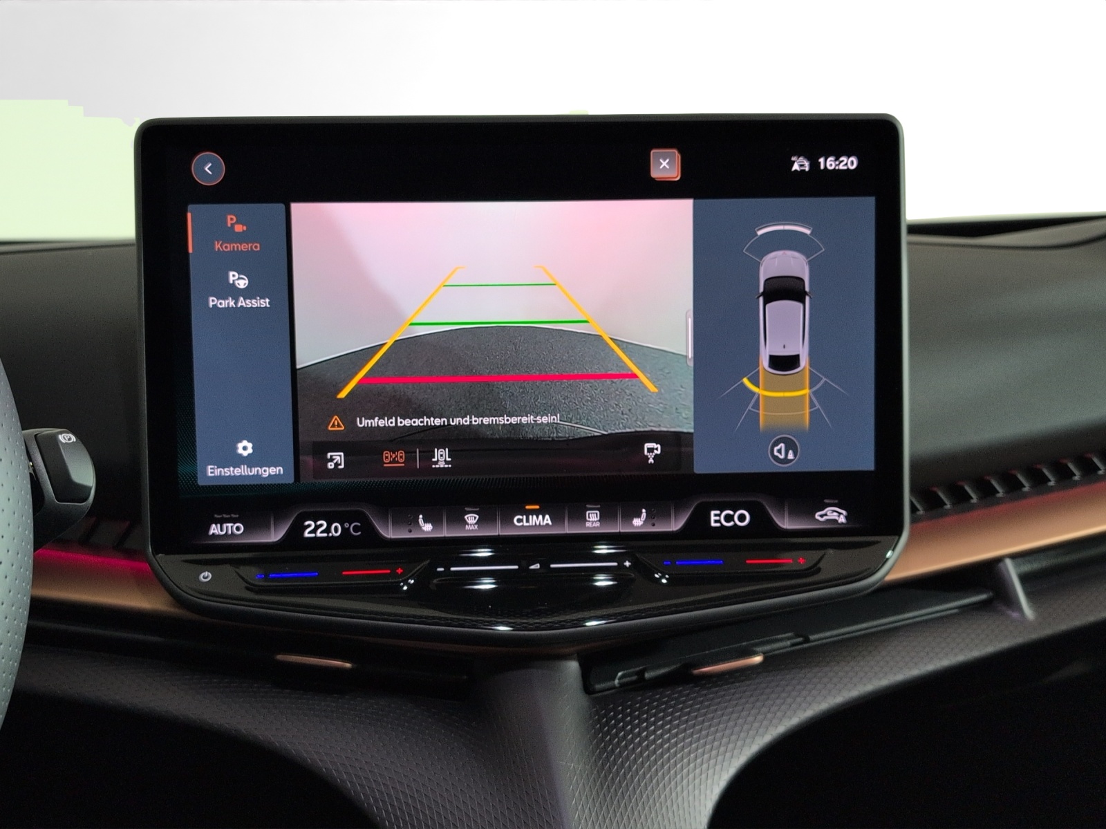 Serienausstattung 10.25" Full Digital Cockpit Abgedunkelte Scheiben ab B-Säule hinten Airbag: Airbag Beifahrer deaktivierbar Airbag: Airbag Fahrer und Beifahrer Airbag: Seitenairbags für Fahrer und Beifahrer Alarmanlage mit Innenraumüberwachung Assist: Aufmerksamkeits- und Müdigkeitserkennung (ADA) Assist: Ausweichunterstützung / Abbiegeassistent Assist: Exit Assist (Ausparkassistent) Assist: Exit Warning (Ausstiegswarner) Assist: Intelligenter Geschwindigkeitsassistent Assist: Parklenkassistent RPA (Remote Park Assist) Assist: PreCrash Sicherheitssystem Assist: Prädiktive automatische Distanzregelung ACC Assist: Regen-/Lichtsensor Assist: Side Assist (Spurwechselassistent) Assist: Traction Control (TCS) Assist: Traffic sign recognition (Verkehrszeichenerkennung) Assist: eCall Notruffunktion Aussenspiegel elektrisch einstell-, beheiz- und einklappbar Automatisch abblendender Innenrückspiegel Bidirektionales Laden (DC/AC) Dreipunkt-Automatiksicherheitsgurte auf allen Plätzen Elektrische Fensterheber vorne und hinten mit Komfortschaltung und Einklemmschutz Elektrische Lüftungsschlitze Elektronisches Stabilitäts-Programm (ESP) Fahrwerk: Adaptive Fahrwerksregelung DCC Garantie: Cupra 12 Jahre Gewährleistung gegen Karosserie-Durchrostung Garantie: Cupra 3 Jahre Lack-Gewährleistung Garantie: Cupra Garantie 2 Jahre ohne Kilometerbegrenzung Garantie: Cupra Hersteller-Garantieverlängerung für das 3., 4. und 5. Jahr / max.100000 km Getriebe: 1-Gang Automatik Heckklappe elektrisch öffnend und schliessend "Virtual Pedal" Klima: 3-Zonen Climatronic mit Fondraumbedienung LED Ambientebeleuchtung "PURE" Lackierung: Uni-Lackierung Lenkrad: Supersportlenkrad mit Drive Profile-Knopfsystem,beheizbar Licht: Drittes Bremslicht Licht: LED Heckleuchten mit beleuchtetem 3D CUPRA Logo Licht: Matrix LED Fernlicht Licht: Matrix LED Scheinwerfer Licht: Nebelschlussleuchte Media: 15" Infotainment (MIB3) Media: 2 USB C Anschlüsse hinten und vorne Media: Bluetooth-Freisprecheinrichtung Media: CUPRA Connect Online Infotainment Media: CUPRA Connect Remote & Access Media: CUPRA Connect Safety & Services Media: CUPRA Navigationssystem Media: DAB+ (Digital Audio Broadcasting) Media: Wireless Charger zur induktiven Smartphone Ladung Polster: Sitzbezüge in Stoff "Soul Black" Räder: Alufelgen 8J x 20", "Heckla" Machined Sport in Black/Silver Räder: Reifendruckkontrollsystem Schlüsselloses Schliess- und Startsystem (KESSY Advance) Servolenkung geschwindigkeitsabhängig Sitze: Geteilt abklappbare Rücksitzlehne 1/3 - 2/3 Sitze: Kindersitzbefestigungssystem ISOFIX Sitze: Kopfstützen hinten höhenverstellbar Sitze: Kopfstützen vorne (integrierte) Sitze: Sitzheizung für Vordersitze, getrennt regelbar Sitze: Vordersitze höhenverstellbar Vorbereitung für Anhängevorrichtung Wegfahrsperre elektronisch Zentralverriegelung mit Fernbedienung