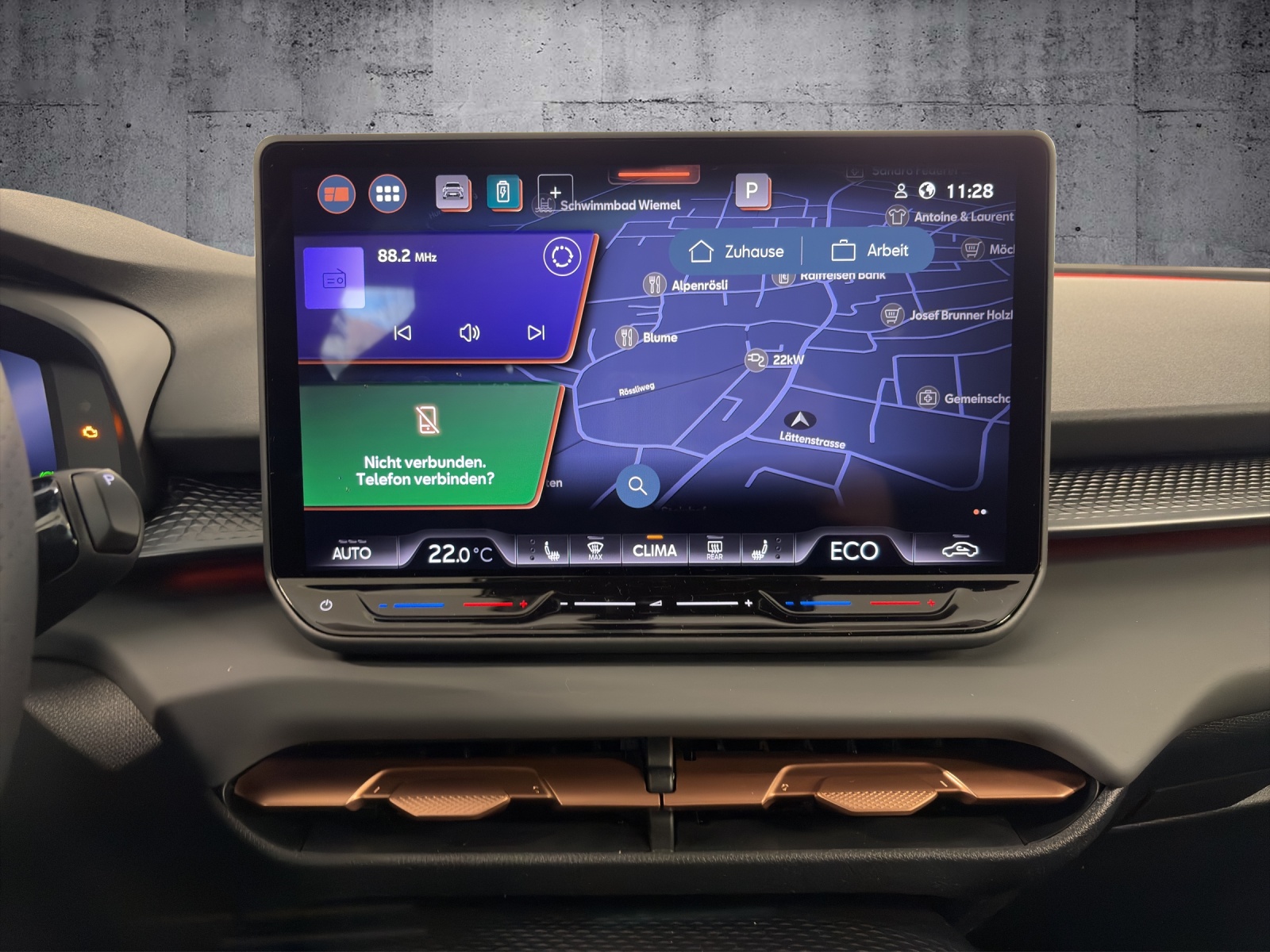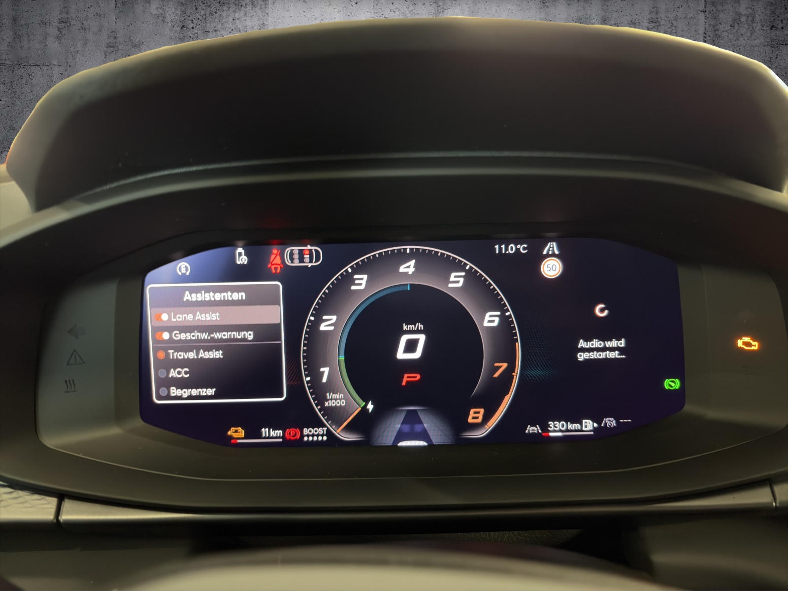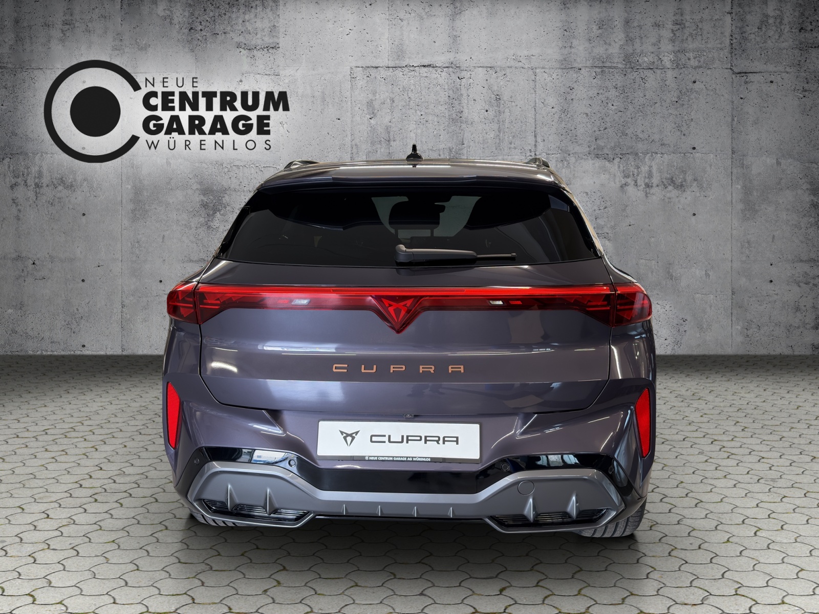 3-Punkt-Sicherheitsgurte auf allen Plätzen ABS, EBV elektronische Bremskraft-verteilung Abgedunkelte Scheiben ab B-Säule hinten Airbag: Airbag Beifahrer deaktivierbar Airbag: Airbag Fahrer und Beifahrer Airbag: Kopfairbags vorne und hinten Airbag: Seitenairbags für Fahrer und Beifahrer Alarmanlage mit Innenraumüberwachung Assist: Aufmerksamkeits- und Müdigkeitserkennung (ADA) Assist: Ausweichunterstützung / Abbiegeassistent Assist: Automatische Distanzregelung ACC Assist: City Notbremsfunktion Assist: Einparkhilfe vorne und hinten mit Rückfahrkamera Assist: Elektronische Parkbremse mit Auto Hold Funktion Assist: Lane assist (Spurhalteassistent) Assist: Multifunktionskamera Assist: Multikollisionsbremse Assist: Prädiktive Speedlimiter Assist: Traffic sign recognition (Verkehrszeichenerkennung) Assist: Umfeldüberwachungssystem "Front-Assist" Aussenspiegel elektrisch einstell-, beheiz- und einklappbar Aussenspiegel mit LED-Umfeldbeleuchtung Beleuchtete Sonnenblende links mit abdeckbarem Spiegel und Lasche, rechts mit abdeckbarem Spiegel ESC mit EBA, DSR, XDS und Reifendruckkontrolle Einstiegsleisten beleuchtet Elektrische Fensterheber vorne und hinten mit Komfortschaltung und Einklemmschutz Fahrwerk: Adaptive Fahrwerksregelung DCC Fahrwerk: CUPRA Sportfahrwerk Fahrwerk: Progressivlenkung Full Digital Cockpit 10.25" Fussmatten vorne und hinten Garantie: Cupra 12 Jahre Gewährleistung gegen Karosserie-Durchrostung Garantie: Cupra 3 Jahre Lack-Gewährleistung Garantie: Cupra Garantie 2 Jahre ohne Kilometerbegrenzung Garantie: Cupra Garantie Batterie- Gewährleistung 8 Jahre oder 160000 KM auf 70% Batterieleistung. Garantie: Cupra Hersteller-Garantieverlängerung für das 3., 4. und 5. Jahr / max.100000 km Heckklappe elektrisch öffnend und schliessend "Virtual Pedal" Heckscheiben-Wisch-/Waschanlage mit Intervall Innenspiegel automatisch abblendbar Klima: 3-Zonen Climatronic mit Fondraumbedienung LED-Ambientebeleuchtung Smart Wraparound, inkl. Funktionsanzeige Lackierung: Uni-Lackierung Ladekabel für Haushaltssteckdose (Mode 2) Lenkrad: Leder Multifunktionslenkrad mit Schaltwippen, beheizbar Licht: Drittes Bremslicht Licht: Durchgehende Full LED-Heckleuchten Licht: LED Heckleuchten mit beleuchtetem 3D CUPRA Logo Licht: LED-Heckleuchten mit dynamischem Blinklicht Licht: LED-Nebelscheinwerfer mit Cornering-Funktion Licht: Leuchtweitenregulierung dynamisch Licht: Nebelschlussleuchte Media: 12,9" Infotainment (MIB3) Media: 2 USB C Anschlüsse hinten und vorne Media: CUPRA Connect Remote & Access / CUPRA Connect Safety & Services Media: CUPRA Connectivity Box Media: CUPRA Navigationssystem Media: DAB+ (Digital Audio Broadcasting) Media: IMMERSIVE by SENNHEISER Media: Mobiltelefon Freisprechanlage Bluetooth Mittelarmlehne vorne und hinten Pyrotechnische Gurtstraffer und Gurtkraftbegrenzer Räder: Alufelgen 8.5J x 19", "COSMIC" Machined in Sport Black Matt & Silver Räder: Reifendruckkontrollsystem Schlüsselloses Schliess- und Startsystem (KESSY Advance) Servolenkung mit geschwindigkeitsabhängiger Lenkkraftunterstützung Sitze: 3 verstellbare Kopfstützen hinten Sitze: Geteilt abklappbare Rücksitzlehne 1/3 - 2/3 Sitze: Geteilt abklappbare Rücksitzlehne mit Mittelarmlehne Sitze: Kindersitzverankerung ISOFIX hinten Sitze: Vordersitze höhenverstellbar mit Lendenwirbelstütze Stopp - Start- und Rekuperationssystem Wegfahrsperre elektronisch Zentralverriegelung mit Funkfernbedienung, 2 Funkschlüssel
