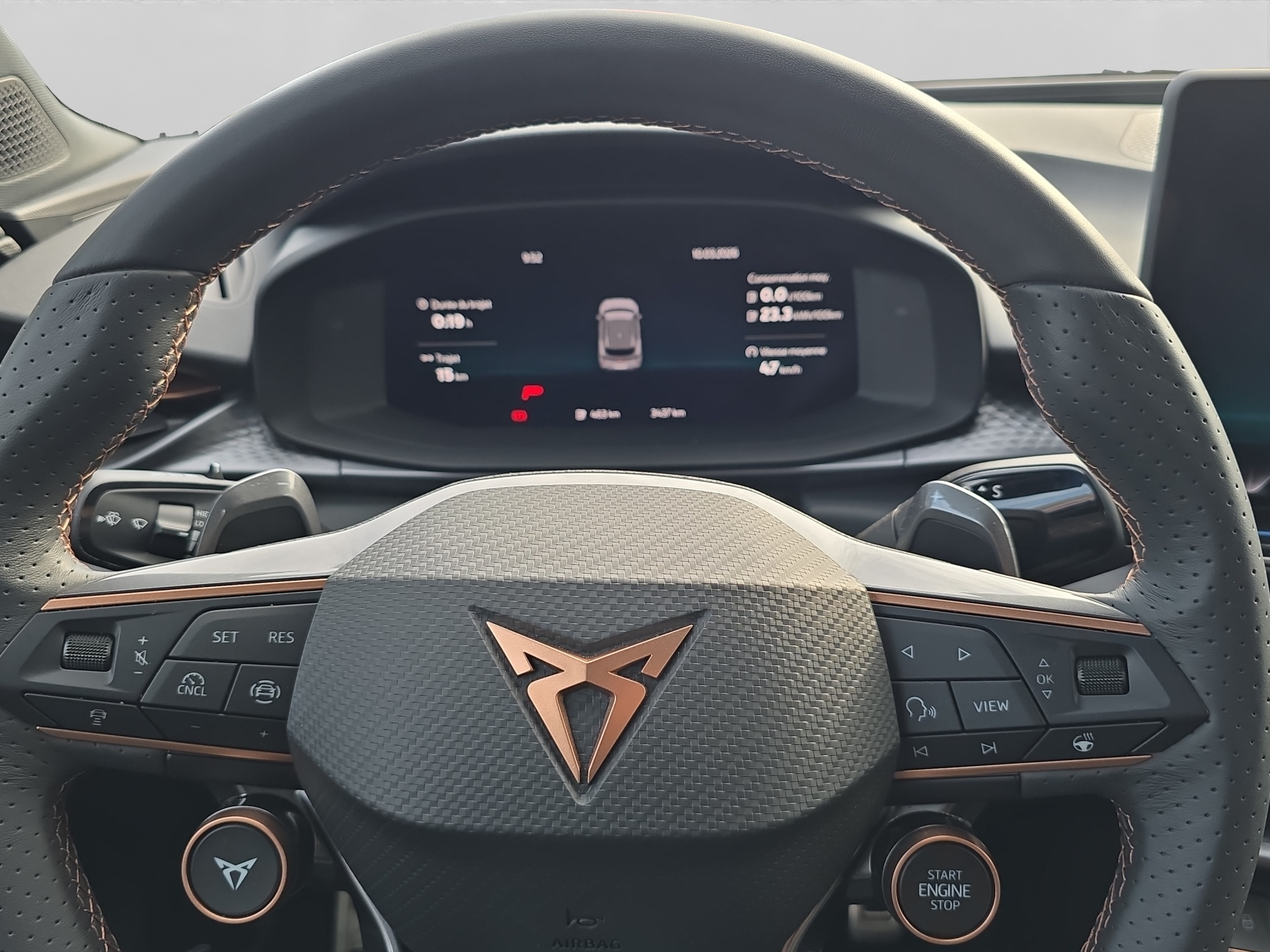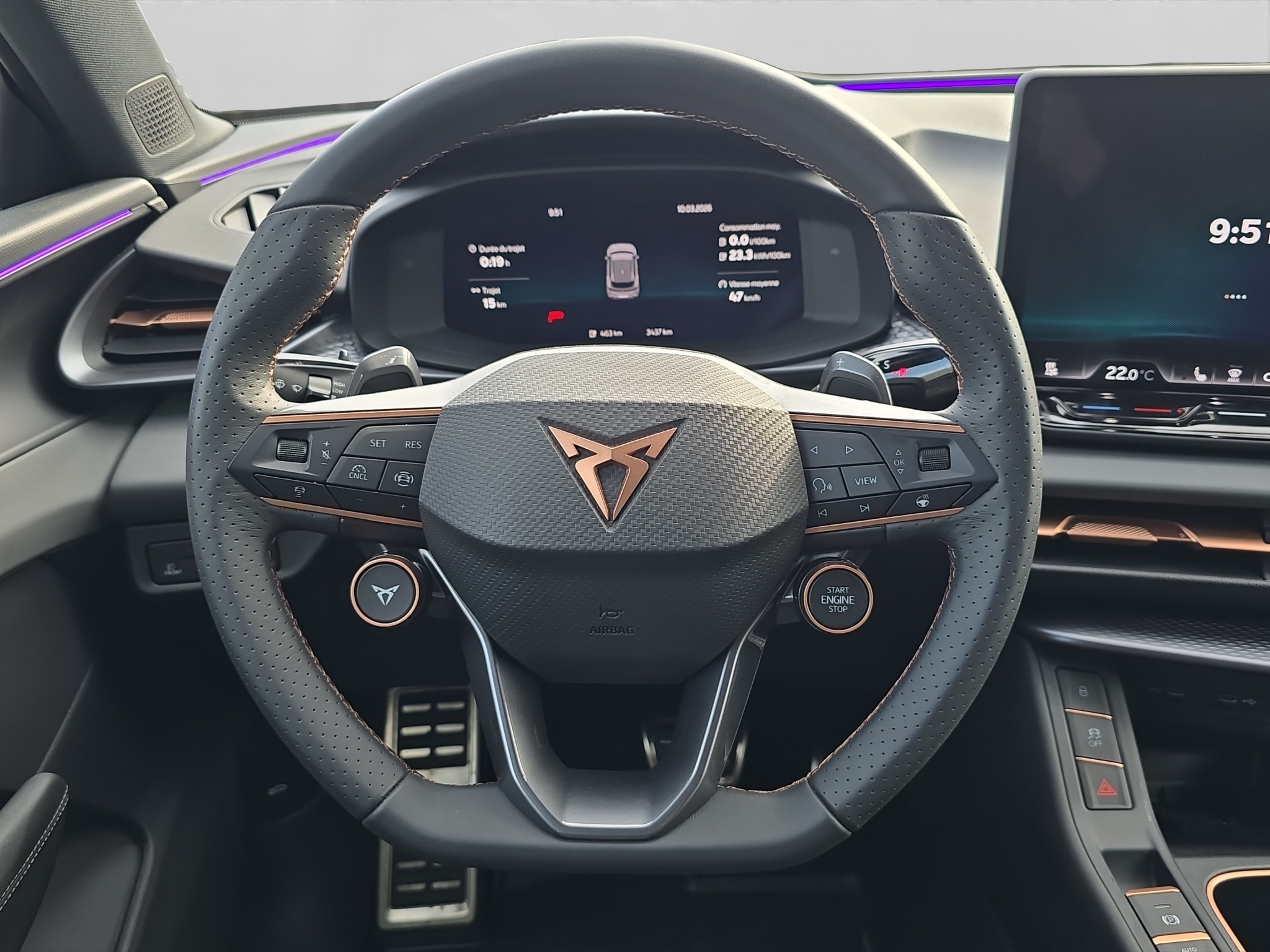 3-Punkt-Sicherheitsgurte auf allen Plätzen ABS, EBV elektronische Bremskraft-verteilung Abgedunkelte Scheiben ab B-Säule hinten Airbag: Airbag Beifahrer deaktivierbar Airbag: Airbag Fahrer und Beifahrer Airbag: Kopfairbags vorne und hinten Airbag: Seitenairbags für Fahrer und Beifahrer Alarme avec surveillance intérieure Ambiente Innenraumbeleuchtung mit beleuchteten Türpanelen Assist: Aufmerksamkeits- und Müdigkeitserkennung (ADA) Assist: Ausweichunterstützung / Abbiegeassistent Assist: Automatische Distanzregelung ACC Assist: City Notbremsfunktion Assist: Einparkhilfe vorne und hinten mit Rückfahrkamera Assist: Elektronische Parkbremse mit Auto Hold Funktion Assist: Lane assist (Spurhalteassistent) Assist: Multifunktionskamera Assist: Multikollisionsbremse Assist: Prädiktive Speedlimiter Assist: Traffic sign recognition (Verkehrszeichenerkennung) Assist: Umfeldüberwachungssystem "Front-Assist" Aussenspiegel elektrisch einstell-, beheiz- und einklappbar Aussenspiegel mit LED-Umfeldbeleuchtung Beleuchtete Sonnenblende links mit abdeckbarem Spiegel und Lasche, rechts mit abdeckbarem Spiegel Capteur de pluie et lumière ESC mit EBA, DSR, XDS und Reifendruckkontrolle Elektrische Fensterheber vorne und hinten mit Komfortschaltung und Einklemmschutz Enjoliveurs de seuil éclairés Fahrwerk: Adaptive Fahrwerksregelung DCC Fahrwerk: CUPRA Sportfahrwerk Fahrwerk: Progressivlenkung Garantie: Cupra 12 ans de garantie contre perforation de la carrosserie Garantie: Cupra 2 ans de garantie, kilométrage illimité Garantie: Cupra 3 ans de garantie pour la peinture Heckklappe elektrisch öffnend und schliessend "Virtual Pedal" Heckscheiben-Wisch-/Waschanlage mit Intervall Klima: 3-Zonen Climatronic mit Fondraumbedienung Lackierung: Uni-Lackierung Lenkrad: Leder Multifunktionslenkrad mit Schaltwippen, beheizbar Licht: Drittes Bremslicht Licht: Durchgehende Full LED-Heckleuchten Licht: LED Heckleuchten mit beleuchtetem 3D CUPRA Logo Licht: LED-Heckleuchten mit dynamischem Blinklicht Licht: LED-Nebelscheinwerfer mit Cornering-Funktion Licht: LED-Scheinwerfer für Abblend- und Fernlicht Licht: Leuchtweitenregulierung dynamisch Licht: Nebelschlussleuchte Media: 12,9" Infotainment (MIB3) Media: 2 USB C Anschlüsse hinten und vorne Media: DAB+ (Digital Audio Broadcasting) Media: Mobiltelefon Freisprechanlage Bluetooth Mittelarmlehne vorne und hinten Mèdias: CUPRA Connect Remote & Access / CUPRA Connect Safety & Services Mèdias: CUPRA Connectivity Box Poignées couleur carrosserie Pyrotechnische Gurtstraffer und Gurtkraftbegrenzer Roues: Aluminium 8,5J x 19", "COSMIC" usiné en Sport Black Matt & Silver Räder: Performance Reifen Räder: Reifendruckkontrollsystem Rétroviseur intérieur photochromatique automatique Schlüsselloses Schliess- und Startsystem (KESSY Advance) Servolenkung mit geschwindigkeitsabhängiger Lenkkraftunterstützung Sitze: 3 verstellbare Kopfstützen hinten Sitze: CUPRA Sport Schalensitze in Textil, "DEEP OCEAN" "SEAQUAL" Sitze: Geteilt abklappbare Rücksitzlehne 1/3 - 2/3 Sitze: Geteilt abklappbare Rücksitzlehne mit Mittelarmlehne Sitze: Kindersitzverankerung ISOFIX hinten Sitze: Vordersitze höhenverstellbar mit Lendenwirbelstütze Stopp - Start- und Rekuperationssystem Tapis de sol avant et arrière Wegfahrsperre elektronisch Zentralverriegelung mit Funkfernbedienung, 2 Funkschlüssel