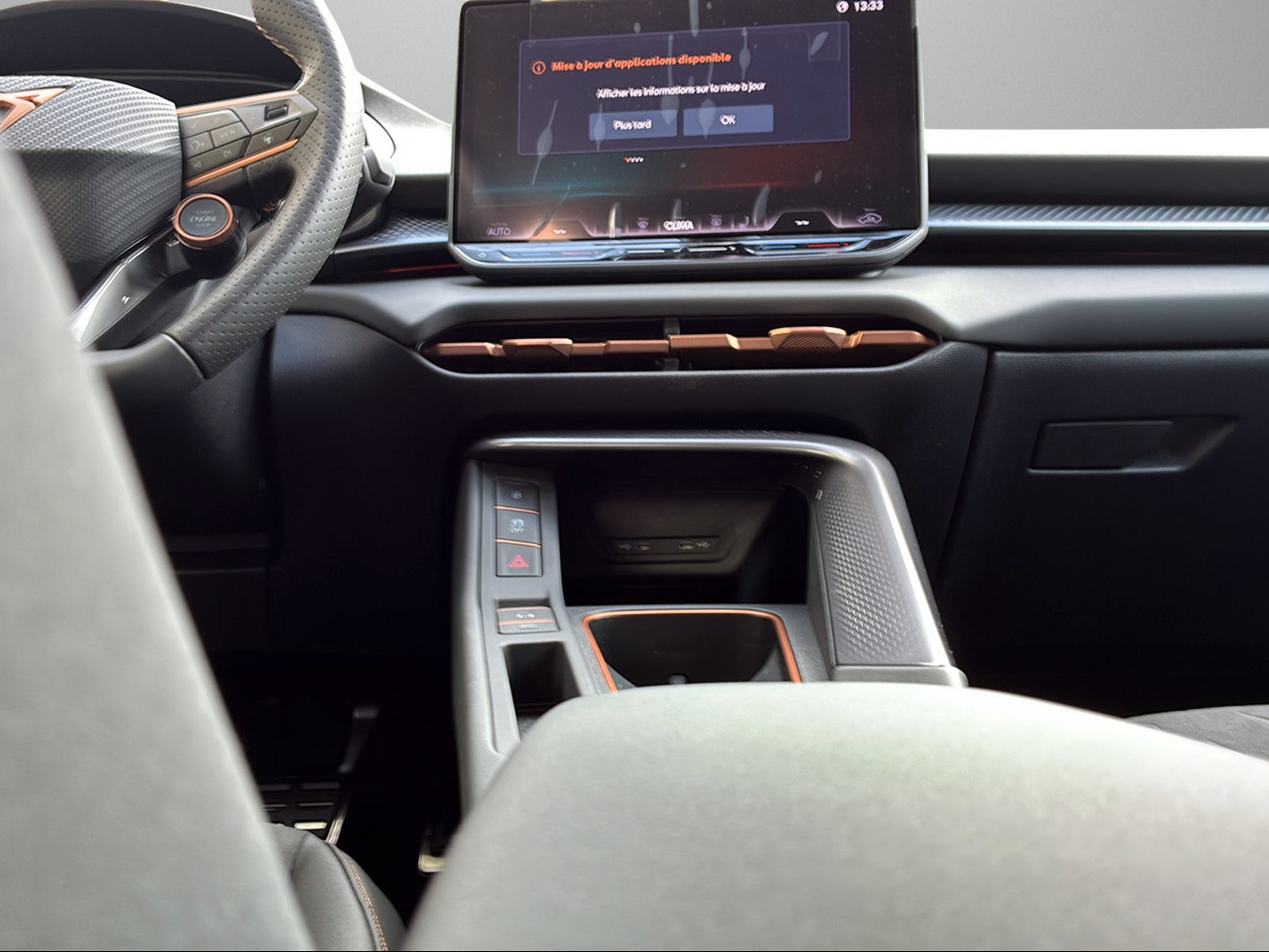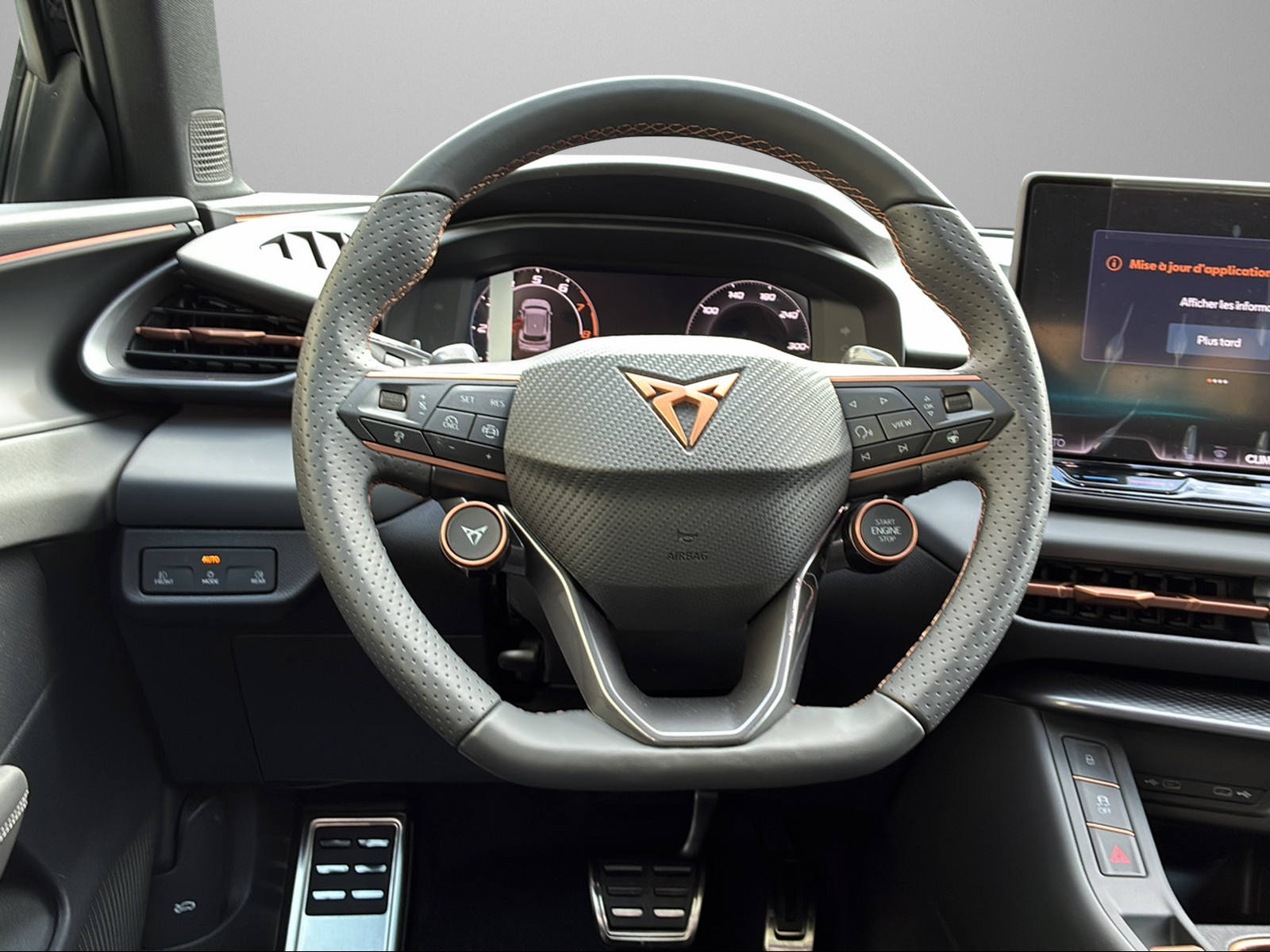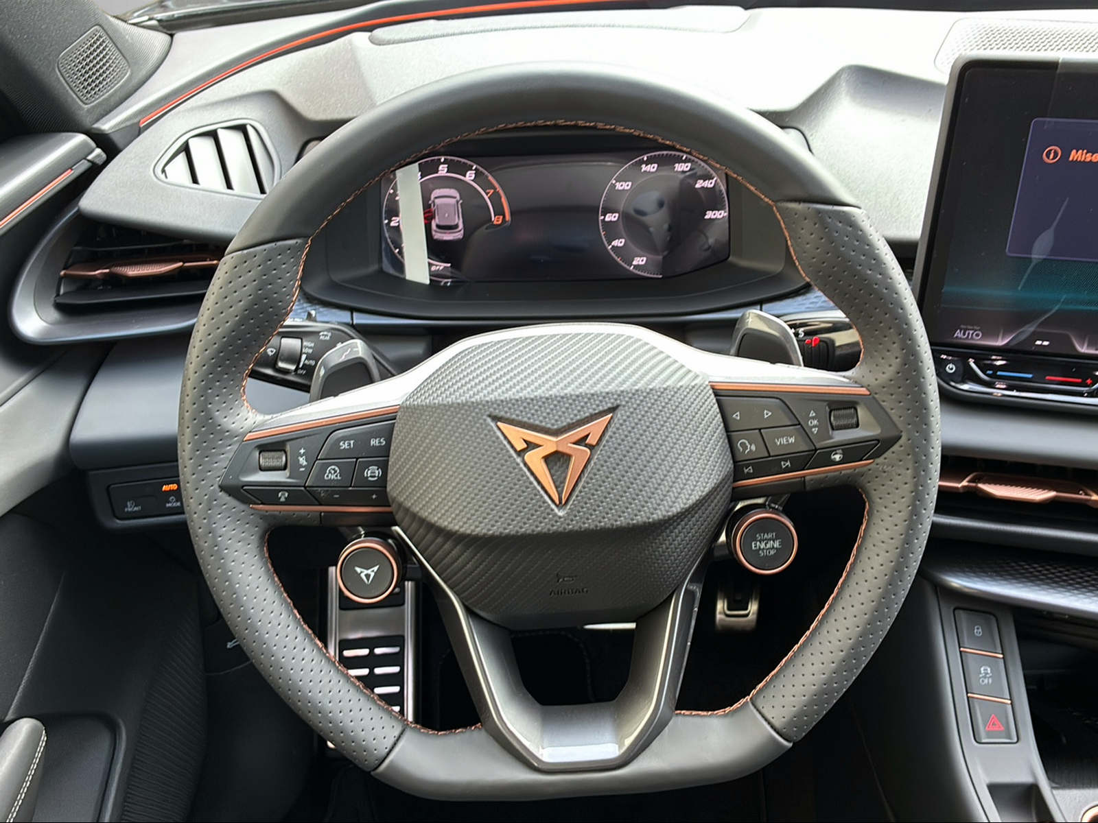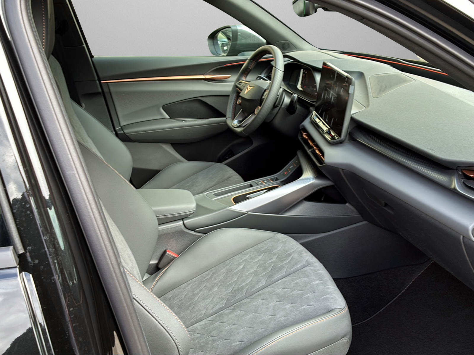 3-Punkt-Sicherheitsgurte auf allen Plätzen ABS, EBV elektronische Bremskraft-verteilung Airbag: Airbag Beifahrer deaktivierbar Airbag: Airbag Fahrer und Beifahrer Airbag: Kopfairbags vorne und hinten Airbag: Seitenairbags für Fahrer und Beifahrer Assist: Aufmerksamkeits- und Müdigkeitserkennung (ADA) Assist: Ausweichunterstützung / Abbiegeassistent Assist: City Notbremsfunktion Assist: Einparkhilfe vorne und hinten mit Rückfahrkamera Assist: Elektronische Parkbremse mit Auto Hold Funktion Assist: Lane assist (Spurhalteassistent) Assist: Multifunktionskamera Assist: Multikollisionsbremse Assist: Prädiktive Speedlimiter Assist: Traffic sign recognition (Verkehrszeichenerkennung) Assist: Umfeldüberwachungssystem "Front-Assist" Aussenspiegel mit LED-Umfeldbeleuchtung Beleuchtete Sonnenblende links mit abdeckbarem Spiegel und Lasche, rechts mit abdeckbarem Spiegel Capteur de pluie et lumière ESC mit EBA, DSR, XDS und Reifendruckkontrolle Elektrische Fensterheber vorne und hinten mit Komfortschaltung und Einklemmschutz Fahrwerk: CUPRA Sportfahrwerk Fahrwerk: Progressivlenkung Full Digital Cockpit 10.25" Garantie: CUPRA Prolongation de garantie constructeur pour les 3ème, 4ème et 5ème années / Garantie: Cupra 12 ans de garantie contre perforation de la carrosserie Garantie: Cupra 2 ans de garantie, kilométrage illimité Garantie: Cupra 3 ans de garantie pour la peinture Heckscheiben-Wisch-/Waschanlage mit Intervall Lackierung: Uni-Lackierung Licht: Drittes Bremslicht Licht: Durchgehende Full LED-Heckleuchten Licht: LED Heckleuchten mit beleuchtetem 3D CUPRA Logo Licht: LED-Heckleuchten mit dynamischem Blinklicht Licht: LED-Nebelscheinwerfer mit Cornering-Funktion Licht: LED-Scheinwerfer für Abblend- und Fernlicht Licht: Leuchtweitenregulierung dynamisch Licht: Nebelschlussleuchte Media: 12,9" Infotainment (MIB3) Media: 2 USB C Anschlüsse hinten und vorne Media: CUPRA Navigationssystem Media: DAB+ (Digital Audio Broadcasting) Media: Mobiltelefon Freisprechanlage Bluetooth Mittelarmlehne vorne und hinten Mèdias: CUPRA Connect Remote & Access / CUPRA Connect Safety & Services Mèdias: CUPRA Connectivity Box Pyrotechnische Gurtstraffer und Gurtkraftbegrenzer Roues: Alufelgen 8J x 18", "ATOMIC" usiné en Dark Shadow Räder: Reifendruckkontrollsystem Rétroviseur intérieur anti-éblouissement Servolenkung mit geschwindigkeitsabhängiger Lenkkraftunterstützung Sitze: 3 verstellbare Kopfstützen hinten Sitze: Geteilt abklappbare Rücksitzlehne 1/3 - 2/3 Sitze: Kindersitzverankerung ISOFIX hinten Sitze: Vordersitze höhenverstellbar mit Lendenwirbelstütze Stopp - Start- und Rekuperationssystem Tapis de sol avant et arrière Wegfahrsperre elektronisch Zentralverriegelung mit Funkfernbedienung, 2 Funkschlüssel