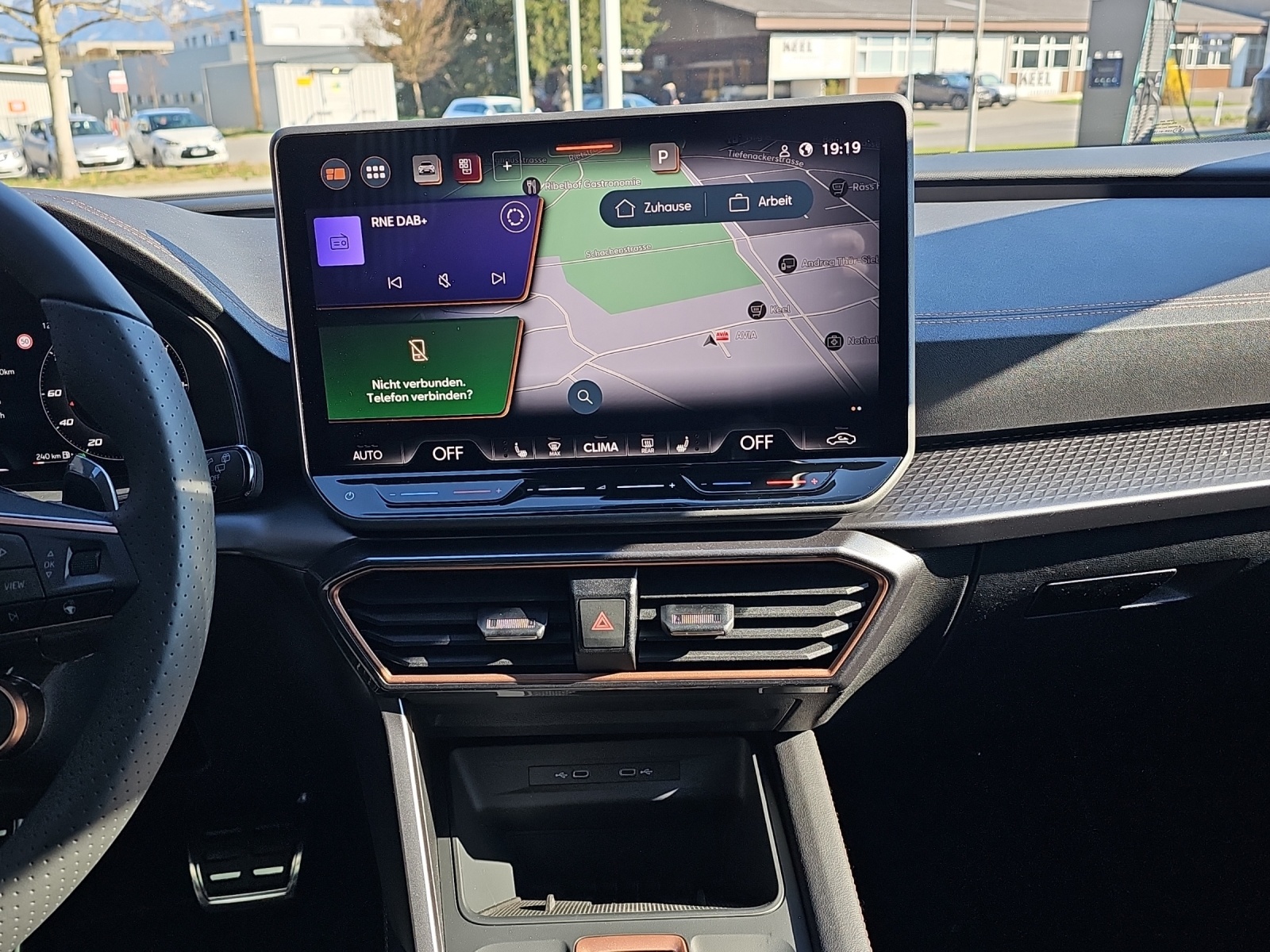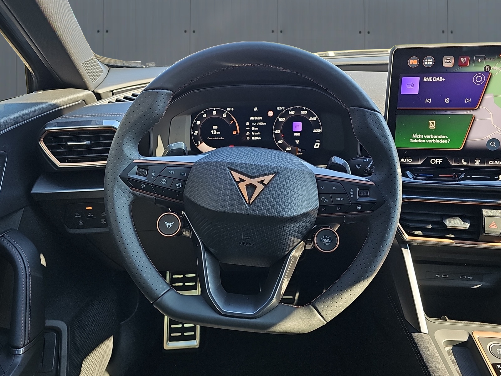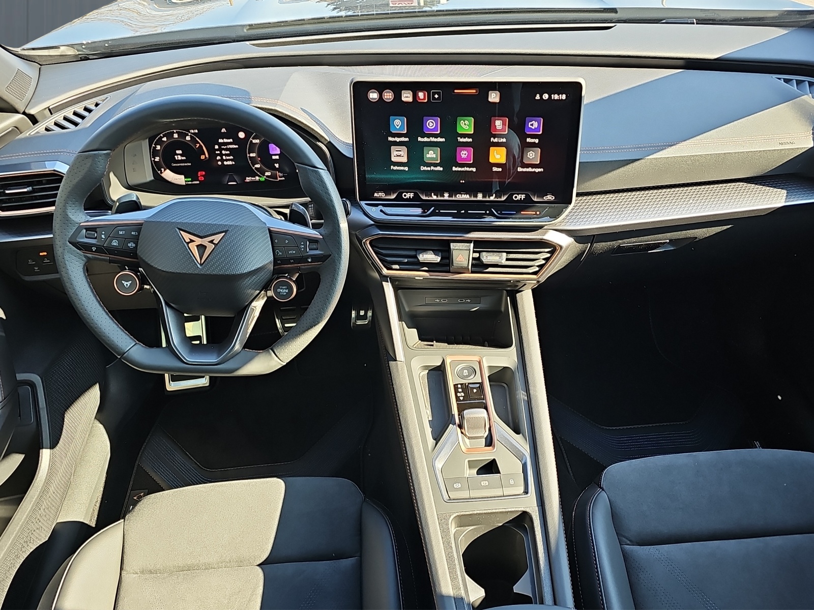 Serienausstattung 3-Punkt-Sicherheitsgurte auf allen Plätzen ABS, EBV elektronische Bremskraft-verteilung Abgedunkelte Scheiben ab B-Säule hinten Airbag: Airbag Beifahrer deaktivierbar Airbag: Airbag Fahrer und Beifahrer Airbag: Kopfairbags vorne und hinten Airbag: Seitenairbags für Fahrer und Beifahrer Assist: Aufmerksamkeits- und Müdigkeitserkennung (ADA) Assist: Ausweichunterstützung / Abbiegeassistent Assist: Automatische Distanzregelung ACC Assist: City Notbremsfunktion Assist: Elektronische Parkbremse mit Auto Hold Funktion Assist: Lane assist (Spurhalteassistent) Assist: Multifunktionskamera Assist: Multikollisionsbremse Assist: Prädiktive Speedlimiter Assist: Regen-/Lichtsensor Assist: Traction Control (TCS) Assist: Traffic sign recognition (Verkehrszeichenerkennung) Assist: Umfeldbeobachtung Front-Assist Aussenspiegel mit Beifahrerspiegelabsenkung Aussenspiegel mit LED-Umfeldbeleuchtung Automatisch abblendender Innenrückspiegel Beleuchtete Sonnenblende links mit abdeckbarem Spiegel und Lasche, rechts mit abdeckbarem Spiegel ESC mit EBA, DSR, XDS und Reifendruckkontrolle Elektrische Fensterheber vorne und hinten mit Komfortschaltung und Einklemmschutz Fahrwerk: Progressivlenkung Fussmatten vorne und hinten Garantie: Cupra 12 Jahre Gewährleistung gegen Karosserie-Durchrostung Garantie: Cupra 3 Jahre Lack-Gewährleistung Garantie: Cupra Garantie 2 Jahre ohne Kilometerbegrenzung Garantie: Cupra Hersteller-Garantieverlängerung für das 3., 4. und 5. Jahr / max.100000 km Heckscheiben-Wisch-/Waschanlage mit Intervall Kindersitzverankerung ISOFIX (äussere Plätze hinten) Klima: 3-Zonen Climatronic mit Fondraumbedienung Lackierung: Uni-Lackierung Lenkrad: Supersportlenkrad mit Start-/ Drive Profile-Knopfsystem und Schaltwippen, beheizbar Licht: Coming-home-Funktion Licht: Drittes Bremslicht Licht: Durchgehende Full LED-Heckleuchten Licht: Fernlicht-Assistent Licht: LED Heckleuchten mit beleuchtetem 3D CUPRA Logo Licht: LED-Heckleuchten mit dynamischem Blinklicht Licht: LED-Nebelscheinwerfer mit Cornering-Funktion Licht: LED-Scheinwerfer für Abblend- und Fernlicht Licht: Leuchtweitenregulierung dynamisch Licht: Nebelschlussleuchte Media: 12,9" Infotainment (MIB3) Media: 2 USB C Anschlüsse hinten und vorne Media: CUPRA Connect Online Infotainment Media: CUPRA Connect Remote & Access Media: CUPRA Connect Safety & Services Media: CUPRA Connectivity Box Media: CUPRA Navigationssystem 12.9" Infotainment Media: DAB+ (Digital Audio Broadcasting) Media: Mobiltelefon Freisprechanlage Bluetooth Pyrotechnische Gurtstraffer und Gurtkraftbegrenzer Räder: Alufelgen 8J x 18", "TEMPEST" Machined in Silver Räder: Reifendruckkontrollsystem Räder: Reifenreparatur-Set (Tire Fit) Servolenkung mit geschwindigkeitsabhängiger Lenkkraftunterstützung Sitze: 3 verstellbare Kopfstützen hinten Sitze: Geteilt abklappbare Rücksitzlehne 1/3 - 2/3 Sitze: Kopfstützen vorne (integrierte) Sitze: Mittelarmlehne hinten Sitze: Mittelarmlehne vorne Sitze: Sitzheizung für Vordersitze, getrennt regelbar Sitze: Vordersitze höhenverstellbar mit Lendenwirbelstütze Stopp - Start- und Rekuperationssystem Wegfahrsperre elektronisch Zentralverriegelung mit Funkfernbedienung, 2 Funkschlüssel