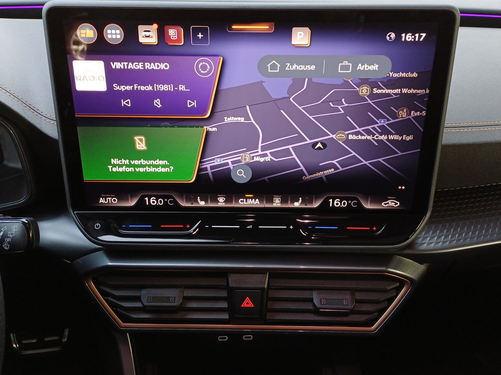 Dotazione di serie ABS, EBV elektronische Bremskraft-verteilung Abgedunkelte Scheiben ab B-Säule hinten Airbag: Airbag Beifahrer deaktivierbar Airbag: Airbag Fahrer und Beifahrer Airbag: Airbag laterali anteriori con airbag per la testa e airbag frontale di interazione Assist: Assistenza al parcheggio anteriore e posteriore Assist: Aufmerksamkeits- und Müdigkeitserkennung (ADA) Assist: Ausweichunterstützung / Abbiegeassistent Assist: Elektronische Parkbremse mit Auto Hold Funktion Assist: Lane assist (Spurhalteassistent) Assist: Multikollisionsbremse Assist: Prädiktive Speedlimiter Assist: Regen-/Lichtsensor Assist: Regolatore di velocità Assist: Telecamera multifunzionale Assist: Traction Control (TCS) Assist: Traffic sign recognition (Verkehrszeichenerkennung) CUPRA Drive Profile con "pulsante esperienza di guida" Comfort, Performance, Drift, Individual Controllo di cintura di sicurezza per tutti sedili Decor: Inserti di decoro in optico copper Dreipunkt-Automatiksicherheitsgurte auf allen Plätzen ESC con EBA, DSR e sistema di controllo della pressione dei pneumatici Elektrische Fensterheber vorne und hinten mit Komfortschaltung und Einklemmschutz Garanzia: CUPRA Estensione di garanzia di fabbrica per il 3, 4 e 5 anno / max. 100000 km Garanzia: Cupra 12 anni di garanzia contro la corrosione della carrozzeria Garanzia: Cupra 2 anni di garanzia senza limitazione di chilometraggio Garanzia: Cupra 3 anni di garanzia contro i danni alla vernice Heckscheiben-Wisch-/Waschanlage mit Intervall Klima: 3-Zonen Climatronic mit Fondraumbedienung Licht: Durchgehende Full LED-Heckleuchten Licht: LED Heckleuchten mit beleuchtetem 3D CUPRA Logo Licht: LED-Nebelscheinwerfer mit Cornering-Funktion Licht: LED-Scheinwerfer für Abblend- und Fernlicht Licht: Leuchtweitenregulierung Luce: Assistente abbaglianti Luce: Funzione coming leaving home Luce: Indicatori LED dinamici Luce: Luce posteriore antinebbia Media: 12,9" Infotainment (MIB3) Media: 2 USB C Anschlüsse hinten und vorne Media: CUPRA Connect Remote & Access Media: CUPRA Connect Safety & Services Media: CUPRA Connectivity Box Media: DAB+ (Digital Audio Broadcasting) Media: Mobiltelefon Freisprechanlage Bluetooth Media: Sistema di navigazione CUPRA 12.9" Infotainment Nascondi sole del conducente e del Pacchetto: DYNAMIC DESIGN Pacchetto: INTELLIGENT DRIVE Pretensionatori pirotecnici e limitatori di sforzo nella parte anteriore Ruote: Cerchi in alluminio 7.5J x 18", "GARBI" Machined in Dark Shadow Sedili: 2 appoggiatesta regolabili anteriori e 3 posteriori Sedili: Bracciolo centrale anteriore Sedili: Bracciolo centrale posteriore Sedili: Sedili anteriori regolabili in altezza Sedili: Supporto lombare negli schienali dei sedili anteriori Servolenkung mit geschwindigkeitsabhängiger Lenkkraftunterstützung Set riparazione pneumatici (Tire Fit) Sitze: Geteilt abklappbare Rücksitzlehne 1/3 - 2/3 Sitze: Kindersitzverankerung ISOFIX hinten Sitze: Kopfstützen vorne (integrierte) Sitze: Sitzheizung für Vordersitze, getrennt regelbar Specchietto interno fotocromato Stopp - Start- und Rekuperationssystem Tappetini anteriori e posteriori Trazione integrale permanente Verniciatura: Verniciatura Uni Volante: Volante supersportivo con sistema di pulsanti di avviamento-/ Drive Profile e Wegfahrsperre elektronisch Zentralverriegelung mit Funkfernbedienung, 2 Funkschlüssel
