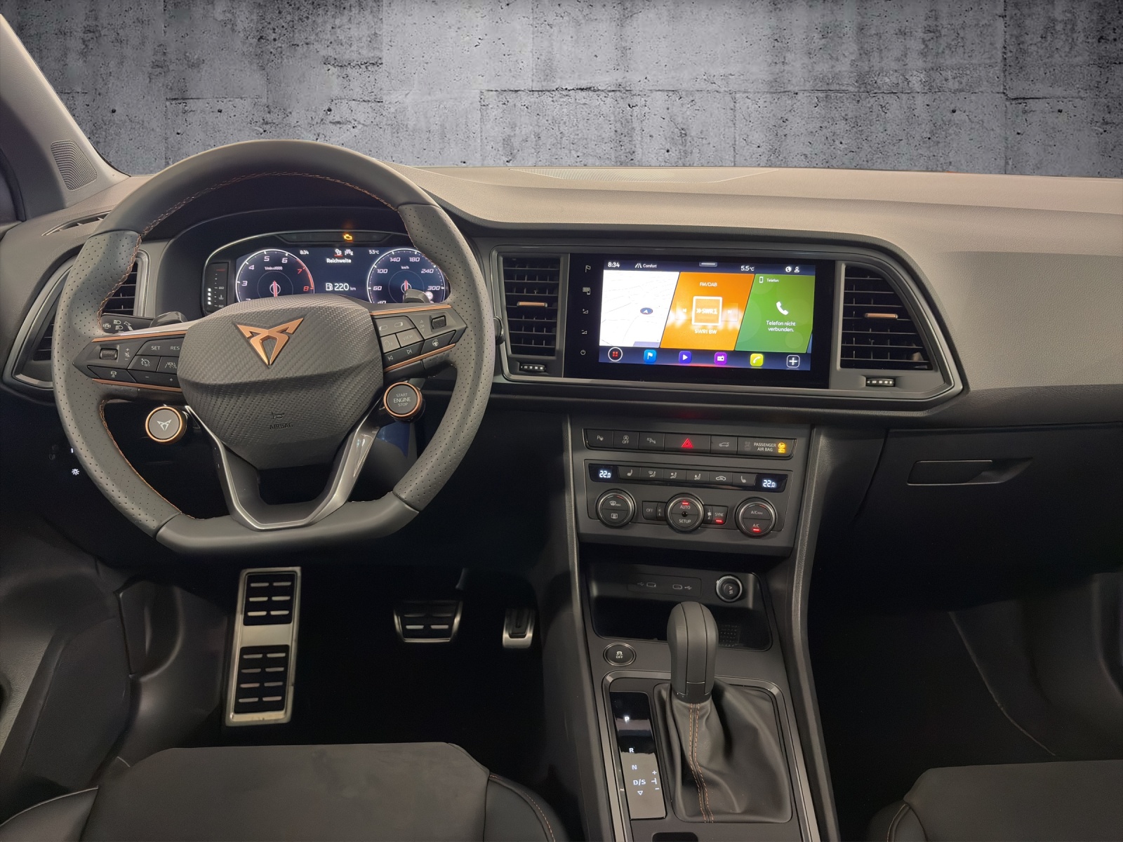 Anhängevorrichtung (Einklappbar) Assist: Top View Camera (Rundumblick) Heckklappe elektrisch öffnend und schliessend "Virtual Pedal" Media: CUPRA Connectivity Box Pacchetto: Pacchetto sistemi d'assitenza per il conduttore XL Ruote: Cerchioni in lega 8J x 19", "EXCLUSIVE" in Sport Black Tetto panoramico scorrevole e basculante Volante: Volante supersportivo con sistema di pulsanti di avviamento-/ Drive Profile e