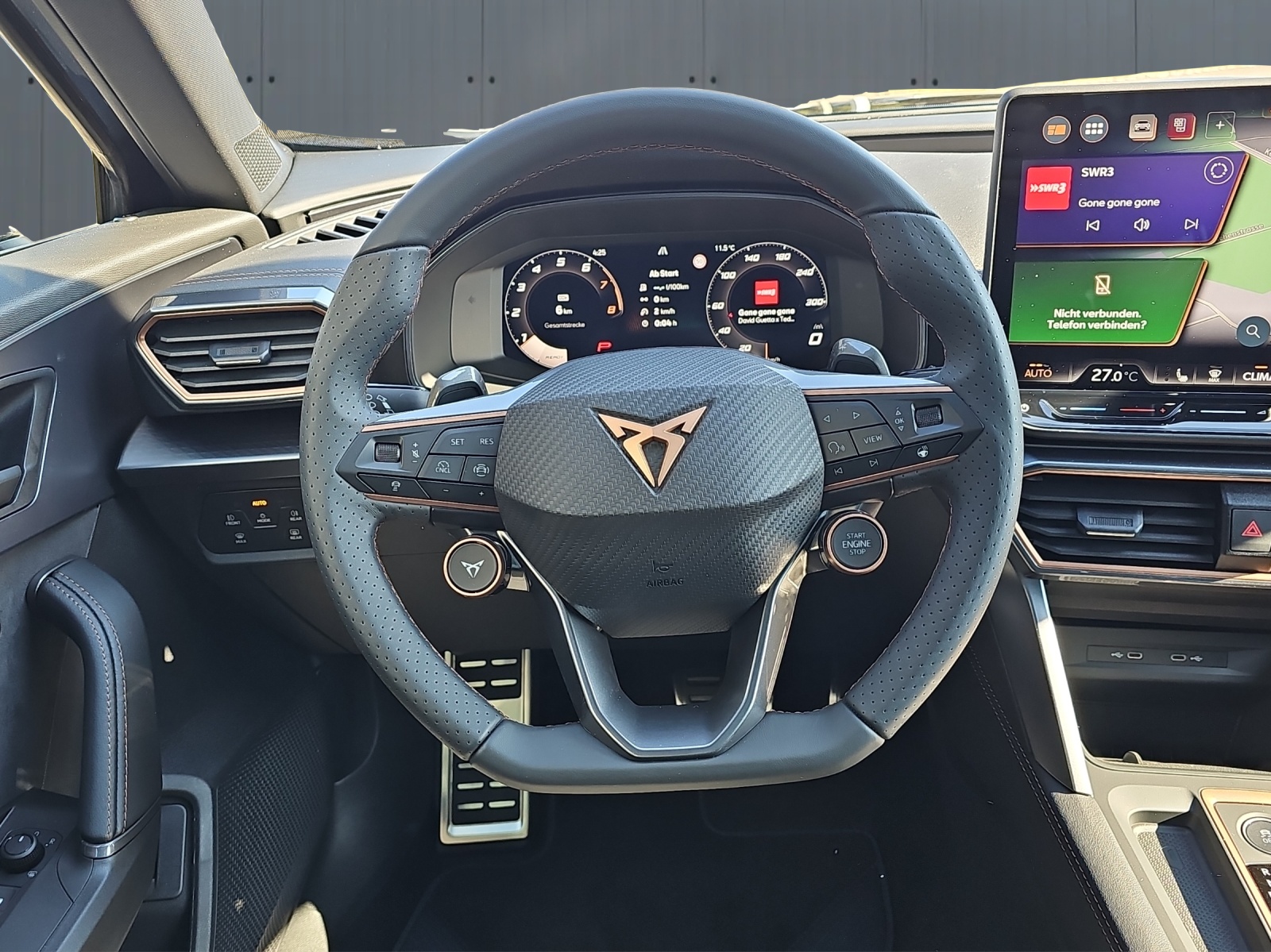 Serienausstattung 3-Punkt-Sicherheitsgurte auf allen Plätzen ABS, EBV elektronische Bremskraft-verteilung Abgedunkelte Scheiben ab B-Säule hinten Airbag: Airbag Beifahrer deaktivierbar Airbag: Airbag Fahrer und Beifahrer Airbag: Kopfairbags vorne und hinten Airbag: Seitenairbags für Fahrer und Beifahrer Assist: Aufmerksamkeits- und Müdigkeitserkennung (ADA) Assist: Ausweichunterstützung / Abbiegeassistent Assist: Automatische Distanzregelung ACC Assist: City Notbremsfunktion Assist: Einparkhilfe vorne und hinten mit Rückfahrkamera Assist: Elektronische Parkbremse mit Auto Hold Funktion Assist: Lane assist (Spurhalteassistent) Assist: Multifunktionskamera Assist: Multikollisionsbremse Assist: Prädiktive Speedlimiter Assist: Regen-/Lichtsensor Assist: Traction Control (TCS) Assist: Traffic sign recognition (Verkehrszeichenerkennung) Assist: Umfeldbeobachtung Front-Assist Aussenspiegel mit Beifahrerspiegelabsenkung Aussenspiegel mit LED-Umfeldbeleuchtung Automatisch abblendender Innenrückspiegel Beleuchtete Sonnenblende links mit abdeckbarem Spiegel und Lasche, rechts mit abdeckbarem Spiegel ESC mit EBA, DSR, XDS und Reifendruckkontrolle Elektrische Fensterheber vorne und hinten mit Komfortschaltung und Einklemmschutz Fahrwerk: Adaptive Fahrwerksregelung DCC Fahrwerk: Progressivlenkung Fussmatten vorne und hinten Garantie: Cupra 12 Jahre Gewährleistung gegen Karosserie-Durchrostung Garantie: Cupra 3 Jahre Lack-Gewährleistung Garantie: Cupra Garantie 2 Jahre ohne Kilometerbegrenzung Garantie: Cupra Hersteller-Garantieverlängerung für das 3., 4. und 5. Jahr / max.100000 km Heckscheiben-Wisch-/Waschanlage mit Intervall Kindersitzverankerung ISOFIX (äussere Plätze hinten) Klima: 3-Zonen Climatronic mit Fondraumbedienung Lackierung: Uni-Lackierung Lenkrad: Supersportlenkrad mit Start-/ Drive Profile-Knopfsystem und Schaltwippen, beheizbar Licht: Coming-home-Funktion Licht: Drittes Bremslicht Licht: Durchgehende Full LED-Heckleuchten Licht: Fernlicht-Assistent Licht: LED Heckleuchten mit beleuchtetem 3D CUPRA Logo Licht: LED-Heckleuchten mit dynamischem Blinklicht Licht: LED-Nebelscheinwerfer mit Cornering-Funktion Licht: Leuchtweitenregulierung dynamisch Licht: Nebelschlussleuchte Media: 12,9" Infotainment (MIB3) Media: 2 USB C Anschlüsse hinten und vorne Media: CUPRA Connect Online Infotainment Media: CUPRA Connect Remote & Access Media: CUPRA Connect Safety & Services Media: CUPRA Connectivity Box Media: CUPRA Navigationssystem 12.9" Infotainment Media: DAB+ (Digital Audio Broadcasting) Media: IMMERSIVE by SENNHEISER Media: Mobiltelefon Freisprechanlage Bluetooth Pyrotechnische Gurtstraffer und Gurtkraftbegrenzer Räder: Alufelgen 8J x 19", "SANDSTORM" Machined in Silver Räder: Reifendruckkontrollsystem Räder: Reifenreparatur-Set (Tire Fit) Servolenkung mit geschwindigkeitsabhängiger Lenkkraftunterstützung Sitze: 3 verstellbare Kopfstützen hinten Sitze: Geteilt abklappbare Rücksitzlehne 1/3 - 2/3 Sitze: Kopfstützen vorne (integrierte) Sitze: Mittelarmlehne hinten Sitze: Mittelarmlehne vorne Sitze: Sitzheizung für Vordersitze, getrennt regelbar Sitze: Vordersitze höhenverstellbar mit Lendenwirbelstütze Stopp - Start- und Rekuperationssystem Wegfahrsperre elektronisch Zentralverriegelung mit Funkfernbedienung, 2 Funkschlüssel