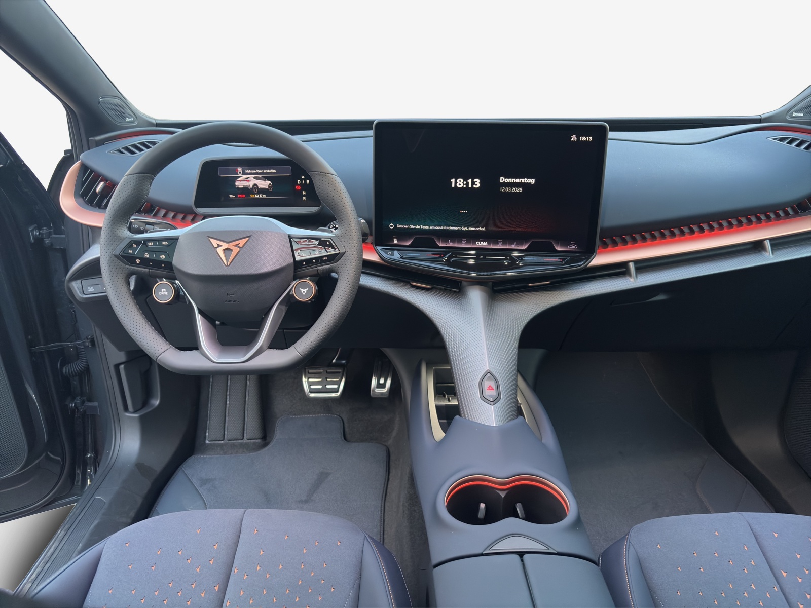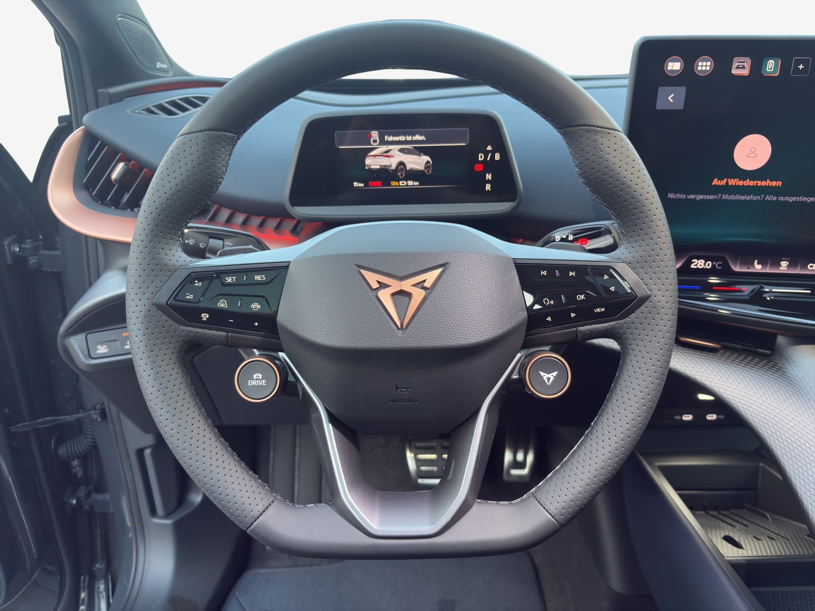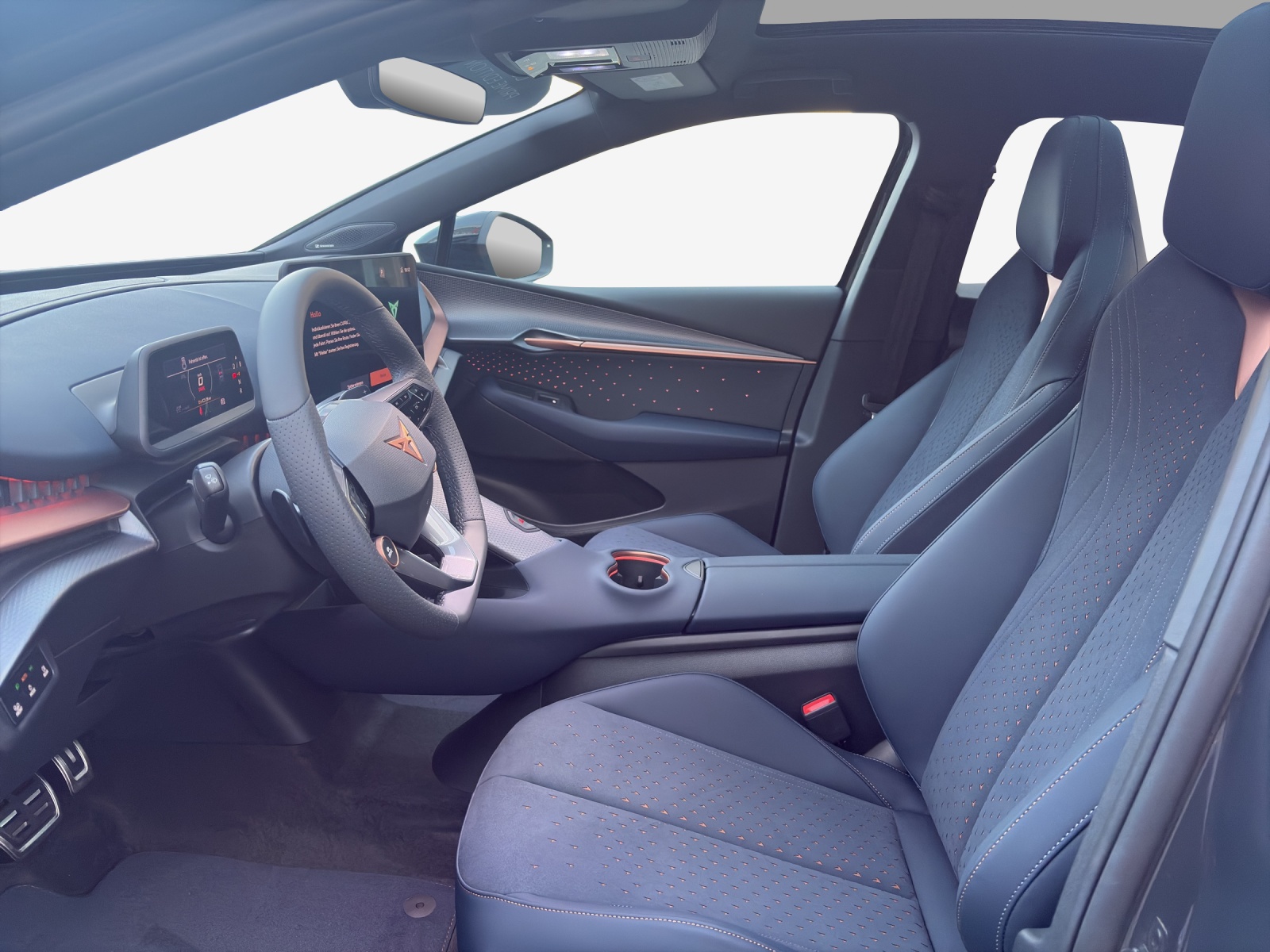 10.25" Full Digital Cockpit Abgedunkelte Scheiben ab B-Säule hinten Airbag: Airbag Beifahrer deaktivierbar Airbag: Airbag Fahrer und Beifahrer Airbag: Seitenairbags für Fahrer und Beifahrer Alarmanlage mit Innenraumüberwachung Assist: Aufmerksamkeits- und Müdigkeitserkennung (ADA) Assist: Ausweichunterstützung / Abbiegeassistent Assist: Exit Assist (Ausparkassistent) Assist: Exit Warning (Ausstiegswarner) Assist: Intelligenter Geschwindigkeitsassistent Assist: Parklenkassistent RPA (Remote Park Assist) Assist: PreCrash Sicherheitssystem Assist: Prädiktive automatische Distanzregelung ACC Assist: Regen-/Lichtsensor Assist: Side Assist (Spurwechselassistent) Assist: Top View Camera (Rundumblick) Assist: Traction Control (TCS) Assist: Traffic sign recognition (Verkehrszeichenerkennung) Assist: eCall Notruffunktion Augmented Reality Head-up-Display Aussenspiegel elektrisch einstell-, beheiz- und einklappbar mit Beifahrerabsenkfunktion- Automatisch abblendender Innenrückspiegel Bidirektionales Laden (DC/AC) Dreipunkt-Automatiksicherheitsgurte auf allen Plätzen Einstiegsleisten beleuchtet Elektrische Fensterheber vorne und hinten mit Komfortschaltung und Einklemmschutz Elektrische Lüftungsschlitze Elektronisches Stabilitäts-Programm (ESP) Fahrwerk: Adaptive Fahrwerksregelung DCC Garantie: Cupra 12 Jahre Gewährleistung gegen Karosserie-Durchrostung Garantie: Cupra 3 Jahre Lack-Gewährleistung Garantie: Cupra Garantie 2 Jahre ohne Kilometerbegrenzung Garantie: Cupra Hersteller-Garantieverlängerung für das 3., 4. und 5. Jahr / max.100000 km Getriebe: 1-Gang Automatik Heckklappe elektrisch öffnend und schliessend "Virtual Pedal" Klima: 3-Zonen Climatronic mit Fondraumbedienung LED Ambientebeleuchtung "IMMERSIVE" Lackierung: Uni-Lackierung Lenkrad: Supersportlenkrad mit Drive Profile-Knopfsystem,beheizbar Licht: Drittes Bremslicht Licht: LED Heckleuchten mit beleuchtetem 3D CUPRA Logo Licht: Matrix LED Fernlicht Licht: Matrix LED Scheinwerfer Licht: Nebelschlussleuchte Media: 15" Infotainment (MIB3) Media: 2 USB C Anschlüsse hinten und vorne Media: Bluetooth-Freisprecheinrichtung Media: CUPRA Connect Online Infotainment Media: CUPRA Connect Remote & Access Media: CUPRA Connect Safety & Services Media: CUPRA Navigationssystem Media: DAB+ (Digital Audio Broadcasting) Media: SENNHEISER Sound System mit 12 High-End-Lautsprecher inkl. 300 Watt Subwoofer Media: Wireless Charger zur induktiven Smartphone Ladung Polster: Sitzbezüge in Dinamica "Dark Night" Räder: Alufelgen 9J x 21", "Katla" Machined Sport in Black/Copper Räder: Reifendruckkontrollsystem Schlüsselloses Schliess- und Startsystem (KESSY Advance) Servolenkung geschwindigkeitsabhängig Sitze: Elektrische Sitzverstellung mit Memory-Funktion für Fahrer- und Beifahrerseite Sitze: Geteilt abklappbare Rücksitzlehne mit Mittelarmlehne und Durchlademöglichkeit Sitze: Kindersitzbefestigungssystem ISOFIX Sitze: Kopfstützen hinten höhenverstellbar Sitze: Kopfstützen vorne (integrierte) Sitze: Lendenwirbelstütze Fahrer- und Beifahrerseite elektrisch einstellbar Sitze: Sitzheizung für Vorder- und Rücksitze, getrennt regelbar Sitze: Vordersitze höhenverstellbar Vorbereitung für Anhängevorrichtung Wegfahrsperre elektronisch Zentralverriegelung mit Fernbedienung