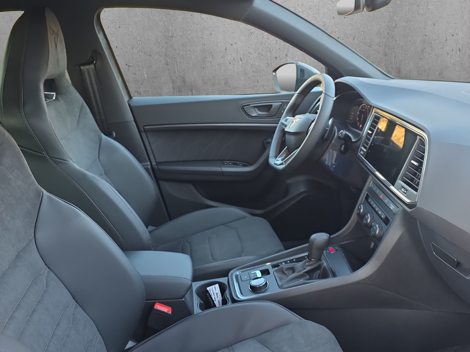 Serienausstattung ABS, EBV elektronische Bremskraft-verteilung Abgedunkelte Scheiben ab B-Säule hinten Airbag: Airbag Beifahrer deaktivierbar Airbag: Airbag Fahrer und Beifahrer Airbag: Knieairbag auf der Fahrerseite Airbag: Kopfairbags vorne und hinten Airbag: Seitenairbags für Fahrer und Beifahrer Assist: Aufmerksamkeits- und Müdigkeitserkennung (ADA) Assist: Einparkhilfe vorne und hinten mit optischer Anzeige Assist: Elektronische Parkbremse mit Auto Hold Funktion Assist: Lane assist (Spurhalteassistent) Assist: Multifunktionskamera Assist: Multikollisionsbremse Assist: Parklenkassistent Assist: Regen-/Lichtsensor Assist: Traffic sign recognition (Verkehrszeichenerkennung) Aussenspiegel elektrisch einstell-, beheiz- und einklappbar Aussenspiegel mit Beifahrerspiegelabsenkung Aussenspiegel mit LED-Umfeldbeleuchtung Aussenspiegel und Türgriffe in Wagenfarbe Automatisch abblendender Innenrückspiegel Beleuchtete Sonnenblende links mit abdeckbarem Spiegel und Lasche, rechts mit abdeckbarem Spiegel CUPRA Drive Profile mit "driving experience button" Comfort, Sport, CUPRA, Individual, Snow, Offroad Dekor: Dekorblenden in Grau glänzend Dekor: Türverkleidung mit Ambient light Dreipunkt-Automatiksicherheitsgurte auf allen Plätzen ESC mit EBA, DSR, XDS und Reifendruckkontrolle Einstiegsleisten in Aluminium Elektrische Fensterheber vorne und hinten mit Komfortschaltung und Einklemmschutz Fahrwerk: Progressivlenkung Fussmatten vorne und hinten Garantie: Cupra 12 Jahre Gewährleistung gegen Karosserie-Durchrostung Garantie: Cupra 3 Jahre Lack-Gewährleistung Garantie: Cupra Hersteller-Garantieverlängerung für das 3., 4. und 5. Jahr / max.100000 km Heckscheiben-Wisch-/Waschanlage mit Intervall Klima: 3-Zonen Climatronic Lackierung: Uni-Lackierung Lenkrad: Beheizbares Ledermultifunktionslenkrad mit Tiptronic Licht: Coming-home-Funktion Licht: Drittes Bremslicht Licht: LED-Heckleuchten mit dynamischem Blinklicht Licht: LED-Nebelscheinwerfer mit Cornering-Funktion Licht: LED-Scheinwerfer für Abblend- und Fernlicht Licht: Nebelschlussleuchte Media: 2 USB C Anschlüsse hinten und vorne Media: 9.2" 3D Infotainment (MIB3) Media: CUPRA Connect Online Infotainment für Navigationssystem Media: CUPRA Connect Remote & Access für Navigationssystem Media: CUPRA Connect Safety & Services für Navigationssystem Media: CUPRA FullLink für Navigationssystem Media: CUPRA Navigationssystem Media: DAB+ (Digital Audio Broadcasting) Media: Kartenmaterial ''Europa'' Media: Mobiltelefon Freisprechanlage Bluetooth Paket: Fahrerassistenzpaket M Pyrotechnische Gurtstraffer und Gurtkraftbegrenzer Radlaufblenden in Wagenfarbe Räder: Alufelgen 8J x 19", Machined Sport Black/Silver Räder: Reifenreparatur-Set (Tire Fit) Schlüsselloses Schliess- und Startsystem (KESSY) Servolenkung mit geschwindigkeitsabhängiger Lenkkraftunterstützung Sitze: 2 verstellbare Kopfstützen vorne und 3 hinten Sitze: CUPRA Sportschalensitze in Dinamica "Black" Sitze: Easy Backseat Release (Rücksitzentriegelung im Kofferraum) Sitze: Geteilt abklappbare Rücksitzlehne 1/3 - 2/3 Sitze: Kindersitzverankerung ISOFIX hinten Sitze: Mittelarmlehne hinten Sitze: Mittelarmlehne vorne Sportabgasanlage mit 2-fach Endrohr Stopp - Start- und Rekuperationssystem Wegfahrsperre elektronisch Zentralverriegelung mit Funkfernbedienung, 2 Funkschlüssel