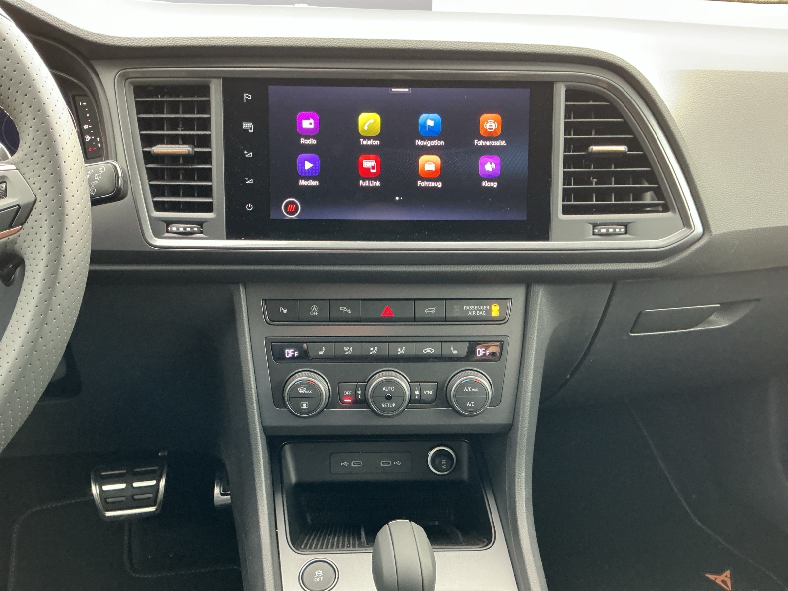 Sonderausstattung Anhängevorrichtung (Einklappbar) Heckklappe elektrisch öffnend und schliessend "Virtual Pedal" Lackierung: Metallic-Lackierung Lenkrad: Supersportlenkrad mit Start-/ Drive Profile-Knopfsystem und Schaltwippen Media: CUPRA SOUND - 9 High-End Lautsprecher, Subwoofer, 340W Verstärker, Surroundsound Paket: Fahrerassistenzpaket XL Panorama-Schiebe-/Ausstelldach Räder: Ersatzrad platzsparend Sitze: Fahrersitz elektrisch einstellbar