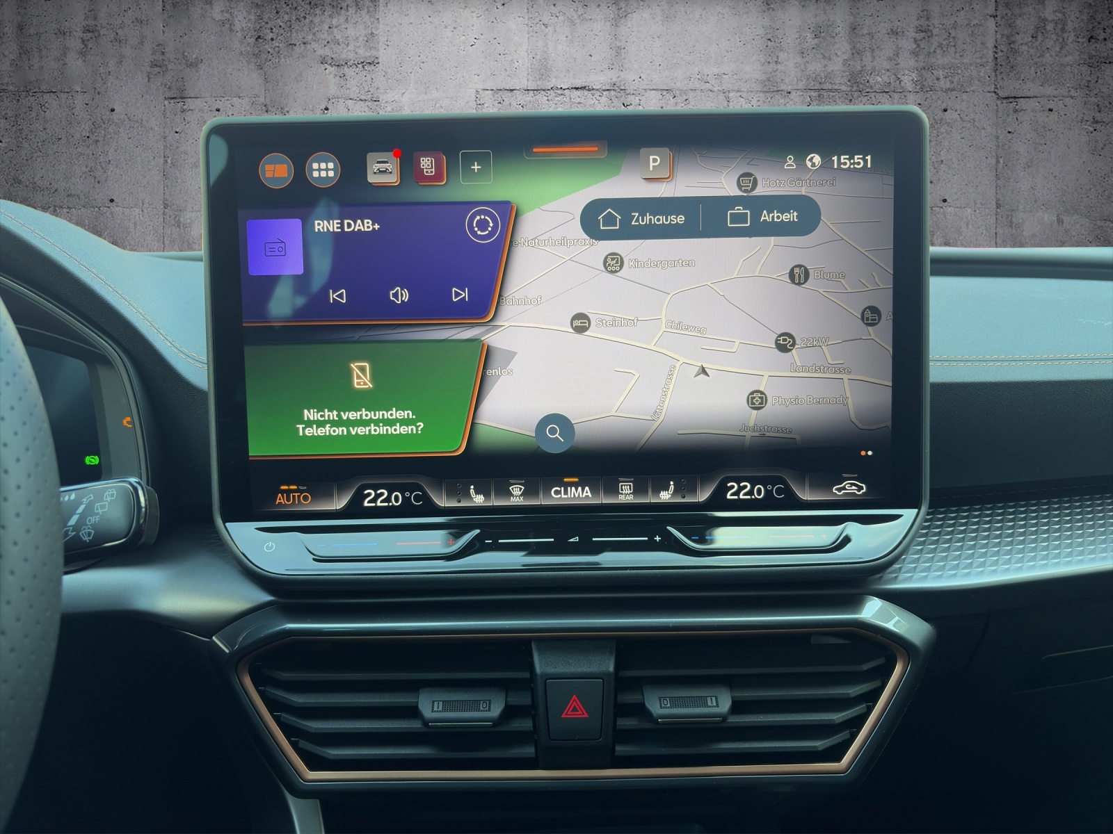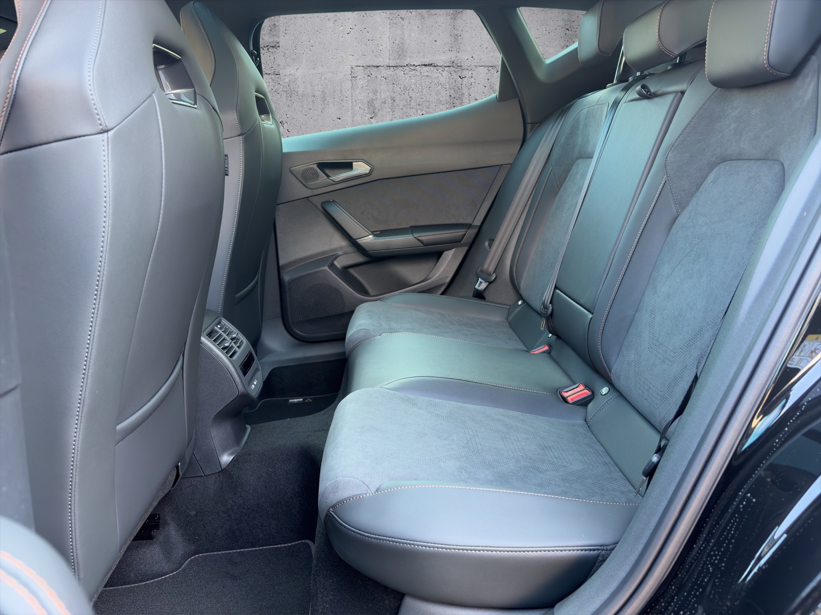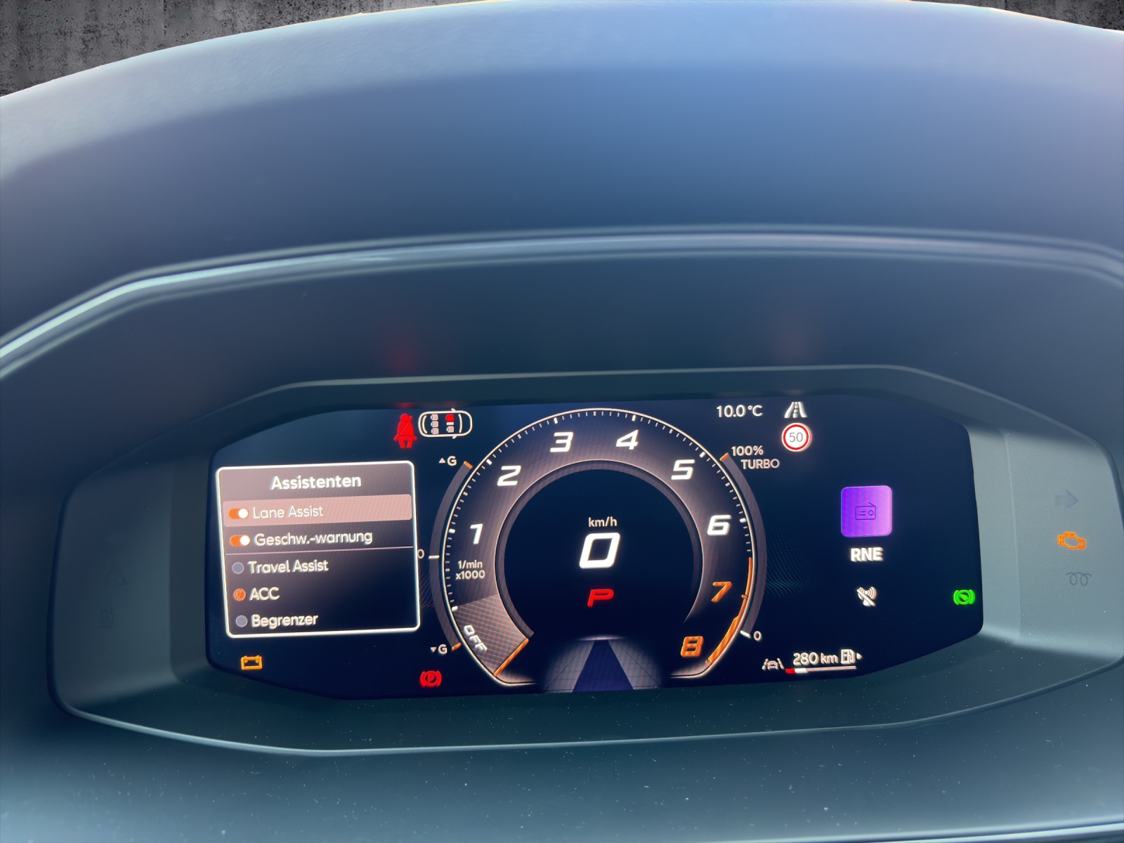 3-Punkt-Sicherheitsgurte auf allen Plätzen ABS, EBV elektronische Bremskraft-verteilung Abgedunkelte Scheiben ab B-Säule hinten Airbag: Airbag Beifahrer deaktivierbar Airbag: Airbag Fahrer und Beifahrer Airbag: Kopfairbags vorne und hinten Airbag: Seitenairbags für Fahrer und Beifahrer Assist: Aufmerksamkeits- und Müdigkeitserkennung (ADA) Assist: Ausweichunterstützung / Abbiegeassistent Assist: Automatische Distanzregelung ACC Assist: City Notbremsfunktion Assist: Einparkhilfe vorne und hinten mit Rückfahrkamera Assist: Elektronische Parkbremse mit Auto Hold Funktion Assist: Lane assist (Spurhalteassistent) Assist: Multifunktionskamera Assist: Multikollisionsbremse Assist: Prädiktive Speedlimiter Assist: Regen-/Lichtsensor Assist: Traction Control (TCS) Assist: Traffic sign recognition (Verkehrszeichenerkennung) Assist: Umfeldbeobachtung Front-Assist Aussenspiegel mit Beifahrerspiegelabsenkung Aussenspiegel mit LED-Umfeldbeleuchtung Automatisch abblendender Innenrückspiegel Beleuchtete Sonnenblende links mit abdeckbarem Spiegel und Lasche, rechts mit abdeckbarem Spiegel ESC mit EBA, DSR, XDS und Reifendruckkontrolle Elektrische Fensterheber vorne und hinten mit Komfortschaltung und Einklemmschutz Fahrwerk: Adaptive Fahrwerksregelung DCC Fahrwerk: Progressivlenkung Fussmatten vorne und hinten Garantie: Cupra 12 Jahre Gewährleistung gegen Karosserie-Durchrostung Garantie: Cupra 3 Jahre Lack-Gewährleistung Garantie: Cupra Garantie 2 Jahre ohne Kilometerbegrenzung Garantie: Cupra Hersteller-Garantieverlängerung für das 3., 4. und 5. Jahr / max.100000 km Heckscheiben-Wisch-/Waschanlage mit Intervall Kindersitzverankerung ISOFIX (äussere Plätze hinten) Klima: 3-Zonen Climatronic mit Fondraumbedienung Lackierung: Uni-Lackierung Lenkrad: Supersportlenkrad mit Start-/ Drive Profile-Knopfsystem und Schaltwippen, beheizbar Licht: Coming-home-Funktion Licht: Drittes Bremslicht Licht: Durchgehende Full LED-Heckleuchten Licht: Fernlicht-Assistent Licht: LED Heckleuchten mit beleuchtetem 3D CUPRA Logo Licht: LED-Heckleuchten mit dynamischem Blinklicht Licht: LED-Nebelscheinwerfer mit Cornering-Funktion Licht: Leuchtweitenregulierung dynamisch Licht: Nebelschlussleuchte Media: 12,9" Infotainment (MIB3) Media: 2 USB C Anschlüsse hinten und vorne Media: CUPRA Connect Online Infotainment Media: CUPRA Connect Remote & Access Media: CUPRA Connect Safety & Services Media: CUPRA Connectivity Box Media: CUPRA Navigationssystem 12.9" Infotainment Media: DAB+ (Digital Audio Broadcasting) Media: IMMERSIVE by SENNHEISER Media: Mobiltelefon Freisprechanlage Bluetooth Pyrotechnische Gurtstraffer und Gurtkraftbegrenzer Räder: Alufelgen 8J x 19", "SANDSTORM" Machined in Silver Räder: Reifendruckkontrollsystem Räder: Reifenreparatur-Set (Tire Fit) Servolenkung mit geschwindigkeitsabhängiger Lenkkraftunterstützung Sitze: 3 verstellbare Kopfstützen hinten Sitze: Geteilt abklappbare Rücksitzlehne 1/3 - 2/3 Sitze: Kopfstützen vorne (integrierte) Sitze: Mittelarmlehne hinten Sitze: Mittelarmlehne vorne Sitze: Sitzheizung für Vordersitze, getrennt regelbar Sitze: Vordersitze höhenverstellbar mit Lendenwirbelstütze Stopp - Start- und Rekuperationssystem Wegfahrsperre elektronisch Zentralverriegelung mit Funkfernbedienung, 2 Funkschlüssel