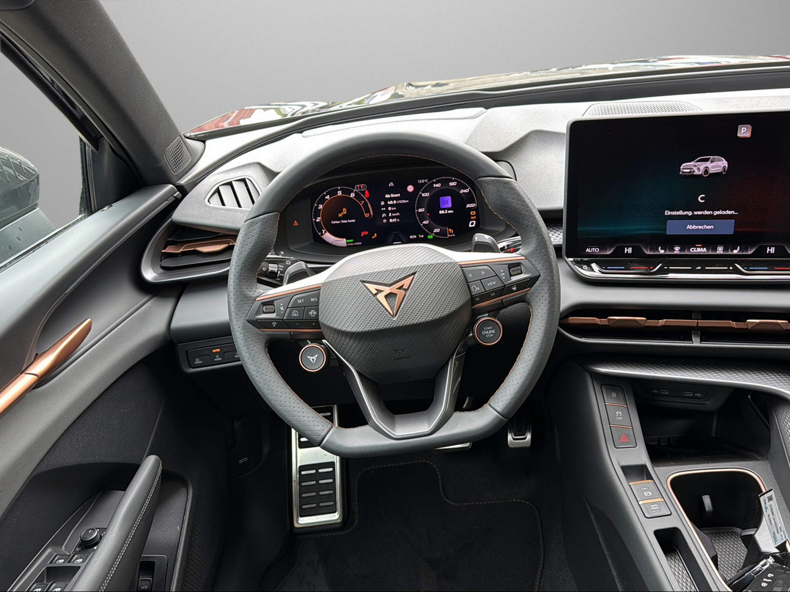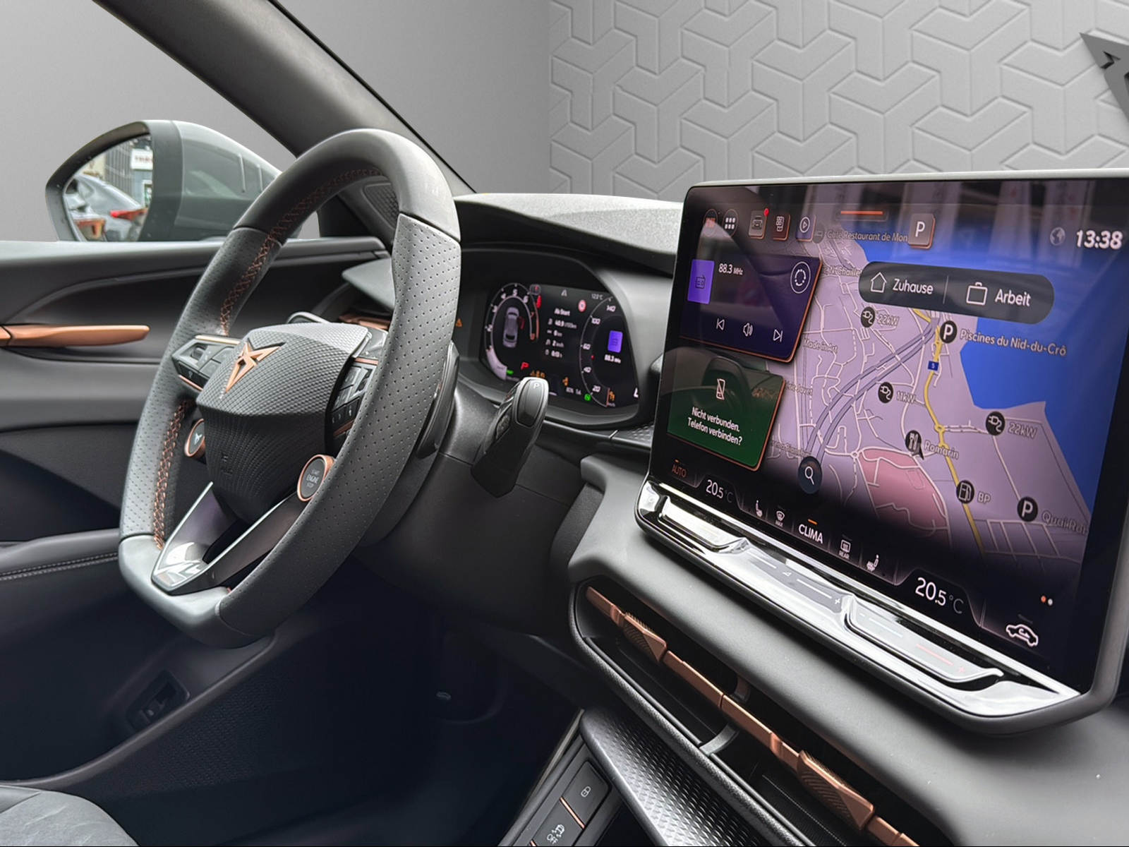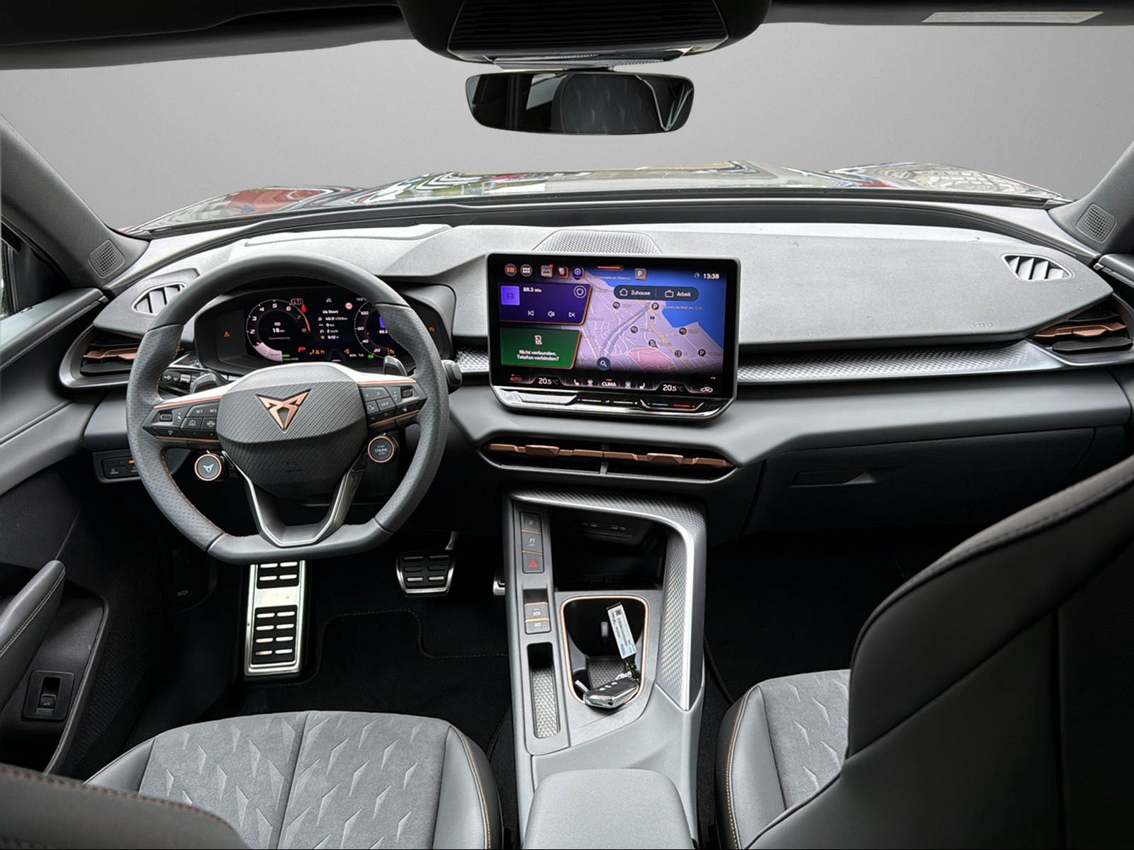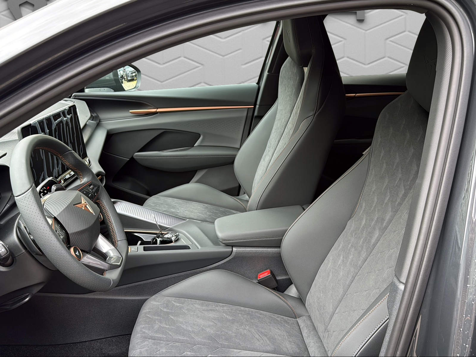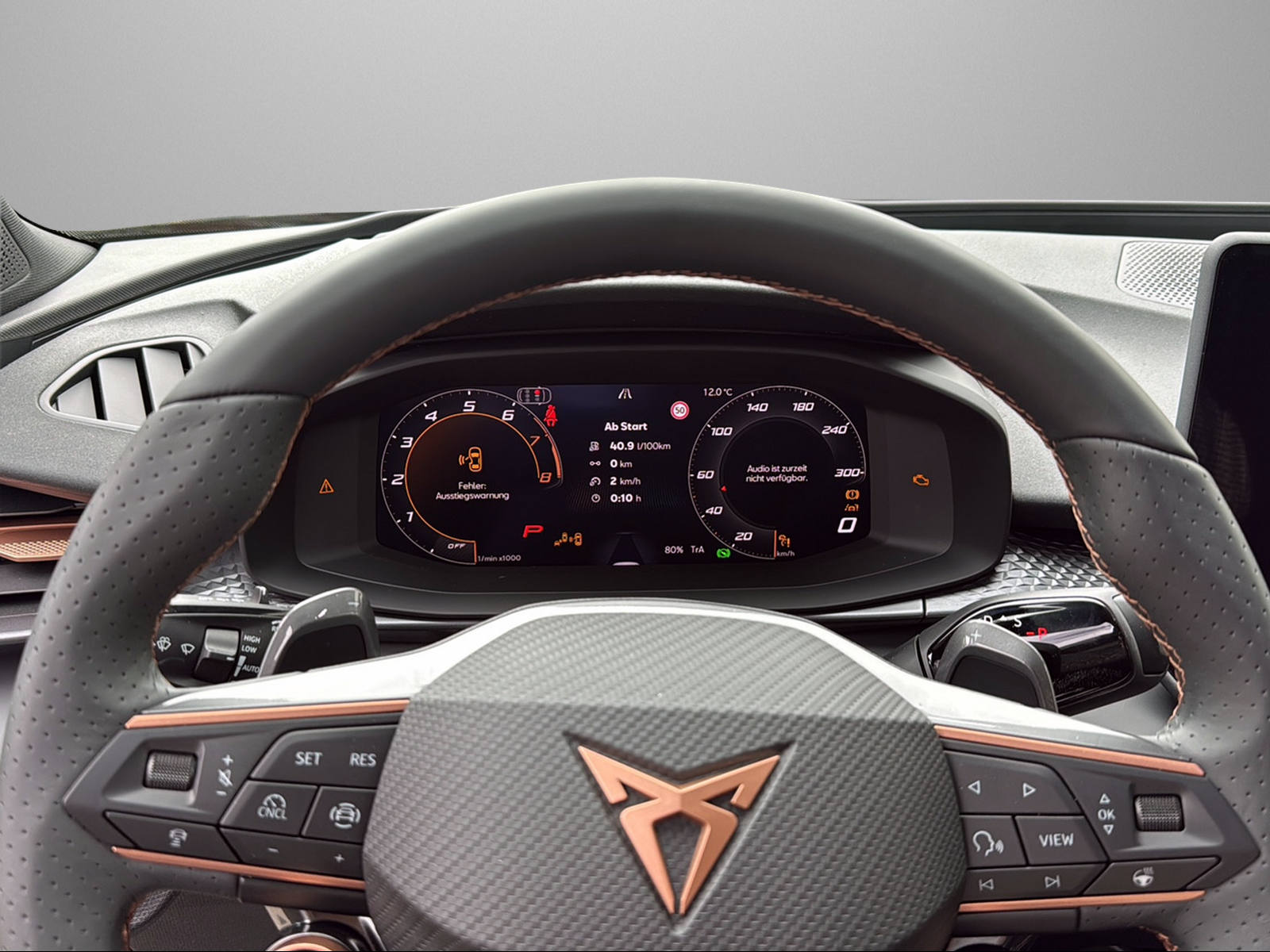 3-Punkt-Sicherheitsgurte auf allen Plätzen ABS, EBV elektronische Bremskraft-verteilung Airbag: Airbag Beifahrer deaktivierbar Airbag: Airbag Fahrer und Beifahrer Airbag: Kopfairbags vorne und hinten Airbag: Seitenairbags für Fahrer und Beifahrer Assist: Aufmerksamkeits- und Müdigkeitserkennung (ADA) Assist: Ausweichunterstützung / Abbiegeassistent Assist: City Notbremsfunktion Assist: Einparkhilfe vorne und hinten mit Rückfahrkamera Assist: Elektronische Parkbremse mit Auto Hold Funktion Assist: Lane assist (Spurhalteassistent) Assist: Multifunktionskamera Assist: Multikollisionsbremse Assist: Prädiktive Speedlimiter Assist: Traffic sign recognition (Verkehrszeichenerkennung) Assist: Umfeldüberwachungssystem "Front-Assist" Aussenspiegel mit LED-Umfeldbeleuchtung Beleuchtete Sonnenblende links mit abdeckbarem Spiegel und Lasche, rechts mit abdeckbarem Spiegel Capteur de pluie et lumière ESC mit EBA, DSR, XDS und Reifendruckkontrolle Elektrische Fensterheber vorne und hinten mit Komfortschaltung und Einklemmschutz Fahrwerk: CUPRA Sportfahrwerk Fahrwerk: Progressivlenkung Full Digital Cockpit 10.25" Garantie: CUPRA Prolongation de garantie constructeur pour les 3ème, 4ème et 5ème années / Garantie: Cupra 12 ans de garantie contre perforation de la carrosserie Garantie: Cupra 2 ans de garantie, kilométrage illimité Garantie: Cupra 3 ans de garantie pour la peinture Heckscheiben-Wisch-/Waschanlage mit Intervall Lackierung: Uni-Lackierung Licht: Drittes Bremslicht Licht: Durchgehende Full LED-Heckleuchten Licht: LED Heckleuchten mit beleuchtetem 3D CUPRA Logo Licht: LED-Heckleuchten mit dynamischem Blinklicht Licht: LED-Nebelscheinwerfer mit Cornering-Funktion Licht: LED-Scheinwerfer für Abblend- und Fernlicht Licht: Leuchtweitenregulierung dynamisch Licht: Nebelschlussleuchte Media: 12,9" Infotainment (MIB3) Media: 2 USB C Anschlüsse hinten und vorne Media: CUPRA Navigationssystem Media: DAB+ (Digital Audio Broadcasting) Media: Mobiltelefon Freisprechanlage Bluetooth Mittelarmlehne vorne und hinten Mèdias: CUPRA Connect Remote & Access / CUPRA Connect Safety & Services Mèdias: CUPRA Connectivity Box Pyrotechnische Gurtstraffer und Gurtkraftbegrenzer Roues: Alufelgen 8J x 18", "ATOMIC" usiné en Dark Shadow Räder: Reifendruckkontrollsystem Rétroviseur intérieur anti-éblouissement Servolenkung mit geschwindigkeitsabhängiger Lenkkraftunterstützung Sitze: 3 verstellbare Kopfstützen hinten Sitze: Geteilt abklappbare Rücksitzlehne 1/3 - 2/3 Sitze: Kindersitzverankerung ISOFIX hinten Sitze: Vordersitze höhenverstellbar mit Lendenwirbelstütze Stopp - Start- und Rekuperationssystem Tapis de sol avant et arrière Wegfahrsperre elektronisch Zentralverriegelung mit Funkfernbedienung, 2 Funkschlüssel