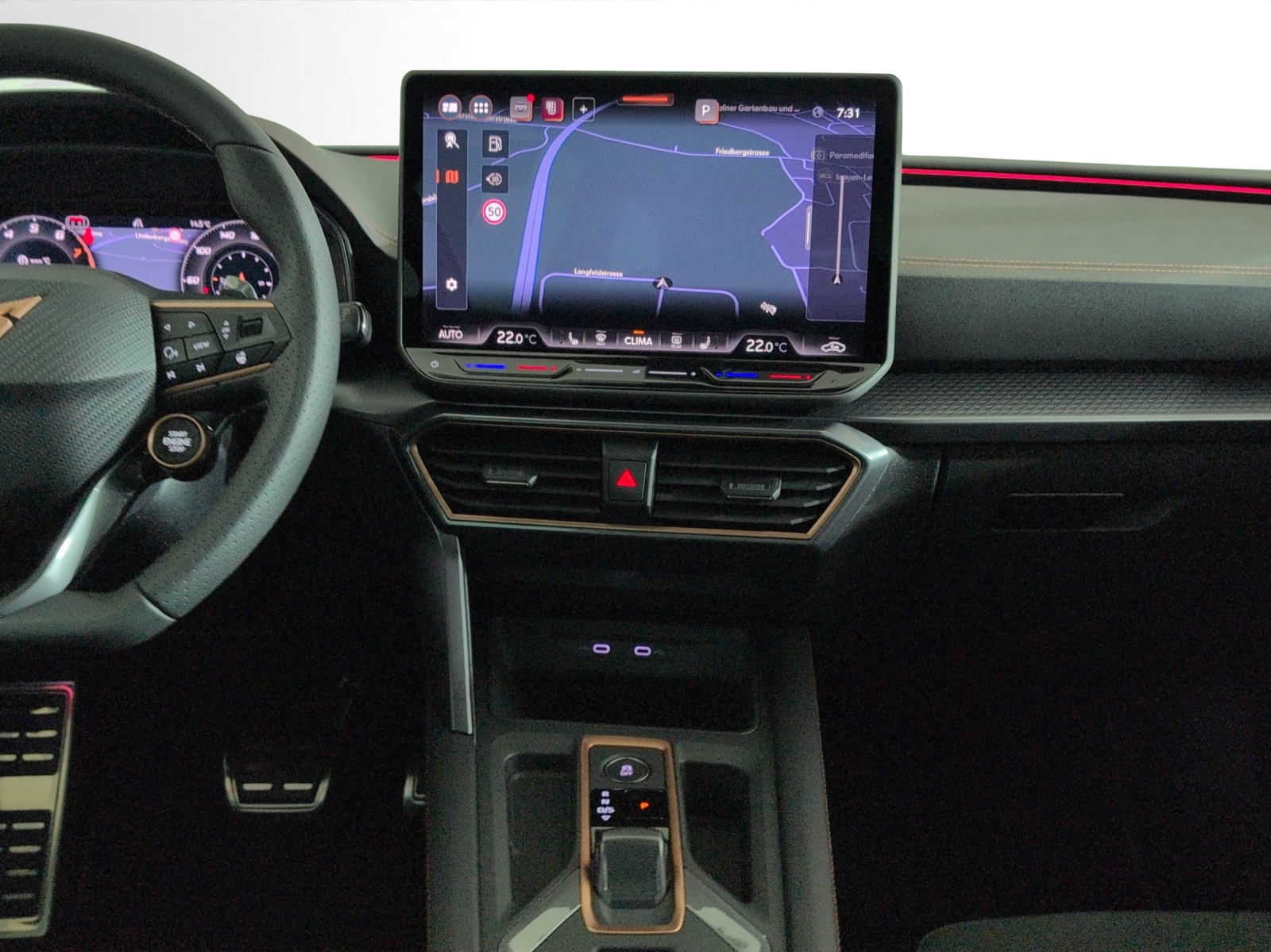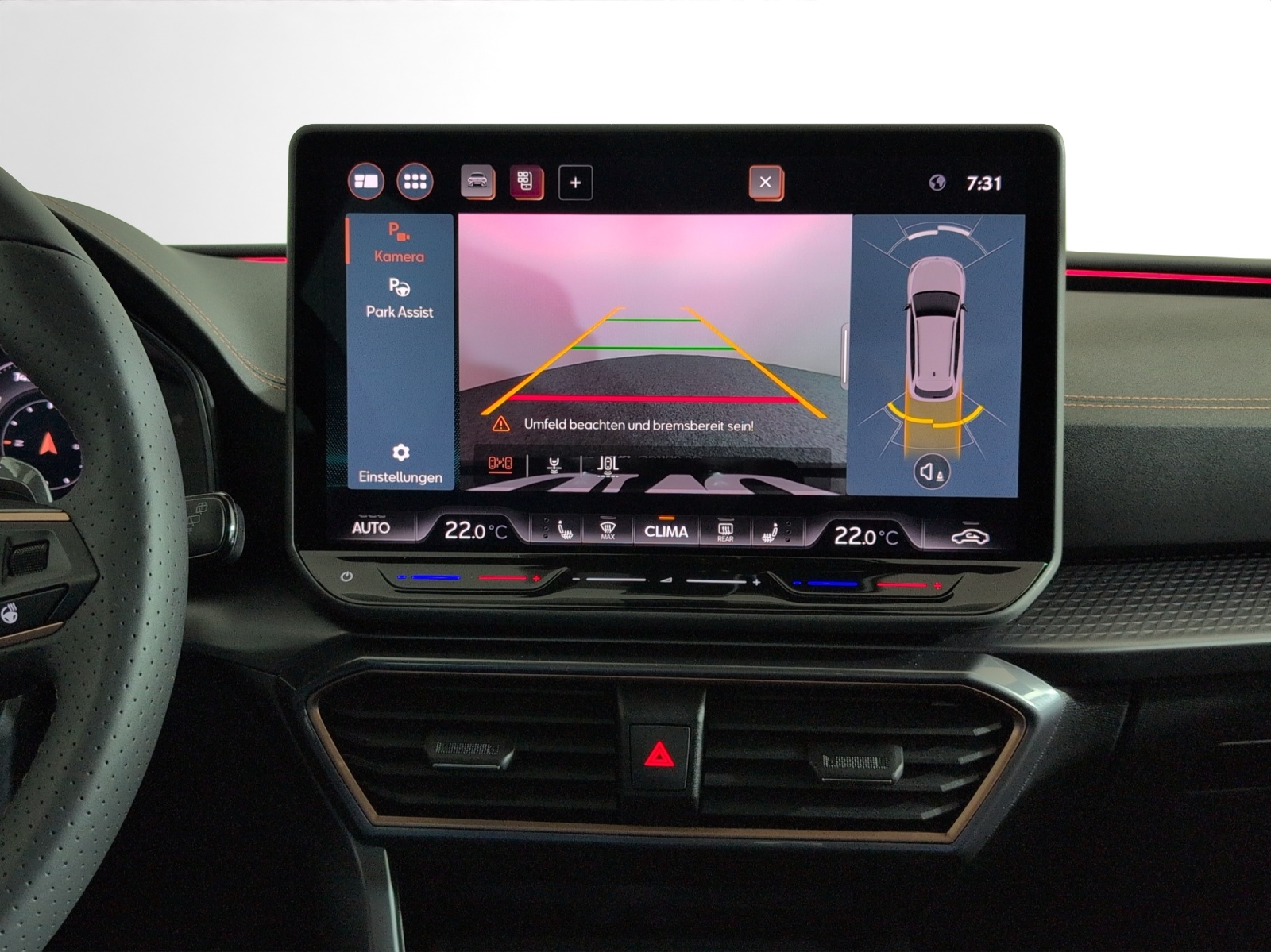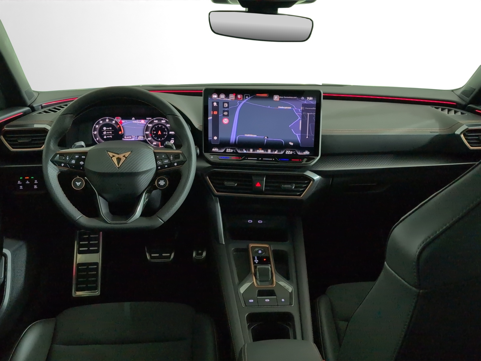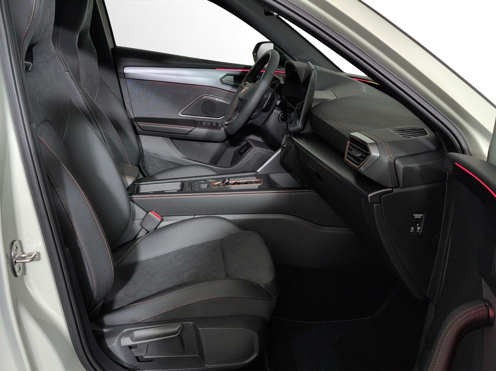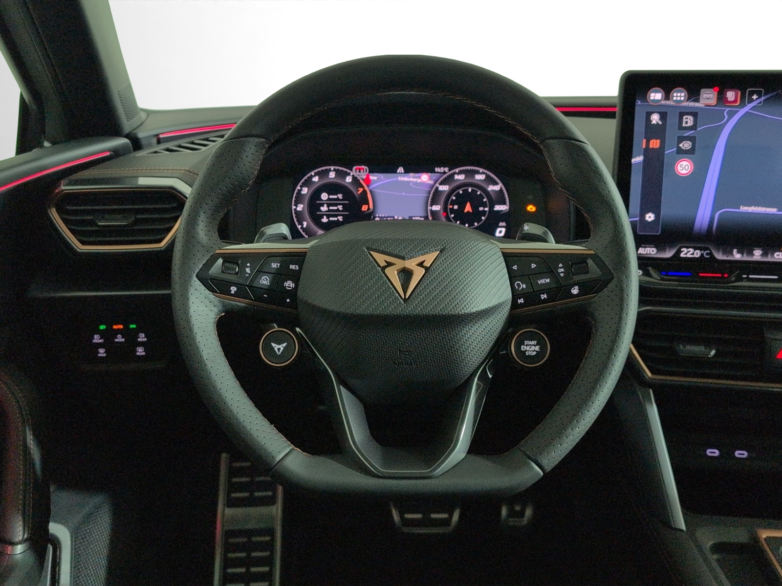 Serienausstattung ABS, EBV elektronische Bremskraft-verteilung Abgedunkelte Scheiben ab B-Säule hinten Airbag: Airbag Beifahrer deaktivierbar Airbag: Airbag Fahrer und Beifahrer Airbag: Seitenairbags vorne mit Kopfairbag und Interaktionsairbag vorne Assist: Aufmerksamkeits- und Müdigkeitserkennung (ADA) Assist: Ausweichunterstützung / Abbiegeassistent Assist: Automatische Distanzregelung ACC Assist: Einparkhilfe vorne und hinten Assist: Elektronische Parkbremse mit Auto Hold Funktion Assist: Lane assist (Spurhalteassistent) Assist: Multifunktionskamera Assist: Multikollisionsbremse Assist: Prädiktive Speedlimiter Assist: Regen-/Lichtsensor Assist: Traction Control (TCS) Assist: Traffic sign recognition (Verkehrszeichenerkennung) CUPRA Drive Profile mit "driving experience button" Comfort, Performance, Drift, Individual Dekor: Dekorblenden in Copper Dreipunkt-Automatiksicherheitsgurte auf allen Plätzen ESC mit EBA, DSR und Reifendruckkontrolle Elektrische Fensterheber vorne und hinten mit Komfortschaltung und Einklemmschutz Fahrwerk: Adaptive Fahrwerksregelung DCC Fussmatten vorne und hinten Garantie: Cupra 12 Jahre Gewährleistung gegen Karosserie-Durchrostung Garantie: Cupra 3 Jahre Lack-Gewährleistung Garantie: Cupra Garantie 2 Jahre ohne Kilometerbegrenzung Garantie: Cupra Hersteller-Garantieverlängerung für das 3., 4. und 5. Jahr / max.100000 km Heckscheiben-Wisch-/Waschanlage mit Intervall Innenspiegel automatisch abblendbar Klima: 3-Zonen Climatronic mit Fondraumbedienung Lackierung: Uni-Lackierung Lenkrad: Supersportlenkrad mit Start-/ Drive Profile-Knopfsystem und Schaltwippen, beheizbar Licht: Coming Leaving Home Funktion Licht: Drittes Bremslicht Licht: Durchgehende Full LED-Heckleuchten Licht: Dynamische LED-Blinker Licht: Fernlicht-Assistent Licht: LED Heckleuchten mit beleuchtetem 3D CUPRA Logo Licht: LED-Nebelscheinwerfer mit Cornering-Funktion Licht: LED-Scheinwerfer für Abblend- und Fernlicht Licht: Leuchtweitenregulierung Licht: Nebelschlussleuchte Media: 12,9" Infotainment (MIB3) Media: 2 USB C Anschlüsse hinten und vorne Media: CUPRA Connect Remote & Access Media: CUPRA Connect Safety & Services Media: CUPRA Connectivity Box Media: DAB+ (Digital Audio Broadcasting) Media: Mobiltelefon Freisprechanlage Bluetooth Pyrotechnische Gurtstraffer und Gurtkraftbegrenzer vorne Räder: Alufelgen 8J x 19", "POLAR" Machined in Sport Black Silver Räder: Reifenreparatur-Set (Tire Fit) Servolenkung mit geschwindigkeitsabhängiger Lenkkraftunterstützung Sicherheitsgurtkontrolle für alle Sitze Sitze: 2 verstellbare Kopfstützen vorne und 3 hinten Sitze: Geteilt abklappbare Rücksitzlehne 1/3 - 2/3 Sitze: Kindersitzverankerung ISOFIX hinten Sitze: Kopfstützen vorne (integrierte) Sitze: Lendenwirbelstütze in den Vordersitzlehnen Sitze: Mittelarmlehne hinten Sitze: Mittelarmlehne vorne Sitze: Sitzheizung für Vordersitze, getrennt regelbar Sitze: Vordersitze höhenverstellbar Sonnenblende Fahrer und Beifahrerseite Stopp - Start- und Rekuperationssystem Wegfahrsperre elektronisch Zentralverriegelung mit Funkfernbedienung, 2 Funkschlüssel