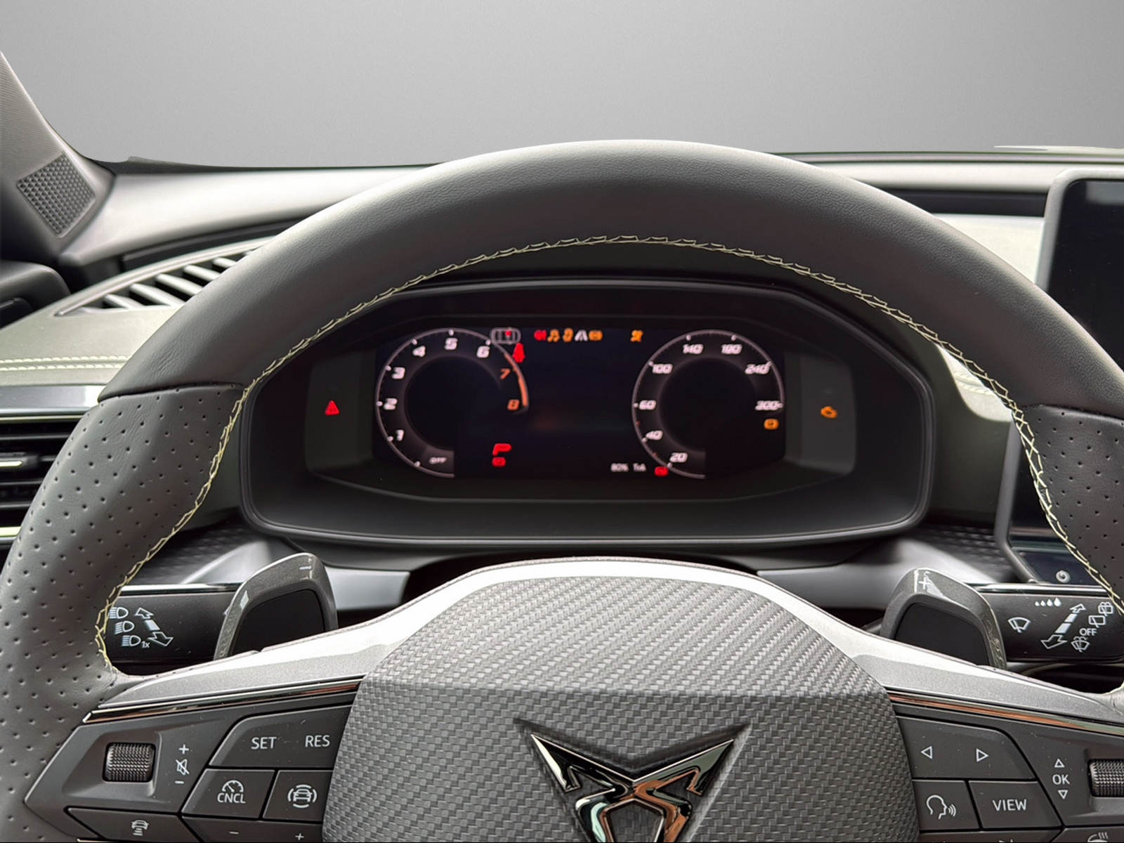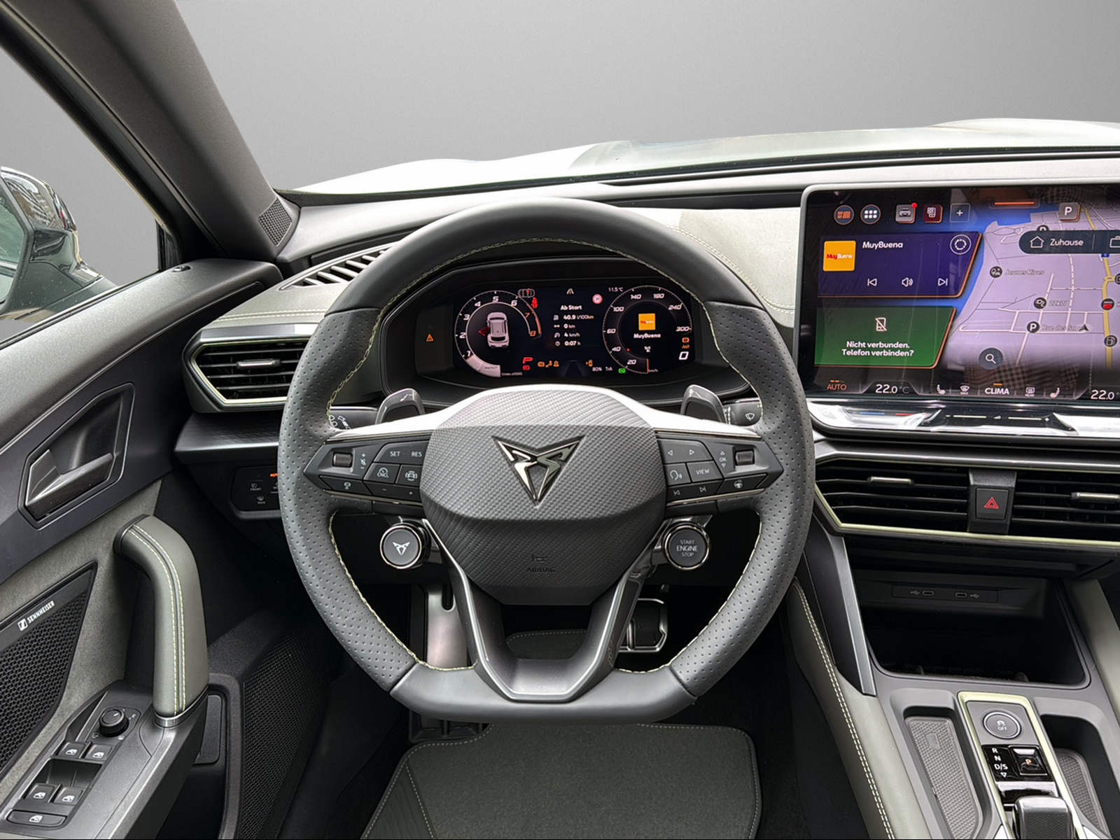 3-Punkt-Sicherheitsgurte auf allen Plätzen ABS, EBV elektronische Bremskraft-verteilung Abgedunkelte Scheiben ab B-Säule hinten Airbag: Airbag Beifahrer deaktivierbar Airbag: Airbag Fahrer und Beifahrer Airbag: Kopfairbags vorne und hinten Airbag: Seitenairbags für Fahrer und Beifahrer Ancrage de siège enfant ISOFIX (sièges arrières ext.) Assist: Aufmerksamkeits- und Müdigkeitserkennung (ADA) Assist: Ausweichunterstützung / Abbiegeassistent Assist: Automatische Distanzregelung ACC Assist: City Notbremsfunktion Assist: Einparkhilfe vorne und hinten mit Rückfahrkamera Assist: Elektronische Parkbremse mit Auto Hold Funktion Assist: Lane assist (Spurhalteassistent) Assist: Multifunktionskamera Assist: Multikollisionsbremse Assist: Prädiktive Speedlimiter Assist: Regen-/Lichtsensor Assist: Traction Control (TCS) Assist: Traffic sign recognition (Verkehrszeichenerkennung) Assist: Umfeldbeobachtung Front-Assist Aussenspiegel mit Beifahrerspiegelabsenkung Aussenspiegel mit LED-Umfeldbeleuchtung Automatisch abblendender Innenrückspiegel Beleuchtete Sonnenblende links mit abdeckbarem Spiegel und Lasche, rechts mit abdeckbarem Spiegel ESC mit EBA, DSR, XDS und Reifendruckkontrolle Elektrische Fensterheber vorne und hinten mit Komfortschaltung und Einklemmschutz Fahrwerk: Adaptive Fahrwerksregelung DCC Fahrwerk: Progressivlenkung Garantie: CUPRA Prolongation de garantie constructeur pour les 3ème, 4ème et 5ème années / Garantie: Cupra 12 ans de garantie contre perforation de la carrosserie Garantie: Cupra 2 ans de garantie, kilométrage illimité Garantie: Cupra 3 ans de garantie pour la peinture Heckscheiben-Wisch-/Waschanlage mit Intervall Klima: 3-Zonen Climatronic mit Fondraumbedienung Lackierung: Uni-Lackierung Licht: Coming-home-Funktion Licht: Drittes Bremslicht Licht: Durchgehende Full LED-Heckleuchten Licht: Fernlicht-Assistent Licht: LED Heckleuchten mit beleuchtetem 3D CUPRA Logo Licht: LED-Heckleuchten mit dynamischem Blinklicht Licht: LED-Nebelscheinwerfer mit Cornering-Funktion Licht: Leuchtweitenregulierung dynamisch Licht: Nebelschlussleuchte Media: 12,9" Infotainment (MIB3) Media: 2 USB C Anschlüsse hinten und vorne Media: CUPRA Connect Online Infotainment Media: CUPRA Connect Remote & Access Media: DAB+ (Digital Audio Broadcasting) Media: IMMERSIVE by SENNHEISER Media: Mobiltelefon Freisprechanlage Bluetooth Media: Système de navigation CUPRA 12.9" Infotainment Mèdias: CUPRA Connect Safety & Services Mèdias: CUPRA Connectivity Box Pyrotechnische Gurtstraffer und Gurtkraftbegrenzer Roues: Jantes aluminium 8J x 19", "SANDSTORM"usinées argent Räder: Reifendruckkontrollsystem Räder: Reifenreparatur-Set (Tire Fit) Servolenkung mit geschwindigkeitsabhängiger Lenkkraftunterstützung Sieges: Appuie-tete avant (intégrés) Sitze: 3 verstellbare Kopfstützen hinten Sitze: Geteilt abklappbare Rücksitzlehne 1/3 - 2/3 Sitze: Mittelarmlehne hinten Sitze: Mittelarmlehne vorne Sitze: Sitzheizung für Vordersitze, getrennt regelbar Sitze: Vordersitze höhenverstellbar mit Lendenwirbelstütze Stopp - Start- und Rekuperationssystem Tapis de sol avant et arrière Volant: Volant Supersport avec système de bouton de démarrage-/ Drive Profile et Wegfahrsperre elektronisch Zentralverriegelung mit Funkfernbedienung, 2 Funkschlüssel