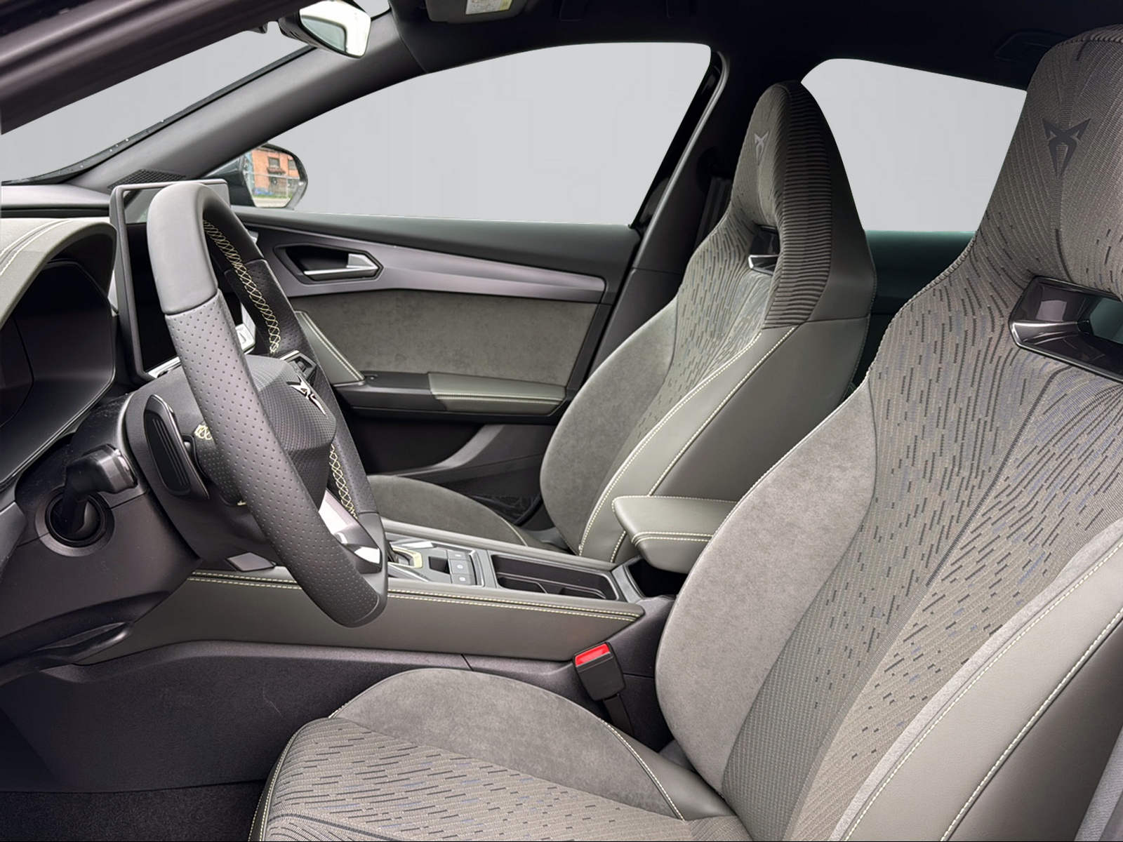 3-Punkt-Sicherheitsgurte auf allen Plätzen ABS, EBV elektronische Bremskraft-verteilung Abgedunkelte Scheiben ab B-Säule hinten Airbag: Airbag Beifahrer deaktivierbar Airbag: Airbag Fahrer und Beifahrer Airbag: Kopfairbags vorne und hinten Airbag: Seitenairbags für Fahrer und Beifahrer Ancrage de siège enfant ISOFIX (sièges arrières ext.) Assist: Aufmerksamkeits- und Müdigkeitserkennung (ADA) Assist: Ausweichunterstützung / Abbiegeassistent Assist: Automatische Distanzregelung ACC Assist: City Notbremsfunktion Assist: Elektronische Parkbremse mit Auto Hold Funktion Assist: Lane assist (Spurhalteassistent) Assist: Multifunktionskamera Assist: Multikollisionsbremse Assist: Prädiktive Speedlimiter Assist: Regen-/Lichtsensor Assist: Traction Control (TCS) Assist: Traffic sign recognition (Verkehrszeichenerkennung) Assist: Umfeldbeobachtung Front-Assist Aussenspiegel mit Beifahrerspiegelabsenkung Aussenspiegel mit LED-Umfeldbeleuchtung Automatisch abblendender Innenrückspiegel Beleuchtete Sonnenblende links mit abdeckbarem Spiegel und Lasche, rechts mit abdeckbarem Spiegel ESC mit EBA, DSR, XDS und Reifendruckkontrolle Elektrische Fensterheber vorne und hinten mit Komfortschaltung und Einklemmschutz Fahrwerk: Progressivlenkung Fussmatten vorne und hinten Garantie: CUPRA Prolongation de garantie constructeur pour les 3ème, 4ème et 5ème années / Garantie: Cupra 12 ans de garantie contre perforation de la carrosserie Garantie: Cupra 2 ans de garantie, kilométrage illimité Garantie: Cupra 3 ans de garantie pour la peinture Heckscheiben-Wisch-/Waschanlage mit Intervall Klima: 3-Zonen Climatronic mit Fondraumbedienung Lackierung: Uni-Lackierung Licht: Coming-home-Funktion Licht: Drittes Bremslicht Licht: Durchgehende Full LED-Heckleuchten Licht: Fernlicht-Assistent Licht: LED Heckleuchten mit beleuchtetem 3D CUPRA Logo Licht: LED-Heckleuchten mit dynamischem Blinklicht Licht: LED-Nebelscheinwerfer mit Cornering-Funktion Licht: LED-Scheinwerfer für Abblend- und Fernlicht Licht: Leuchtweitenregulierung dynamisch Licht: Nebelschlussleuchte Media: 12,9" Infotainment (MIB3) Media: 2 USB C Anschlüsse hinten und vorne Media: CUPRA Connect Online Infotainment Media: CUPRA Connect Remote & Access Media: DAB+ (Digital Audio Broadcasting) Media: Mobiltelefon Freisprechanlage Bluetooth Media: Système de navigation CUPRA 12.9" Infotainment Mèdias: CUPRA Connect Safety & Services Mèdias: CUPRA Connectivity Box Pyrotechnische Gurtstraffer und Gurtkraftbegrenzer Roues: Jantes aluminium 8J x 18", "TEMPEST" usinées argent Räder: Reifendruckkontrollsystem Räder: Reifenreparatur-Set (Tire Fit) Servolenkung mit geschwindigkeitsabhängiger Lenkkraftunterstützung Sieges: Appuie-tete avant (intégrés) Sitze: 3 verstellbare Kopfstützen hinten Sitze: Geteilt abklappbare Rücksitzlehne 1/3 - 2/3 Sitze: Mittelarmlehne hinten Sitze: Mittelarmlehne vorne Sitze: Sitzheizung für Vordersitze, getrennt regelbar Sitze: Vordersitze höhenverstellbar mit Lendenwirbelstütze Stopp - Start- und Rekuperationssystem Volant: Volant Supersport avec système de bouton de démarrage-/ Drive Profile et Wegfahrsperre elektronisch Zentralverriegelung mit Funkfernbedienung, 2 Funkschlüssel