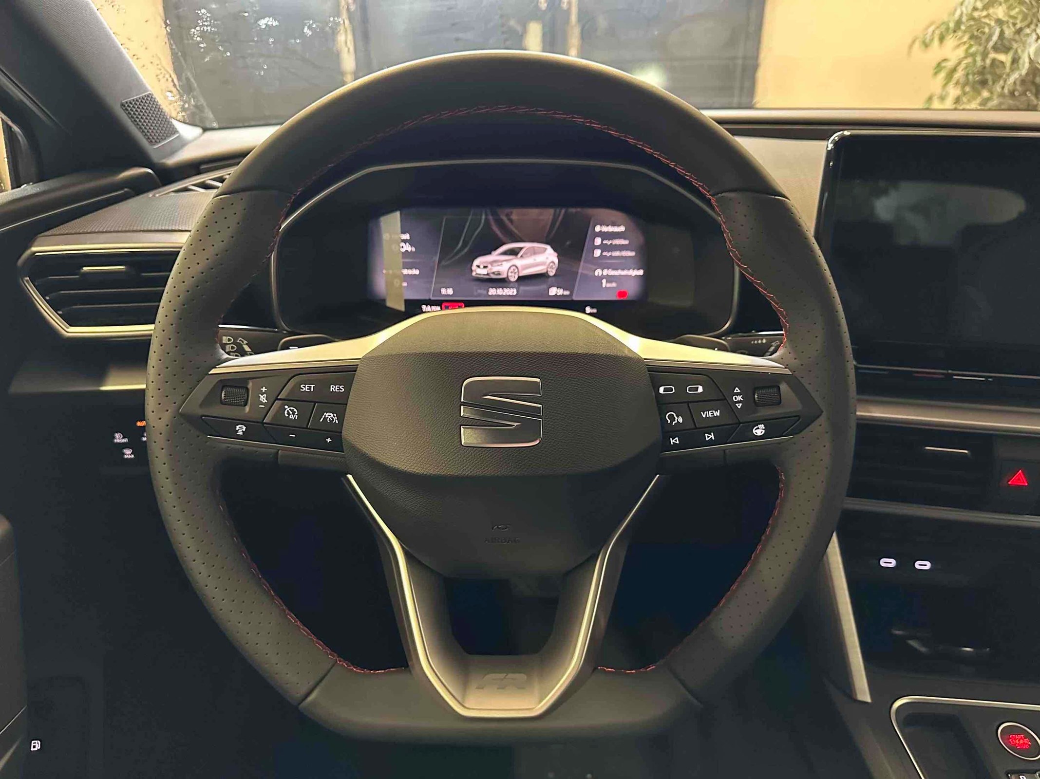 2 appuie-têtes réglables à lavant et 3 à larrière 3-Punkt-Sicherheitsgurte auf allen Plätzen Abgedunkeltes Scheibenglas (ab B-Säule) Airbag: Beifahrerairbag deaktivierbar Airbag: Fahrer und Beifahrer Airbag Airbag: Seitenairbags und Kopfairbags vorne Ancrage arrière pour siège enfant Isofix Assist: Fonction Auto-Hold Assist: Front-Assist Umfeldbeobachtung Assist: Multifunktionskamera Assist: Multikollisionsbremse Assist: Müdigkeitserkennung Assist: Spurhalteassistent Lane Assist Assist: Traction Control (TCS), désactivable Aussenspiegel elektrisch einstell-, beheiz- und einklappbar mit Beifahrerabsenkfunktion Carrosserie entièrement galvanisée Clima: Climatronic 3 zones avec unité de contrôle du climat à l'arrière Câble de charge pour prise domestique EBV (répartition électronique de la force de freinage) ESC mit EBA, DSR, XDS und Reifendruckkontrolle Enjoliveurs de seuil éclairés Fussmatten vorne und hinten Heckscheiben-Wisch-Waschanlage mit Intervall Lackierung: Uni-Lackierung Lenkrad: Ledermultifunktionslenkrad Lenkrad: Lenkrad mit Schaltwippen Leuchtweitenregulierung automatisch Licht: Bremslicht Drittes Licht: LED-Nebelscheinwerfer mit Cornering-Funktion Licht: Nebelschlussleuchte Logo "Handwriting-Optique" Lève-vitres électriques à l'avant et à l'arrière, à commande confort et sécurité antipincements Media: DAB+ (Digital Audio Broadcasting) Media: Mobiltelefon Freisprecheinrichtung Bluetooth Mèdias: Systeme de navigation SEAT Pack: Pack d'assistance à la conduite M pour système de navigation Poignées de porte la couleur du véhicule Pollenfilter (Staubfilter) Porte et panneau latéral en cuir partiel Rangement de documents sous le siege avant gauche Roues: Jantes en alu 7.5J x 17", "DYNAMIC" Räder: Reifenreparatur-Set (Tire Fit) Rétroviseurs extérieurs Cosmo Grey SEAT Garantie: Batterie garantie 8 ans ou 160'000 KM sur 70% de la puissance de la batterie SEAT Garantie: Garantie 12 Jahre Gewährleistung gegen Karosserie-Durchrostung SEAT Garantie: Garantie 2 ans / kilométrage illimité SEAT Garantie: Garantie 3 Jahre Lack-Gewährleistung SEAT Garantie: Garantie 3. et 4 ans ou 80'000 km Scheibenwischer vorne mit Intervall Schlüsselloses Schliess- und Startsystem (KESSY) Servolenkung geschwindigkeitsabhängig Sitze: Beifahrersitz höhenverstellbar Sitze: Fahrersitz höhenverstellbar Sitze: Mittelarmlehne vorne Sièges: Appui-lombaires pour siège conducteur Sièges: Ceintures de sécurité avec prétensionneurs pyrotechniques et limiteurs de tension Sièges: Support lombaire pour siege passager Sonnenblende Fahrer und Beifahrerseite mit Spiegel Verrouillage centralisé à radiocommande, 2 clés à fréquence radio Wegfahrsperre elektronisch