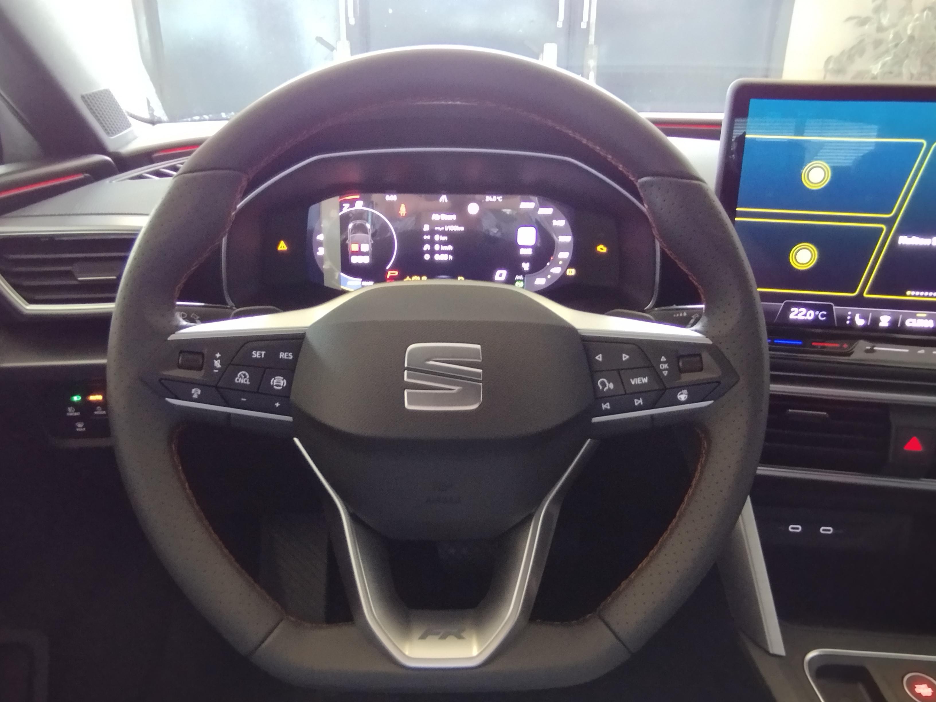 2 appuie-têtes réglables à lavant et 3 à larrière ABS / EBV (répartition électronique de la force de freinage) Abgedunkelte Scheiben ab B-Säule hinten Airbag: Airbags latéraux avant avec airbag de tete et airbag frontal d'interaction Airbag: Beifahrerairbag deaktivierbar Airbag: Fahrer und Beifahrer Airbag Alarme avec surveillance intérieure Ancrage arrière pour siège enfant Isofix Assist: Aufmerksamkeits- und Müdigkeitserkennung (ADA) Assist: Ausweichunterstützung / Abbiegeassistent Assist: Automatische Parkbremse Assist: Berganfahrhilfe (Hill Holder) Assist: Limiteur de vitesse prédictif Assist: Multifunktionskamera Assist: Multikollisionsbremse Assist: Spurhalteassistent Lane Assist Assist: Traction Control (TCS), désactivable Assist: Traffic sign recognition (Verkehrszeichenerkennung) Aussenspiegel elektrisch einstell-, beheiz- und einklappbar mit Beifahrerabsenkfunktion Carrosserie entièrement galvanisée Clima: Climatronic 3 zones avec unité de contrôle du climat à l'arrière Commande de ceinture de sécurité pour tous les sieges Dreipunkt-Automatiksicherheitsgurte auf allen Plätzen Décor: Panneaux de porte et latéraux en partie en cuir ESC mit EBA, DSR, XDS und Reifendruckkontrolle Elektrische Fensterheber vorne und hinten mit Komfortschaltung und Einklemmschutz Enjoliveurs de seuil éclairés Fussmatten vorne und hinten Gurtstraffer mit Gurtkraftbegrenzer vorne Heckscheiben-Wisch-Waschanlage mit Intervall Lackierung: Uni-Lackierung Lenkrad längs- und höhenverstellbar Licht: Bremslicht Drittes Licht: Leuchtweitenregulierung Licht: Matrix LED Scheinwerfer Licht: Nebelschlussleuchte Logo "Handwriting-Optique" Lumière: Feux arrière pleine LED en continu Lumière: Phares antibrouillard LED avec fonction cornering Media: 10.4" Infotainment (MIB3) Media: DAB+ (Digital Audio Broadcasting) Media: Mobiltelefon Freisprecheinrichtung Bluetooth Mèdias: 2 ports USB C a l'arriere Mèdias: 2 ports USB C en façade Mèdias: SEAT Connect Remote & Access Mèdias: SEAT Connect Safety & Services Mèdias: SEAT FullLink pour système media Mèdias: SEAT Media System Pack: Pack d'assistance à la conduite M pour système de navigation Pack: Package d'assistance a la conduite M pour Media System Polster: Stoff-Ausstattung Roues: Jantes en alu 7.5J x 17", "DYNAMIC" Räder: Reifenreparatur-Set (Tire Fit) Rétroviseurs extérieurs en Cosmo Grey, poignées de porte dans la couleur de la carrosserie SEAT Garantie: 12 ans contre la corrosion SEAT Garantie: 2 ans / kilométrage illim SEAT Garantie: Garantie 3 Jahre Lack-Gewährleistung SEAT Garantie: Prolongation de garantie constructeur pour les 3ème et 4ème années /max. 80000 km Schlüsselloses Schliess- und Startsystem (KESSY) Servolenkung geschwindigkeitsabhängig Sitze: Mittelarmlehne vorne Sitze: Vordersitze höhenverstellbar Sièges: Appui-lombaires pour siège conducteur Sièges: Support lombaire pour siege passager Stopp - Start- und Rekuperationssystem Volant: Volant multifonction en cuir avec palettes de changement de vitesse DSG Wegfahrsperre elektronisch Zentralverriegelung mit Funkfernbedienung, 2 Funkschlüssel