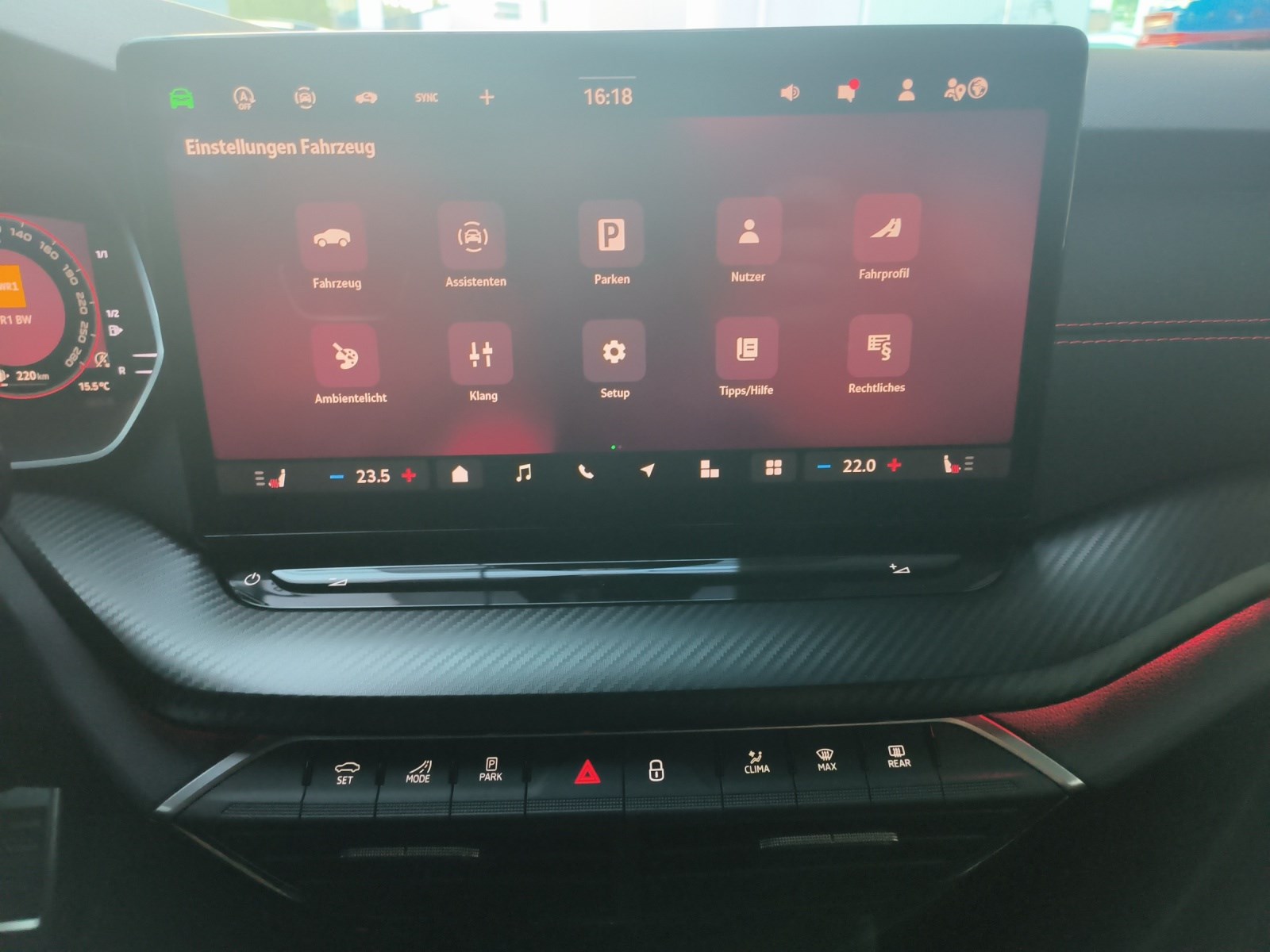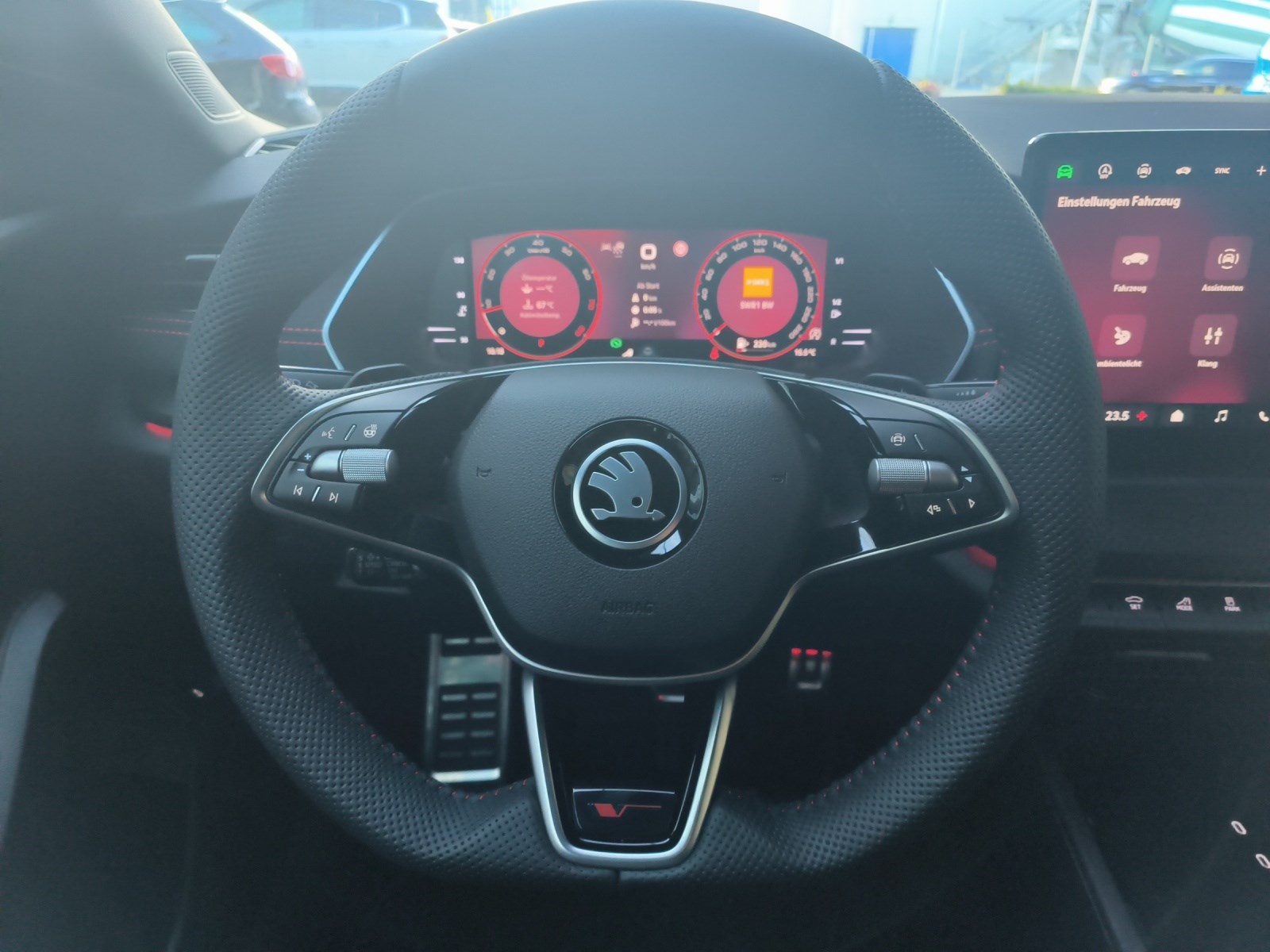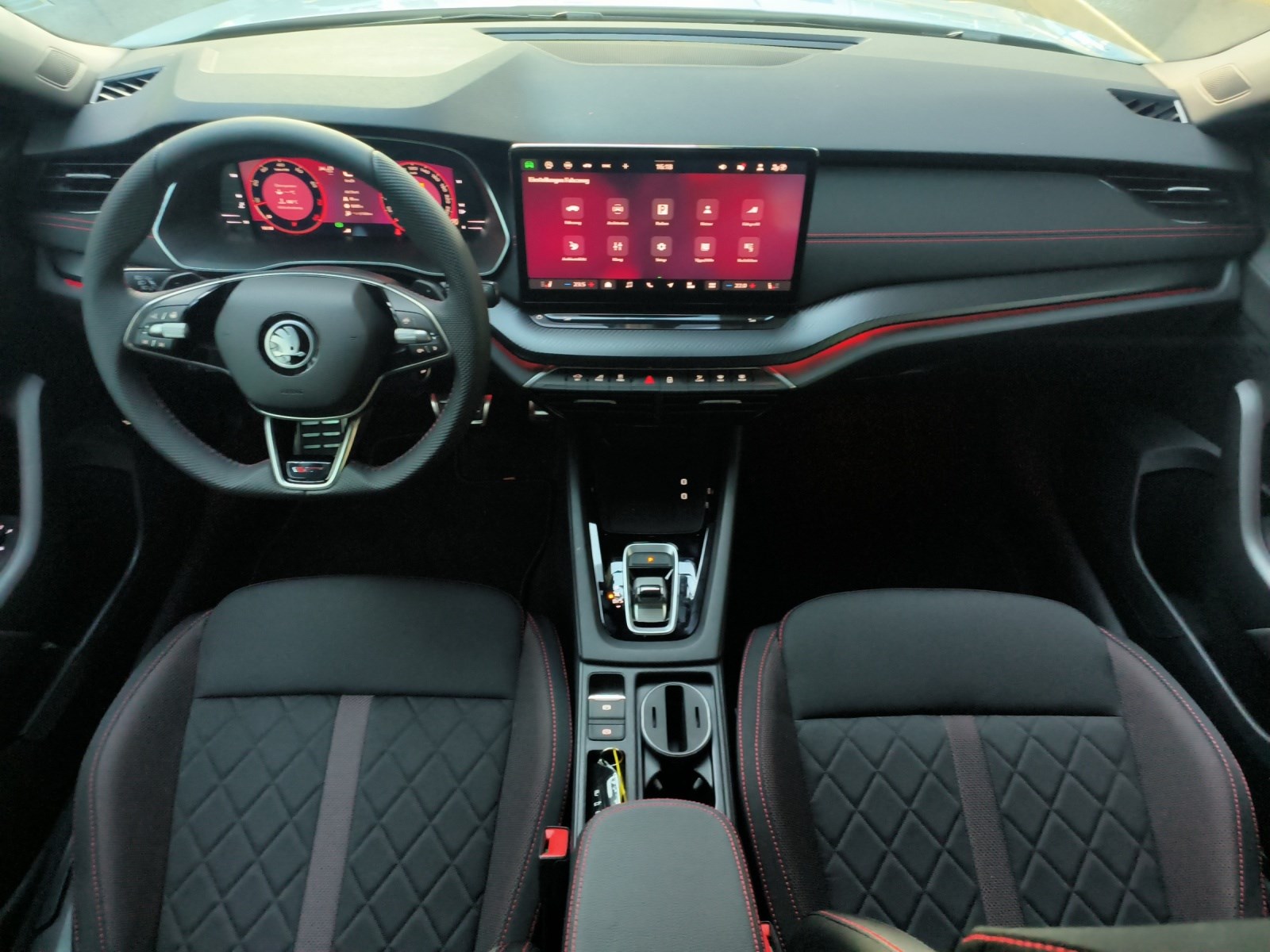 12 Volt-Steckdose im Laderaum 3-Punkt-Sicherheitsgurte auf allen Plätzen Ablagekasten unter Beifahrersitz Airbag: Airbag für Vordersitze mit Beifahrerairbag-Deaktivierung und Fahrer Knieairbag Airbag: Kopf-, Seiten- und Zentralairbag vorne (zwischen Fahrer- und Beifahrersitz) Ambiente- und Fussraumbeleuchtung Assist: Abbiegeassistent mit Gegenverkehr Warnung Assist: Ablenkungs- und Müdigkeitserkennung Assist: Adaptive Geschwindigkeitsregelanlage "Adaptive Cruise Control" Assist: Berganfahrassistent Assist: Notbremsassistent "Front Assist" Assist: Notrufsystem Emergency-Call Assist: Verkehrszeichenerkennung Aussenspiegel elektrisch anklappbar Aussenspiegel elektrisch einstell- und beheizbar Aussenspiegel in schwarz lackiert Aussenspiegel mit automatischer Abblendung (nur Fahrerseite) und Memoryfunktion Dekor: Dekoreinlage am Armaturenbrett "Black Carbon Haptic" Diebstahlwarnanlage, Innenraumüberwachung, Back-up-Horn und Abschleppschutz Elektrische Fensterheber vorne + hinten Elektrische Kindersicherung Elektronisches Stabilitäts-Programm (ESP) Fahrprofilauswahl "Driving Mode Selection" Gurtstraffer vorne und hinten Heckscheiben-Wisch-/Waschanlage mit Iinterval Innenspiegel automatisch abblendbar Klima: Climatronic 2-Zonen-Temperaturregelung, vollautomatisch, getrennt regelbar Kopfstützen hinten höhenverstellbar Lackierung: Uni-Lackierung Candy weiss Licht: Fernlichtassistent Media: "SmartLink" (CarPlay und Android Auto) Media: DAB+ (Digital Audio Broadcasting) Media: Infotainment Online 3 Jahre + "Care Connect" (Remote Access 3 Jahre) Media: Phonebox und Wireless Charging Media: Zwei USB-C Anschlüsse hinten Paket: Assisted Drive Paket Plus Paket: Komfort Paket Plus Paket: Light & View Paket Plus Paket: Technology Infotainment Paket Plus Polster: Sitzbezüge Stoff schwarz / rot Regenschirm in der Fahrertüre Regensensor mit Lichtassistent (Coming Home, Leaving Home, Tunnel Light) Räder: Leichtmetallräder 7,0 J x 18" "COMET", schwarz Räder: Pannenset (Kompressor und Flasche mit Dichtmittel, ohne Reserverad) Räder: Reifendruckkontrollsystem SKODA Garantie: Anschlussgarantie 1 Jahr, max. 100’000 km SKODA Garantie: Garantie 12 Jahre gegen Durchrostungs (ab 1. Inv.) SKODA Garantie: Garantie 3 Jahre gegen Lackschäden (ab 1. Inv.) SKODA Garantie: Neuwagen-Garantie: 2 Jahre ohne Kilometerbegrenzung Sitze: Rücksitzlehne mit Fernbedienung aus Kofferraum Sitze: Sport-Komfortsitze vorne Sitze: Ungeteilte Rücksitzbank, geteilt umklappbare Rückenlehne, mit Mittelarmlehne Sitze: Vorbereitung für Kindersitzhalterung mit Sicherheitssystem ISOFIX auf dem Beifahrersitz Sitze: Vordersitze heizbar Sitze: Vordersitze höhenverstellbar (manuell) Sitze: Vordersitze mit Lendenwirbelstütze manuell anpassbar SunSet (Heckscheibe und hintere Seitenscheiben dunkel getönt) Vorbereitung Alkohol-Zündschlosssperre "Alcohol Interlock" Wegfahrsperre elektronisch Zentralverriegelung mit Fernbedienung