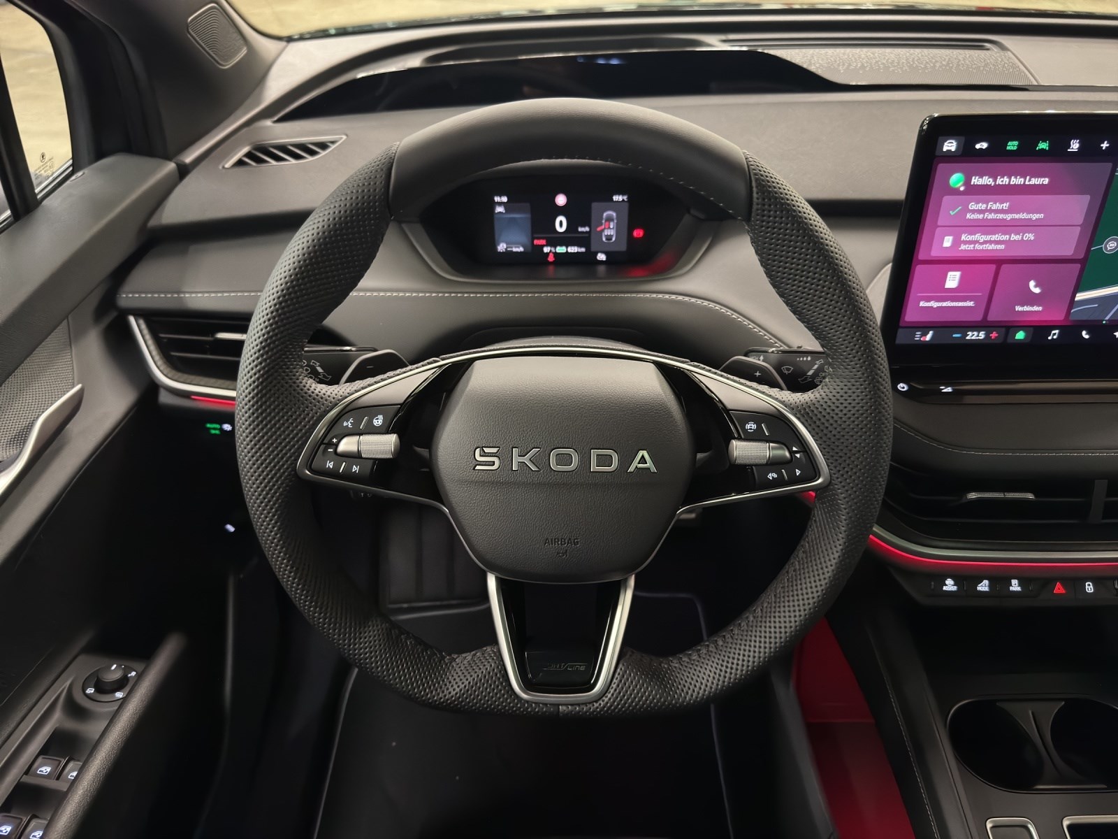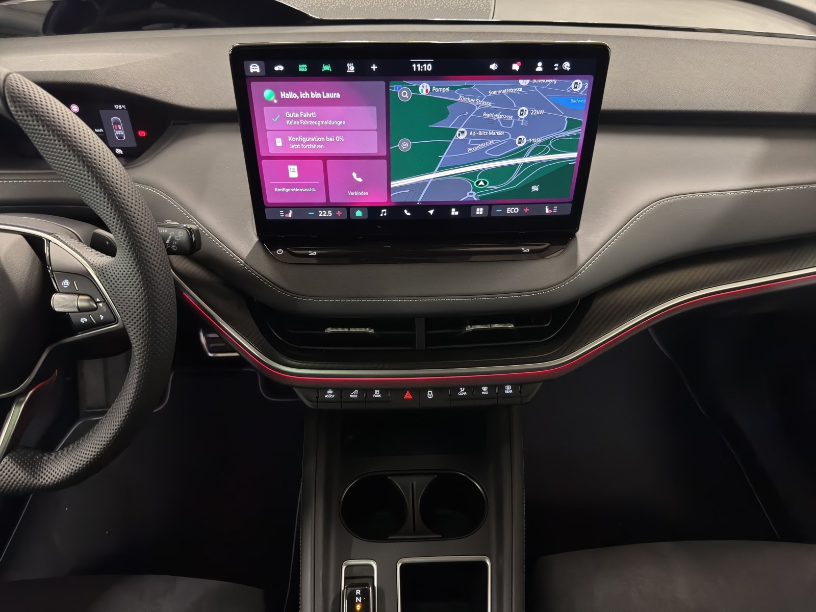 AC Batterieladung bis 11 kW Ablagekästen im Kofferraum Airbag: Airbag Beifahrer deaktivierbar Airbag: Airbag Fahrer und Beifahrer Airbag: Kopf- und Zentralairbag vorne (zwischen Fahrer- und Beifahrersitz) Ambiente- und Fussraumbeleuchtung Assist: Ablenkungs- und Müdigkeitserkennung Assist: Adaptive Geschwindigkeitsregelanlage "Adaptive Cruise Control" Assist: Fahrassistent "Travel Assist" Assist: Insassenschutzsystem "Crew Protect Assistant" vorne Assist: Notbremsassistent "Front Assist" Assist: Notrufsystem Emergency-Call Assist: Parksensoren vorne und hinten Assist: Regensensor mit Lichtassistent (Coming Home, Leaving Home, Tunnel Light) Assist: Spurhalteassistent "Lane Assist" Assist: Spurwechselassistent "Side Assist" Assist: Umgebungkamera "Area View" Assist: Verkehrszeichenerkennung Aussenspiegel elektrisch anklappbar mit automatischer Abblendung (nur Fahrerseite) und Memoryfunkt. Boardwerkzeug und Reifenreparaturset DC Batterieladung bis 175 kW Dachreling schwarz hochglanz Design Selection Sportline Diebstahlalarmanlage, Innenraumüberwachung, Back-Up-Horn und Abschleppschutz ESC (Elektronische Stabilisierungskontrolle) mit Multikollisionsbremse, ABS und ASR Elektrische Fensterheber vorne + hinten Elektrische Kindersicherung Fahrprofilauswahl- "Driving Mode Selection" Fahrwerk: Sportfahrwerk (Bodenfreiheit -15mm) Getriebe: 1-Gang Getriebe Head-up Display mit Augmented-Reality-Technologie Heckklappe mit berührungsloser Öffnung "Virtual Pedal" Innenspiegel automatisch abblendbar Klima: Klimaanlage "Climatronic", 3-Zonen-Temperaturregelung, vollautomatisch, getrennt regelbar Kofferraumabdeckung, herausnehmbar Kühlerschutzgitter mit Leiste in schwarz hochglanz Lackierung: Uni-Lackierung Ladekabel für AC-Normalladen bis zu 11 kW, Typ2-Stecker Lenkrad: 3-Speichen-Leder-Multifunktionslenkrad mit Schaltwippen, beheizbar Licht: LED-Rückleuchten mit dynamischen Blinkern Licht: Leuchtweitenregulierung automatisch mit Kurvenfahrlicht Licht: Voll-LED Scheinwerfer mit Matrix-Beam-Funktion Media: DAB+ (Digital Audio Broadcasting) Media: Infotainmentdisplay 13" Media: Navigationsfunktion Media: SmartLink (CarPlay und Android Auto) Media: Soundsystem CANTON Media: Zwei USB-C Anschlüsse vorne und hinten Mittelkonsole mit Mittelarmlehne Phonebox und Wireless Charging Regenschirm in der Fahrertüre Räder: Leichtmetallräder 8,0J x 20" & 9,0J x 20" "Vega Sportline" schwarz mit Reifenreparaturset Räder: Reifendruckkontrollsystem SKODA Garantie: Anschlussgarantie 2+1 Jahre (total 3 Jahre), max. 100.000 km SKODA Garantie: Garantie 12 Jahre gegen Durchrostungs (ab 1. Inv.) SKODA Garantie: Garantie 3 Jahre gegen Lackschäden (ab 1. Inv.) SKODA Garantie: Garantie 8 Jahre oder 160’000 km Garantie auf HV-Batterie SKODA Garantie: Neuwagen-Garantie: 2 Jahre ohne Kilometerbegrenzung Schliess- und Startsystem schlüssellos mit Safelock "Kessy Advanced" (Keyless Access) Servolenkung, geschwindigkeitsabhängig (Servotronic) Sitze: 3 Kopfstützen hinten Sitze: Elektrisch einstellbarer Fahrersitz mit Memoryfunktion Sitze: Fahrersitz mit Massagefunktion Sitze: Kopfstützen für Vordersitze - integriert für Sportsitze Sitze: Rücksitzbank ungeteilt, Rücksitzlehne geteilt umklappbar Sitze: Sport-Komfortsitze vorne Sitze: Vorbereitung für Kindersitzhalterung mit Sicherheitssystem ISOFIX auf dem Beifahrersitz Sonnenschutzrollos für Türscheiben hinten Steckdose 12V im Kofferraum Stossfänger vorne und hinten im Sportdesign Vorbereitung für Anhängerkupplung Zentralverriegelung mit Fernbedienung Zierleisten schwarz hochglanz