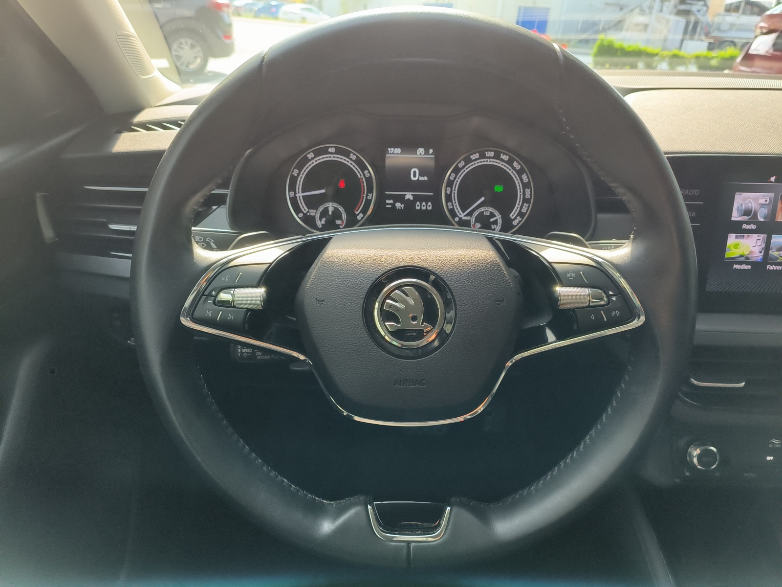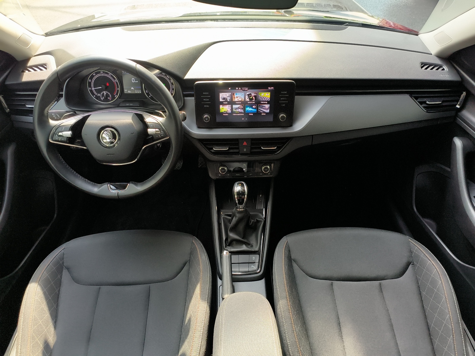 3-Punkt-Sicherheitsgurte auf allen Plätzen Airbag: Airbag Beifahrer deaktivierbar Airbag: Airbag Fahrer und Beifahrer Airbag: Seitenairbags und Kopfairbags vorne Airbag: Window-Kopfairbags Antriebsschlupfregelung (ASR) Assist: Berganfahrassistent Assist: Geschwindigkeitsregelanlage (Tempomat) Assist: Intelligenter Notruf Assist: Notrufsystem Emergency-Call Assist: Parksensoren vorne und hinten Assist: Rain Light Assist Assist: Spurhalteassistent "Lane Assist" Assist: Umfeldbeobachtung 'Front-Assist' mit City-Notbremsfunktion Aussenspiegel rechts und links beheizbar und elektrisch verstellbar Aussenspiegel und Türgriffe in Wagenfarbe Befestigungsösen im Laderaum Beheizbare Vordersitze und beheizbare Scheibenwaschdüsen vorne Dekor: Dekoreinlagen in Greyned-Black mit hot-stamping schwarz Dunkel getönte Scheiben (SunSet) Elektrische Fensterheber vorne Elektronisches Stabilitäts-Programm (ESP) Getriebe: Sequentielles 7-Gang-Getriebe mit Automatikfunktion Gurtstraffer vorne und hinten Heckscheiben-Wisch-/Waschanlage ISOFIX-Befestigungspunkte für Kindersitz an den äusseren Rücksitzen Klima: Klimaanlage "Climatronic", 2-Zonen-Temperaturregelung, vollautomatisch, - Lackierung: Uni-Lackierung Lenkrad: 2-Speichen-Leder-Multifunktionslenkrad mit Schaltwippen Licht: Basis LED Hauptscheinwerfer Licht: Basis LED Heckleuchten Licht: Easy Light Assist (automatische Lichtschaltung, Coming Home Leaving Home), LED Tagfahrlicht Media: 4 zusätzliche Lausprecher hinten Media: Bluetoth Freisprechanlage, Phonebox und Wireless Charging Media: DAB+ (Digital Audio Broadcasting) Media: Infotainment Online 3 Jahre + "Care Connect" (Remote Access 3 Jahre) Media: Radio BOLERO mit 8' Farb-Touchscreen und USB Anschlus Pollenfilter (Staubfilter) Polster: Stoff-Ausstattung schwarz / grau Räder: Leichtmetallräder ORION 6,0x16J SKODA Garantie: Garantie +2 Jahre / 100'000 km (ab 1. Inv.) SKODA Garantie: Garantie 12 Jahre gegen Durchrostungs (ab 1. Inv.) SKODA Garantie: Garantie 2 Jahre ohne Kilometerbegrenzung (ab 1. Inv.) SKODA Garantie: Garantie 3 Jahre gegen Lackschäden (ab 1. Inv.) Sitze: 3 Kopfstützen hinten Sitze: Mittelarmlehne vorne inkl. grosser Jumbo-Box (kühlbares Ablagefach) Sitze: Rücksitzlehne geteilt abklappbar Sitze: Vordersitze höhenverstellbar (manuell) Teppichfussmatten vorne und hinten Wegfahrsperre elektronisch