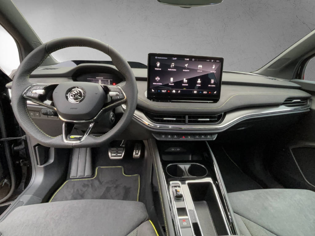 12 Volt-Steckdose im Laderaum 3-Punkt-Sicherheitsgurte auf allen Plätzen AC Batterieladung bis 11 kW Ablagekästen im Kofferraum (mit Steckdeckel links + rechts, ohne Kargoelementen) Airbag: Fahrer- und Beifahrerairbag Airbag: Seitenairbag vorne mit Kopfairbag und Mittelairbag vorne Akustikpaket: Geräuschdämmende Seitenscheiben vorne Akustisch optimierte Windschutzscheibe aus wärmedämmendem Glas Assist: Crew Protect Assist Plus Assist: Front Assistant inkl. City-Notbremsfunktion Assist: Geschwindigkeitsregelanlage mit Distanzkontrolle "Adaptive Cruise Control" Assist: Müdigkeitserkennung "Driver Alert" Assist: Notrufsystem Emergency-Call Assist: Parksensoren vorne und hinten Assist: Regensensor mit Lichtassistent (Coming Home, Leaving Home, Tunnel Light) Assist: Spurhalteassistent "Lane Assist" Assist: Spurwechselassistent "Side Assist" Aussenspiegel mit Einstiegsbeleuchtung Beleuchteter Kühlergrill -"Crystal Face" Cavo di ricarica per AC-carico fino a 11 kW, spina tipo 2 Centro console con bracciolo DC Batterieladung bis 135 kW Dekor: Dekor-Einlagen in Karbonoptik Display infotainment da 13 Elektrisch einstellbare, beheizbare, klappbare, automatisch abblendbare Aussenspiegel (Fahrerseite) Elektronisches Stabilitäts-Programm (ESP) Fahrprofilauswahl- Driving Mode Selection Fahrwerk: Progressivlenkung Getriebe: 1-Gang Getriebe Heckklappe elektrisch ''Virtual Pedal'' Illuminazione Ambiente e illuminazione del fondo anteriore e posteriore, multicolore KESSY (Keyless Access) - Schlüsselloses Schliess- und Startsystem (4 Türen) Klima: Klimaanlage "Climatronic", 3-Zonen-Temperaturregelung, vollautomatisch, getrennt regelbar Kühlerumrahmung schwarz hochglanz Lackierung: Uni-Lackierung Lenkrad: 3-Speichen-Sport-Multifunktionslenkrad mit Schaltwippen, beheizbar Licht: LED-Rückleuchten mit animierten Blinkern Licht: Voll-LED Scheinwerfer mit Matrix-Funktion Media: DAB+ (Digital Audio Broadcasting) Media: Komforttelefonie mit LTE und kabelloser Ladefunktion Media: Navigation con SKODA Connect Infotainment Online 3 anni+ "Care Connect" Media: SmartLink (CarPlay und Android Auto) Media: SmartLink (wireless connect für Apple) Media: USB-C-Anschluss vorne, Laden und Daten On-Board Batterieladefähigkeit 11kW für AC (3-Phase) Regenschirm in der Vordertür Router: Cerchi in lega leggera 20" (8 J avanti, 9 J posteriore) "TAURUS"- Räder: Reifendruckkontrollsystem SKODA Garantie: Garantie 12 Jahre gegen Durchrostungs (ab 1. Inv.) SKODA Garantie: Garantie 2 Jahre ohne Kilometerbegrenzung (ab 1. Inv.) SKODA Garanzia: Garanzia 8 anni di garanzia o garanzia per 160000 km sulla batteria Scheibenwaschdüsen beheizt Scheinwerferreinigungsanlage Sitze: Elektrisch einstellbarer Fahrersitz mit Memoryfunktion Sitze: Isofix an Rücksitzen und Beifahrersitz und 2 x TopTether Sitze: Lendenwirbelstütze elektrisch verstellbar (Fahrerseite) Sitze: Rücksitzbank, 60:40 geteilt umklappbare Rückenlehne, mit Mittelarmlehne Sitze: Sport-Komfortsitze vorne Sitze: Vordersitze mit Lendenwirbelstütze manuell anpassbar Specchietto interno fotocromato Tappetini anteriori e posteriori Tappezzeria: Design Selection RS Lounge Umrandung der Seitenscheiben in schwarz Wegfahrsperre elektronisch Wärmepumpe zur Reichweitenoptimierung Zusätzliche Fahrgeräuschunterdrückung im Innenraum