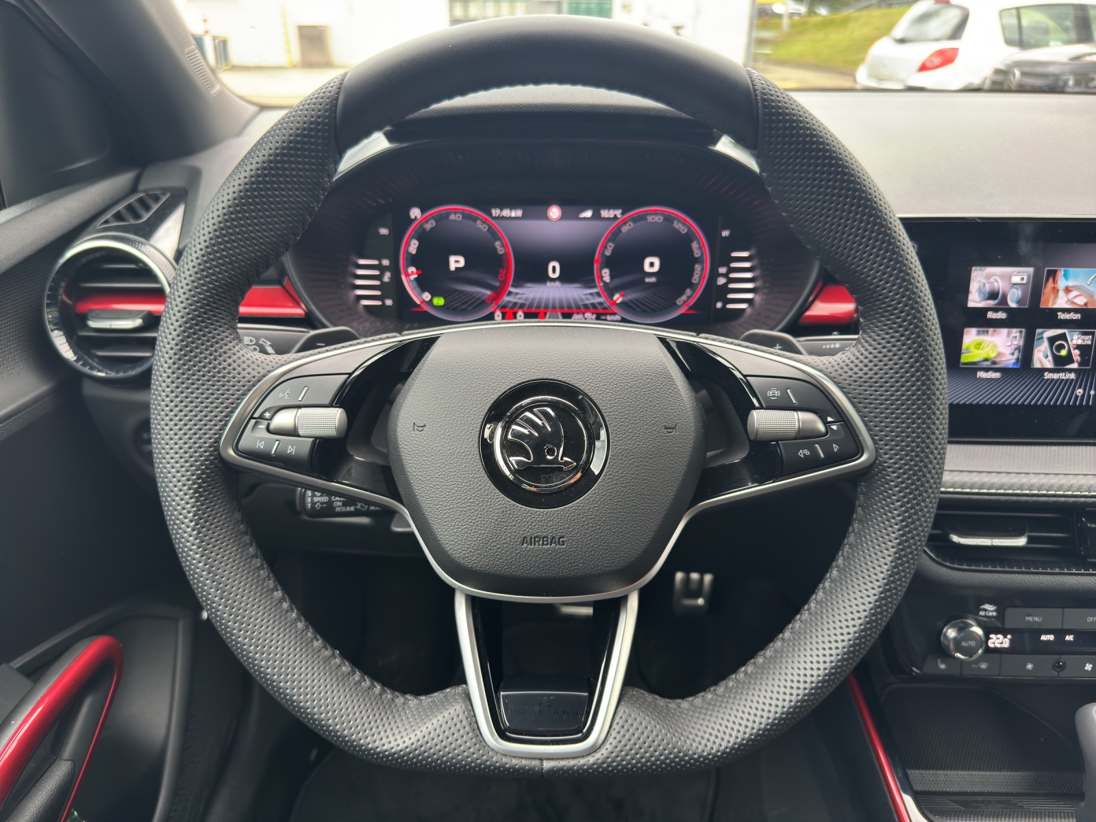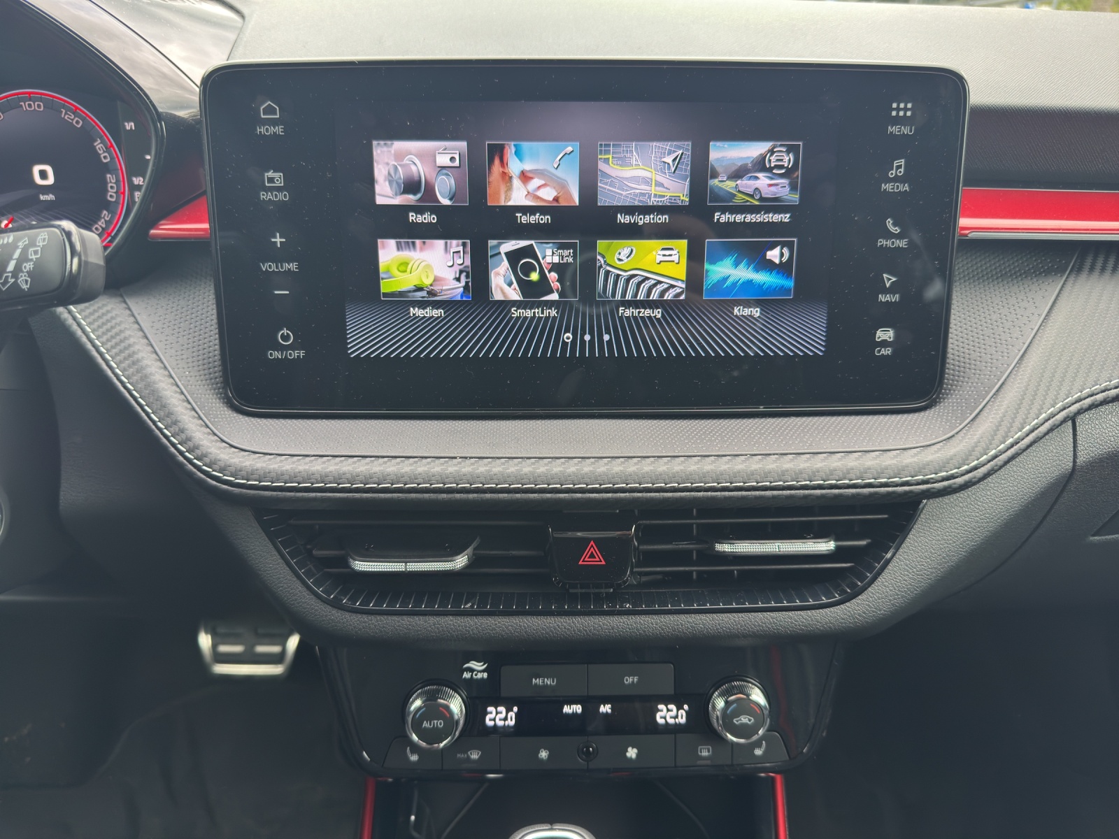 Serienausstattung 3 Klappbare Haltegriffe am Dachrahmen, ohne Fahrerseite Airbag: Kopf- und Seitenairbags vorne Assist: Ablenkungs- und Müdigkeitserkennung Assist: Berganfahrassistent Assist: Geschwindigkeitsregelanlage (Tempomat) Assist: Parksensoren hinten Assist: Spurhalteassistent "Lane Assist" Assist: Verkehrserkennungszeichen Aussenspiegel in schwarz lackiert Design Selection Monte Carlo Elektrische Fensterheber vorne + hinten Elektronisches Stabilitäts-Programm (ESP) Heckscheiben-Wisch-/Waschanlage Klima: Klimaanlage "Climatronic", 2-Zonen-Temperaturregelung, vollautomatisch, - Lackierung: Metallic-Lackierung Lenkrad: Sport-Leder-Multifunktionslenkrad 3-Speichen Leseleuchten vorne und hinten Licht: Easy Light Assist (automatische Lichtschaltung, Coming Home, Leaving Home) Media: 2 zusätzliche Lausprecher hinten Media: DAB+ (Digital Audio Broadcasting) Media: Skoda Infotainment 8.25" Media: SmartLink (CarPlay und Android Auto) Media: Telefonvorbereitung mit Bluetooth Media: Zwei USB-C Anschlüsse vorne Mittelarmlehne vorn klappbar mit Jumbobox und Cupholder(Schneemann) abnehmbar Paket: Light and View Plus Paket Pollenfilter (Staubfilter) Räder: Leichtmetallräder 7 J x 17" PROCYON", schwarz Räder: Pannenset (Kompressor und Flasche mit Dichtmittel, ohne Reserverad) Räder: Reifendruckkontrollsystem Rücksitzlehne geteilt umklappbar (60:40) SKODA Garantie: Anschlussgarantie 1 Jahr, max. 100’000 km SKODA Garantie: Garantie 12 Jahre gegen Durchrostungs (ab 1. Inv.) SKODA Garantie: Garantie 2 Jahre ohne Kilometerbegrenzung (ab 1. Inv.) SKODA Garantie: Garantie 3 Jahre gegen Lackschäden (ab 1. Inv.) Sitze: Vordersitze mit Lendenwirbelstütze Startsystem schlüssellos "Easy Start" SunSet (Heckscheibe und hintere Seitenscheiben dunkel getönt) Teppichfussmatten vorne und hinten Wegfahrsperre elektronisch
