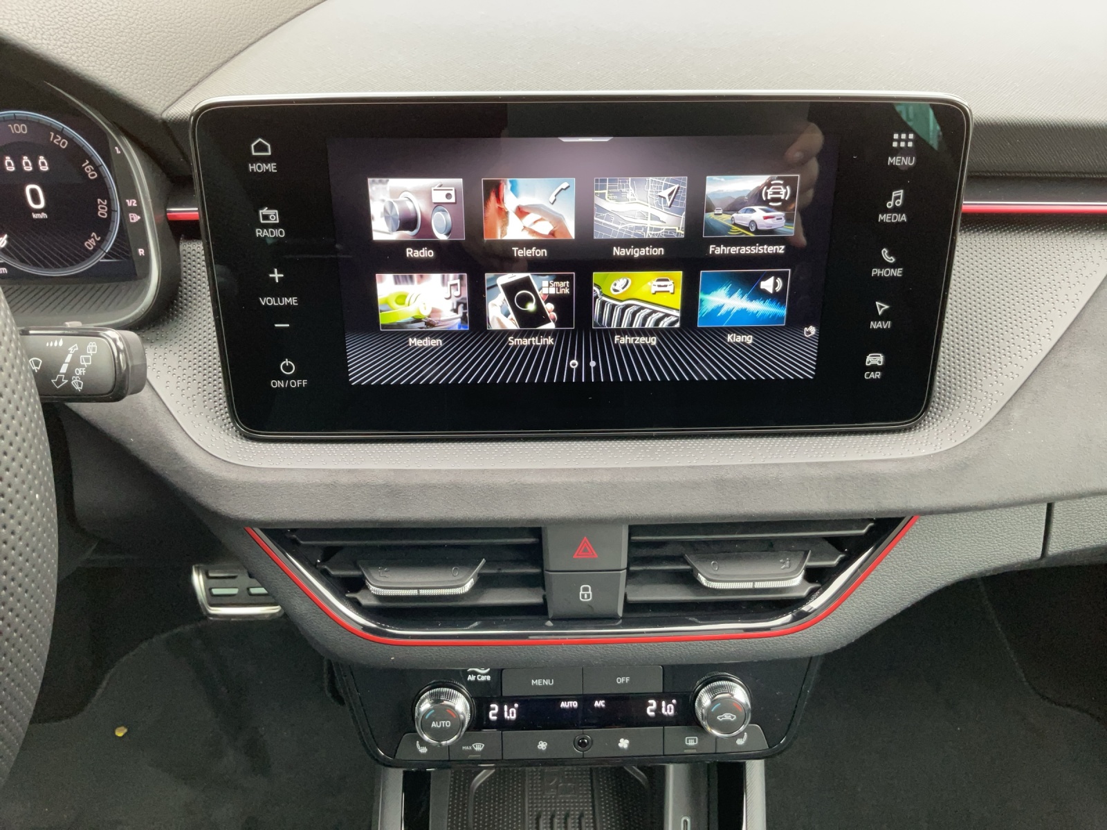 3-Punkt-Sicherheitsgurte auf allen Plätzen Airbag: Airbag Beifahrer deaktivierbar Airbag: Airbag Fahrer und Beifahrer Airbag: Kopf- und Seitenairbags vorne Ambiente Beleuchtung 2-farbig Assist: Ablenkungs- und Müdigkeitserkennung Assist: Berganfahrassistent Assist: Front Assistant inkl. City-Notbremsfunktion Assist: Spurhalteassistent "Lane Assist" Assist: Verkehrszeichenerkennung Aussenspiegel rechts und links beheizbar und elektrisch verstellbar Design Selection Dynamic: ESC (Elektronische Stabilisierungskontrolle) mit Multikollisionsbremse, ABS und ASR Elektrische Fensterheber vorne + hinten Elektronisches Stabilitäts-Programm (ESP) Gurtanlegesignalisation für alle Passagiere Heckscheiben-Wisch-/Waschanlage Klappbare Gepäckhaken im Kofferraum Klima: Klimaanlage "Climatronic", 2-Zonen-Temperaturregelung, vollautomatisch, getrennt regelbar Lackierung: Uni-Lackierung Lenkrad: 3-Speichen-Sport-Leder-Multifunktionslenkrad mit Schaltwippen (DSG), beheizbar und HOD Licht: Easy Light Assist (automatische Lichtschaltung, Coming Home, Leaving Home) Media: 2 USB-C Anschlüsse im Fond Media: 2 USB-C Anschlüsse vorne Media: 4 zusätzliche Lausprecher hinten Media: DAB - Digitaler Radioempfang Media: Infotainment Online 3 Jahre + "Care Connect" (Remote Access 3 Jahre) Media: Phonebox und Wireless Charging (ohne Verbindung über die Aussenantenne) Media: Skoda Infotainment 8.25" Media: SmartLink (CarPlay und Android Auto) Media: Telefonvorbereitung mit Bluetooth Mittelarmlehne hinten mit Doppel Getränkehalter und ohne Durchladefunktion Paket: Assisted Drive Plus + Light and View Paket Paket: Assisted Drive Plus+Light and View Paket Paket: Convenience Plus Paket Paket: Simply Clever Paket Paket: Winter Premium + Technology Plus Paket Räder: Leichtmetallräder 17" "Propus Aero" schwarz Räder: Pannenset (Kompressor und Flasche mit Dichtmittel, ohne Reserverad) Räder: Reifendruckkontrollsystem SKODA Garantie: Anschlussgarantie: 2+3 Jahre (total 5 Jahre) bis max. 100000 km) SKODA Neuwagen-Garantie: 2 Jahre ohne Kilometerbegrenzung Seitliche Luftführungen im Stossfänger vorne schwarz lackiert Sitze: 3 Kopfstützen hinten Sitze: ISOFIX-Vorbereitung und Top-Tether Sitze: Rücksitzlehne geteilt umklappbar (60:40) Sitze: Vordersitze höhenverstellbar Textilfussmatten vorne und hinten Türgriffe aussen in Wagenfarbe Vorbereitung für Anhängevorrichtung Wegfahrsperre elektronisch