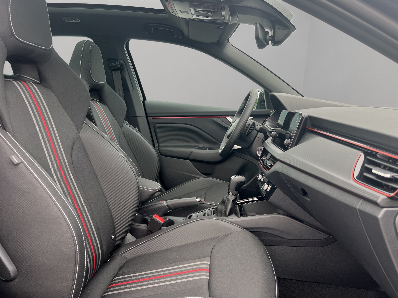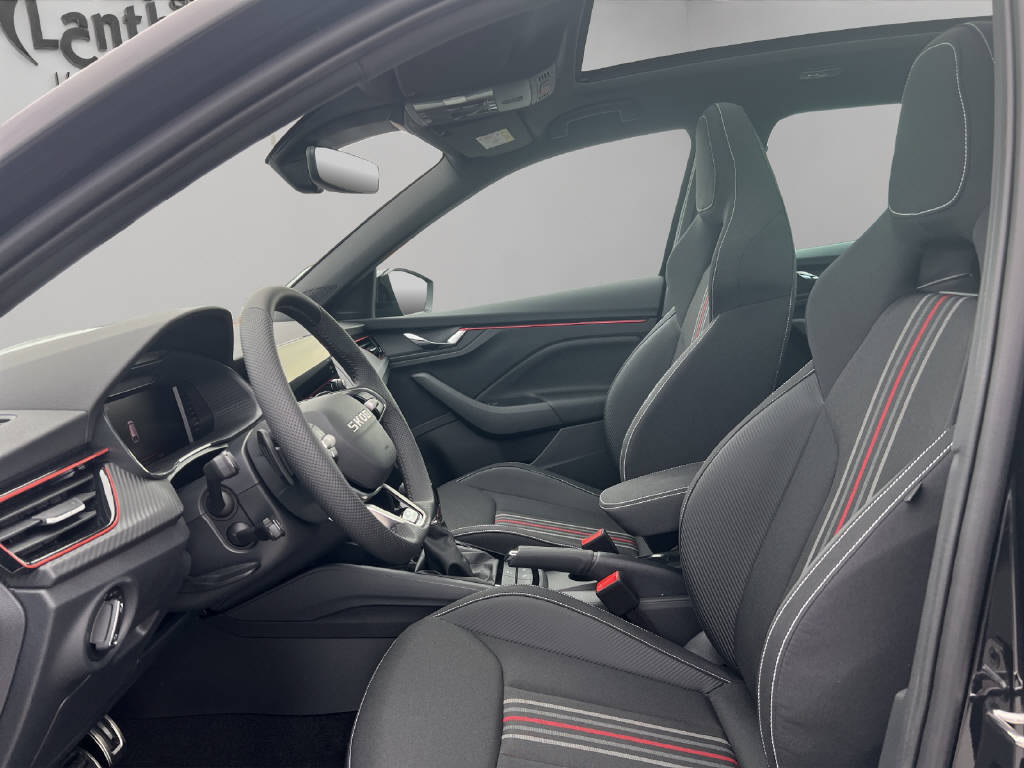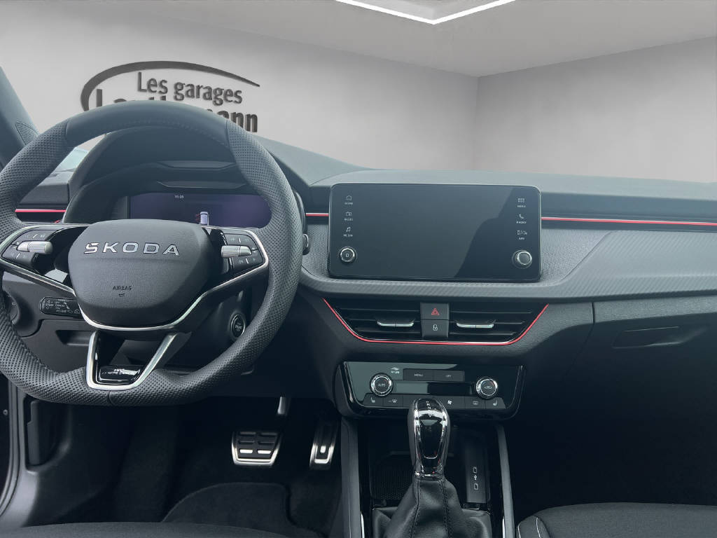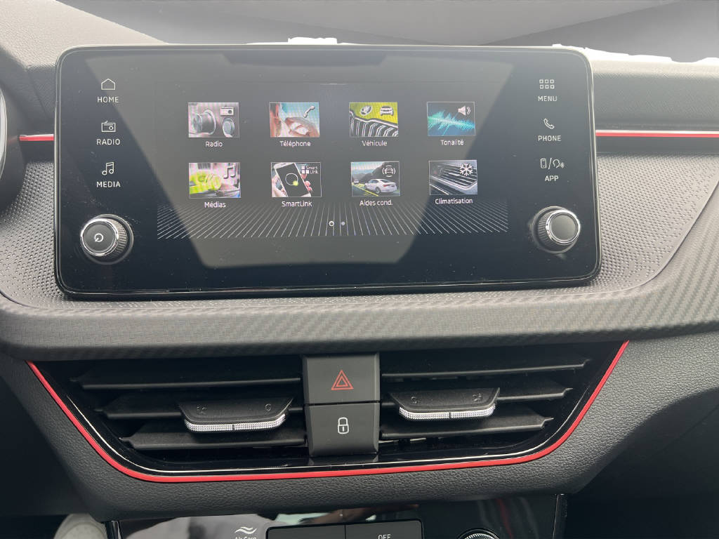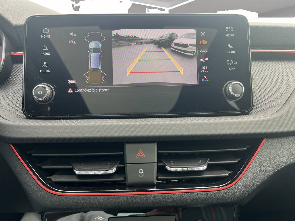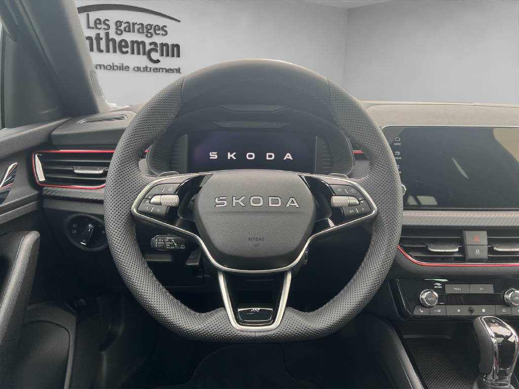 3-Punkt-Sicherheitsgurte auf allen Plätzen Accoudoir central arriere avec double porte-gobelet et sans fonction de chargement Airbag: Airbag Beifahrer deaktivierbar Airbag: Airbag Fahrer und Beifahrer Airbag: Kopf- und Seitenairbags vorne Assist: Ablenkungs- und Müdigkeitserkennung Assist: Berganfahrassistent Assist: Geschwindigkeitsregelanlage (Tempomat) Assist: Notbremsassistent "Front Assist" Assist: Parksensoren hinten Assist: Spurhalteassistent "Lane Assist" Assist: Verkehrszeichenerkennung Aussenspiegel rechts und links beheizbar und elektrisch verstellbar Conduits d'air latéraux dans le pare-chocs avant peints en noir Crochets a bagages pliables dans le coffre Emergency Call (appel d´urgence) Fahrprofilauswahl "Driving Mode Selection" Gurtanlegesignalisation für alle Passagiere Heckscheiben-Wisch-/Waschanlage Klima: Klimaanlage "Climatronic", 2-Zonen-Temperaturregelung, vollautomatisch, getrennt regelbar Lackierung: Uni-Lackierung Lumière: Easy Light Assist (éclairage automatique, Coming Home, Leaving Home) Lève-vitres électrique AV + AR Media: DAB+ (Digital Audio Broadcasting) Media: Skoda Infotainment 8.25" Media: SmartLink (CarPlay und Android Auto) Media: Telefonvorbereitung mit Bluetooth Mèdias: 2 ports USB à lavant Mèdias: 2 prises USB au niveau de la rangée de sièges arrière Mèdias: 4 haut-parleurs supplémentaires à larrière Mèdias: Kit mains libres Bluetooth Mèdias: Wireless SmartLink Pack: Light and View Plus Paket Programme électronique de la stabilité Roues: Jantes en alliage léger 6,5 J x 17" "Kajam Aero", noires avec enjoliveur aéro noir Räder: Pannenset (Kompressor und Flasche mit Dichtmittel, ohne Reserverad) Räder: Reifendruckkontrollsystem Rétroviseur interne photochromatiques SKODA Garantie: Garantie voiture neuve: 2 ans sans limite de kilométrage SKODA Garantie: Prolongation de garantie 1 année, 100000 km au maximum Sitze: 3 Kopfstützen hinten Sitze: Vorbereitung für Kindersitzhalterung mit Sicherheitssystem ISOFIX auf dem Beifahrersitz Sitze: Vordersitze höhenverstellbar Sièges: Accoudoir central a l'avant comprenant une grande boîte jumbo Sièges: Le dossier du siege arriere peut etre rabattu en plusieurs parties (60:40) Tissu: Housses de sieges sport en tissu noir,certaines avec look carbone et rayures rouges et grises Türgriffe aussen in Wagenfarbe Volant: Volant multifonction sport en cuir a 3 branches avec palettes de changement de vitesse Wegfahrsperre elektronisch Éclairage d'ambiance 2 couleurs
