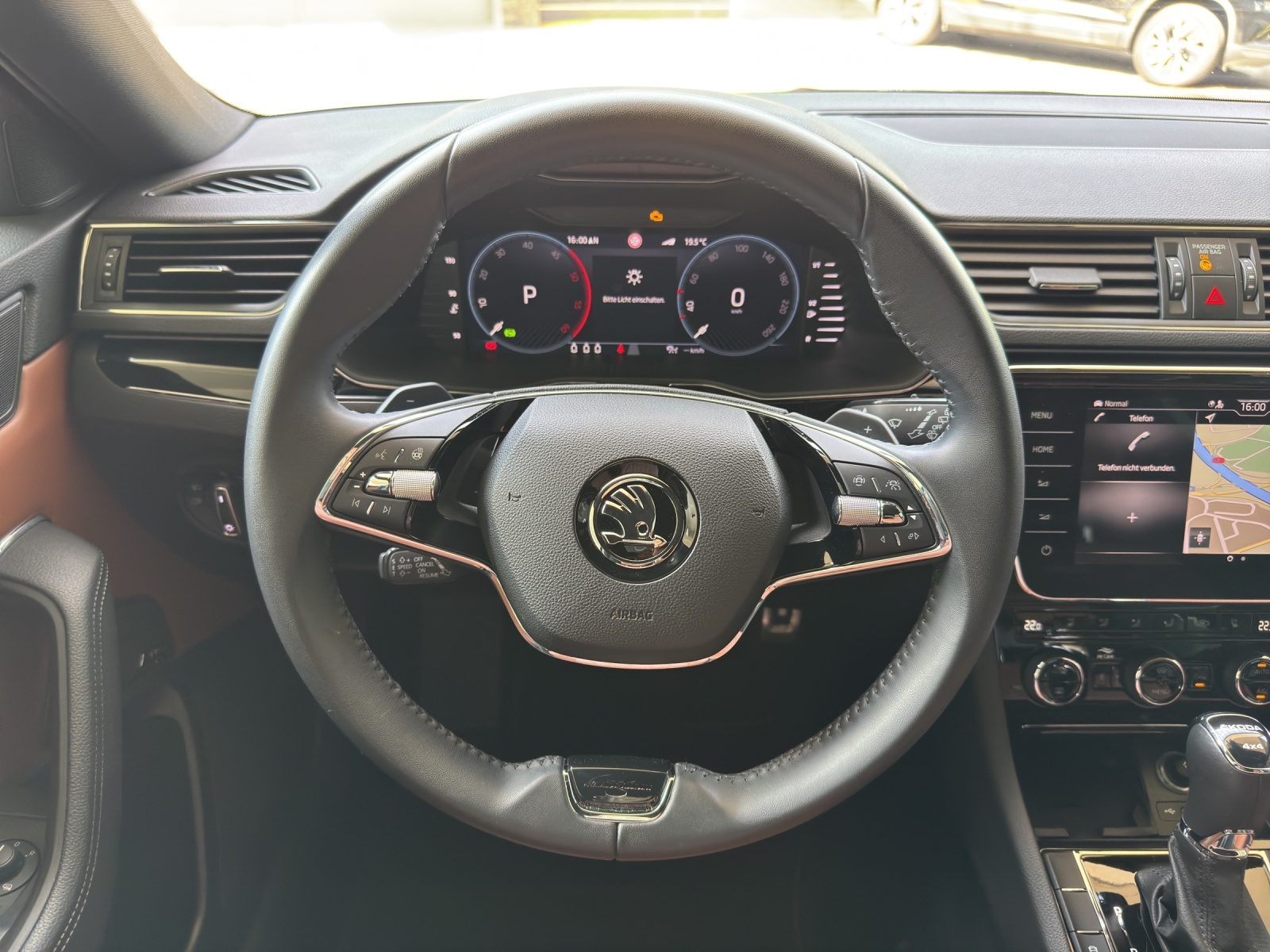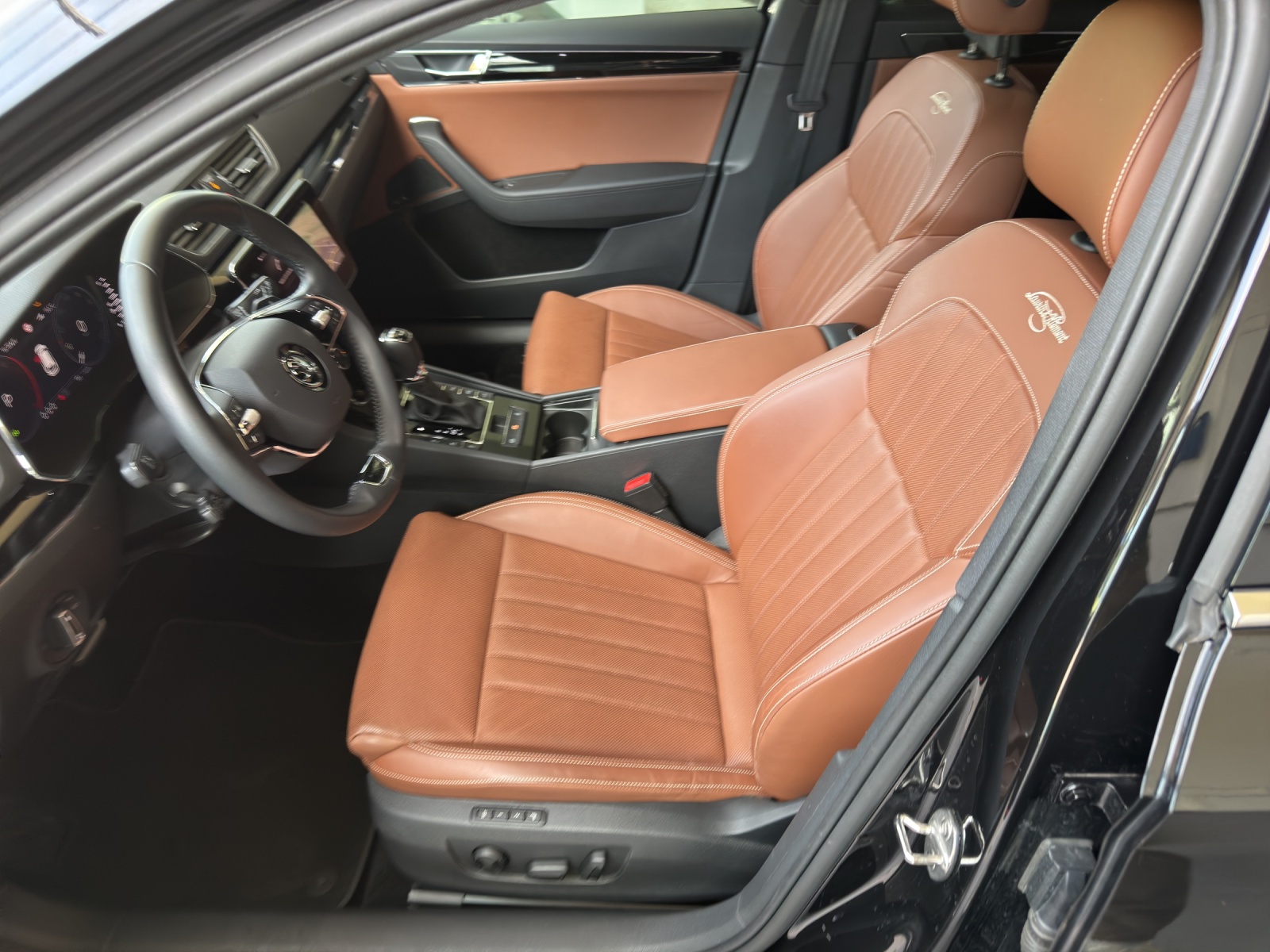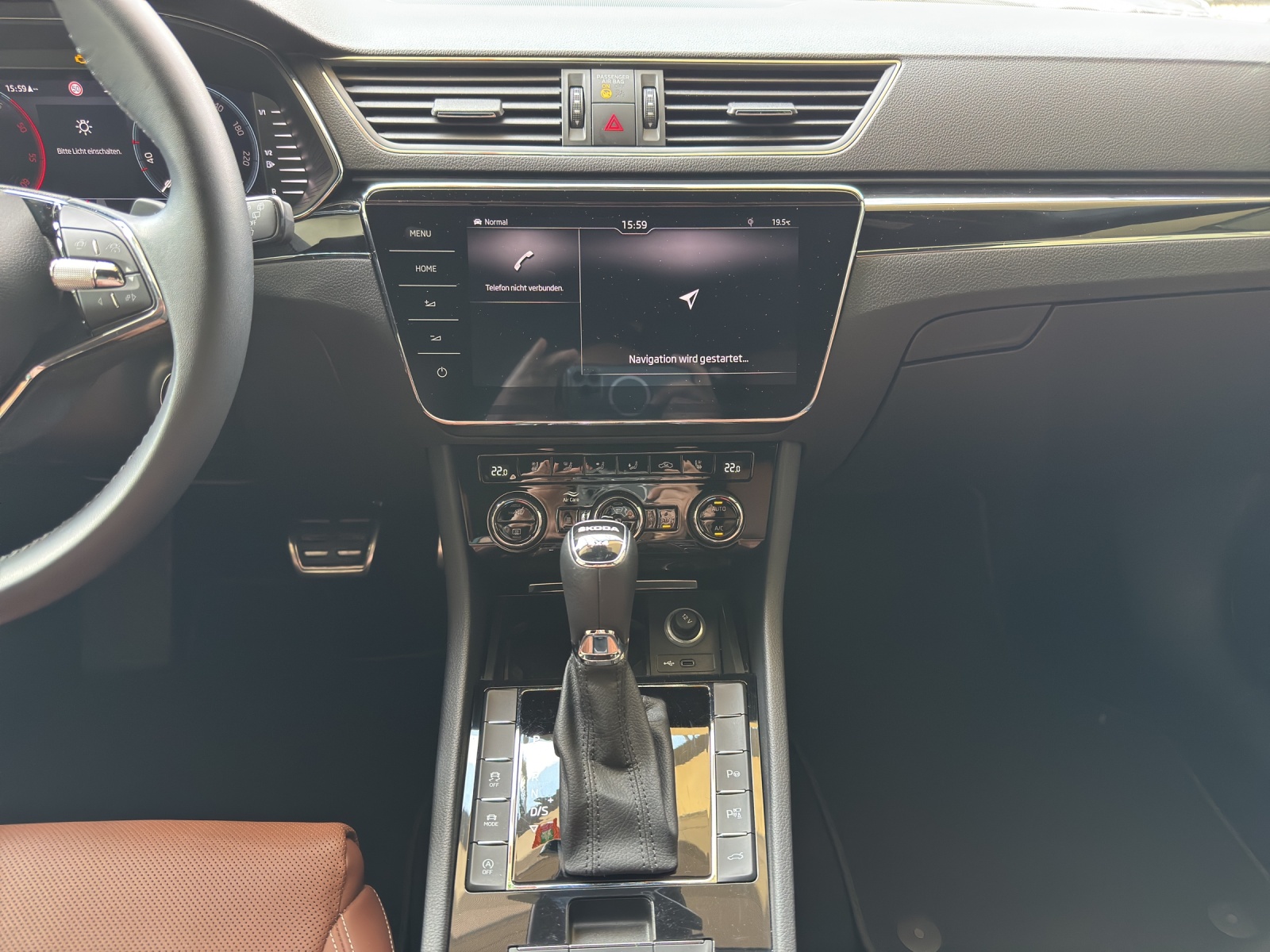 3-Punkt-Sicherheitsgurte auf allen Plätzen Airbag: Airbag Beifahrer deaktivierbar Airbag: Airbag Fahrer und Beifahrer Airbag: Knie-Airbag für Fahrer Airbag: Seitenairbag für Fahrer und Beifahrer Airbag: Seitenairbags und Kopfairbags vorne Airbag: Window-Kopfairbags Antriebsschlupfregelung (ASR) Assist: Berganfahrassistent Assist: Elektronische Differentialsperre (EDS) Assist: Front Assistant inkl. City-Notbremsfunktion (ohne ACC) Assist: Geschwindigkeitsregelanlage (Tempomat) Assist: Müdigkeitserkennung Assist: Parklenkassistent Parkassist(lenkt das Fahrzeug automatisch in Längs-und Querparklücken ein) Assist: Parksensoren vorne und hinten Assist: Travel Assist High Assist: Verkehrszeichenerkennung Aussenspiegel elektrisch einstell-, beheiz- und anklappbar mit Memoryfunktion, Aussenspiegel in Wagenfarbe Dekor: Dekoreinlage am Armaturenbrett «Piano Black» Dunkel getönte Scheiben (SunSet) Einstiegsschienen vorne und hinten und seitliche Chromleisten Elektrische Fensterheber vorne + hinten mit Kindersicherung Elektronisches Stabilitäts-Programm (ESP) Fahrwerk: Adaptive Fahrwerksregelung DCC Fussraumbeleuchtung vorne und hinten Getriebe: Sequentielles 7-Gang-Getriebe mit Automatikfunktion Halbautomatische Kofferraumrollo mit Multifunktionsbox und elektrische Kindersicherung Heckscheiben-Wisch-/Waschanlage Höhenverstellbare Gurten vorne ISOFIX Kindersitzvorrichtung Klima: 3-Zonen-Klimatisierungsautomatik Lackierung: Uni-Lackierung Lenkrad: 2-Speichen-Leder-Multifunktionslenkrad mit Schaltwippen (DSG) Licht: LED Rückleuchten (Variante Top) inkl. dynamische Blinker Licht: Lichtassistent (Coming Home, Leaving Home, Tunnel Light) Licht: Nebelscheinwerfer mit Cornering-Funktion Licht: Voll LED-Scheinwerfer und LED Rückleuchten; Scheinwerfer mit «Matrix-Beam-Funktion» Make up-Spiegel mit LED beleuchteung Media: 2 USB-C Anschlüsse vorne Media: DAB+ (Digital Audio Broadcasting) Media: Dynamisches Navigationssystem COLUMBUS Media: Infotainment Online 3 Jahre + "Care Connect" (Remote Access 3 Jahre) Media: Soundsystem CANTON (12 Lautsprecher und Subwoofer) Partikelfilter und Oxydationskatalysator Pedalerie mit Aluminiumauflage Pollenfilter (Staubfilter) Polster: Sitzbezüge Leder perforiert (Kombination aus Leder und hochwertigen Materialien) - Regenschirmfach inkl. Regenschirm Regensensor für Scheibenwischer vorne Räder: Leichtmetallräder 8,0 J x 18" PROPUS AERO, schwarz mit polierter Oberfläche Räder: Reifendruck-Kontrollanzeige SKODA Garantie: Garantie 12 Jahre gegen Durchrostungs (ab 1. Inv.) SKODA Garantie: Garantie 2 Jahre ohne Kilometerbegrenzung (ab 1. Inv.) SKODA Garantie: Garantie 3 Jahre gegen Lackschäden (ab 1. Inv.) Scheibenwaschdüsen beheizt Scheinwerferreinigungsanlage, automatisch Schliess- und Startsystem KESSY Schlüsselloser Motorstart Sitze: 3 Kopfstützen hinten Sitze: Elektrisch einstellbare Vordersitze mit Memoryfunktion, Sitze: Lendenwirbelstützen vorne elektrisch einstellbar mit Massagefunktion Sitze: Mittelarmlehne hinten mit Durchlademöglichkeit Sitze: Rücksitzlehne geteilt abklappbar Sitze: Rücksitzlehne mit Fernbedienung aus Kofferraum Sitze: Vorbereitung für Kindersitzhalterung mit Sicherheitssystem ISOFIX auf dem Beifahrersitz Sitze: Vordersitze heizbar Türgriffe aussen in Wagenfarbe Wegfahrsperre elektronisch Zentralverriegelung mit Fernbedienung