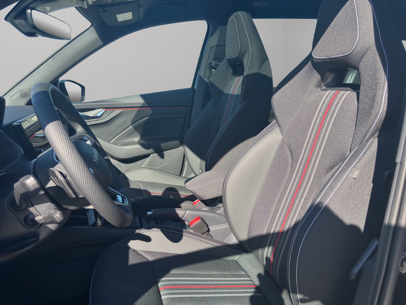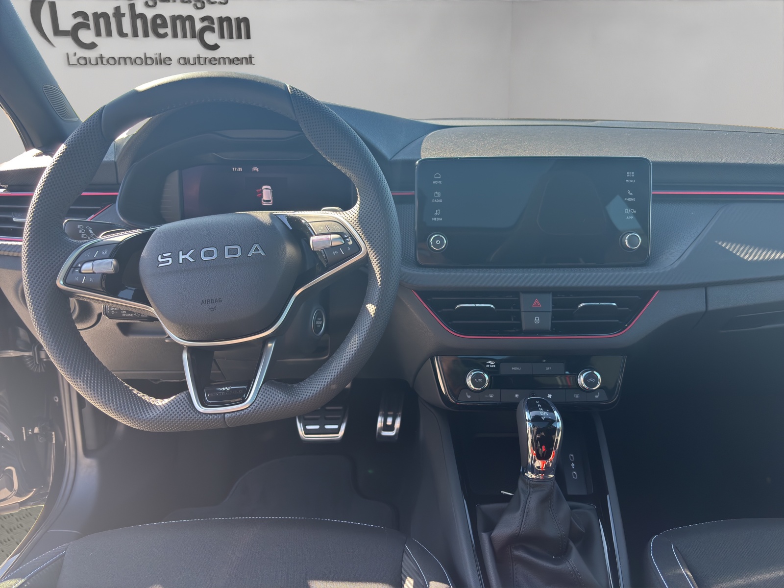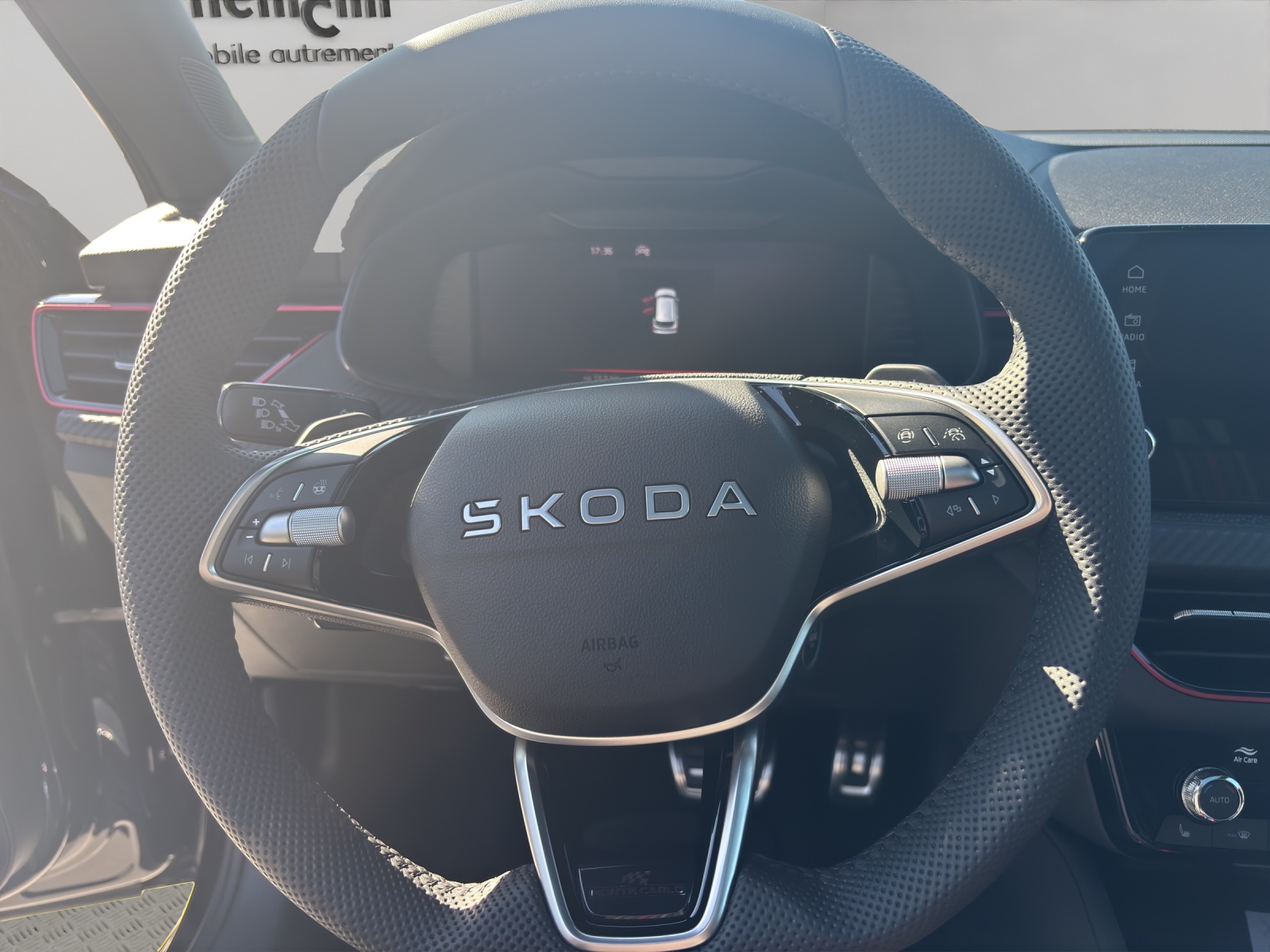 3-Punkt-Sicherheitsgurte auf allen Plätzen Accoudoir central arriere avec double porte-gobelet et sans fonction de chargement Accoudoir central avant avec grand boîtier Jumbo-Box Airbag: Airbag Beifahrer deaktivierbar Airbag: Airbag Fahrer und Beifahrer Airbag: Kopf- und Seitenairbags vorne Assist: Ablenkungs- und Müdigkeitserkennung Assist: Berganfahrassistent Assist: Front Assistant inkl. City-Notbremsfunktion Assist: Geschwindigkeitsregelanlage (Tempomat) Assist: Parksensoren hinten Assist: Spurhalteassistent "Lane Assist" Assist: Verkehrszeichenerkennung Aussenspiegel rechts und links beheizbar und elektrisch verstellbar Cadre chromé sur la calandre Conduits d'air latéraux dans le pare-chocs avant peints en noir Crochets a bagages pliables dans le coffre Elektronisches Stabilitäts-Programm (ESP) Emergency Call (appel d´urgence) Fahrprofilauswahl "Driving Mode Selection" Gurtanlegesignalisation für alle Passagiere Heckscheiben-Wisch-/Waschanlage Klima: Klimaanlage "Climatronic", 2-Zonen-Temperaturregelung, vollautomatisch, getrennt regelbar Lackierung: Uni-Lackierung Lumière: Easy Light Assist (éclairage automatique, Coming Home, Leaving Home) Lève-vitres électrique AV + AR Media: Skoda Infotainment 8.25" Media: SmartLink (CarPlay und Android Auto) Media: Telefonvorbereitung mit Bluetooth Mèdias: 2 ports USB à lavant Mèdias: 2 prises USB au niveau de la rangée de sièges arrière Mèdias: 4 haut-parleurs supplémentaires à larrière Mèdias: DAB - récepteur digital Pack: Light and View Plus Paket Programme électronique de la stabilité Roues: Jantes en alliage léger 17" " Kajam Aero ", noires avec cache aérodynamique noir Räder: Pannenset (Kompressor und Flasche mit Dichtmittel, ohne Reserverad) Räder: Reifendruckkontrollsystem SKODA Garantie: Garantie voiture neuve: 2 ans sans limite de kilométrage SKODA Garantie: Prolongation de garantie 1 année, 100000 km au maximum Sitze: 3 Kopfstützen hinten Sitze: Vordersitze höhenverstellbar Sièges: Le dossier du siege arriere peut etre rabattu en plusieurs parties (60:40) Sièges: Préparation ISOFIX et top tether (dispositif de fixation des sieges enfants sur le siege pas Tapis de sol textiles avant et arrière Tissu: Housses de sieges sport en tissu noir,certaines avec look carbone et rayures rouges et grises Türgriffe aussen in Wagenfarbe Volant: Volant multifonction sport en cuir a 3 branches avec palettes de changement de vitesse (DSG) Wegfahrsperre elektronisch Éclairage d'ambiance 2 couleurs