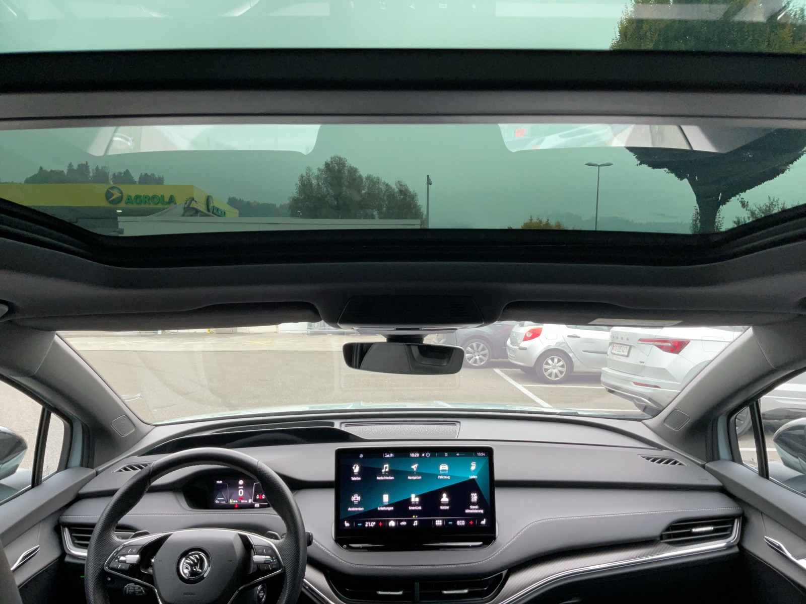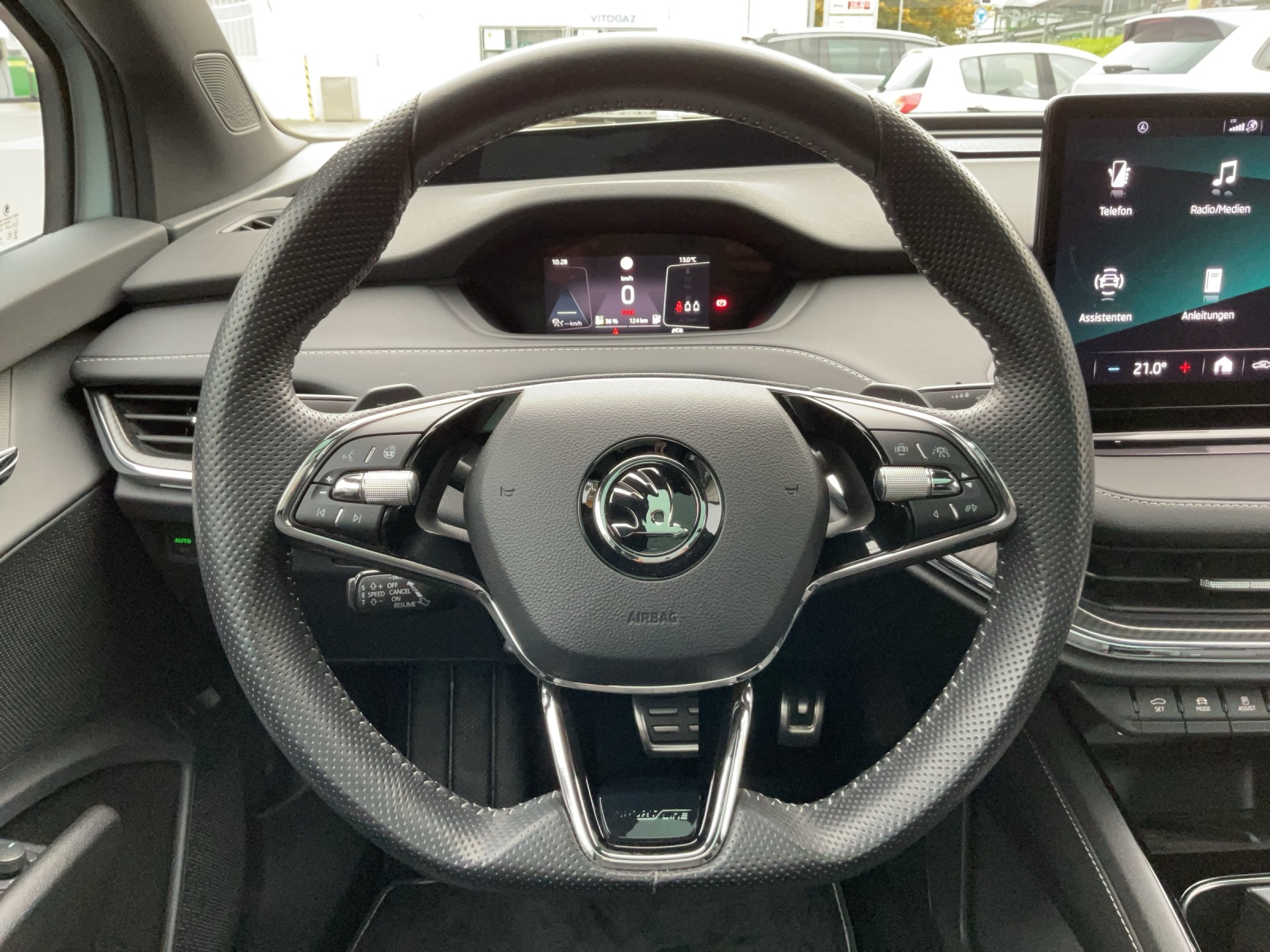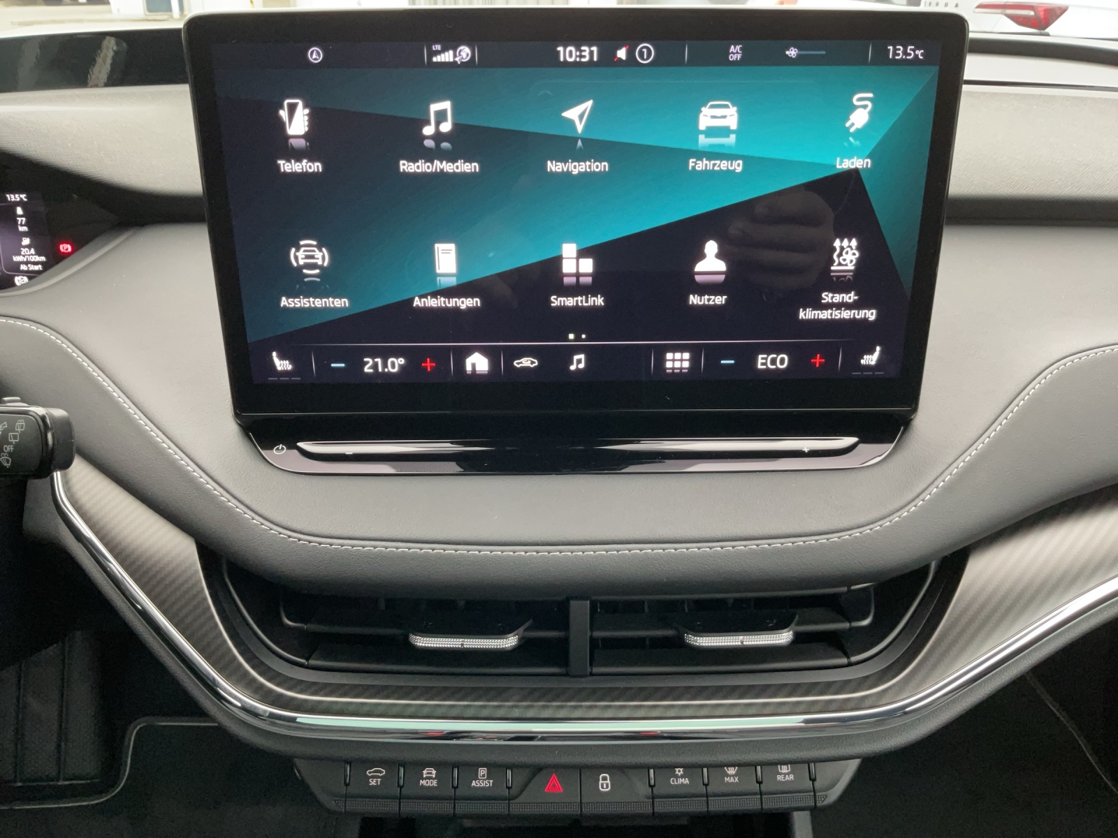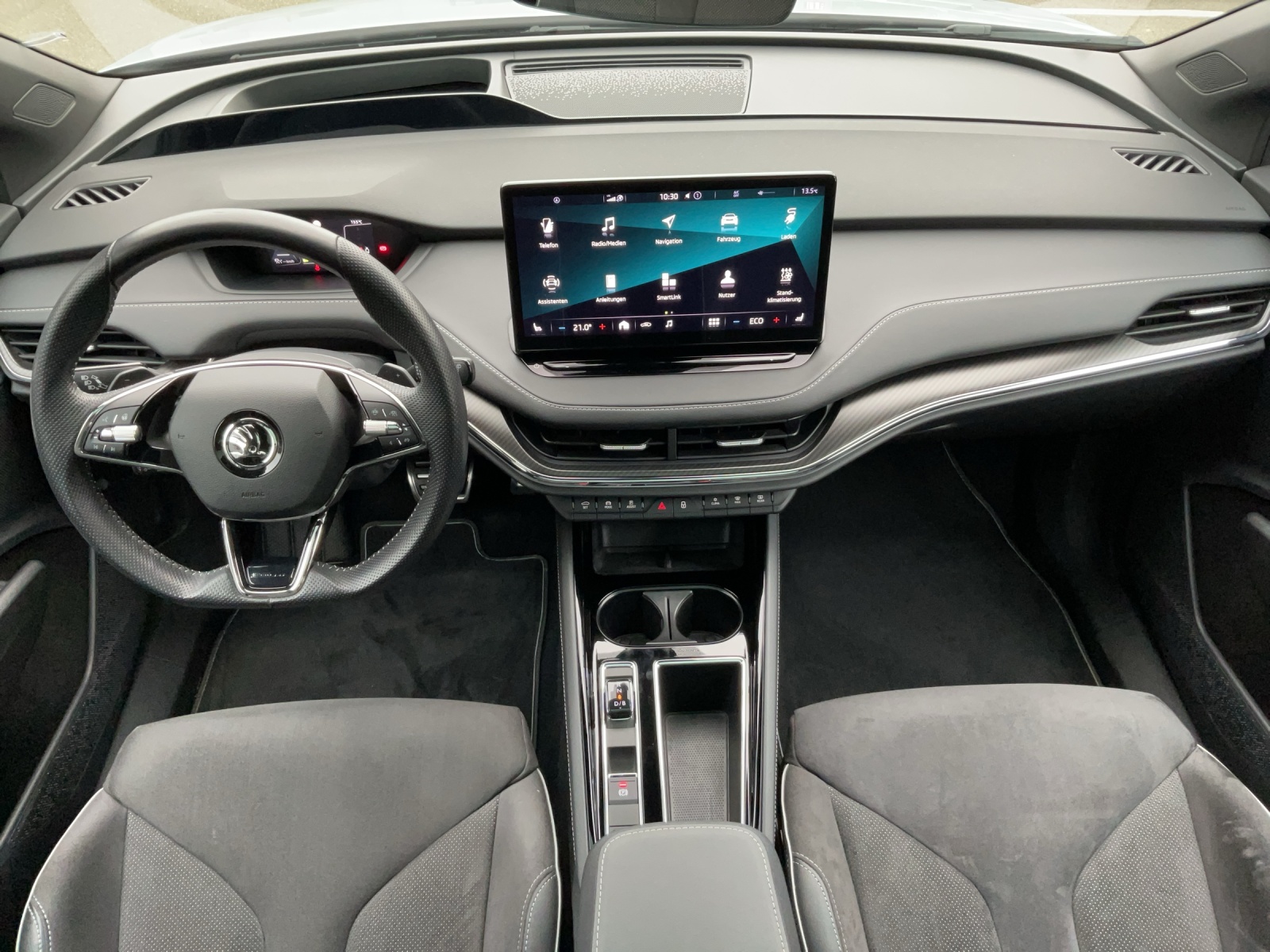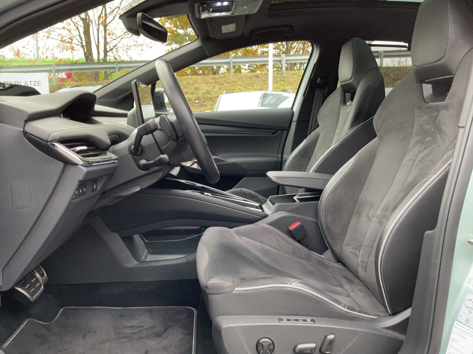 12 Volt-Steckdose im Laderaum 3-Punkt-Sicherheitsgurte auf allen Plätzen AC Batterieladung bis 11 kW Ablagekästen im Kofferraum (mit Steckdeckel links + rechts, ohne Kargoelementen) Airbag: Fahrer- und Beifahrerairbag Airbag: Seitenairbag vorne mit Kopfairbag und Mittelairbag vorne Akustisch optimierte Windschutzscheibe aus wärmedämmendem Glas Ambiente- und Fussraumbeleuchtung vorne und hinten,mehrfarbig Assist: Front Assistant inkl. City-Notbremsfunktion Assist: Geschwindigkeitsregelanlage (Tempomat) Assist: Notrufsystem Emergency-Call Assist: Regensensor mit Lichtassistent (Coming Home, Leaving Home, Tunnel Light) Assist: Spurhalteassistent "Lane Assist" Aussenspiegel automatisch abblendbar, elektrisch anklapp-/einstellbar Aussenspiegel mit Einstiegsbeleuchtung Boardwerkzeug und Reifenreparaturset DC Batterieladung bis 125 kW DC Batterieladung bis 50 kW Dachreling schwarz-lackiert Elektronisches Stabilitäts-Programm (ESP) Fussmatten vorne und hinten Getriebe: 1-Gang Getriebe Heckklappenöffnung manuell Heckscheibenwischer «AERO» Innenspiegel automatisch abblendbar KESSY- Go Schlüsselloses Startsystem Klima: Climatronic 2-Zonen-Temperaturregelung, vollautomatisch, getrennt regelbar Kühlerumrahmung schwarz hochglanz Ladekabel für AC-Normalladen bis zu 11 kW, Typ2-Stecker Licht: Basis LED Frontscheinwerfer inkl. LED Tagfahrlicht Licht: Leuchtweitenregulierung manuell Media: "Care Connect" iV Remote-Dienste Media: DAB+ (Digital Audio Broadcasting) Media: SmartLink (CarPlay und Android Auto) Media: Telefonvorbereitung mit Bluetooth Media: USB-C-Anschluss vorne, Laden und Daten Media: Vorbereitung für Navigationssystem Mittelkonsole mit Armlehne On-Board Batterieladefähigkeit 11kW für AC (3-Phase) Paket: Convenience Basic- Paket: Drive Sport Basic- Paket: Licht & Sicht Basic Pollenfilter (Staubfilter) Polster: SportLine Sitzbezüge Suedia/Leder mit grauer Naht, Dekor Carbon Regenschirm in der Vordertür Räder: Leichtmetallräder 20" (8 J vorn, 9 J hinten) "VEGA SPORTLINE", Anthrazit glanzgedreht Räder: Reifendruckkontrollsystem SKODA Garantie: Garantie 12 Jahre gegen Durchrostungs (ab 1. Inv.) SKODA Garantie: Garantie 2 Jahre ohne Kilometerbegrenzung (ab 1. Inv.) SKODA Garantie: Garantie 3 Jahre gegen Lackschäden (ab 1. Inv.) SKODA Garantie: Garantie 8 Jahre oder 160’000 km Garantie auf HV-Batterie Servolenkung, geschwindigkeitsabhängig (Servotronic) Sitze: 3. Kopfstütze hinten Sitze: Isofix an Rücksitzen und Beifahrersitz und 2 x TopTether Sitze: Rücksitzbank, 60:40 geteilt umklappbare Rückenlehne, mit Mittelarmlehne Sitze: Sport-Komfortsitze vorne Sitze: Vordersitze höhenverstellbar (manuell) Sitze: Vordersitze mit Lendenwirbelstütze manuell anpassbar Sportliche Stossfänger und Diffusor Türschwellen und Zierleisten in schwarz Umrandung der Seitenscheiben in schwarz Wegfahrsperre elektronisch Wärmepumpe zur Reichweitenoptimierung Zentralverriegelung mit Fernbedienung