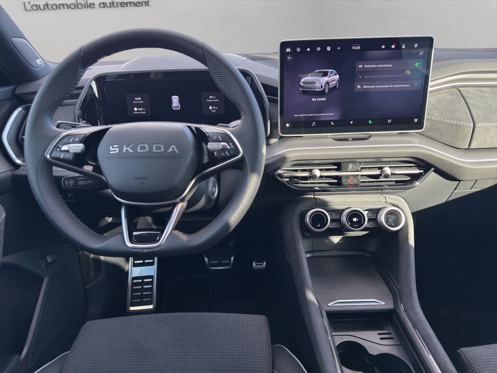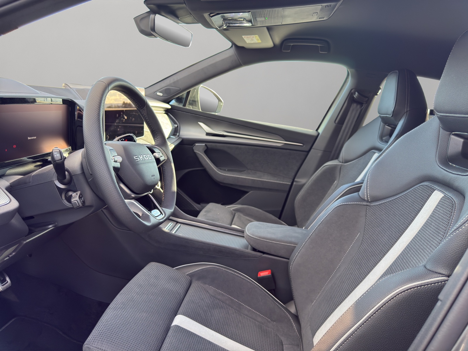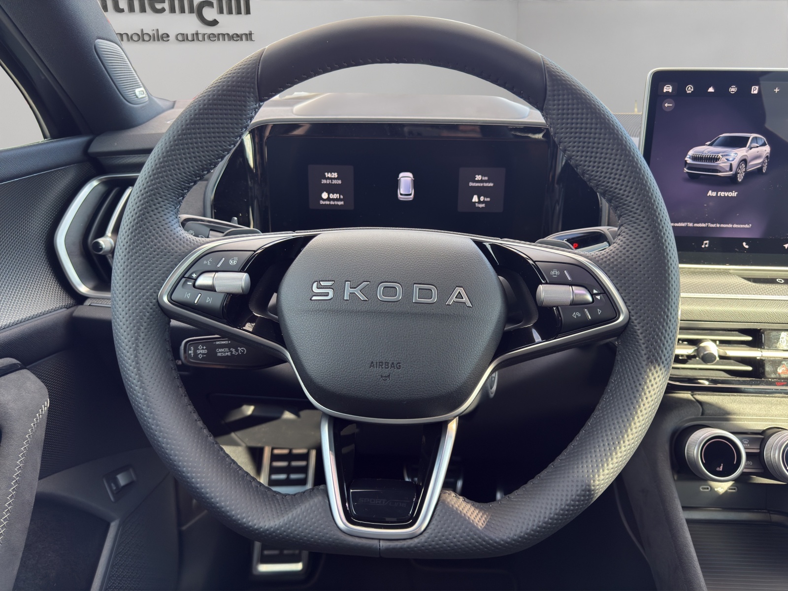 Serienausstattung 3-Punkt-Sicherheitsgurte auf allen Plätzen ABS, EBD elektronische Bremskraftverteilung Ablagekasten im Kofferraum in der Seitenverkleidung (links und rechts) Airbag: Airbag Beifahrer deaktivierbar Airbag: Airbag Fahrer und Beifahrer Airbag: Kopfairbags inkl. Seitenairbags vorne Airbag: Zentralairbag vorne Assist: Abbiegeassistent mit Gegenverkehr Warnung Assist: Ablenkungs- und Müdigkeitserkennung mit Innenraumkamera Assist: Adaptive Geschwindigkeitsregelanlage "Adaptive Cruise Control" Assist: Adaptiver Spurhalteassistent "Lane Assist" mit Stau- und Notbremsassistent Assist: Berganfahrassistent Assist: Emergency Call (Notruf) Assist: Insassenschutzsystem "Crew Protect Assistant" vorne, hinten und auf beiden Seiten Assist: Kreuzungsassistent mit Querverkehrserkennung von Fahrzeugen und Fussgänger Assist: Notbremsassistent "Front Assist" Assist: Parksensoren vorne und hinten Assist: Regensensor mit Lichtassistent (Coming Home, Leaving Home, Tunnel Light) Assist: Spurwechselassistent "Side Assist" inkl. Ausparkassistent und Ausstiegswarnung Assist: Verkehrserkennungszeichen Aussenspiegel elektrisch anklappbar mit automatischer Abblendung (nur Fahrerseite)und Memoryfunktion Aussenspiegel rechts und links beheizbar und elektrisch verstellbar Dachreling schwarz hochglanz Design Selection Sportline: Elektrische Kindersicherung Elektronisches Stabilitäts-Programm (ESP) Fenster Zierleisten und D-Säule in Schwarz hochglanz Frontgrill mit beleuchtetem LED Streifen Heckscheiben-Wisch-/Waschanlage Innenspiegel automatisch abblendbar Klima: Klimaanlage "Climatronic", 3-Zonen-Temperaturregelung, vollautomatisch, getrennt regelbar Lackierung: Uni-Lackierung Lenkrad: Sport-Leder-Multifunktionslenkrad 3-Speichen mit Schaltwippen, beheizbar Licht: LED Rückleuchten mit dynamischen Blinkern Licht: Voll LED Scheinwerfer mit "Matrix-Beam-Funktion" mit AFS (Adaptive Frontlight System) Media: 2 USB-C Anschlüsse im Fond Media: 2 USB-C Anschlüsse vorne Media: DAB+ (Digital Audio Broadcasting) Media: Infotainment Online 3 Jahre + "Care Connect" (Remote Access [3 Jahr] und Proactive Services) Media: Infotainmentdisplay 13" mit Navigationsfunktion Media: SmartLink (CarPlay und Android Auto) Paket: Convenience Plus Paket Phonebox und Wireless Charging Räder: Leichtmetallräder 7,5 J x 19" "Tirsuli" aero, anthrazit Räder: Reifendruckkontrollsystem Räder: Stahlnotrad platzsparend inkl. Wagenheber und Radschraubenschlüssel (ohne Pannenset) SKODA Garantie: Anschlussgarantie 2+1 Jahre (total 3 Jahre), max. 100.000 km SKODA Garantie: Garantie 12 Jahre gegen Durchrostungs (ab 1. Inv.) SKODA Garantie: Garantie 3 Jahre gegen Lackschäden (ab 1. Inv.) SKODA Garantie: Neuwagen-Garantie: 2 Jahre ohne Kilometerbegrenzung Servolenkung, geschwindigkeitsabhängig (Servotronic) Sitze: 3 Kopfstützen hinten Sitze: Mittelarmlehne hinten mit Getränkehalter Sitze: Rücksitzlehne mit Fernbedienung aus Kofferraum Sitze: Sport-Komfortsitze vorne Sitze: Vorbereitung für Kindersitzhalterung mit Sicherheitssystem ISOFIX auf dem Beifahrersitz Sitze: Vordersitze heizbar Variabler Ladeboden im Kofferraum Vorbereitung für Anhängerkupplung Wegfahrsperre elektronisch