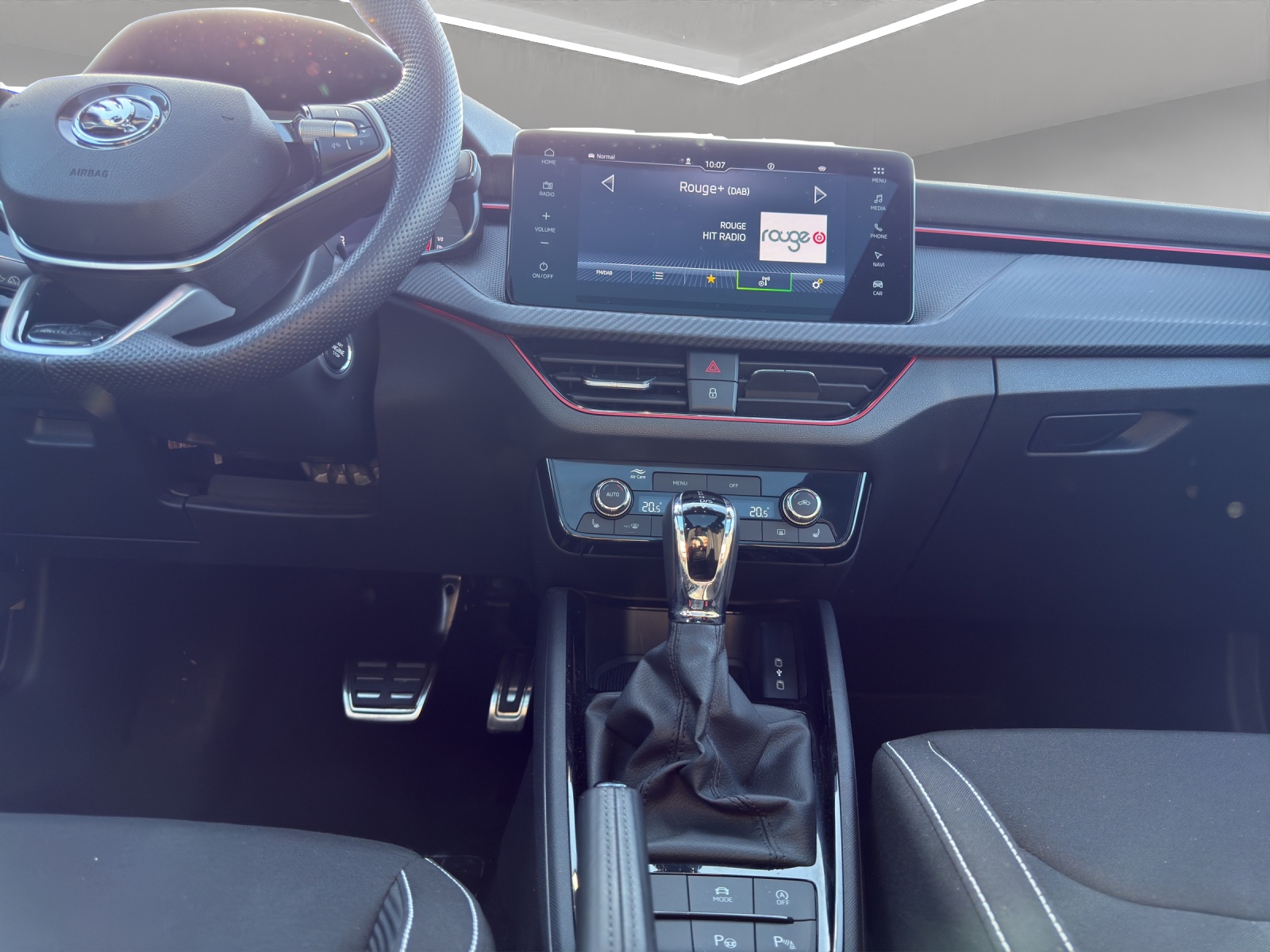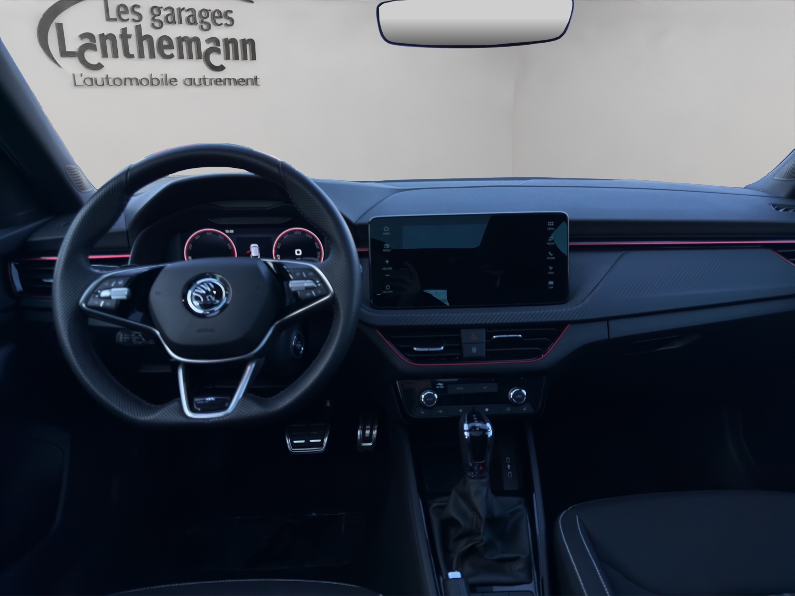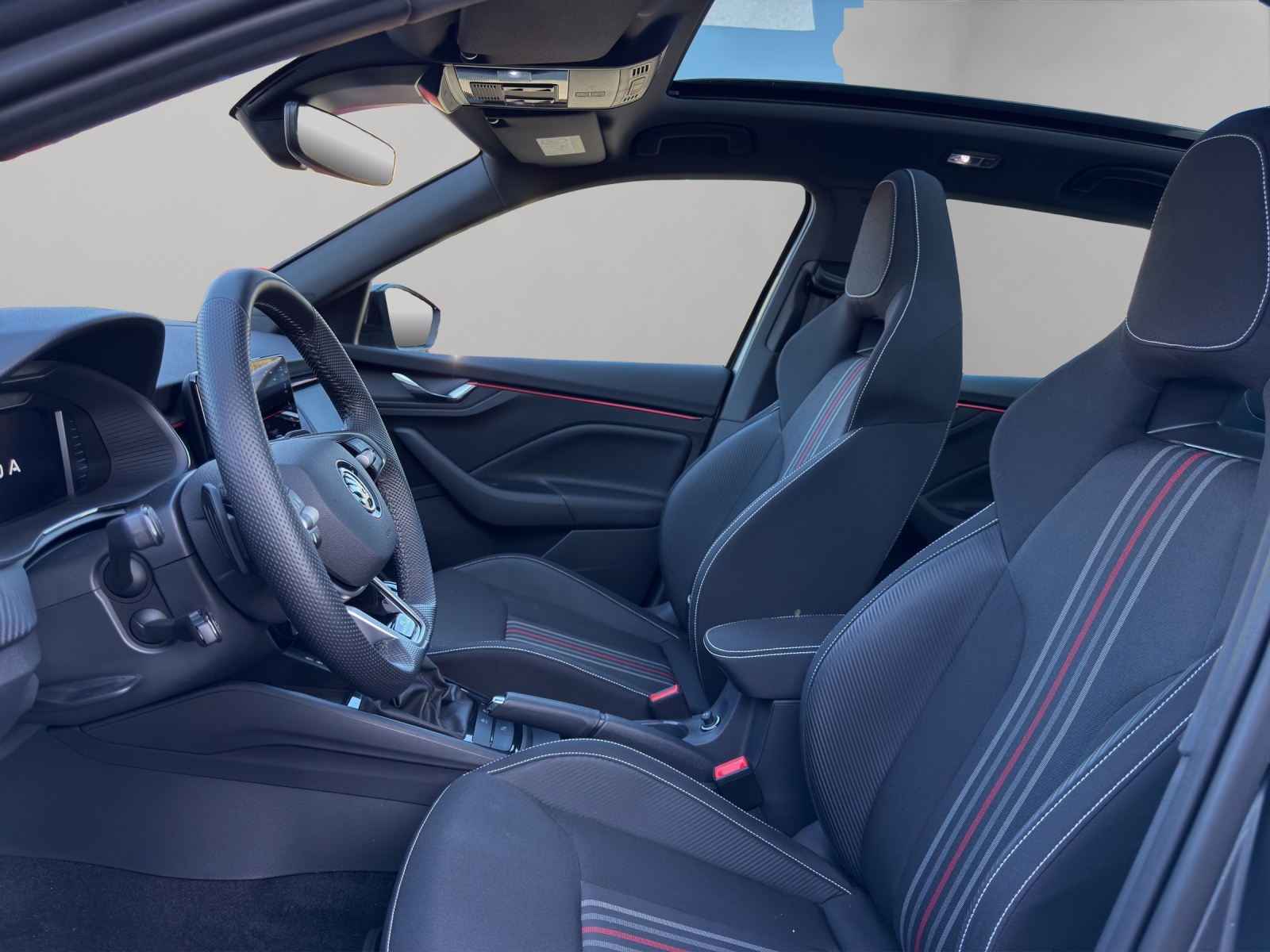 3-Punkt-Sicherheitsgurte auf allen Plätzen Accoudoir central arriere avec double porte-gobelet et sans fonction de chargement Accoudoir central avant avec grand boîtier Jumbo-Box Airbag: Airbag Beifahrer deaktivierbar Airbag: Airbag Fahrer und Beifahrer Airbag: Kopf- und Seitenairbags vorne Assist: Ablenkungs- und Müdigkeitserkennung Assist: Berganfahrassistent Assist: Front Assistant inkl. City-Notbremsfunktion Assist: Geschwindigkeitsregelanlage (Tempomat) Assist: Parksensoren hinten Assist: Spurhalteassistent "Lane Assist" Assist: Verkehrszeichenerkennung Aussenspiegel rechts und links beheizbar und elektrisch verstellbar Cadre de radiateur avec bande chromée Conduits d'air latéraux dans le pare-chocs avant peints en noir Crochets a bagages pliables dans le coffre Elektronisches Stabilitäts-Programm (ESP) Emergency Call (appel d´urgence) Fahrprofilauswahl "Driving Mode Selection" Gurtanlegesignalisation für alle Passagiere Heckscheiben-Wisch-/Waschanlage Lackierung: Uni-Lackierung Lumière: Easy Light Assist (éclairage automatique, Coming Home, Leaving Home) Lève-vitres électrique AV + AR Media: Skoda Infotainment 8.25" Mèdias: DAB - récepteur digital Mèdias: Kit mains libres Bluetooth Pack: Light and View Plus Paket Pack: Paquet technologique Programme électronique de la stabilité Roues: Jantes en alliage léger 17" " Kajam Aero ", noires avec cache aérodynamique noir Räder: Pannenset (Kompressor und Flasche mit Dichtmittel, ohne Reserverad) Räder: Reifendruckkontrollsystem SKODA Garantie: Garantie voiture neuve: 2 ans sans limite de kilométrage SKODA Garantie: Prolongation de garantie 1 année, 100000 km au maximum Sitze: 3 Kopfstützen hinten Sitze: Vordersitze höhenverstellbar Sièges: Le dossier du siege arriere peut etre rabattu en plusieurs parties (60:40) Sièges: Préparation ISOFIX et top tether (dispositif de fixation des sieges enfants sur le siege pas Tissu: Housses de sieges sport en tissu noir,certaines avec look carbone et rayures rouges et grises Türgriffe aussen in Wagenfarbe Volant: Volant multifonction supersport en cuir a 3 branches avec palettes de changement de vitesse Wegfahrsperre elektronisch Éclairage d'ambiance 2 couleurs