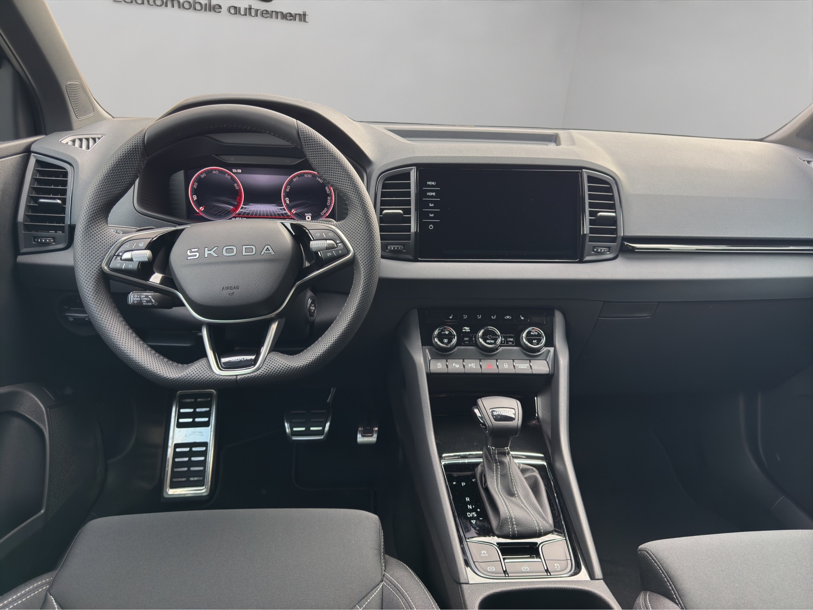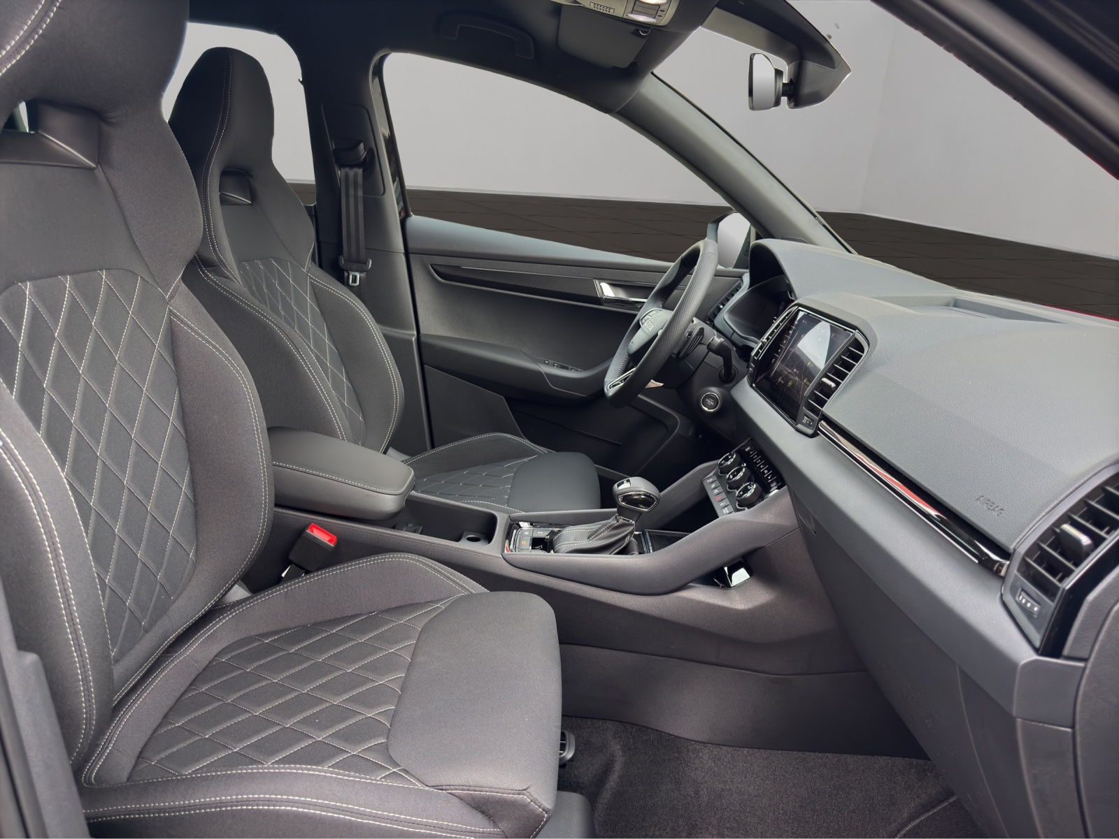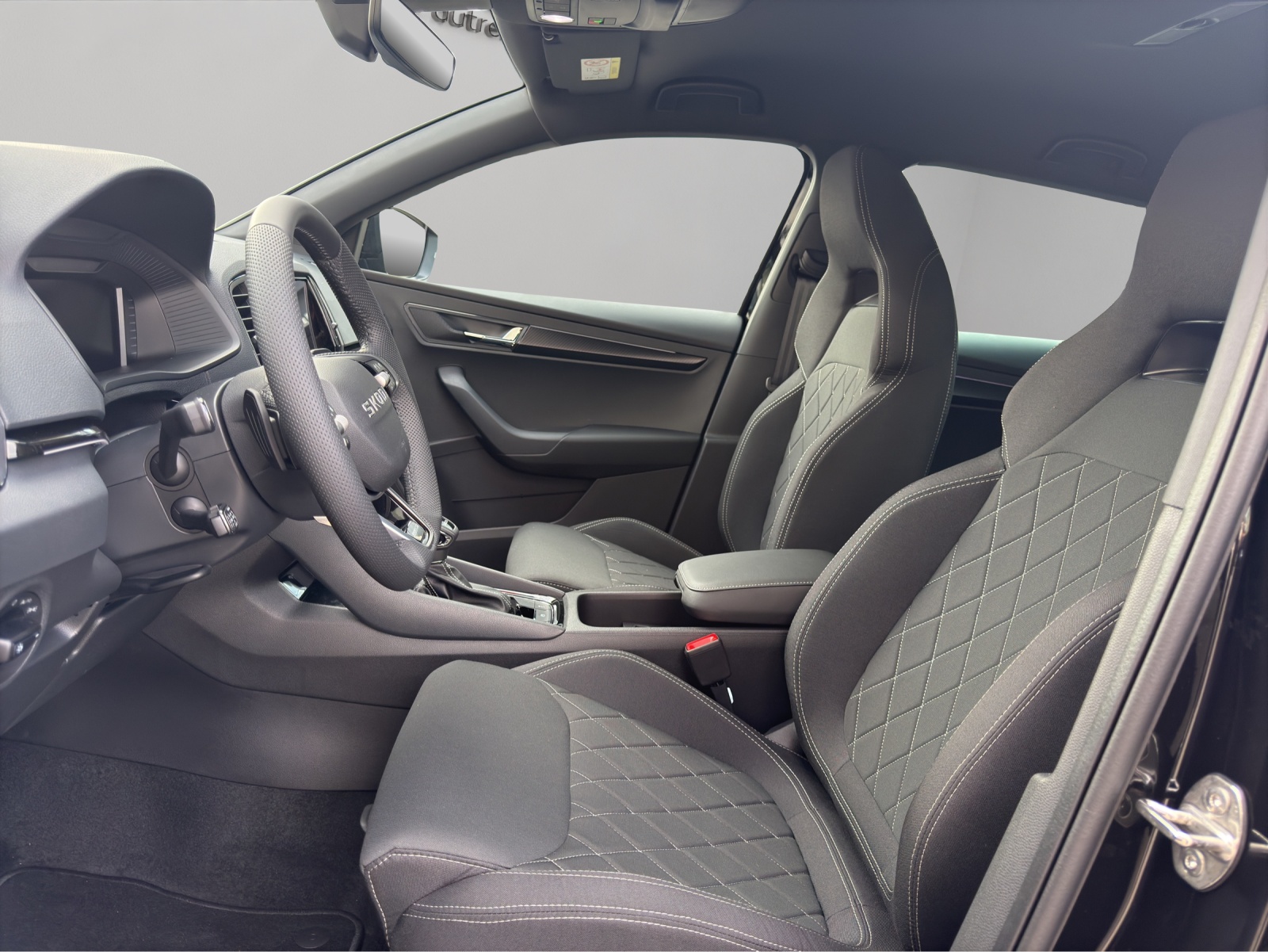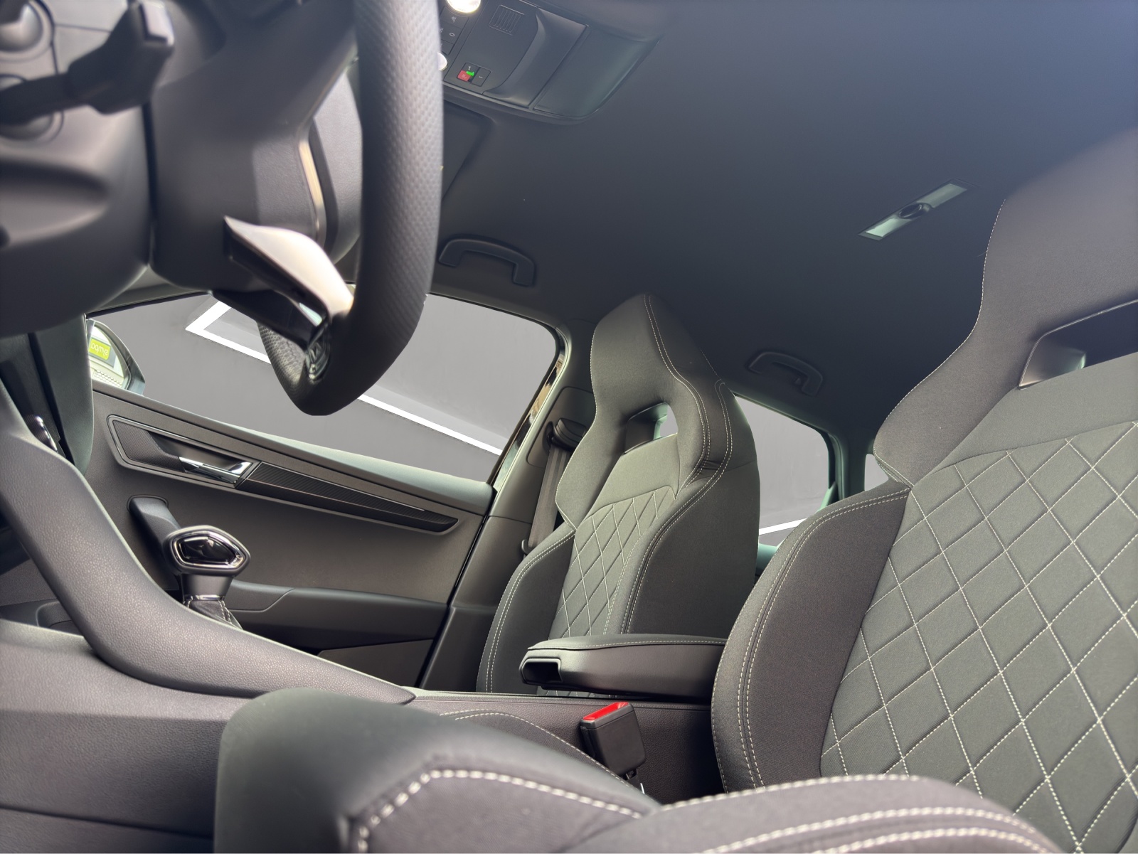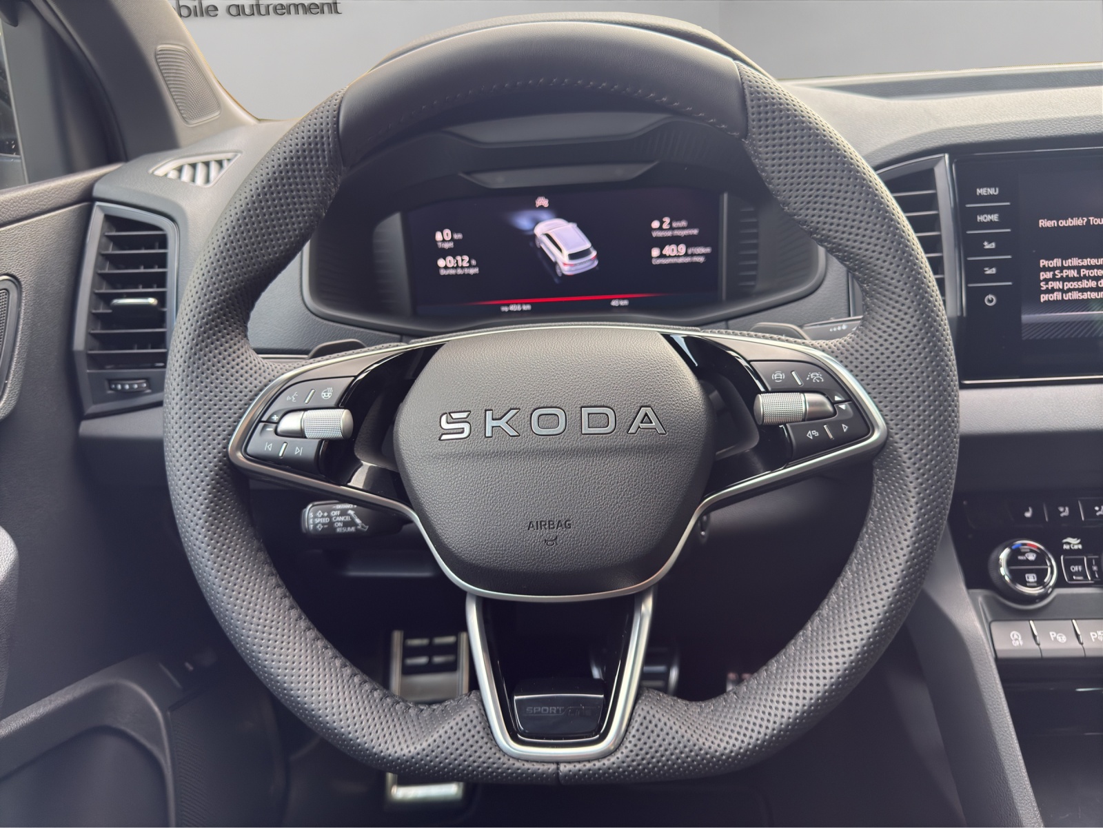 3 appuis-têtes AR et ceintures de sécurité à 3 points 3-Punkt-Sicherheitsgurte auf allen Plätzen Affichage multifonction avec écran Maxi Dot (ordinateur de bord étendu) en couleur Airbag: Knie-Airbag für Fahrer Airbag: Kopfairbags inkl. Seitenairbags vorne Assist: Berganfahrassistent Assist: Emergency Call (Notruf) Assist: Front Assistant inkl. City-Notbremsfunktion Assist: Geschwindigkeitsregelanlage mit Distanzkontrolle "Adaptive Cruise Control" bis 210 km/h Assist: Müdigkeitserkennung Baguettes de passages de roues Couvertures pour les seuils avant Décor: Application décorative du tableau de bord SportLine(Carbon-Design) Détecteur de pluie et rétroviseur Elektronisches Stabilitäts-Programm (ESP) Gurtanlegesignalisation für alle Passagiere Heckscheiben-Wisch-/Waschanlage Lenkrad: 3-Speichen-Supersport-Leder-Multifunktionslenkrad mit Schaltwippen, beheizbar Licht: LED Rückleuchten (mit dynamischem Blinker und Welcome-Effekt) Lumière: Assistant éclairage (Coming Home, Leaving Home, Tunnel Light) Mèdias: Care Connect (Remote Access (3 ans) & Proactive Services) Mèdias: DAB - récepteur digital Mèdias: Pré-équipement pour téléphone complet avec Bluetooth Pack: Pack Technology Bolero Peinture: Peinture Steel gris Pollenfilter (Staubfilter) Polster: Sitzbezüge Stoff Préparation pour attelage de remorque Roues: Jantes en alliage léger 7,0 J x 18" "PROCYON", noir avec housse aero, nero mat Räder: Pannenset (Kompressor und Flasche mit Dichtmittel, ohne Reserverad) Räder: Reifendruckkontrollsystem Rétroviseurs extérieurs réglables, dégivrants et rabattables électriquement SKODA Garantie: Garantie 12 Jahre gegen Durchrostungs (ab 1. Inv.) SKODA Garantie: Garantie 2 Jahre ohne Kilometerbegrenzung (ab 1. Inv.) SKODA Garantie: Garantie 3 Jahre gegen Lackschäden (ab 1. Inv.) Sitze: 3 Kopfstützen hinten Sitze: Mittelarmlehne vorne Sitze: Rücksitzlehne mit Fernbedienung aus Kofferraum Sélection du mode de conduite- "Driving Mode Selection" Teppichfussmatten vorne und hinten