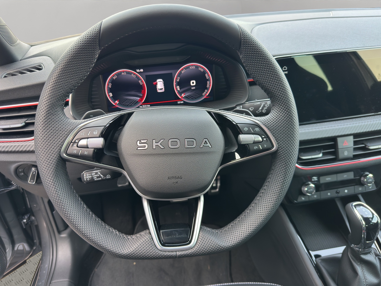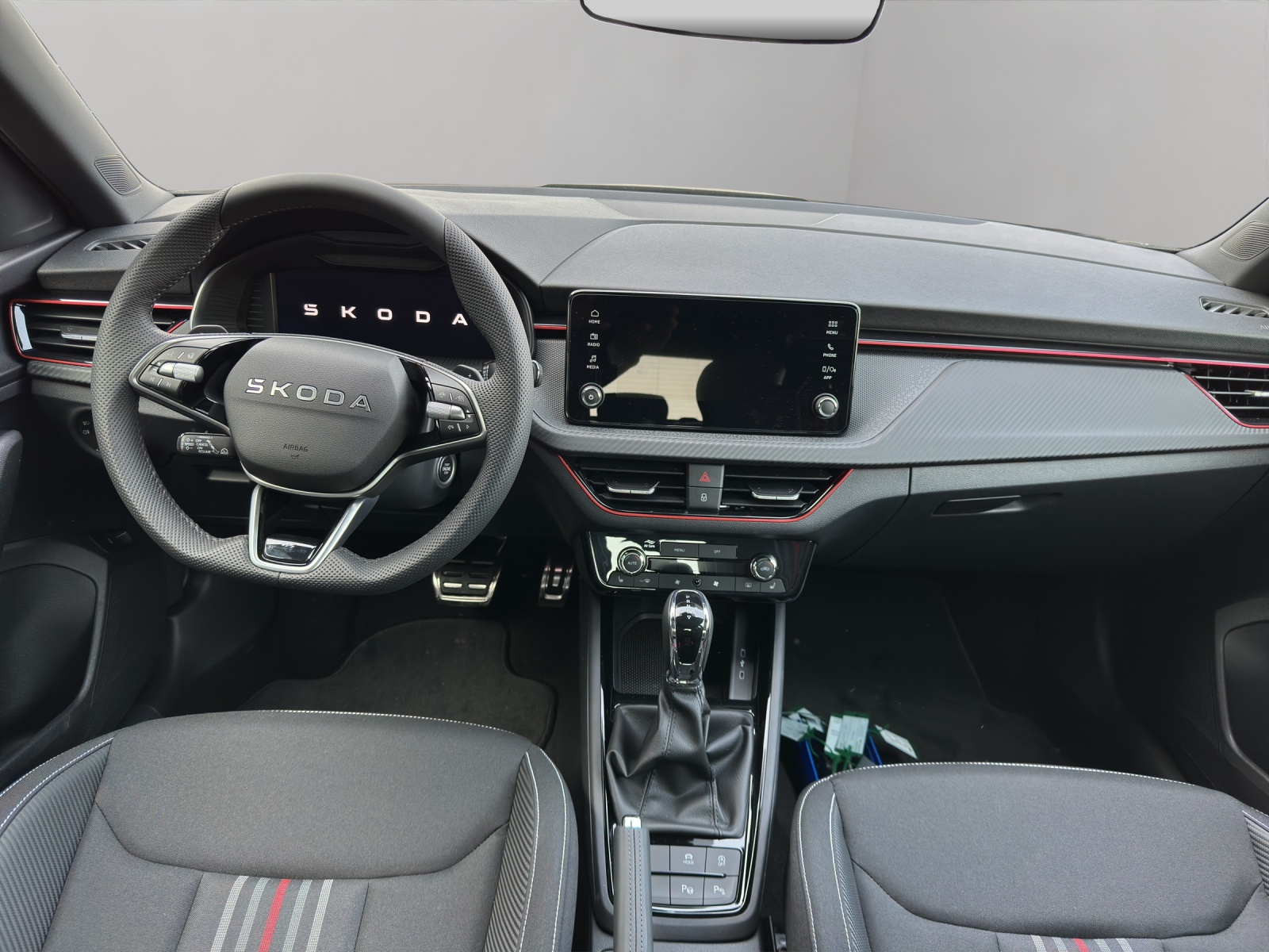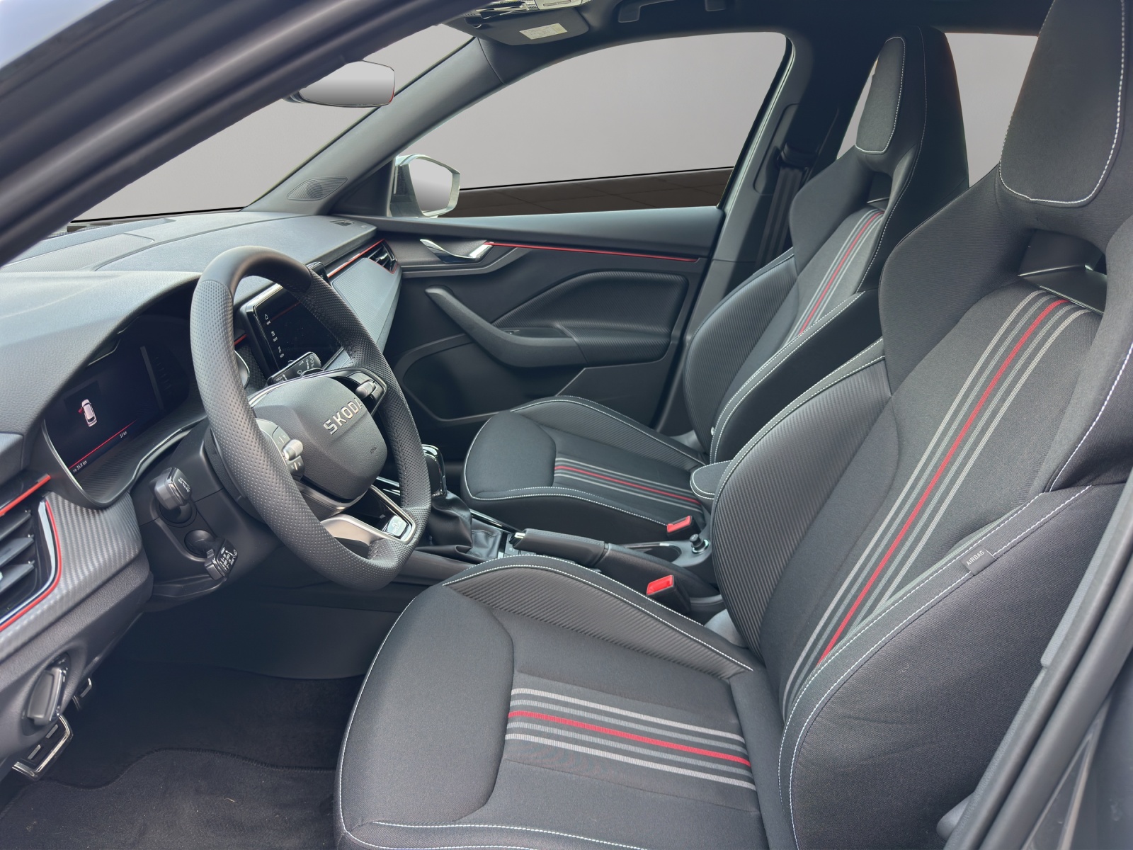 3-Punkt-Sicherheitsgurte auf allen Plätzen Airbag: Airbag Beifahrer deaktivierbar Airbag: Airbag Fahrer und Beifahrer Airbag: Kopf- und Seitenairbags vorne Ambiente Beleuchtung 2-farbig Assist: Ablenkungs- und Müdigkeitserkennung Assist: Berganfahrassistent Assist: Geschwindigkeitsregelanlage (Tempomat) Assist: Notbremsassistent "Front Assist" Assist: Parksensoren hinten Assist: Spurhalteassistent "Lane Assist" Assist: Verkehrszeichenerkennung Aussenspiegel rechts und links beheizbar und elektrisch verstellbar Chromrahmen am Kühlergrill ESC (Elektronische Stabilisierungskontrolle) mit Multikollisionsbremse, ABS und ASR Elektrische Fensterheber vorne + hinten Elektronisches Stabilitäts-Programm (ESP) Fahrprofilauswahl "Driving Mode Selection" Gurtanlegesignalisation für alle Passagiere Heckscheiben-Wisch-/Waschanlage Klappbare Gepäckhaken im Kofferraum Klima: Klimaanlage "Climatronic", 2-Zonen-Temperaturregelung, vollautomatisch, getrennt regelbar Lackierung: Uni-Lackierung Lenkrad: 3-Speichen-Sport-Leder-Multifunktionslenkrad mit Schaltwippen (DSG) Licht: Easy Light Assist (automatische Lichtschaltung, Coming Home, Leaving Home) Media: 2 USB-C Anschlüsse im Fond Media: 2 USB-C Anschlüsse vorne Media: 4 zusätzliche Lausprecher hinten Media: DAB - Digitaler Radioempfang Media: Skoda Infotainment 8.25" Media: SmartLink (CarPlay und Android Auto) Media: Telefonvorbereitung mit Bluetooth Mittelarmlehne hinten mit Doppel Getränkehalter und ohne Durchladefunktion Mittelarmlehne vorne inkl. grosser Jumbo-Box Paket: Light and View Plus Paket Polster: Sportsitzbezüge Stoff schwarz, teilweise Carbon-Optik und roten und grauen Streifen Räder: Leichtmetallräder 17" "Kajam Aero" schwarz mit schwarzer Aero-Blende Räder: Pannenset (Kompressor und Flasche mit Dichtmittel, ohne Reserverad) Räder: Reifendruckkontrollsystem SKODA Garantie: Anschlussgarantie 1 Jahr, max. 100000 km SKODA Neuwagen-Garantie: 2 Jahre ohne Kilometerbegrenzung Seitliche Luftführungen im Stossfänger vorne schwarz lackiert Sitze: 3 Kopfstützen hinten Sitze: ISOFIX-Vorbereitung und Top-Tether Sitze: Rücksitzlehne geteilt umklappbar (60:40) Sitze: Vordersitze höhenverstellbar Textilfussmatten vorne und hinten Türgriffe aussen in Wagenfarbe Wegfahrsperre elektronisch