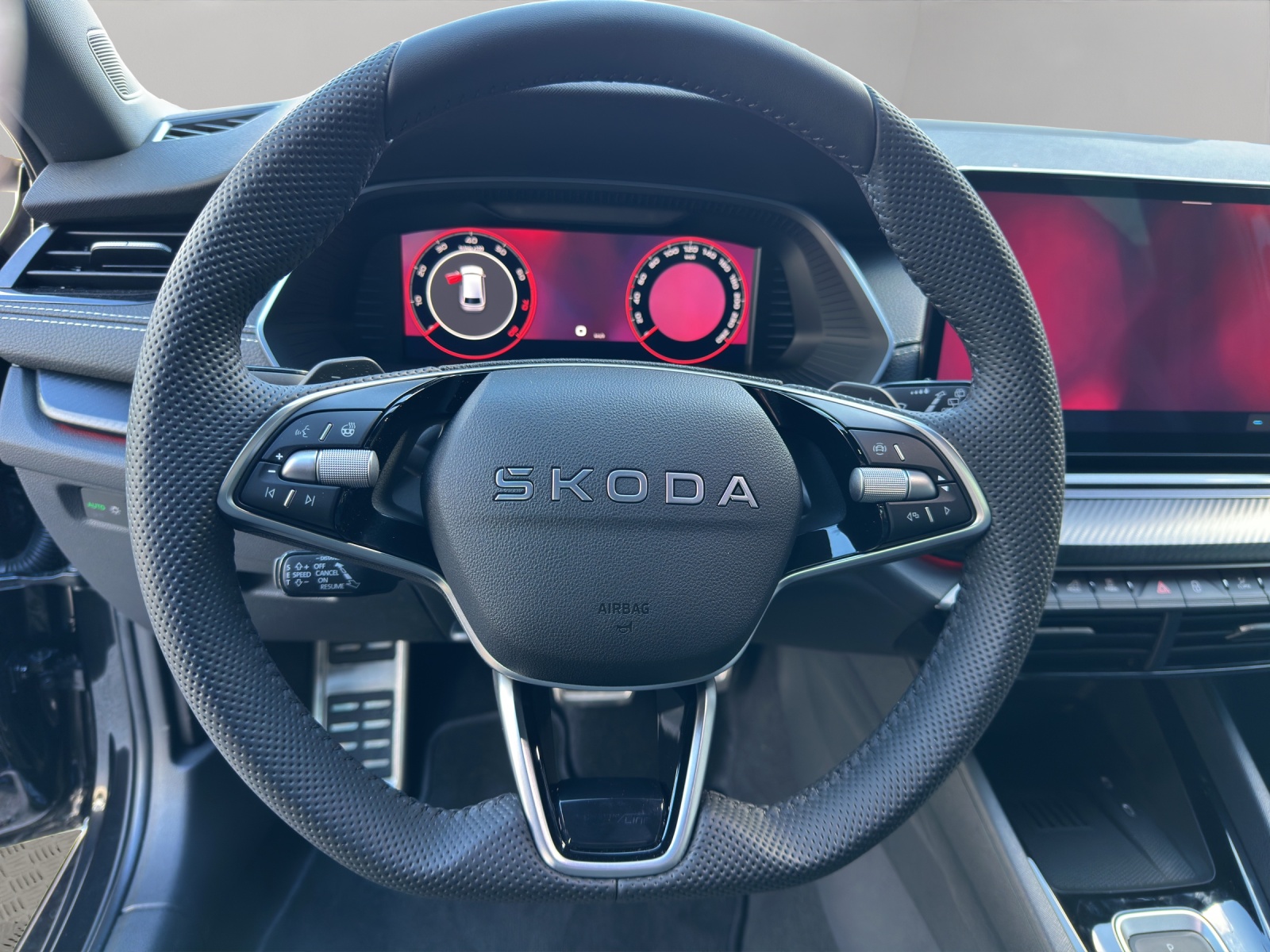 Serienausstattung 12 Volt-Steckdose im Laderaum 3-Punkt-Sicherheitsgurte auf allen Plätzen Airbag: Airbag für Vordersitze mit Beifahrerairbag-Deaktivierung und Fahrer Knieairbag Airbag: Kopf-, Seiten- und Zentralairbag vorne (zwischen Fahrer- und Beifahrersitz) Ambiente- und Fussraumbeleuchtung Assist: Abbiegeassistent mit Gegenverkehr Warnung Assist: Ablenkungs- und Müdigkeitserkennung Assist: Adaptive Geschwindigkeitsregelanlage "Adaptive Cruise Control" Assist: Berganfahrassistent Assist: Notbremsassistent "Front Assist" Assist: Notrufsystem Emergency-Call Assist: Verkehrszeichenerkennung Aussenspiegel in schwarz lackiert Dekor: Dekoreinlage am Armaturenbrett "Black Carbon Haptic" Diebstahlwarnanlage, Innenraumüberwachung, Back-up-Horn und Abschleppschutz Elektrische Fensterheber vorne + hinten Elektrische Kindersicherung Elektronisches Stabilitäts-Programm (ESP) Fahrprofilauswahl "Driving Mode Selection" Fahrwerk: Progressivlenkung Gurtstraffer vorne und hinten Heckscheiben-Wisch-/Waschanlage mit Iinterval Innenspiegel automatisch abblendbar Klima: Climatronic 2-Zonen-Temperaturregelung, vollautomatisch, getrennt regelbar Kopfstützen hinten höhenverstellbar Lackierung: Uni-Lackierung Licht: Fernlichtassistent Media: "SmartLink" (CarPlay und Android Auto) Media: DAB+ (Digital Audio Broadcasting) Media: Infotainment Online 3 Jahre + "Care Connect" (Remote Access 3 Jahre) Media: Phonebox und Wireless Charging Media: Zwei USB-C Anschlüsse hinten Mittelkonsole mit Jalousie Ohne Ablagekasten unter Beifahrersitz Paket: Assisted Drive Paket Plus Paket: Fahrerkomfort Paket Paket: Light & View Paket Plus Paket: Simply Clever Paket Premium Pedalerie mit Aluminiumauflage Polster: Sitzbezüge Stoff / Kunstleder schwarz Regenschirm in der Fahrertüre Regensensor mit Lichtassistent (Coming Home, Leaving Home, Tunnel Light) Räder: Leichtmetallräder 7,0 J x 17" "Slagard Aero", schwarz mit polierter Oberfläche Räder: Pannenset (Kompressor und Flasche mit Dichtmittel, ohne Reserverad) Räder: Reifendruckkontrollsystem SKODA Garantie: Anschlussgarantie: 2+3 Jahre (total 5 Jahre) bis max. 100000 km) SKODA Garantie: Garantie 12 Jahre gegen Durchrostungs (ab 1. Inv.) SKODA Garantie: Garantie 3 Jahre gegen Lackschäden (ab 1. Inv.) SKODA Garantie: Neuwagen-Garantie: 2 Jahre ohne Kilometerbegrenzung Sitze: Rücksitzlehne mit Fernbedienung aus Kofferraum Sitze: Sport-Komfortsitze vorne Sitze: Ungeteilte Rücksitzbank, geteilt umklappbare Rückenlehne, mit Mittelarmlehne Sitze: Vorbereitung für Kindersitzhalterung mit Sicherheitssystem ISOFIX auf dem Beifahrersitz Sitze: Vordersitze heizbar Vorbereitung Alkohol-Zündschlosssperre "Alcohol Interlock" Vorbereitung für Anhängevorrichtung Wegfahrsperre elektronisch Zentralverriegelung mit Fernbedienung