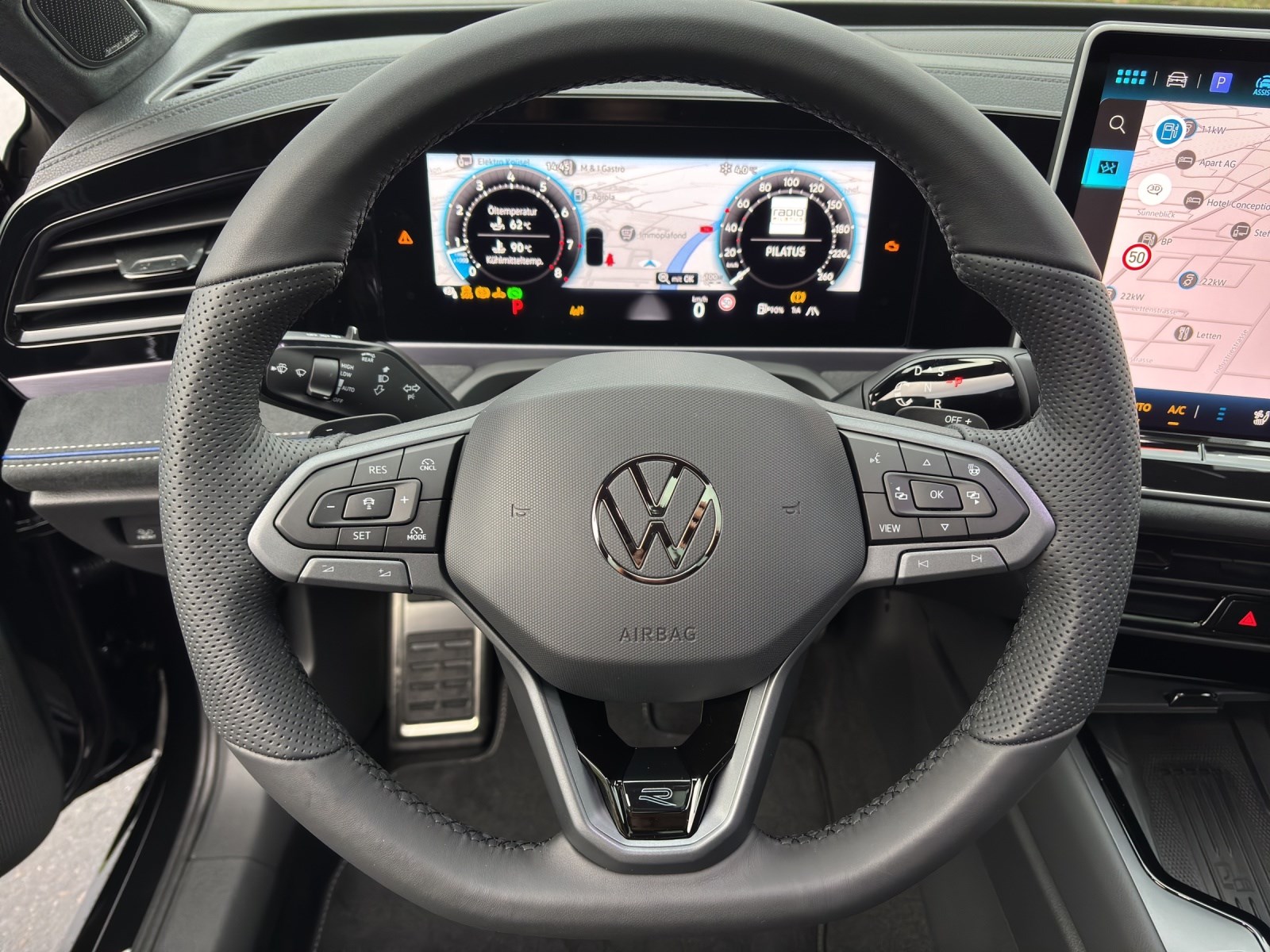 Serienausstattung Abbiegebremsfunktion und Ausweichunterstützung Airbag: Airbag für Fahrer und Beifahrer mit Beifahrerairbag-Deaktivierung Airbag: Knieairbag auf Fahrerseite Airbag: Kopfairbagsystem für Front- und Fondpassagiere inkl. Seitenairbags vorn und Center Airbag Ambientebeleuchtung 30-farbig Assist: Ablenkungs- und Müdigkeitserkennung Assist: Automatische Distanzregelung ACC "stop&go" Assist: Berganfahrassistent Assist: Elektronische Parkbremse inkl. Auto-Hold-Funktion Assist: Geschwindigkeitsbegrenzer mit vorausschauender Regelung Assist: Kreuzungsassistent Assist: Multifunktionskamera Assist: Notbremsassistent "Front Assist" mit Fussgänger- und Radfahrererkennung Assist: Rückfahrkamera Rear View Assist: Spurhalteassistent Lane Assist Assist: Spurwechselassistent "Side Assist" mit Ausparkassistent und Ausstiegswarner Assist: Traktionskontrolle (ASR) Assist: Verkehrszeichenerkennung Aussenspiegel mit Umfeldbeleuchtung und Beifahrerspiegelabsenkung, anklapp- und beheizbar, Aussenspiegelgehäuse in Wagenfarbe Chromleisten an den Seitenfenstern Dachreling silber eloxiert Einstiegs-/Warnleuchten in LED-Technik in allen Türen Einstiegsleisten vorne und hinten mit R-Line Logo Elektronisches Stabilisierungsprogramm und elektromechanischer Bremskraftverstärker Fahrwerk: Dämpfung vorn, Sportfahrwerk, -15mm, Stahl Fensterheber vorne und hinten elektrisch Frontscheibe in Verbundsicherheitsglas, wärmedämmend Garantie: VW Garantie 3 Jahre Lack-Garantie Garantie: VW Garantie: 12 Jahre Karosserie-Garantie gegen Durchrostung Garantie: VW Garantie: 2 Jahre ohne Kilometerbegrenzung Gepäckraumboden in 2 Höhen einstellbar Getriebe: 7-Gang Getriebe automatisiert Heckscheibenwischer mit Intervallschaltung Heckspoiler in Wagenfarbe ISOFIX-Halteösen für Kindersitze (auf den äusseren Rücksitzen und auf dem Beifahreresitz, Innenspiegel automatisch abblendend Klima: Klimaanlage "Air Care Climatronic" mit Aktiv-Kombifilter, Bedienungselementen hinten LED-Leuchte im Fussraum vorn, Lichtfarbe wählbar Lackierung: Uni-Lackierung Ladekantenschutz in Edelstahl Lenkrad: Elektrische Lenksäulenverriegelung Lenkrad: Multifunktions-Sportlenkrad in Leder beheizbar mit Schaltwippen Licht: Fahrlichtschaltung automatisch, mit LED-Tagfahrlicht Licht: IQ.LIGHT - LED-Matrix-Scheinwerfer Media: App-Connect mit Wireless App-Connect für Apple CarPlay und Android Auto Media: Digital Cockpit Pro, mehrfarbig, verschiedene Info-Profile wählbar Media: Digitaler Radioempfang DAB+ Media: Infotainment-System mit 32-cm-Display (12,9 Zoll) Media: Vorbereitet für We Connect / VW Connect & We Connect Plus / VW Connect Plus Media: We Connect / VW Connect Basisfunktionen - Kostenlos und ohne Laufzeitbeschränkung Mittelarmlehne hinten verschiebbar, mit Becherhaltern und Ablagemöglichkeit für Handy/Tablet Paket: Assistenzpaket "Park & Comfort" Paket: Infotainment Paket "Discover", Streaming & Internet fähig Paket: Technikpaket Insassenschutz Pedale in gebürstetem Edelstahl Polster: Sitzmittelbahnen der Vordersitze und der äusseren Rücksitzplätze in Stoff "R-Line" Räder: Leichtmetallräder "Coventry" in Schwarz Sitze: Kopfstützen vorne im Sitz integriert Sitze: Lendenwirbelstütze, pneumatisch einstellbar beidseitig Sitze: Rücksitzlehne asymmentrisch geteilt umklappbar, mit Durchlademöglichkeit Sitze: Vordersitze beheizbar Sitze: Vordersitze mit Massageprogrammen Sitze: ergoActive-Sitze vorn höheneinstellbar, mit verschiebbarer Oberschenkelauflage Sonnenblenden, mit Make-up-Spiegel beleuchtet auf Fahrer und Beifahrerseite Stossfänger im ''R-Line''-Styling Textilfussmatten vorn und hinten Tür und Seitenverkleidung, Insert Artvelour mit Doppelkapnaht Umfeldbeleuchtung mit Logo-Projektion Verbandtasche, Warndreieck und Warnweste Wärmeschutzverglasung grün, seitlich und hinten Zentralverriegelung mit Fernbedienung